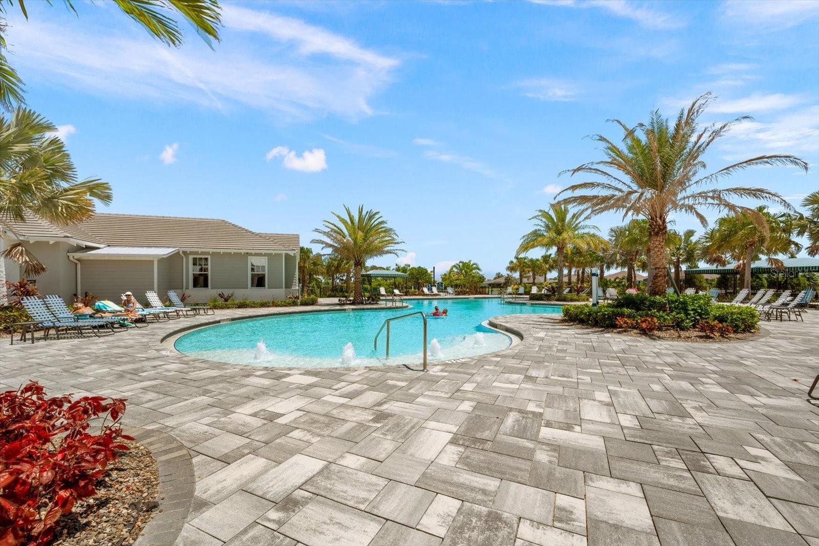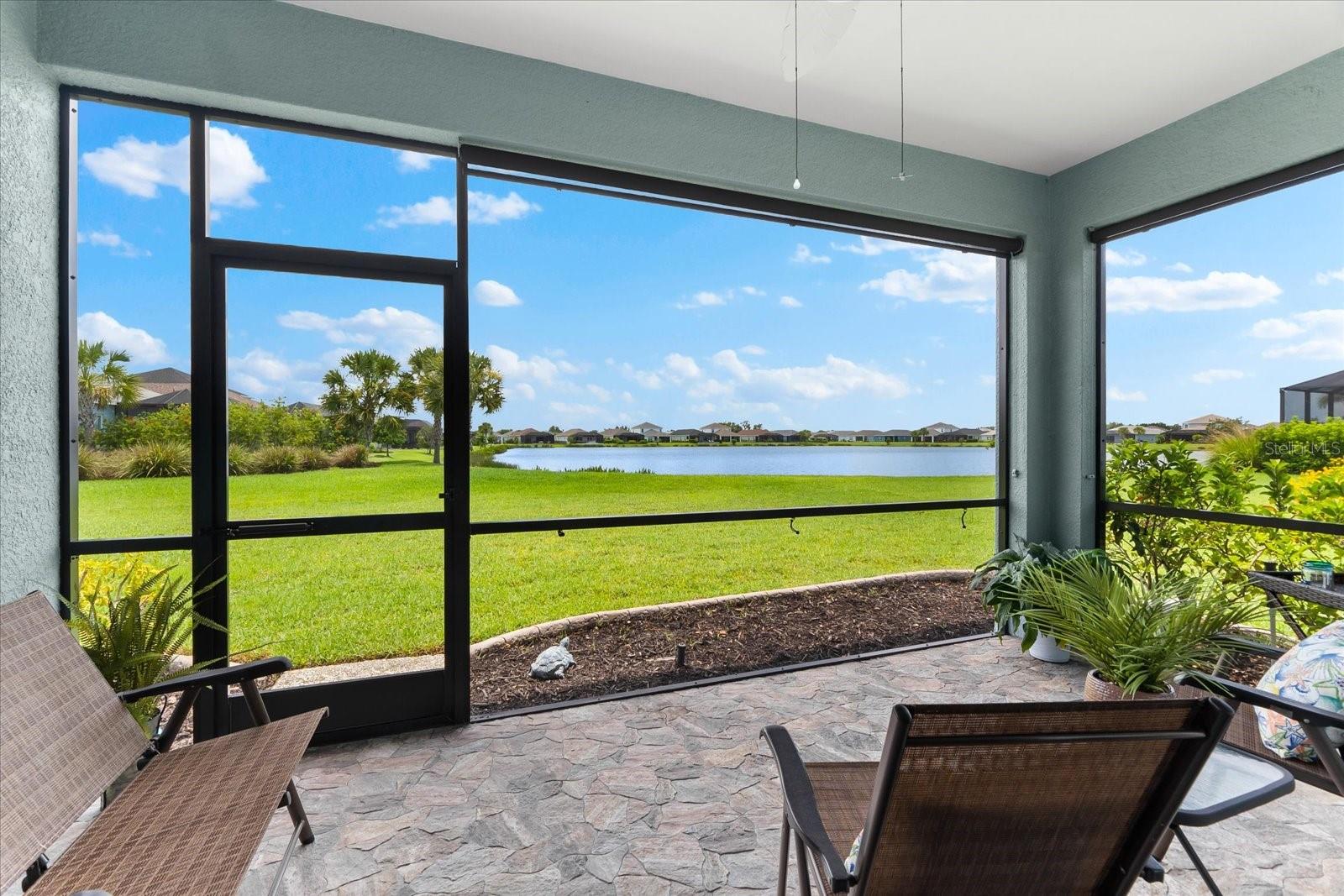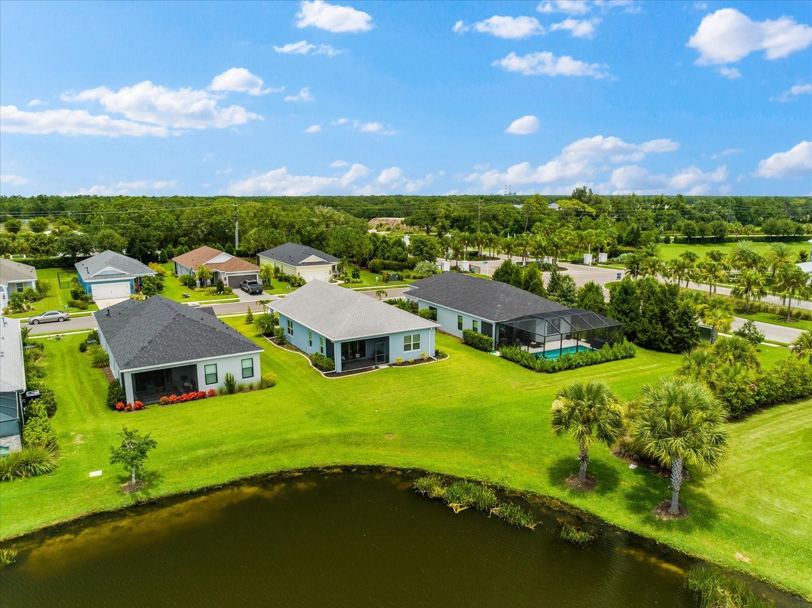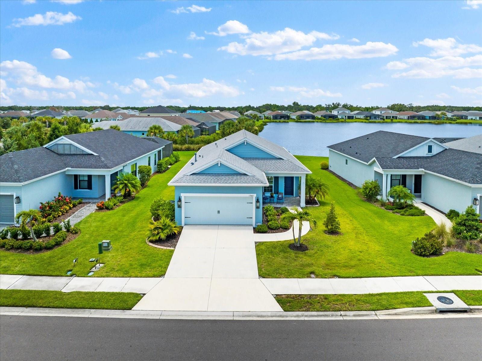 Great curb appeal greets you with manicured landscaping and a front porch with beautiful stone pavers. This Radiance model home features 2-bedroom, 2-bathroom a seamless open floor plan with 17” tile floors, high ceilings, and a flex room that can be used as an office or den. Enjoy serene pond views from the living area, primary bedroom, and the screened lanai, which has been updated with stone pavers and privacy shades. The gourmet kitchen has stainless steel appliances, quartz countertops, and crown-molded wood cabinetry. The primary suite offers his and her walk-in closets, updated laminate flooring, and an en suite bathroom with dual vanity sinks, walk-in shower and quartz countertops. This home is designed for efficiency and comfort, featuring a UV light system in the AC system to kill bacteria and inhibit odors, wood blinds, double-pane windows, a 2-car garage with shelving and epoxy floors, additional attic storage, clog-free leaf guard gutters, a whole house water softener, hurricane shutters, and a whole house surge protector. Canoe Creek has a full-time Lifestyle Coordinator organizing community events. There is a Lagoon-style pool and Spa, a Clubhouse with a kitchen and Fitness Room, Dog Park, and Pickle Ball Courts and Picnic Shelter with Grills. Canoe Creek is conveniently located close to Lakewood Ranch, dining, and shopping. NO CDD and LOW HOA FEES This meticulously maintained property is a true gem. Don't miss the chance to make this beautiful home yours. Contact us today to schedule a private tour!