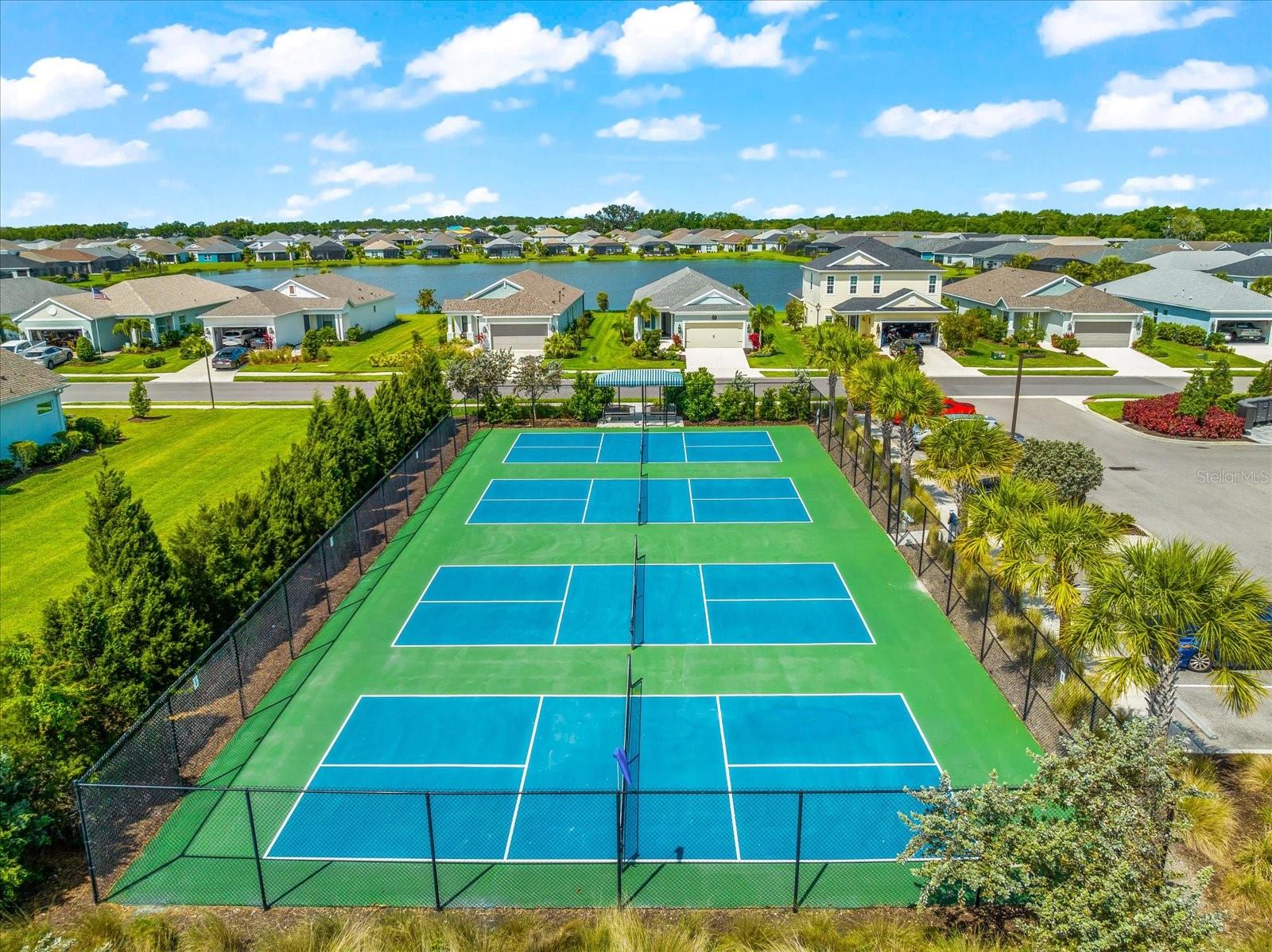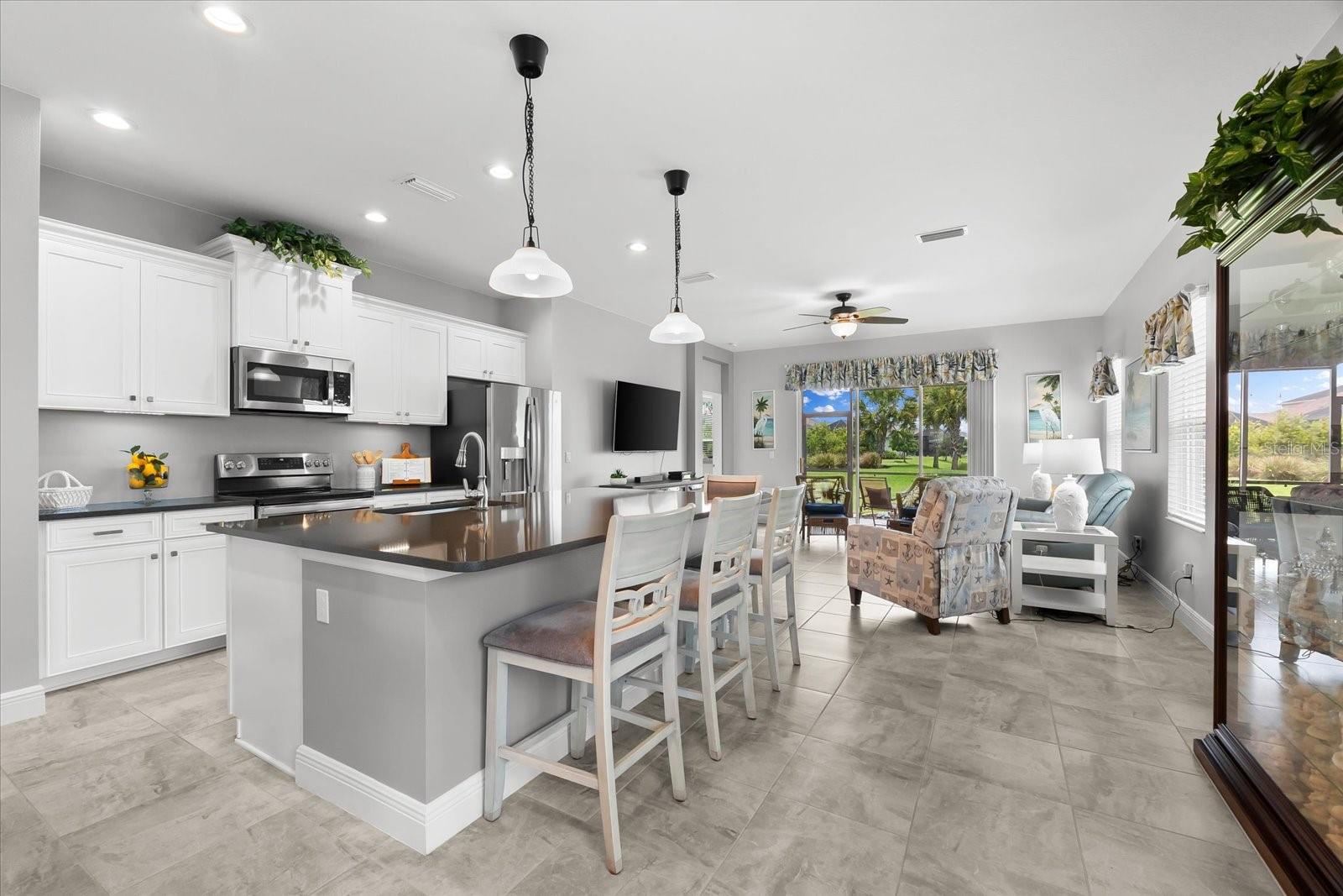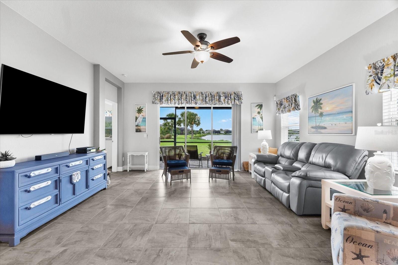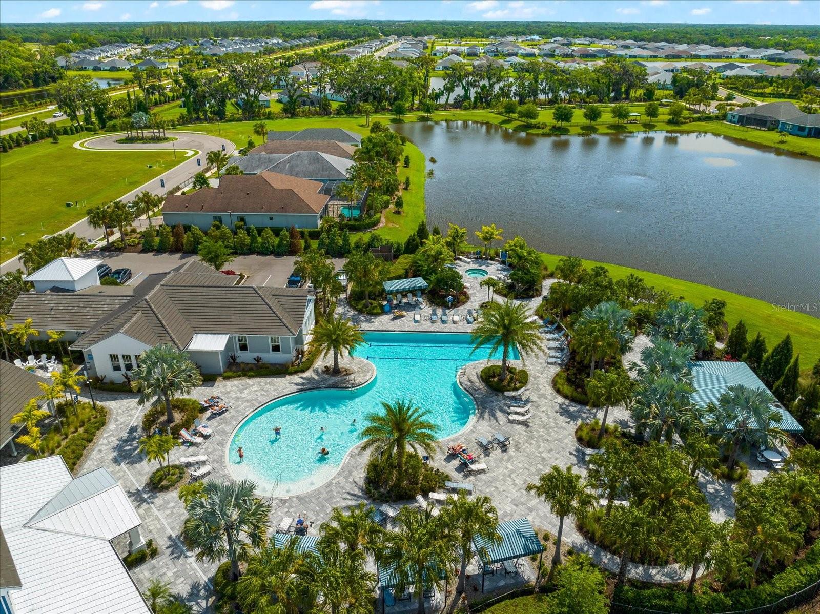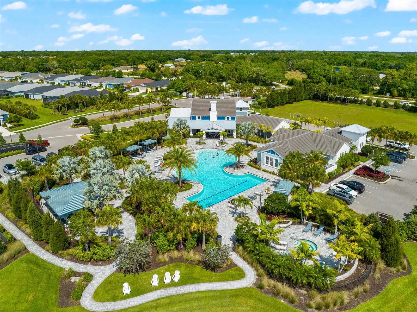 Great curb appeal greets you with manicured landscaping and a front porch with beautiful stone pavers. This Radiance model home features 2-bedroom, 2-bathroom a seamless open floor plan with 17” tile floors, high ceilings, and a flex room that can be used as an office or den. Enjoy serene pond views from the living area, primary bedroom, and the screened lanai, which has been updated with stone pavers and privacy shades. The gourmet kitchen has stainless steel appliances, quartz countertops, and crown-molded wood cabinetry. The primary suite offers his and her walk-in closets, updated laminate flooring, and an en suite bathroom with dual vanity sinks, walk-in shower and quartz countertops. This home is designed for efficiency and comfort, featuring a UV light system in the AC system to kill bacteria and inhibit odors, wood blinds, double-pane windows, a 2-car garage with shelving and epoxy floors, additional attic storage, clog-free leaf guard gutters, a whole house water softener, hurricane shutters, and a whole house surge protector. Canoe Creek has a full-time Lifestyle Coordinator organizing community events. There is a Lagoon-style pool and Spa, a Clubhouse with a kitchen and Fitness Room, Dog Park, and Pickle Ball Courts and Picnic Shelter with Grills. Canoe Creek is conveniently located close to Lakewood Ranch, dining, and shopping. NO CDD and LOW HOA FEES This meticulously maintained property is a true gem. Don't miss the chance to make this beautiful home yours. Contact us today to schedule a private tour!