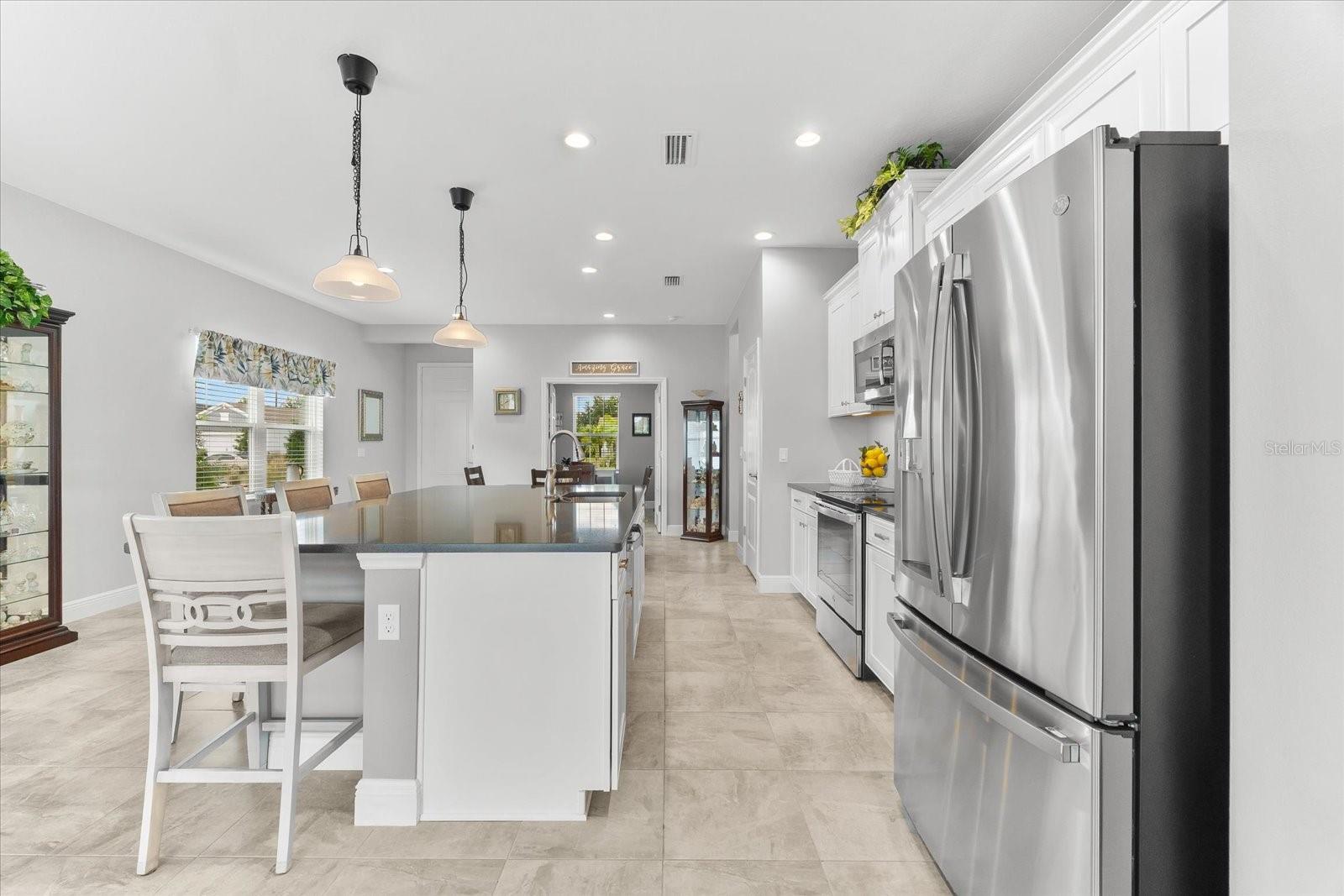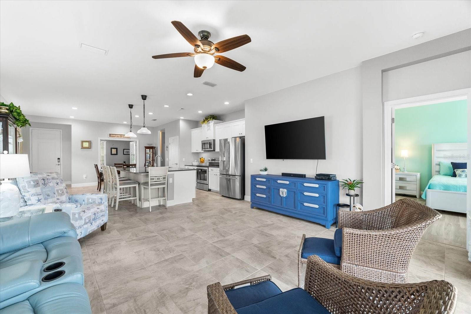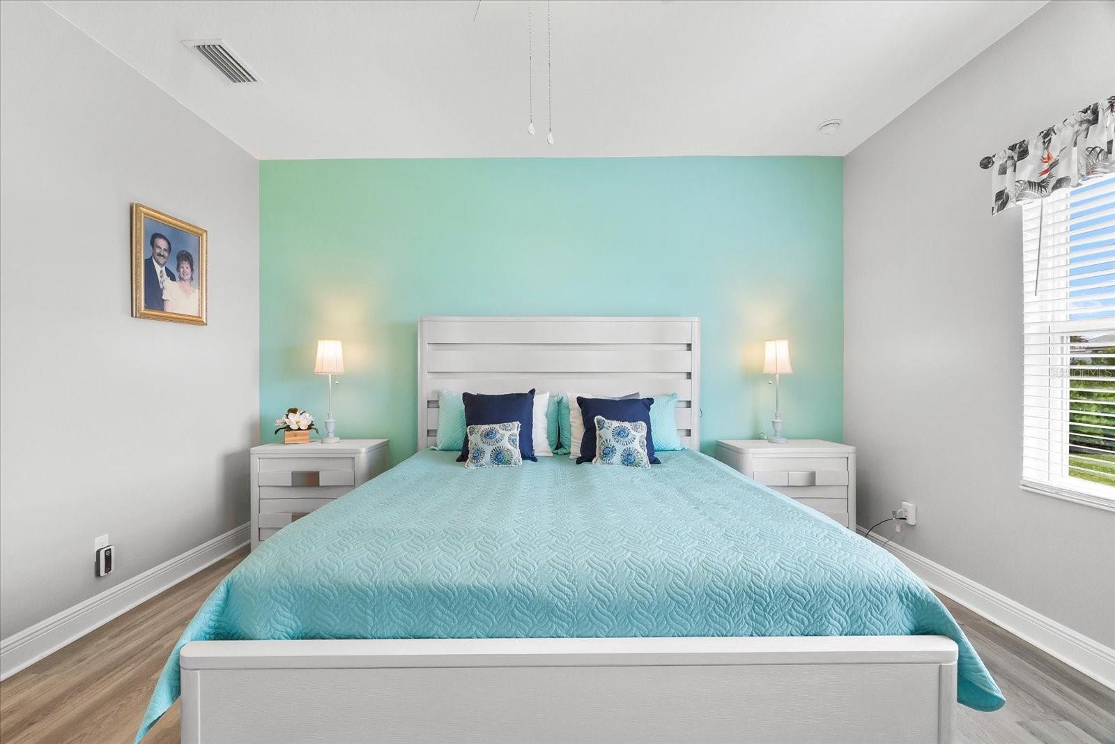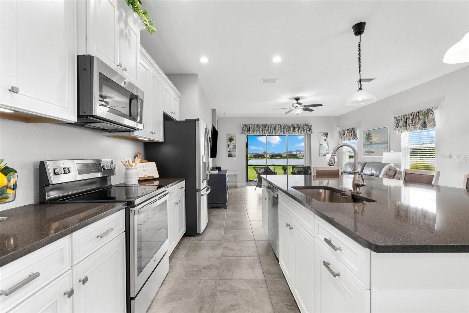Great curb appeal greets you with manicured landscaping and a front porch with beautiful stone pavers. This Radiance model home features 2-bedroom, 2-bathroom a seamless open floor plan with 17” tile floors, high ceilings, and a flex room that can be used as an office or den. Enjoy serene pond views from the living area, primary bedroom, and the screened lanai, which has been updated with stone pavers and privacy shades. The gourmet kitchen has stainless steel appliances, quartz countertops, and crown-molded wood cabinetry. The primary suite offers his and her walk-in closets, updated laminate flooring, and an en suite bathroom with dual vanity sinks, walk-in shower and quartz countertops. This home is designed for efficiency and comfort, featuring a UV light system in the AC system to kill bacteria and inhibit odors, wood blinds, double-pane windows, a 2-car garage with shelving and epoxy floors, additional attic storage, clog-free leaf guard gutters, a whole house water softener, hurricane shutters, and a whole house surge protector. Canoe Creek has a full-time Lifestyle Coordinator organizing community events. There is a Lagoon-style pool and Spa, a Clubhouse with a kitchen and Fitness Room, Dog Park, and Pickle Ball Courts and Picnic Shelter with Grills. Canoe Creek is conveniently located close to Lakewood Ranch, dining, and shopping. NO CDD and LOW HOA FEES This meticulously maintained property is a true gem. Don't miss the chance to make this beautiful home yours. Contact us today to schedule a private tour!