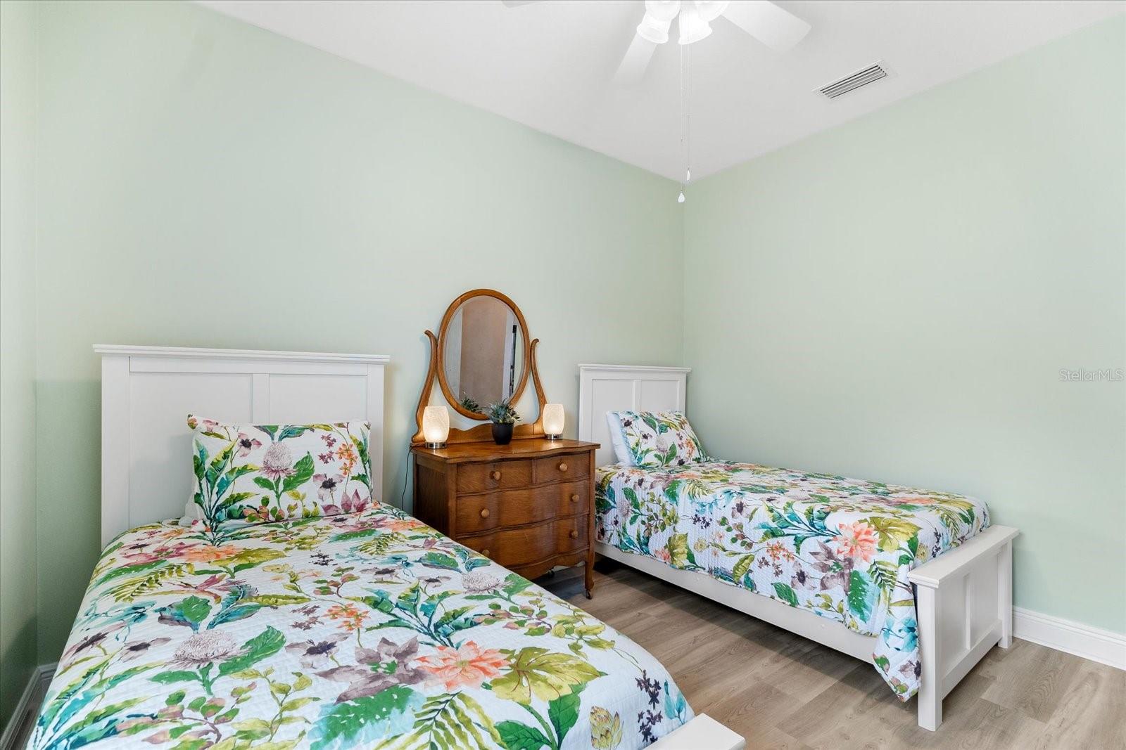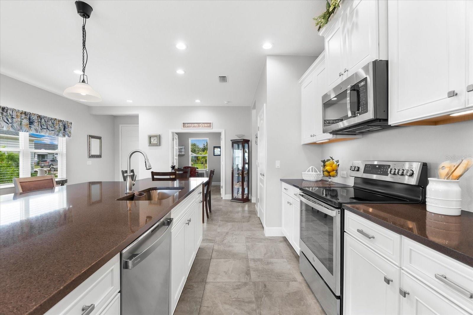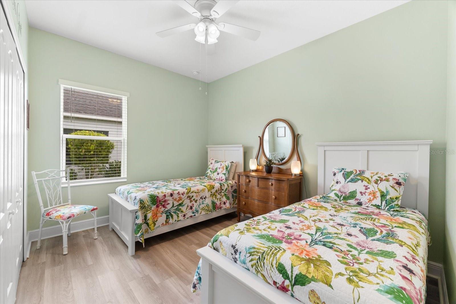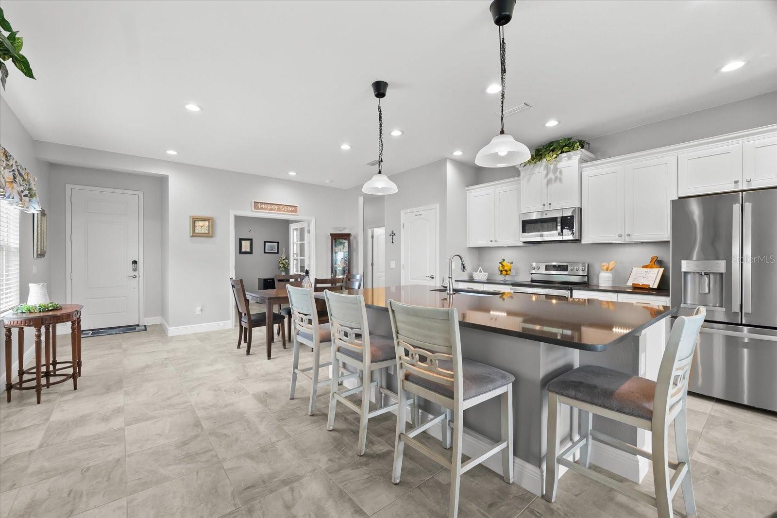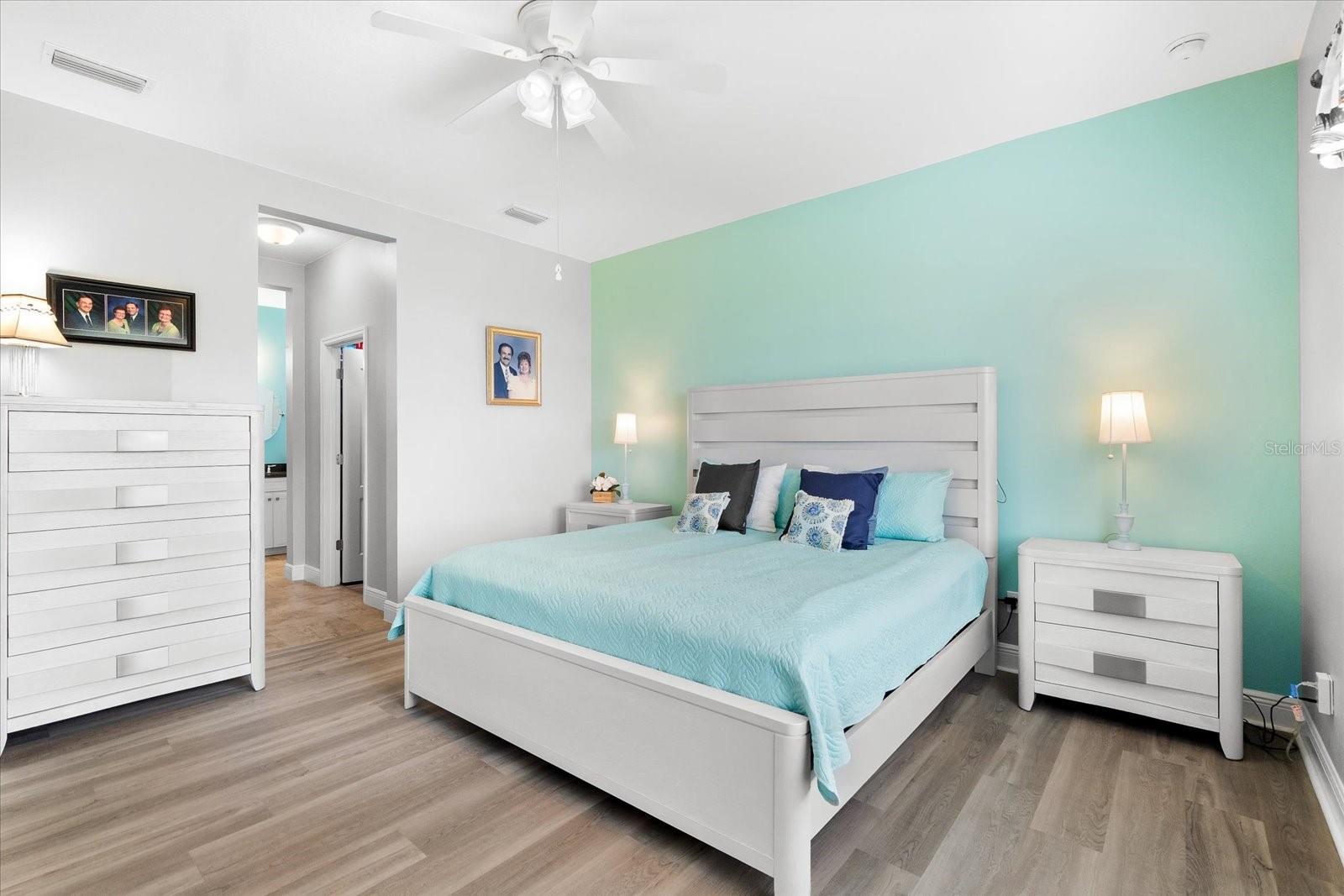 Great curb appeal greets you with manicured landscaping and a front porch with beautiful stone pavers. This Radiance model home features 2-bedroom, 2-bathroom a seamless open floor plan with 17” tile floors, high ceilings, and a flex room that can be used as an office or den. Enjoy serene pond views from the living area, primary bedroom, and the screened lanai, which has been updated with stone pavers and privacy shades. The gourmet kitchen has stainless steel appliances, quartz countertops, and crown-molded wood cabinetry. The primary suite offers his and her walk-in closets, updated laminate flooring, and an en suite bathroom with dual vanity sinks, walk-in shower and quartz countertops. This home is designed for efficiency and comfort, featuring a UV light system in the AC system to kill bacteria and inhibit odors, wood blinds, double-pane windows, a 2-car garage with shelving and epoxy floors, additional attic storage, clog-free leaf guard gutters, a whole house water softener, hurricane shutters, and a whole house surge protector. Canoe Creek has a full-time Lifestyle Coordinator organizing community events. There is a Lagoon-style pool and Spa, a Clubhouse with a kitchen and Fitness Room, Dog Park, and Pickle Ball Courts and Picnic Shelter with Grills. Canoe Creek is conveniently located close to Lakewood Ranch, dining, and shopping. NO CDD and LOW HOA FEES This meticulously maintained property is a true gem. Don't miss the chance to make this beautiful home yours. Contact us today to schedule a private tour!