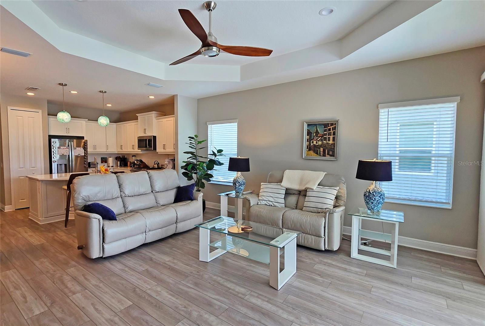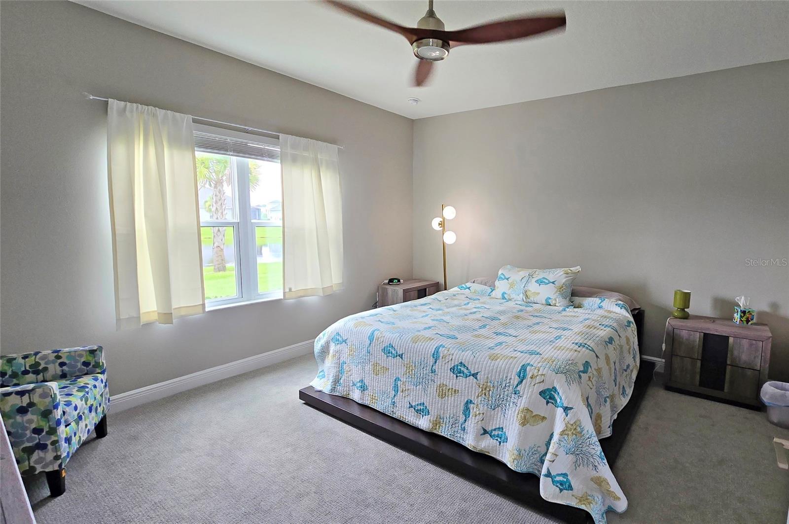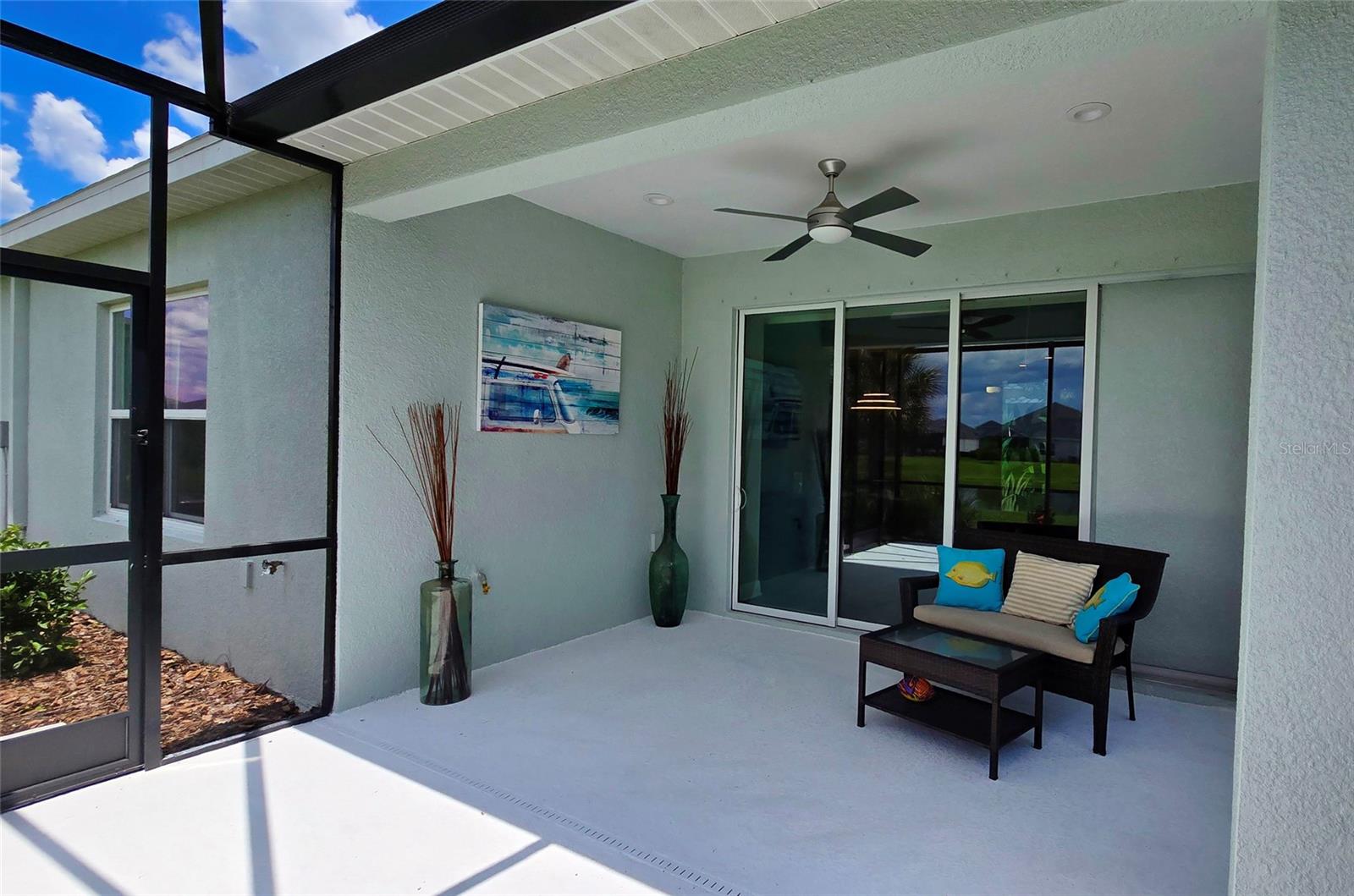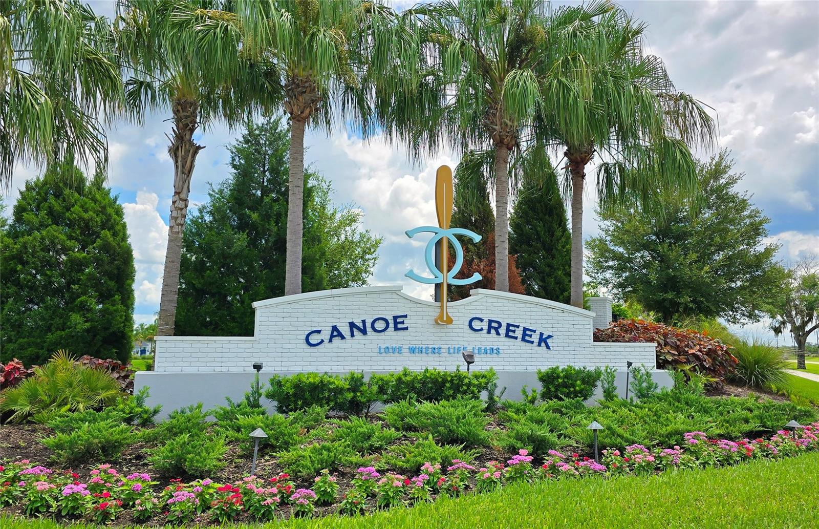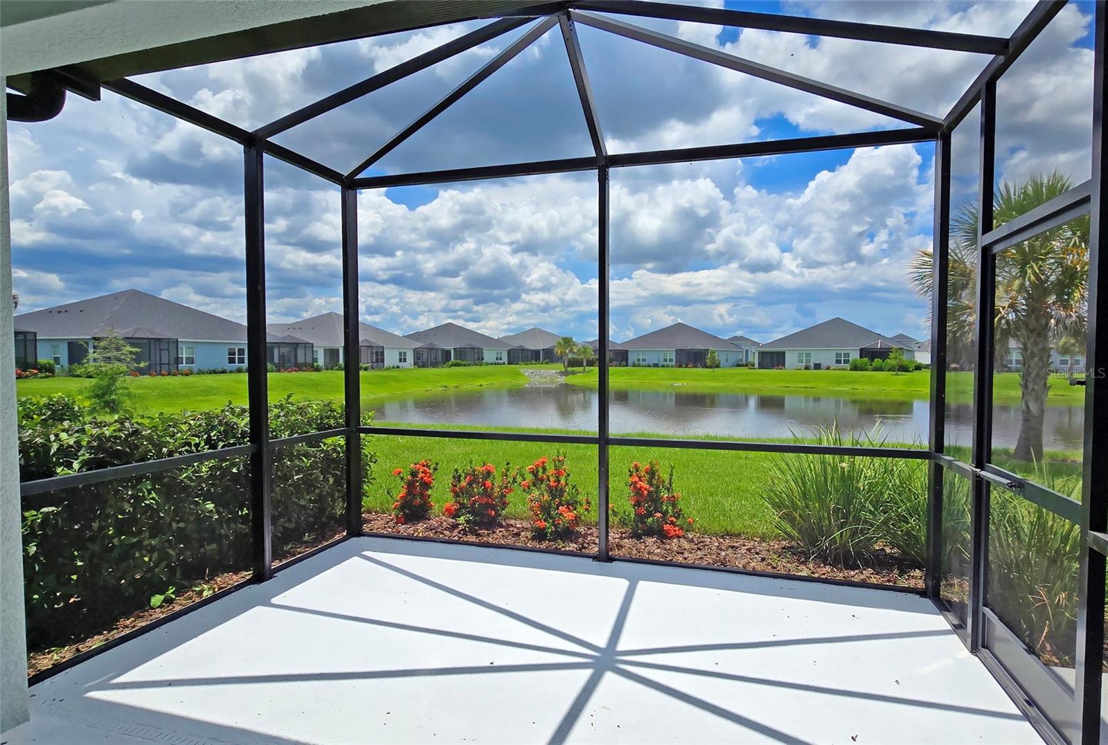 Fantastic newly built 2/2 plus office/den, Tidewater model Villa in Canoe Creek, constructed in 2023 by Neal Communities with plenty of upgrades and community amenities! Tastefully designed, and bright and open to your back lanai and lake view, you will love spending your days in your open kitchen and open living room with family or friends. Soaring ceilings and cabinetry galore, gas gourmet, clean and bright kitchen. Upgraded high ceilings and doorways throughout. Large basin sink upgrade in kitchen. Two plush carpeted, large bedrooms, each with an individual bathroom and plenty of closet space. Primary bathroom including rain shower and double sinks. Plus, an extra room that could be your office/den for setting up your home office or other space. Exit to your oversized lanai to enjoy the outside breeze, Florida sun, and the water. Plus, the attached 2-car garage includes charging for your electric vehicle. Canoe Creek is a deeded community including a sparkling community pool and fitness center. Exterior maintenance included. Bring your golf cart! This home is currently available fully furnished as pictured, but can also be available without. Living room wall-mounted TV included. Seller open to a lease to own option.