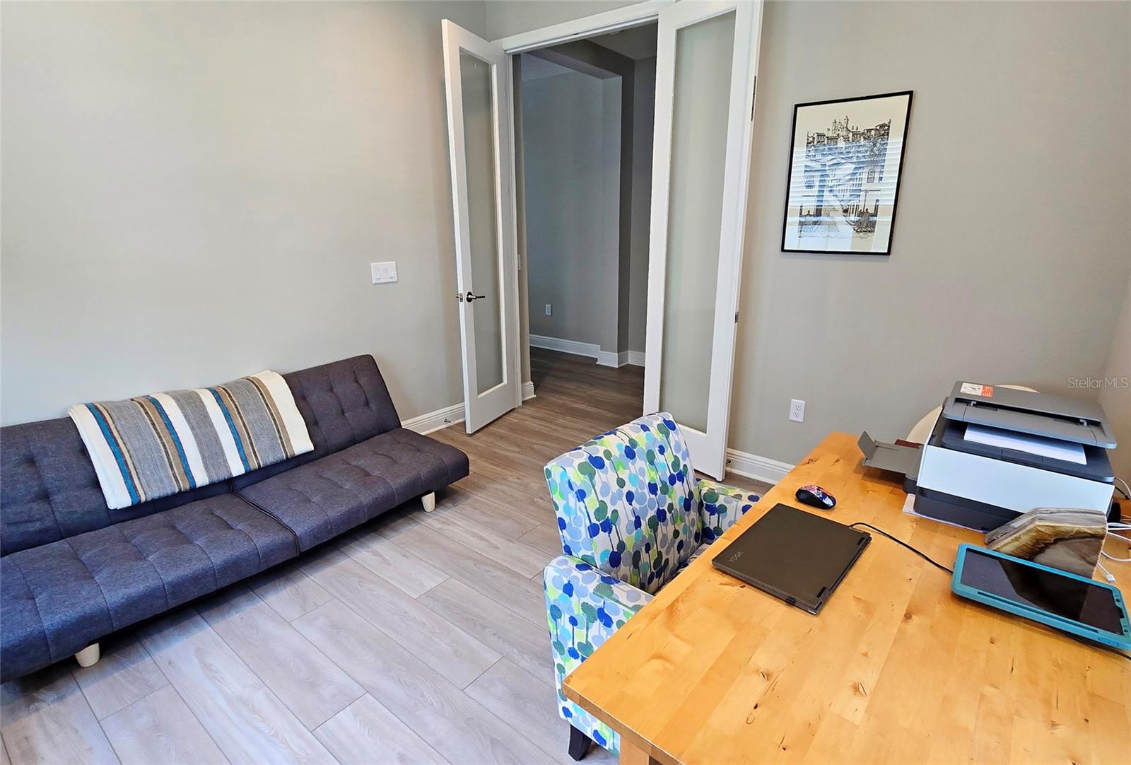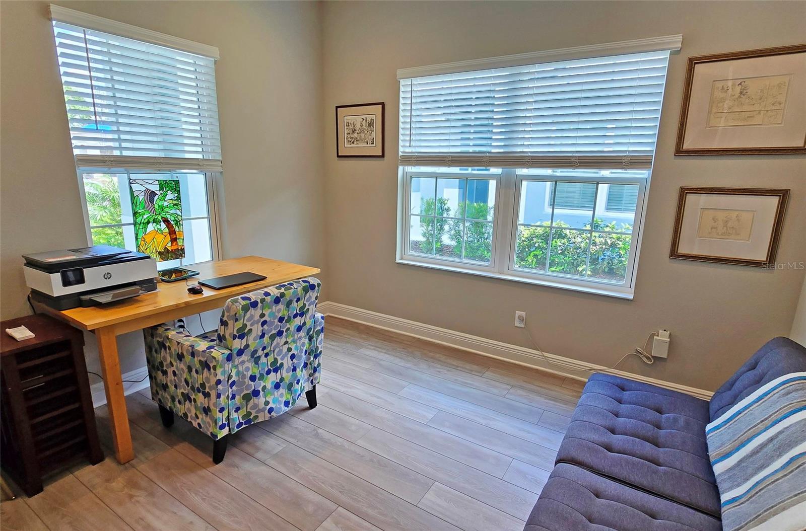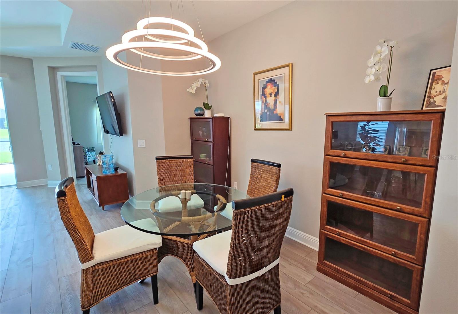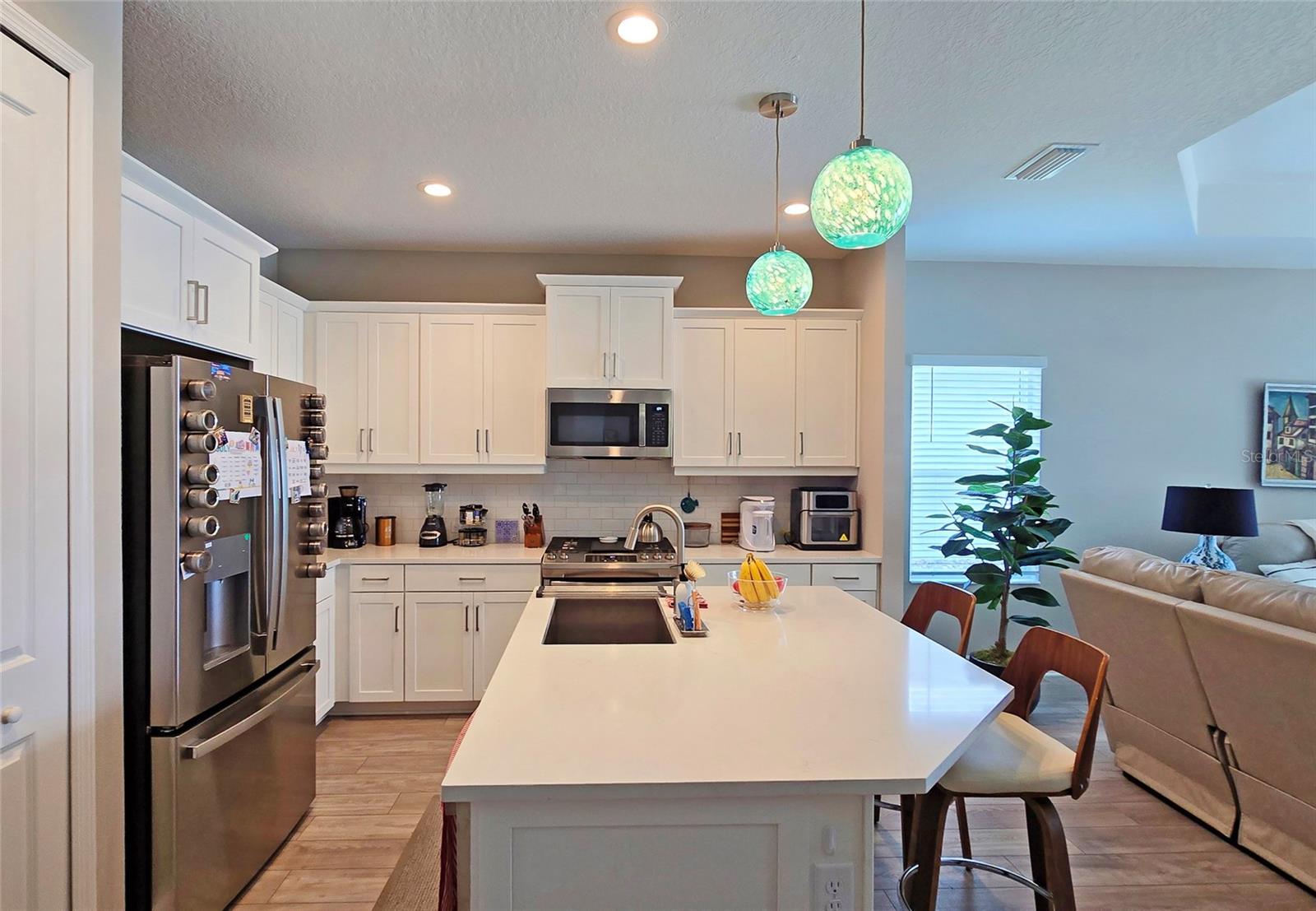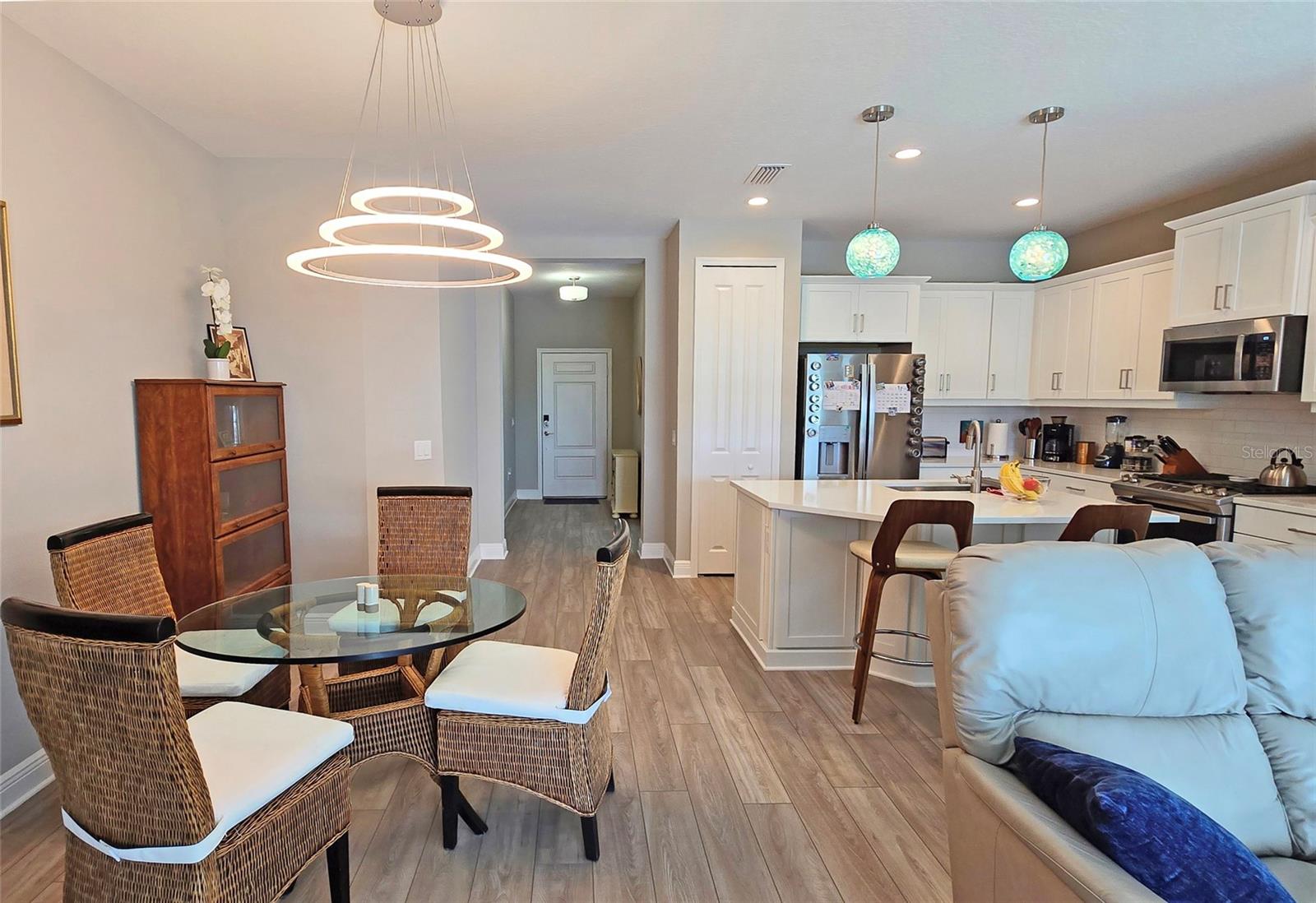 Fantastic newly built 2/2 plus office/den, Tidewater model Villa in Canoe Creek, constructed in 2023 by Neal Communities with plenty of upgrades and community amenities! Tastefully designed, and bright and open to your back lanai and lake view, you will love spending your days in your open kitchen and open living room with family or friends. Soaring ceilings and cabinetry galore, gas gourmet, clean and bright kitchen. Upgraded high ceilings and doorways throughout. Large basin sink upgrade in kitchen. Two plush carpeted, large bedrooms, each with an individual bathroom and plenty of closet space. Primary bathroom including rain shower and double sinks. Plus, an extra room that could be your office/den for setting up your home office or other space. Exit to your oversized lanai to enjoy the outside breeze, Florida sun, and the water. Plus, the attached 2-car garage includes charging for your electric vehicle. Canoe Creek is a deeded community including a sparkling community pool and fitness center. Exterior maintenance included. Bring your golf cart! This home is currently available fully furnished as pictured, but can also be available without. Living room wall-mounted TV included. Seller open to a lease to own option.