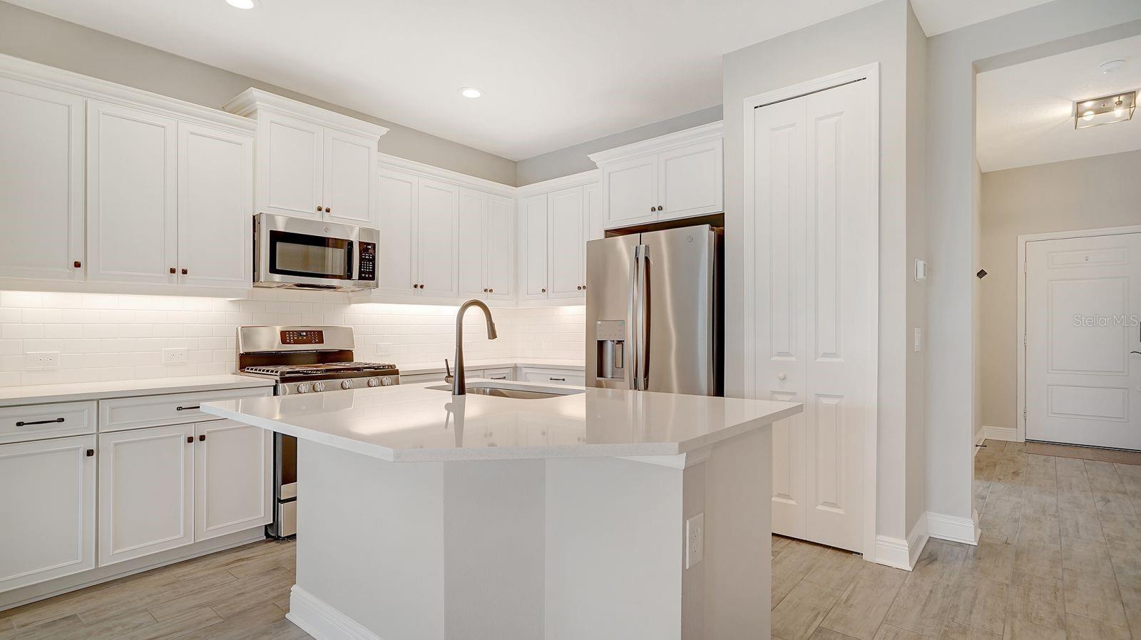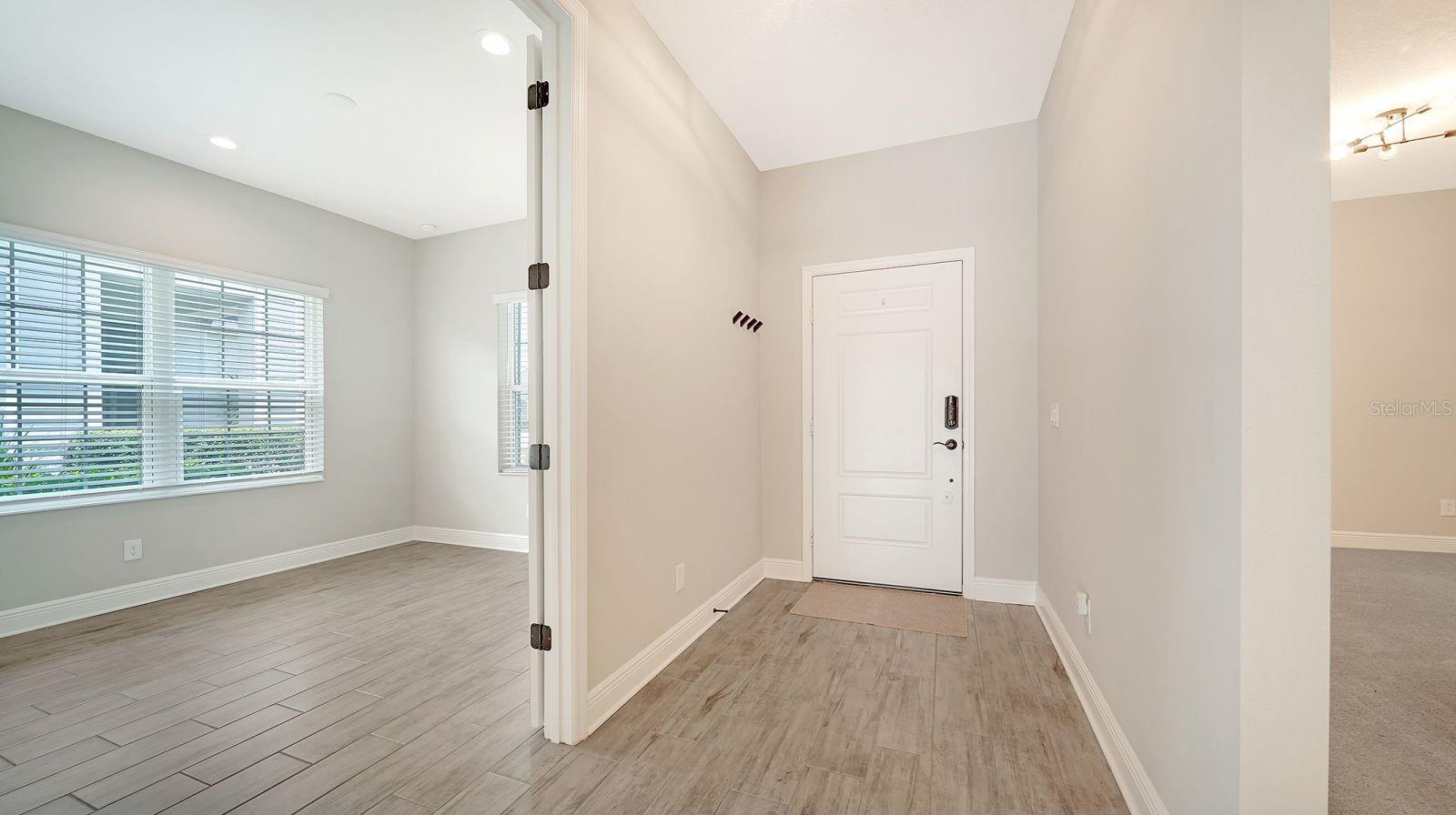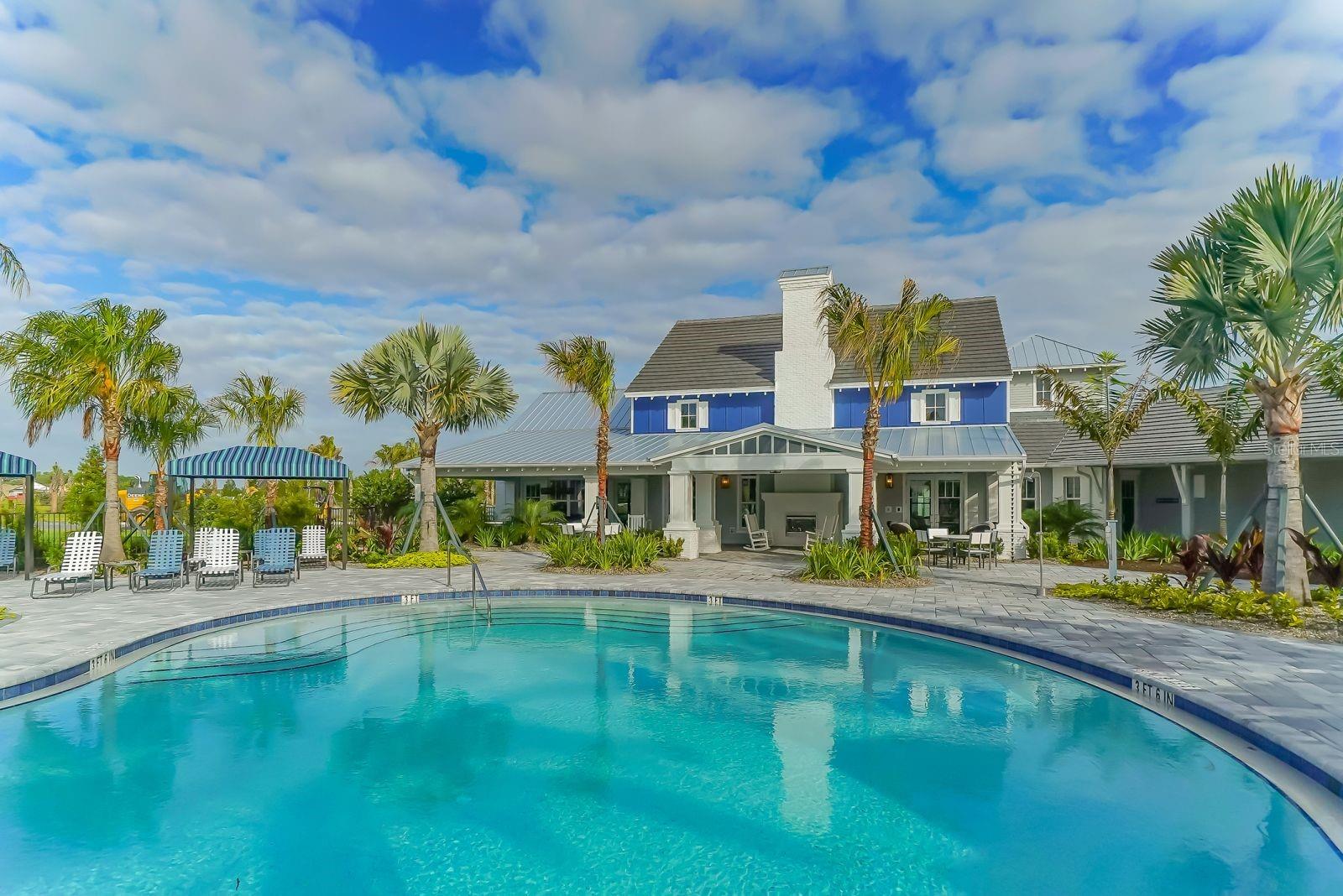 Buy or rent! Come see this beautiful bright villa located on an interior premium lot with views of the community lake. This property has so much to offer: Immaculate like new condition with wood like tile floor throughout main living area and den, 9'4" ceiling heights and 8' tall doors throughout give you a feeling of so much space. The ceiling in the great room is recessed. The property has a very open layout and also very neutral colors that give you the opportunity to decorate to your likings. White quarts countertops compliment the white cabinets, beautiful SS appliances and black bronze fixture. The tilework is beautiful in both bathrooms with mosaic floor in the shower and diamond tiles in the guest bathroom. The landscaping is fresh but maturing. The owner's suite offers 2 closets (one is a walk-in), dual separate vanities and beautiful walk-in shower. The second bedroom offers a walk-in closet. The lanai is extended and screened and offers a gas hook-up for your grill, so you never have to worry that you will run out of propane in the middle of cooking. The utility sink in the garage comes in so handy to wash your gardening tools or your small pet. The community is fantastic offering 2 swimming pools, one with outdoor kitchen and grill that is located in the villa section of Canoe Creek (3 buildings away from the property), the other one located in the single family home section of Canoe Creek (across the street), with a resort style pool, hot tub, gym, party room with a kitchen, fire pit, pickle ball courts, dog park, and a full time event coordinator for the community. The HOA covers all exterior maintenance, lawn mowing and all the amenities. Don't wait! Make this one yours today! Hurricane shutters are included. Located few min away from Lakewood Ranch, 45 min away from St Pete, Tampa and 25 min from Sarasota. Listing agent is related to the seller.