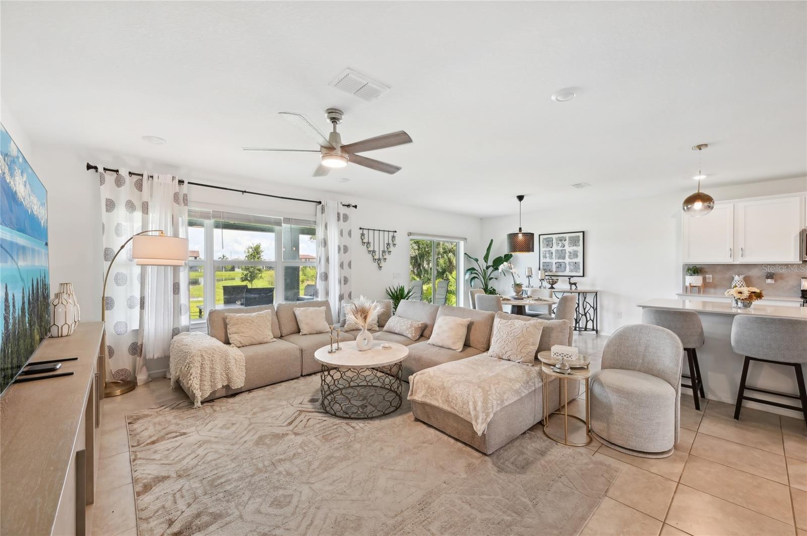Welcome to 11531 Moonsail Drive, a modern-coastal and spacious 4-bedroom, 2.5-bathroom home and a Den. This stunning residence has a generous 2,860 square feet of living space. Step inside and discover a home designed for comfort and convenience. The open floor plan creates a seamless flow between the living areas, perfect for entertaining or simply relaxing with loved ones. The kitchen is a chef's dream, featuring sleek appliances and plenty of counter space for meal preparation while being able to enjoy the beautiful waterview and nature. The primary bedroom is a true retreat, offering a private oasis with an en-suite bathroom for added luxury. With three additional bedrooms and den, there's plenty of space for family, guests, or a home office. The Loft on the second floor provides a separate living space for a game room, play area or a second sanctuary to spend your afternoons relaxing. Enjoy the Florida sunshine in your private outdoor waterview patio space, ideal for morning coffee or evening gatherings. You are only a short walk away from the community pool and dog park for your convenience. Located in a desirable area, this home offers a modern lifestyle with easy access to amenities, dining, and entertainment. Don't miss the opportunity to make this beautiful property your new home sweet home. Schedule your showing today!