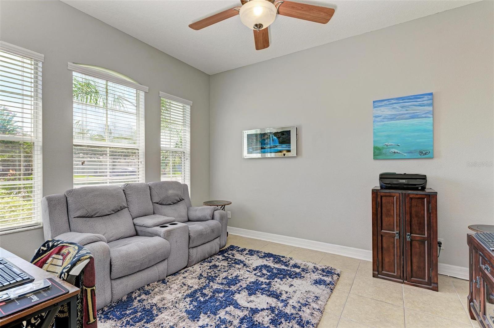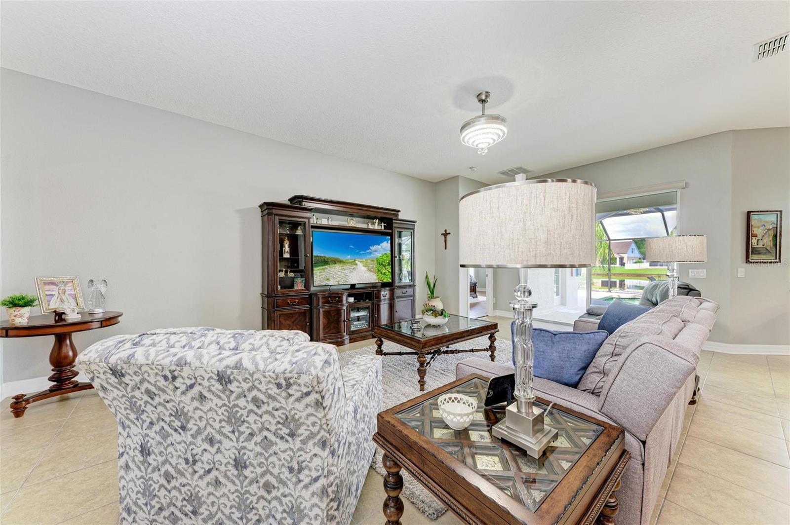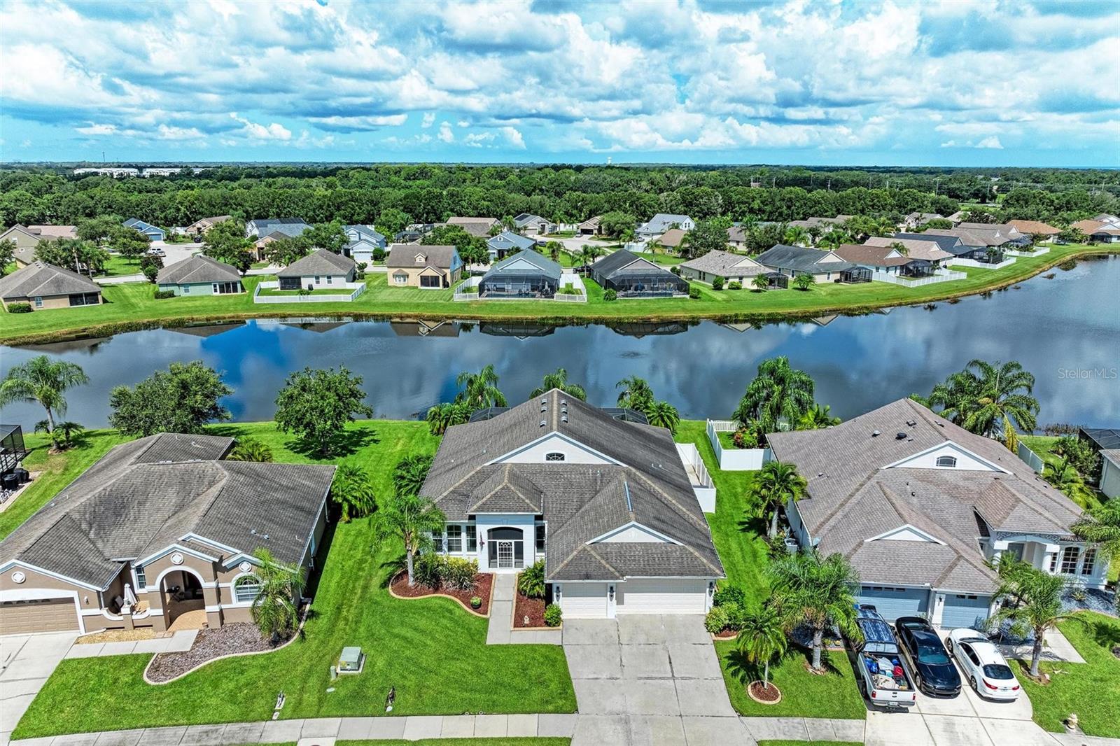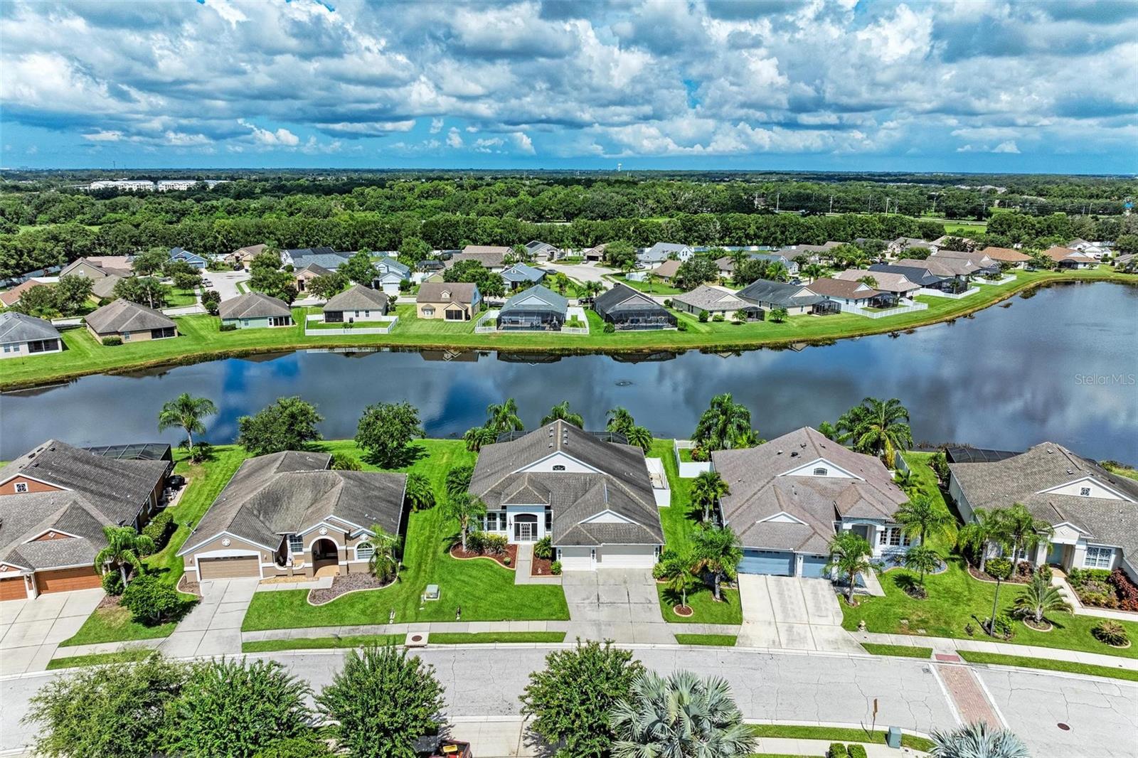 Presenting a stunning new listing in the sought-after Lakeside Preserve community! This immaculate home, just under 2,700 square feet, has 4 spacious bedrooms and 3 bathrooms. The open floor plan features high ceilings, creating a bright and airy atmosphere throughout the large family area, which seamlessly flows into the gourmet kitchen—perfect for entertaining. A formal dining room and an office/study offer versatile spaces for dining and work. The home is designed with ample storage, including an air-conditioned three-car garage with epoxy floors and a spacious floored attic. Modern conveniences abound, with a tankless water heater and an upgraded, beautifully appointed master bath. All tile floors throughout the house ensure easy maintenance, as there's no carpet. The west-facing saltwater heated pool offers gorgeous sunset views over one of the community's five lakes, providing a serene and picturesque setting. Enjoy the benefits of no CDD fees and low HOA fees. This home is move-in ready and in pristine condition, giving the impression it has never been lived in. Conveniently located near shopping, restaurants, I-75, and Lakewood Ranch, this home offers both luxury and convenience. Don't miss the opportunity to make it yours!