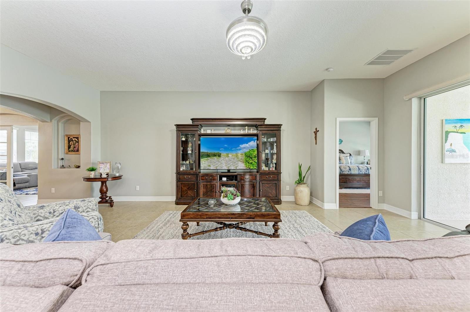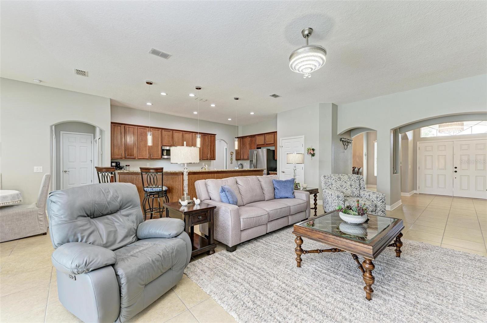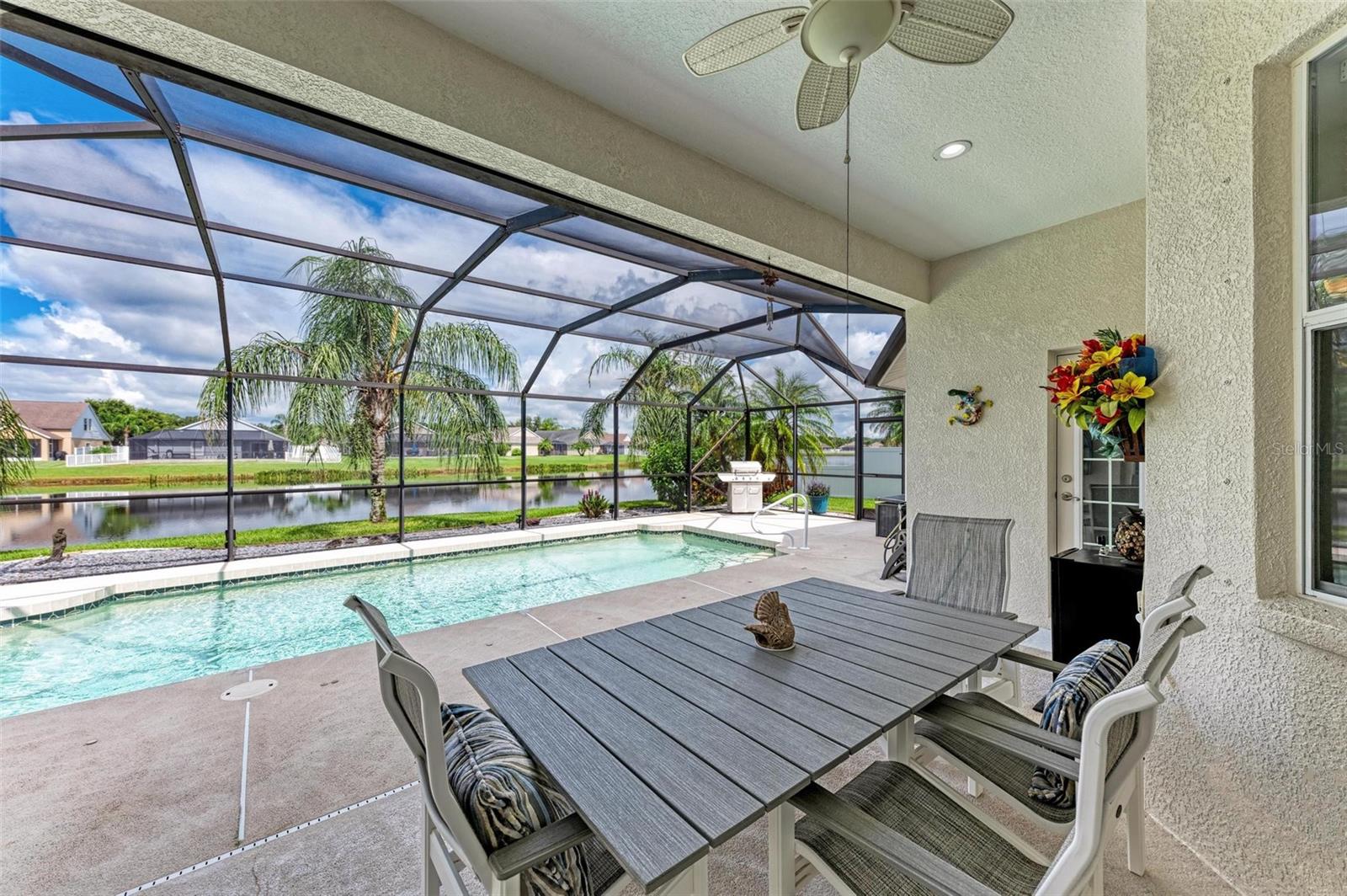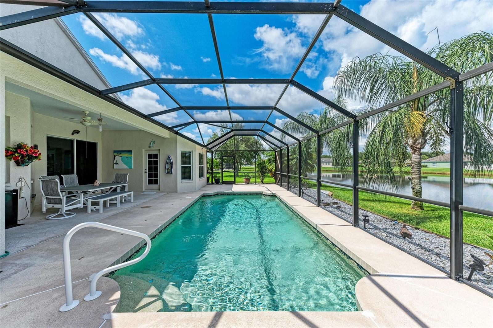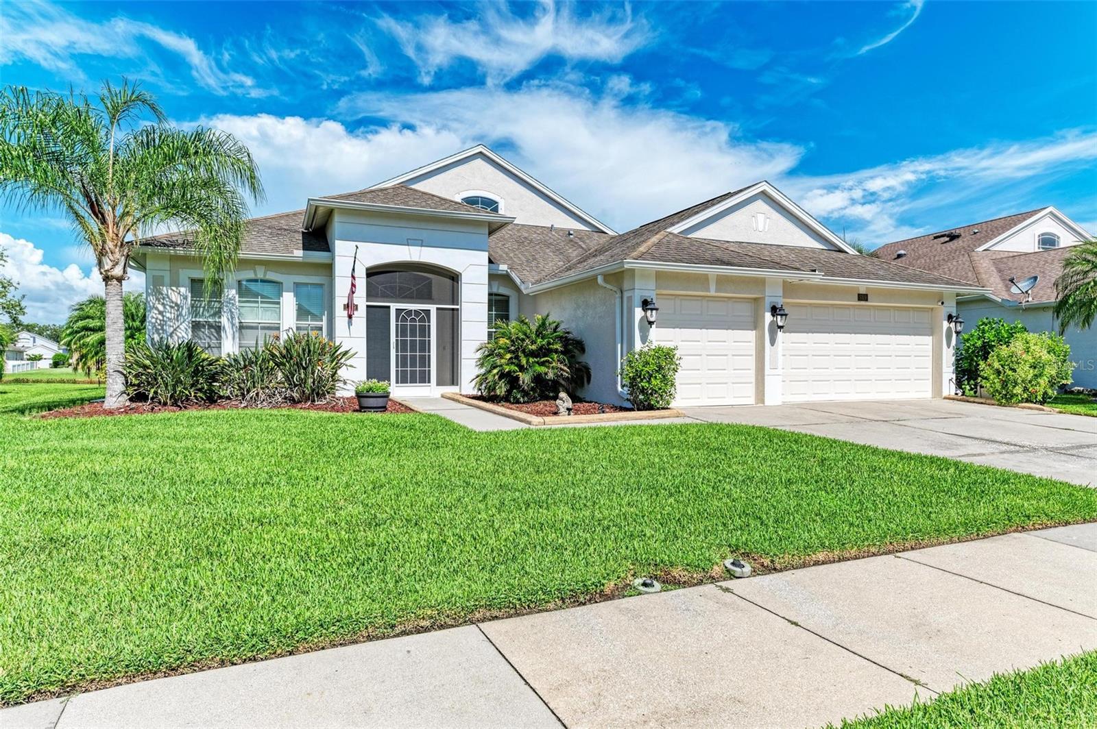 Presenting a stunning new listing in the sought-after Lakeside Preserve community! This immaculate home, just under 2,700 square feet, has 4 spacious bedrooms and 3 bathrooms. The open floor plan features high ceilings, creating a bright and airy atmosphere throughout the large family area, which seamlessly flows into the gourmet kitchen—perfect for entertaining. A formal dining room and an office/study offer versatile spaces for dining and work. The home is designed with ample storage, including an air-conditioned three-car garage with epoxy floors and a spacious floored attic. Modern conveniences abound, with a tankless water heater and an upgraded, beautifully appointed master bath. All tile floors throughout the house ensure easy maintenance, as there's no carpet. The west-facing saltwater heated pool offers gorgeous sunset views over one of the community's five lakes, providing a serene and picturesque setting. Enjoy the benefits of no CDD fees and low HOA fees. This home is move-in ready and in pristine condition, giving the impression it has never been lived in. Conveniently located near shopping, restaurants, I-75, and Lakewood Ranch, this home offers both luxury and convenience. Don't miss the opportunity to make it yours!