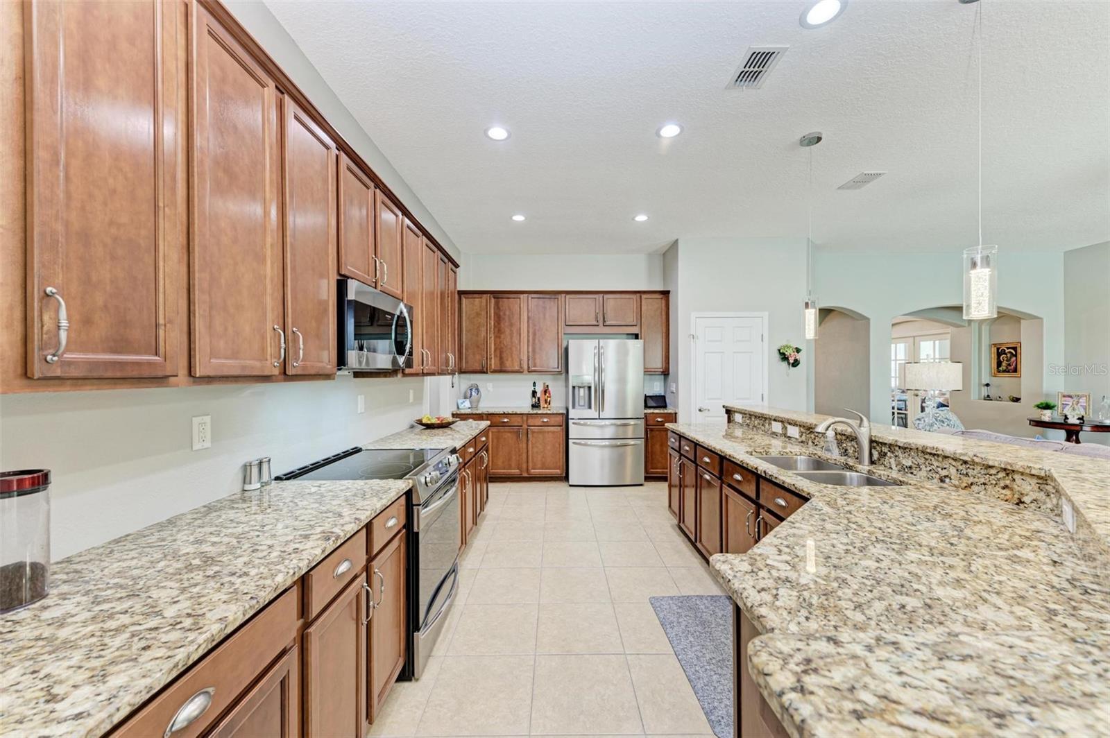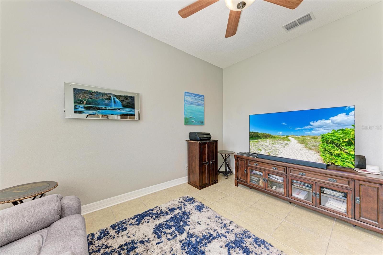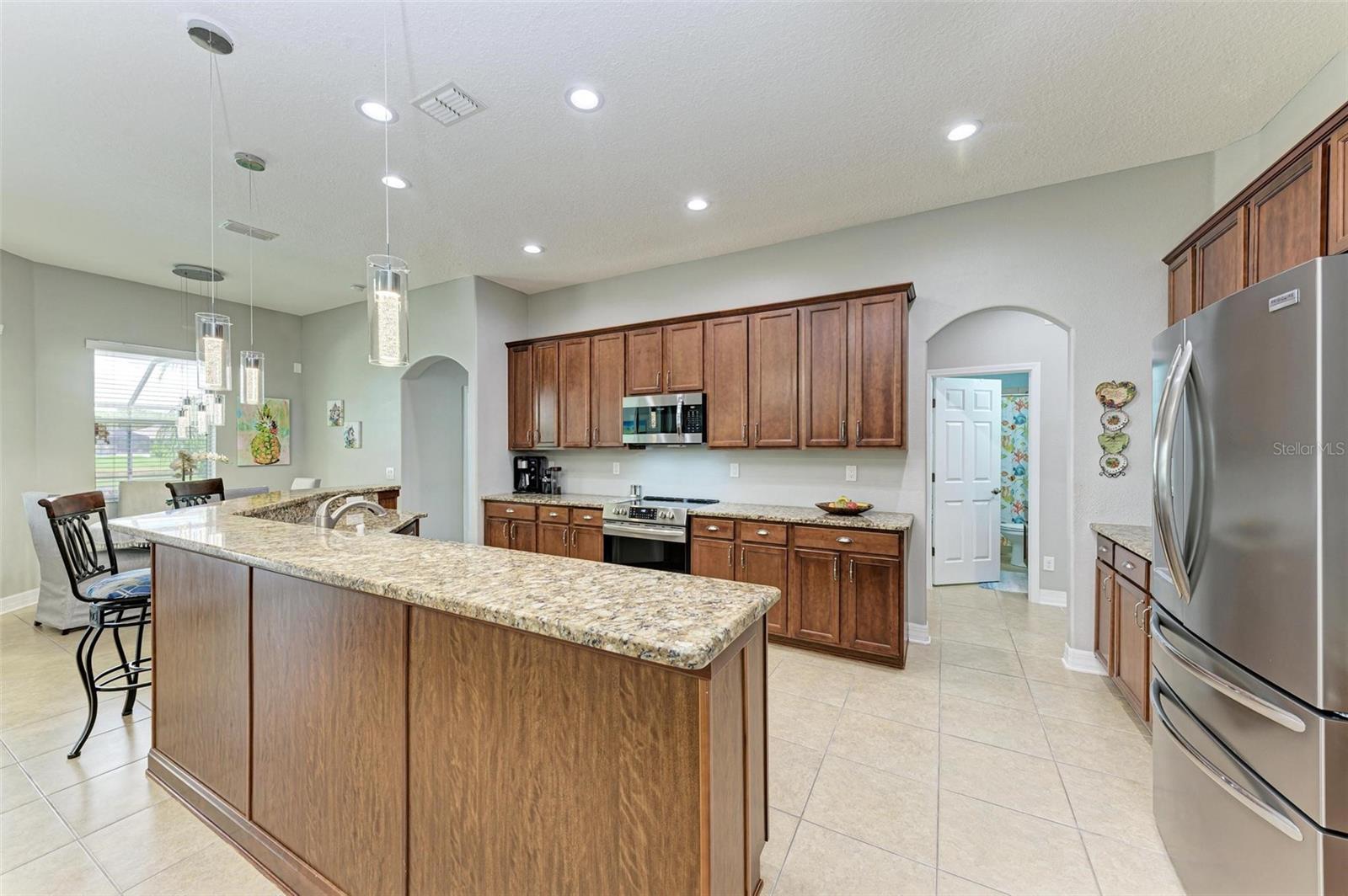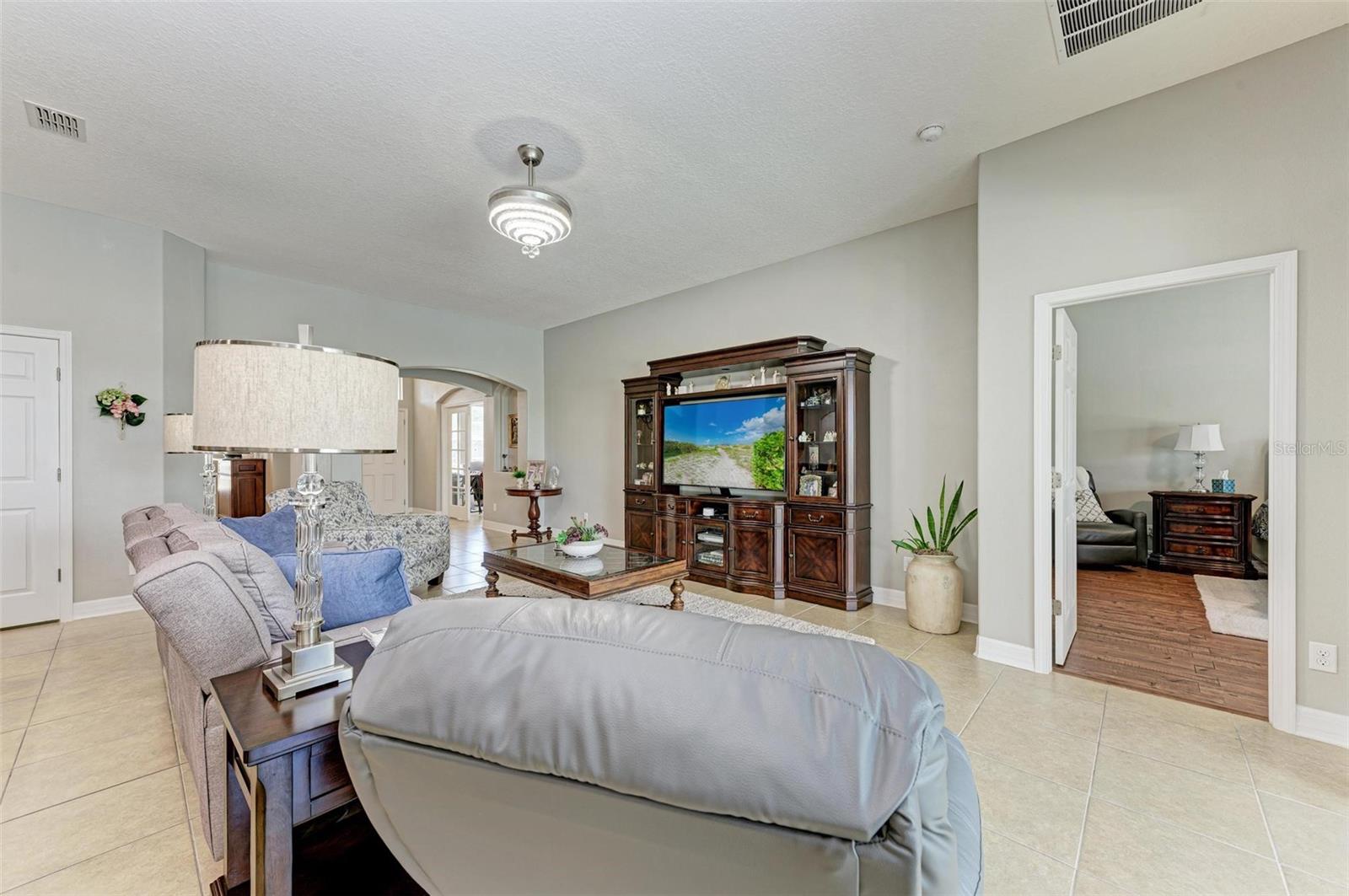 Presenting a stunning new listing in the sought-after Lakeside Preserve community! This immaculate home, just under 2,700 square feet, has 4 spacious bedrooms and 3 bathrooms. The open floor plan features high ceilings, creating a bright and airy atmosphere throughout the large family area, which seamlessly flows into the gourmet kitchen—perfect for entertaining. A formal dining room and an office/study offer versatile spaces for dining and work. The home is designed with ample storage, including an air-conditioned three-car garage with epoxy floors and a spacious floored attic. Modern conveniences abound, with a tankless water heater and an upgraded, beautifully appointed master bath. All tile floors throughout the house ensure easy maintenance, as there's no carpet. The west-facing saltwater heated pool offers gorgeous sunset views over one of the community's five lakes, providing a serene and picturesque setting. Enjoy the benefits of no CDD fees and low HOA fees. This home is move-in ready and in pristine condition, giving the impression it has never been lived in. Conveniently located near shopping, restaurants, I-75, and Lakewood Ranch, this home offers both luxury and convenience. Don't miss the opportunity to make it yours!
