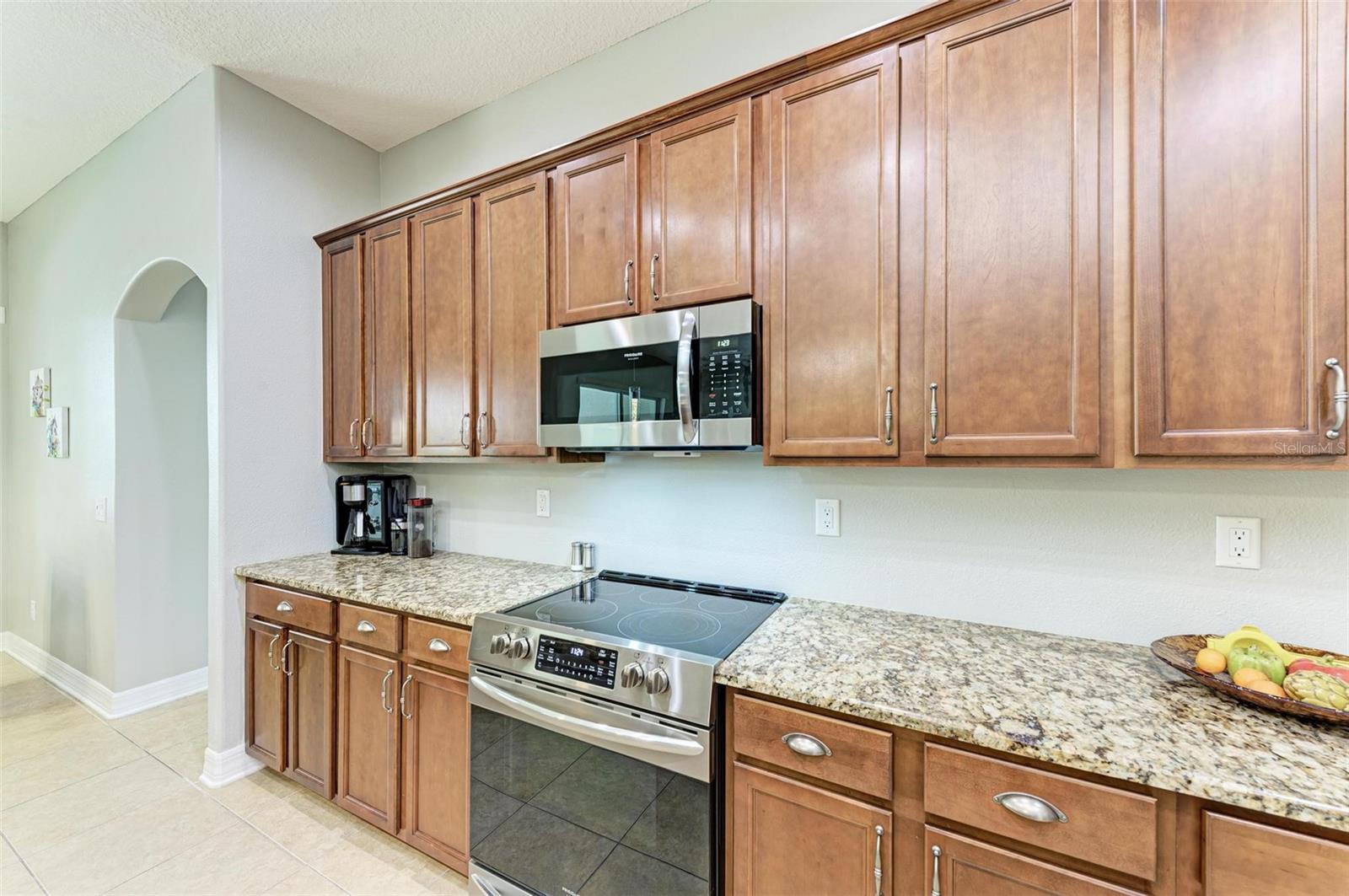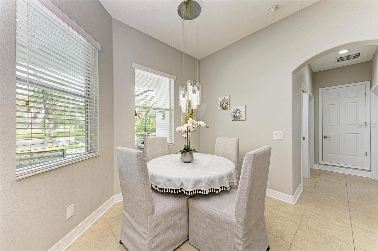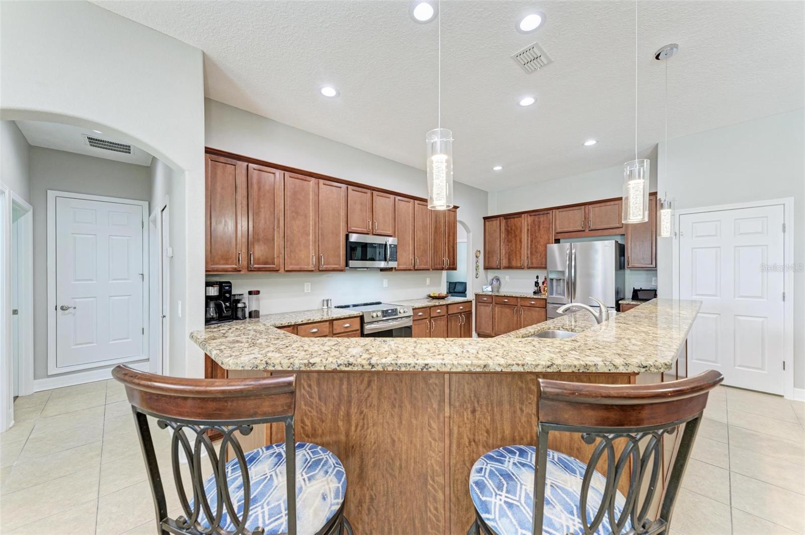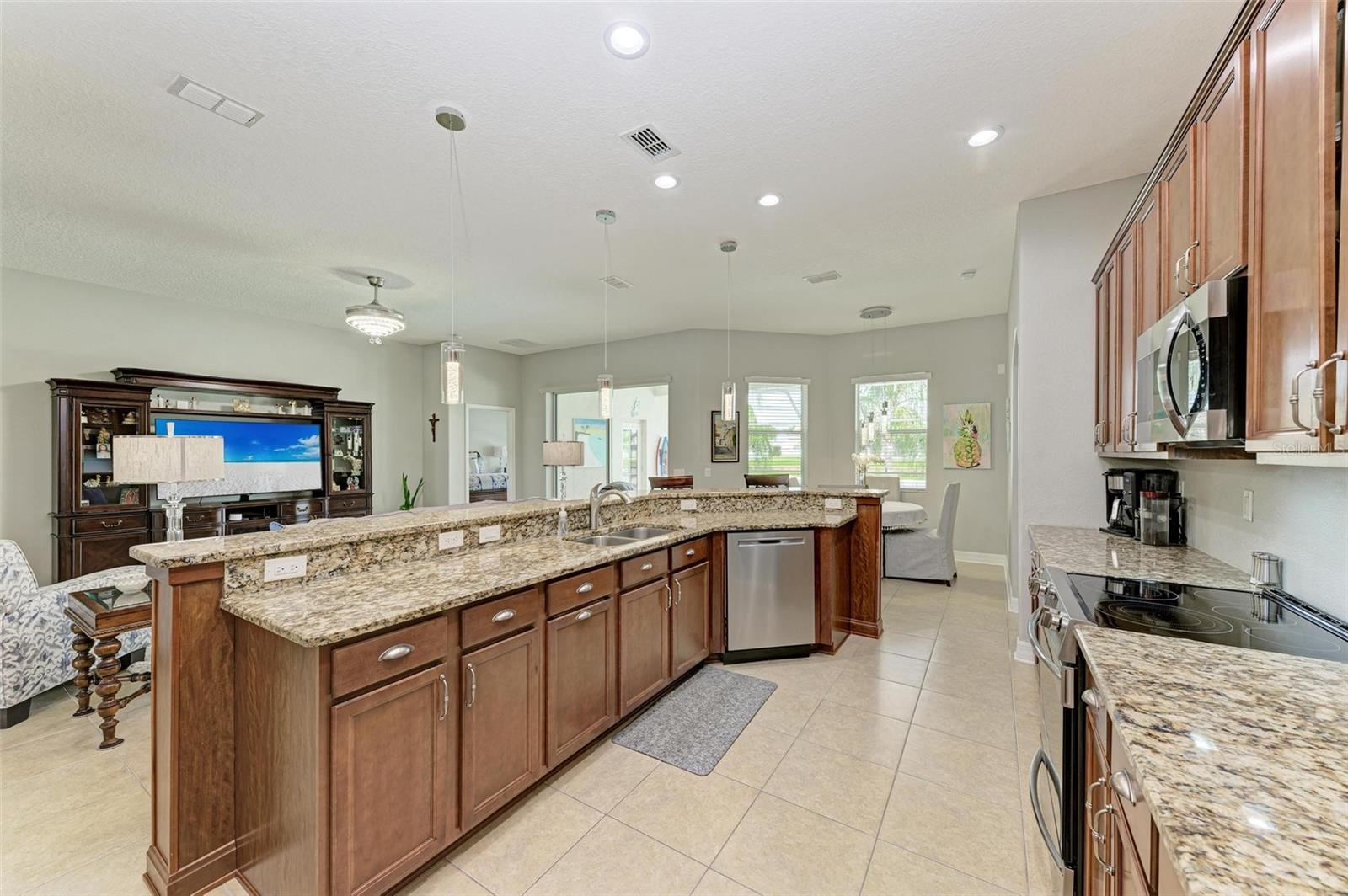 Presenting a stunning new listing in the sought-after Lakeside Preserve community! This immaculate home, just under 2,700 square feet, has 4 spacious bedrooms and 3 bathrooms. The open floor plan features high ceilings, creating a bright and airy atmosphere throughout the large family area, which seamlessly flows into the gourmet kitchen—perfect for entertaining. A formal dining room and an office/study offer versatile spaces for dining and work. The home is designed with ample storage, including an air-conditioned three-car garage with epoxy floors and a spacious floored attic. Modern conveniences abound, with a tankless water heater and an upgraded, beautifully appointed master bath. All tile floors throughout the house ensure easy maintenance, as there's no carpet. The west-facing saltwater heated pool offers gorgeous sunset views over one of the community's five lakes, providing a serene and picturesque setting. Enjoy the benefits of no CDD fees and low HOA fees. This home is move-in ready and in pristine condition, giving the impression it has never been lived in. Conveniently located near shopping, restaurants, I-75, and Lakewood Ranch, this home offers both luxury and convenience. Don't miss the opportunity to make it yours!