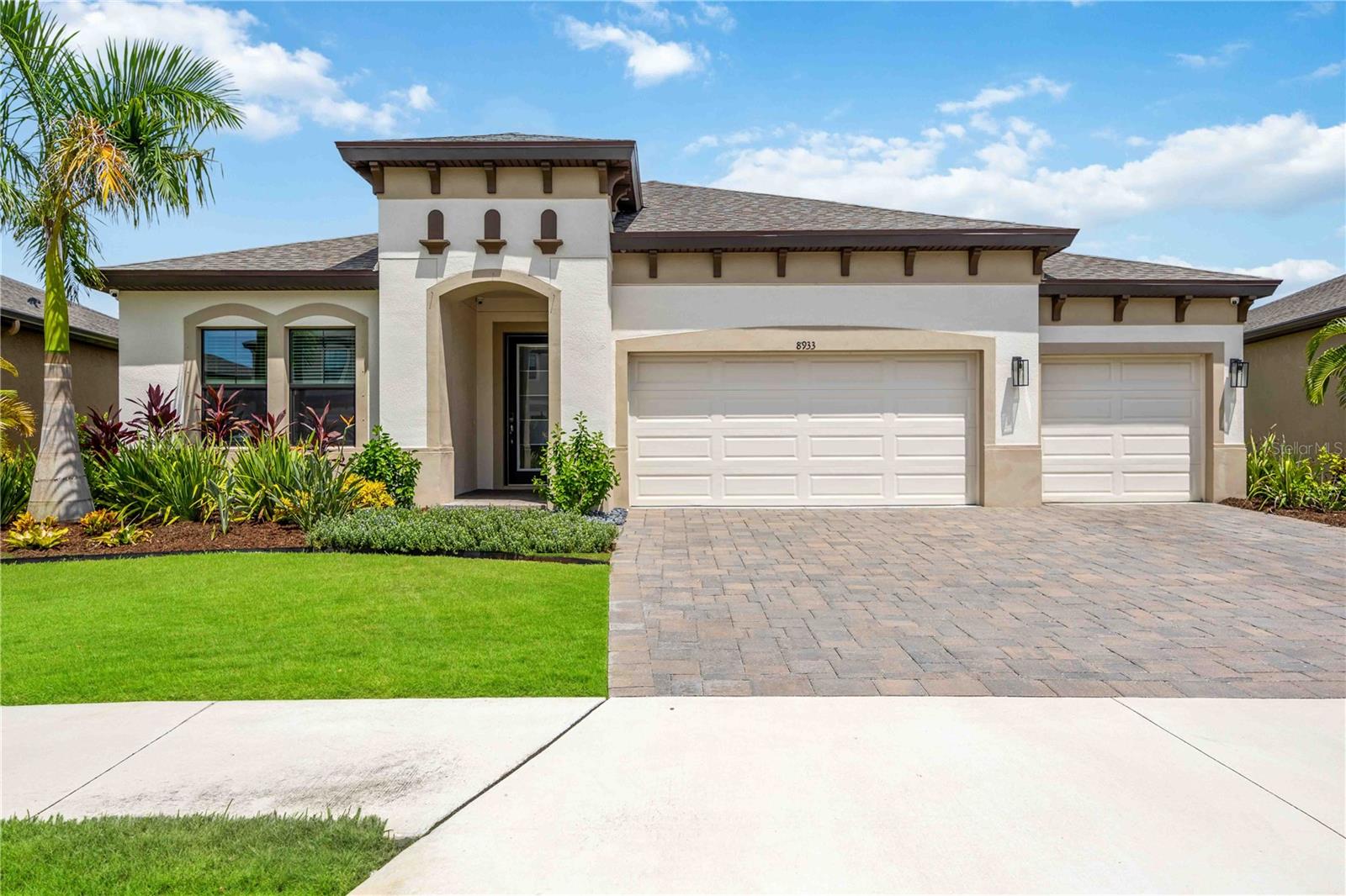 Welcome to an exceptional residence in North River Ranch, where elegance and comfort blend effortlessly. Thoughtfully designed, this home offers four spacious bedrooms, a versatile office or den, three full bathrooms, and a generously sized laundry room. The open-concept layout enhances the sense of space, creating an inviting atmosphere for both daily living and entertaining. The kitchen is a showcase of style and functionality, featuring white cabinetry, quartz countertops, and premium finishes. Designer elements, including a glass front door and shiplap accents, add a touch of character and warmth. The family room exudes both charm and sophistication, with custom built-in shelving, a beautifully finished fireplace, and a large television included with the home. Expansive sliding doors open to an outdoor oasis, where a custom-designed heated pool and infinity spa provide the perfect setting for relaxation. Thoughtfully crafted with multicolored lighting, a sun shelf, a fountain, an umbrella holder, and a pool vacuum, this space is ideal for year-round enjoyment. The screened enclosure extends to match the home’s roofline, offering a seamless indoor-outdoor experience. A modern security system with cameras ensures both comfort and peace of mind. Located in a highly rated school district, this home is near the middle school. The community offers an array of amenities, including a lagoon-style pool, a fitness center, parks, outdoor exercise areas, and miles of scenic trails. Upcoming additions include a pool with water slides, a skate park, and courts for tennis and pickleball. With easy access to major highways, shopping, and some of the most beautiful beaches on the Gulf Coast, this home offers a perfect balance of convenience and resort-style living. An extraordinary opportunity to own a meticulously designed property in one of the area’s most desirable communities.