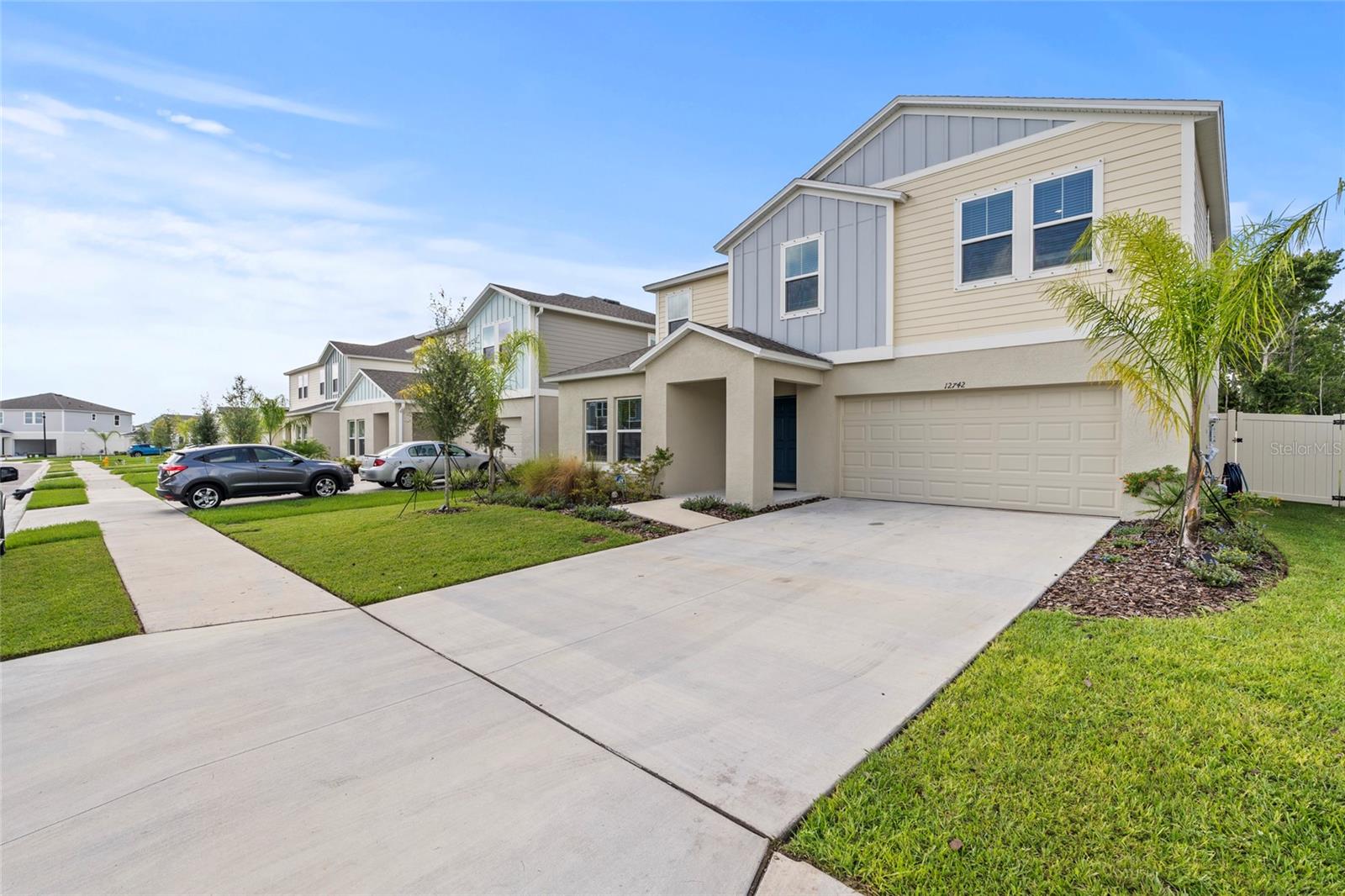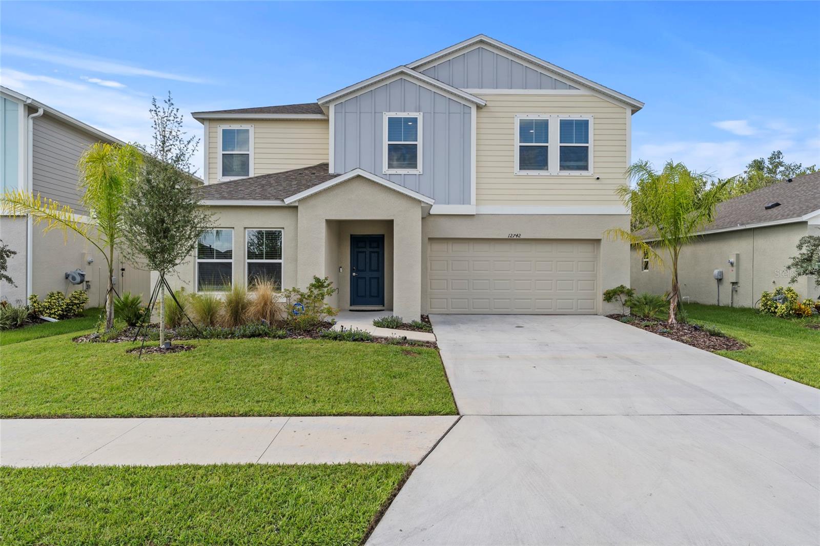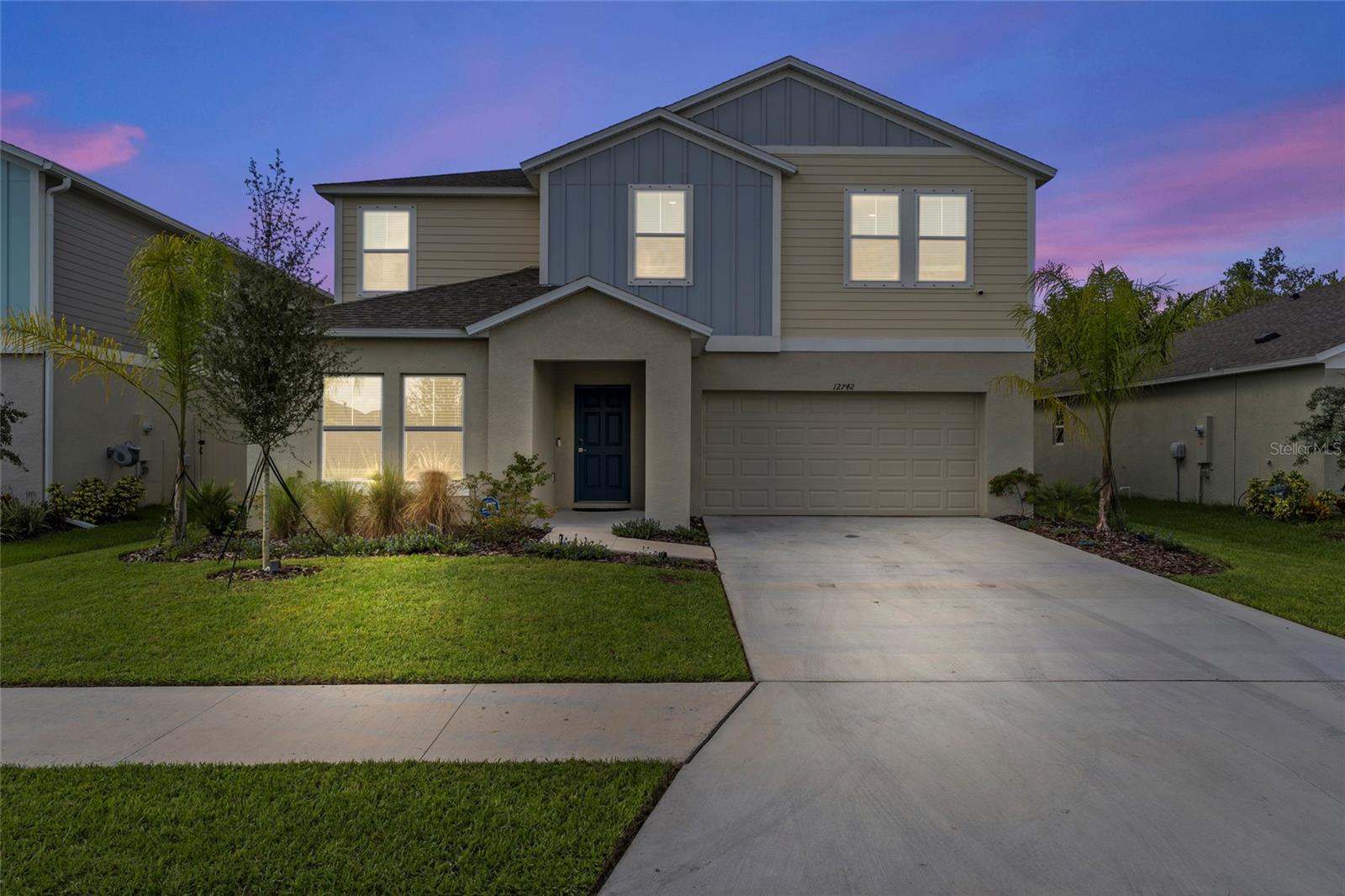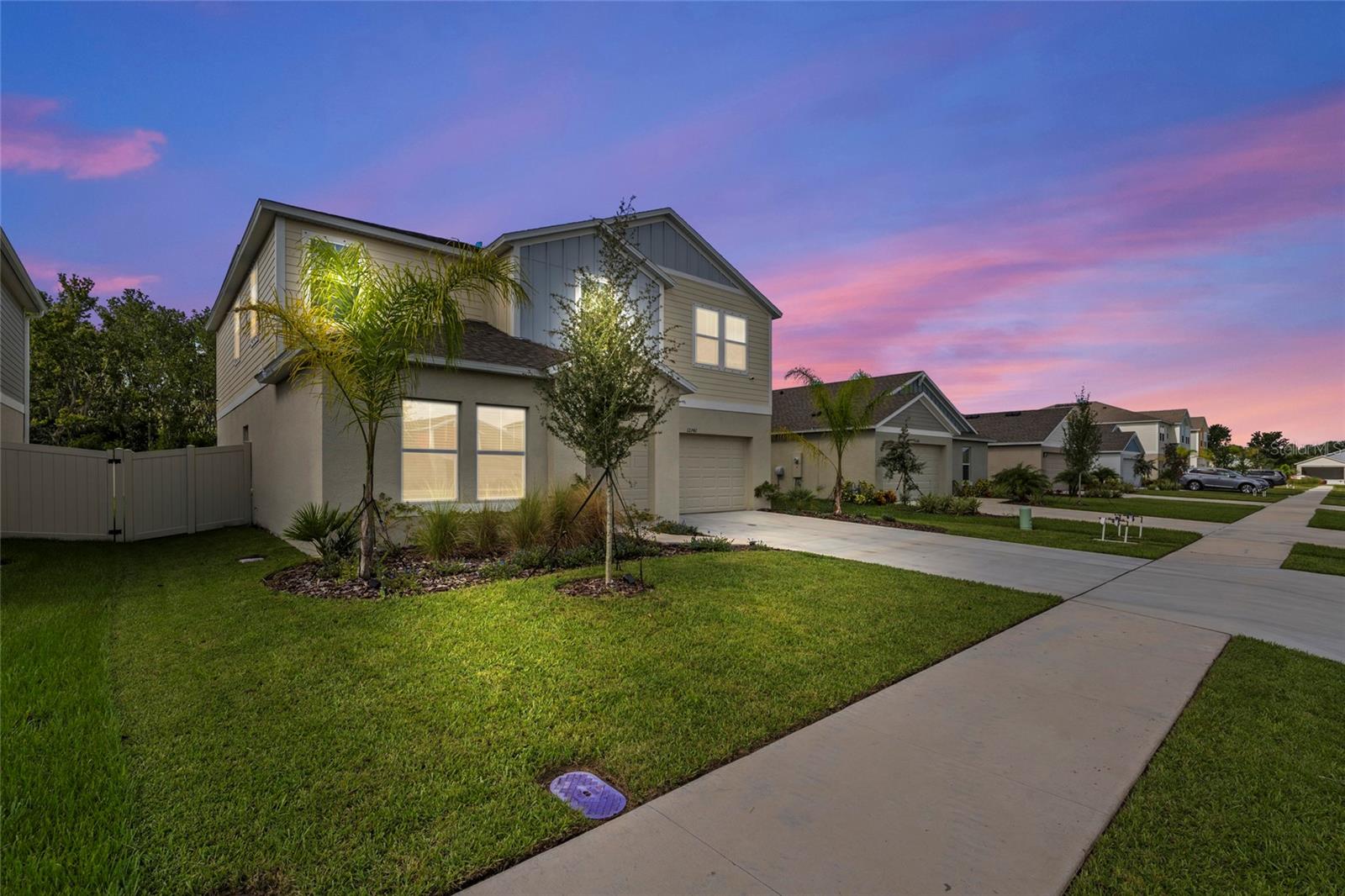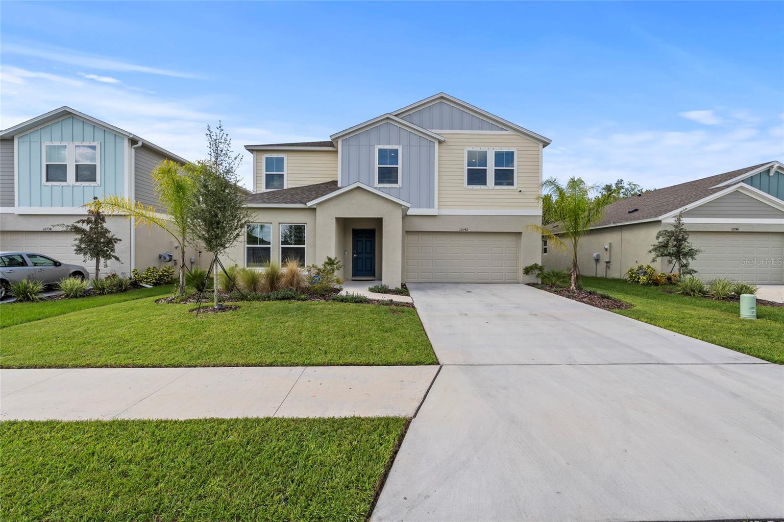 Why wait to build when you can move right into your brand-new home? This gem is situated on an interior road and a private lot that backs to a lush green landscaping. The 2-story home features 5 bedrooms, 3 baths, a Den, a Large Upstairs bonus room, and 2 car garage. The Catalina floor plan offers all the space you need for you and your loved ones. As you enter the home you are greeted by a welcoming foyer that leads to the open-concept living space. This kitchen is a Chef's dream, with wall-to-wall white cabinetry and an oversized kitchen island with a breakfast bar. The 2nd floor greets you with an oversized, recreation space that offers endless possibilities: a game room, an at-home movie theatre, and a home-integrated gym, just to name a few. The home features quartz countertops throughout, and stainless-steel GE appliances, including a Refrigerator. The primary bedroom features an ensuite bathroom with dual sinks, a linen closet, a water closet, and an oversized walk-in closet. The first floor offers a guest bedroom, a full bath, and a spacious den for additional space: make it a home office, a formal dining room, or a playroom just to name a few ideas. The laundry room is conveniently located on the 2nd floor. The home has tons of upgrades as well! They include solar panels which generate more then enough to cover the entire electric bill, Brand new PVC privacy fence, water softener and state of the art security system with cameras. Nothing else to do other then move in!! All of this on a gorgeous preserve lot backing up to 100 year old moss oak trees. Crosswind Point is a resort-style living community featuring resort-style amenities, beautiful water, and wetland views. Conveniently located in the Bradenton-Sarasota area, downtown St. Petersburg, downtown Tampa, and the greater Tampa Bay area.