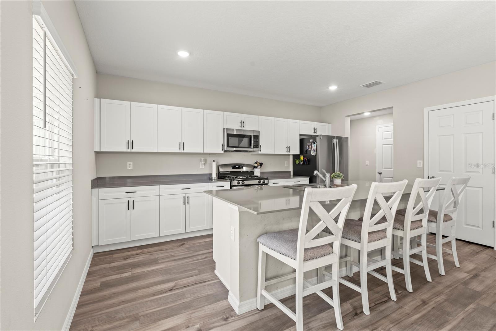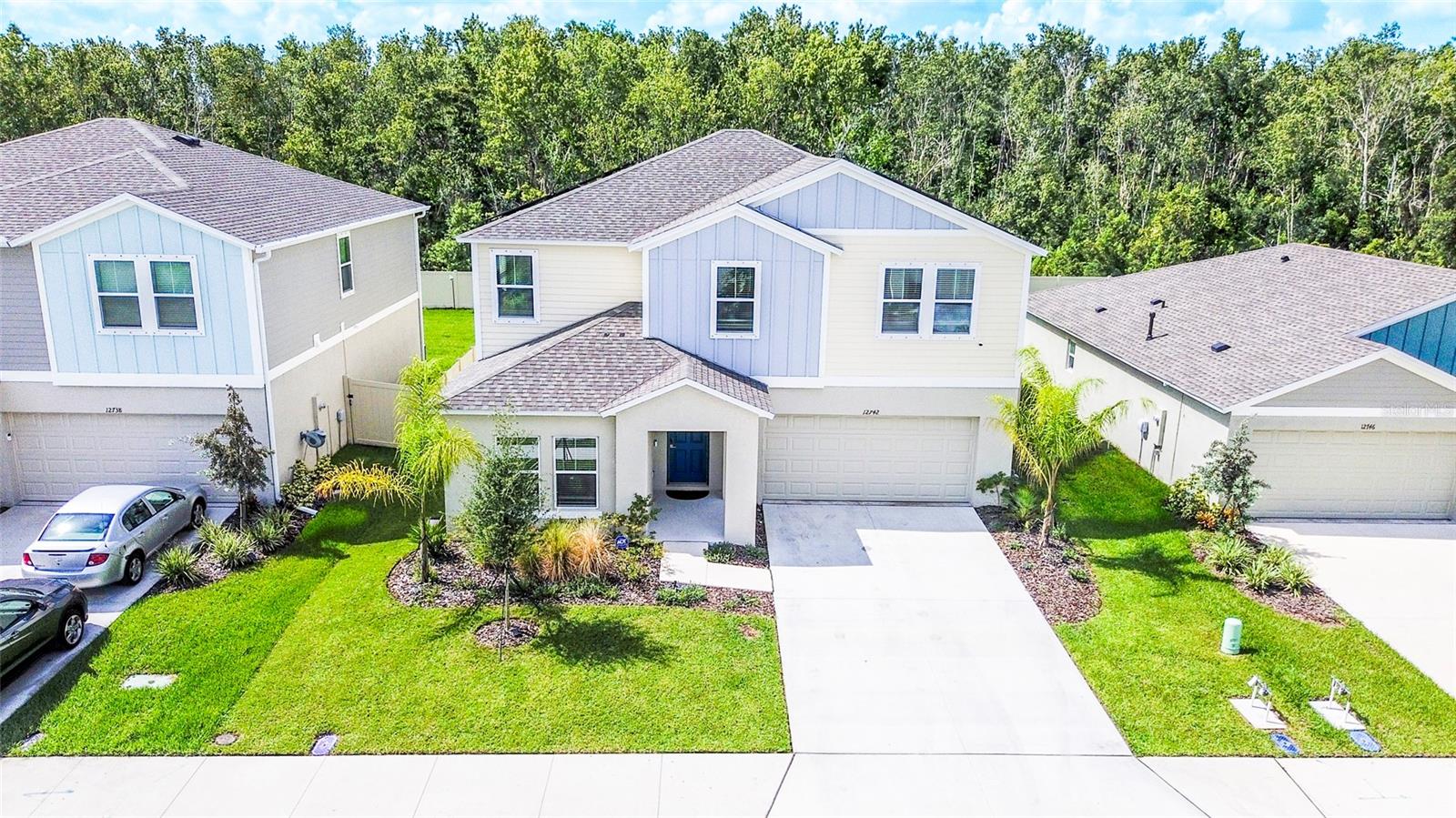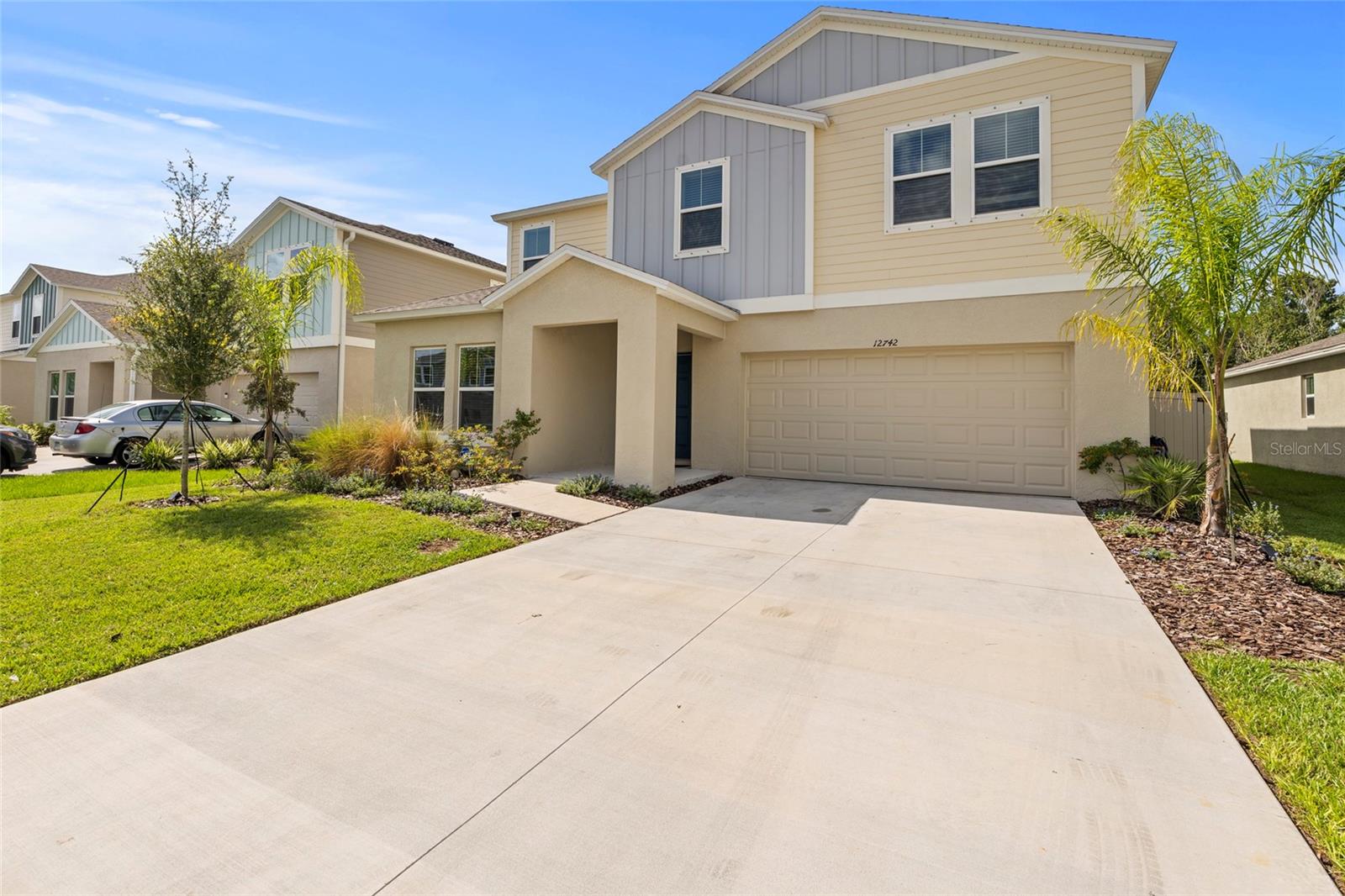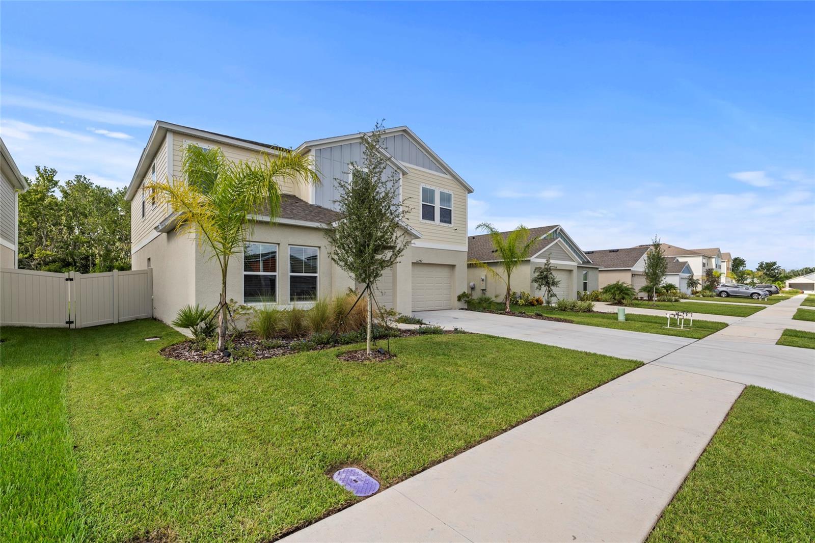 Why wait to build when you can move right into your brand-new home? This gem is situated on an interior road and a private lot that backs to a lush green landscaping. The 2-story home features 5 bedrooms, 3 baths, a Den, a Large Upstairs bonus room, and 2 car garage. The Catalina floor plan offers all the space you need for you and your loved ones. As you enter the home you are greeted by a welcoming foyer that leads to the open-concept living space. This kitchen is a Chef's dream, with wall-to-wall white cabinetry and an oversized kitchen island with a breakfast bar. The 2nd floor greets you with an oversized, recreation space that offers endless possibilities: a game room, an at-home movie theatre, and a home-integrated gym, just to name a few. The home features quartz countertops throughout, and stainless-steel GE appliances, including a Refrigerator. The primary bedroom features an ensuite bathroom with dual sinks, a linen closet, a water closet, and an oversized walk-in closet. The first floor offers a guest bedroom, a full bath, and a spacious den for additional space: make it a home office, a formal dining room, or a playroom just to name a few ideas. The laundry room is conveniently located on the 2nd floor. The home has tons of upgrades as well! They include solar panels which generate more then enough to cover the entire electric bill, Brand new PVC privacy fence, water softener and state of the art security system with cameras. Nothing else to do other then move in!! All of this on a gorgeous preserve lot backing up to 100 year old moss oak trees. Crosswind Point is a resort-style living community featuring resort-style amenities, beautiful water, and wetland views. Conveniently located in the Bradenton-Sarasota area, downtown St. Petersburg, downtown Tampa, and the greater Tampa Bay area.