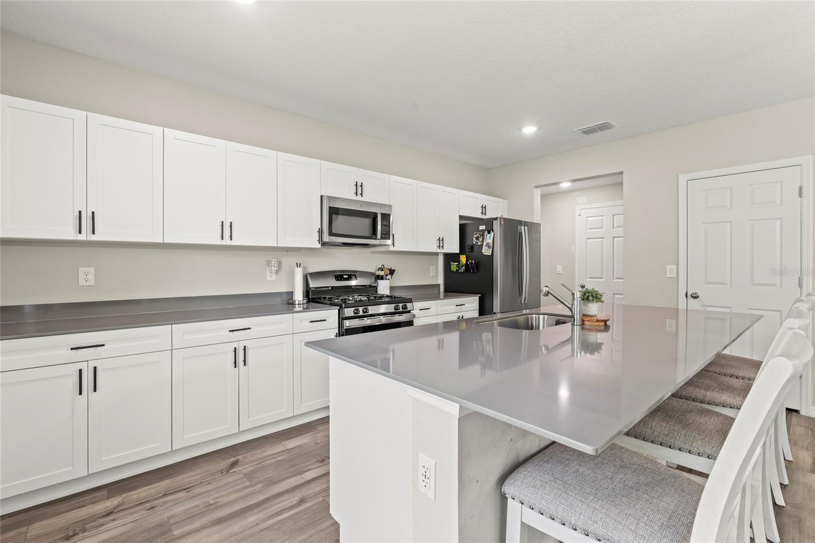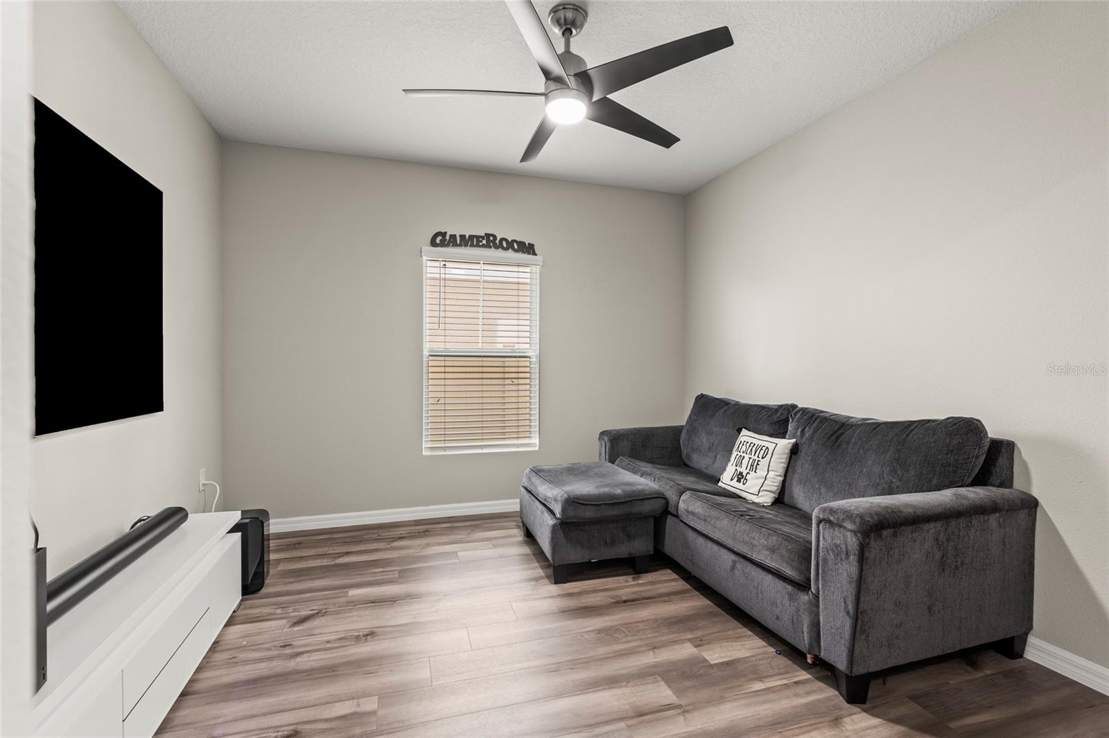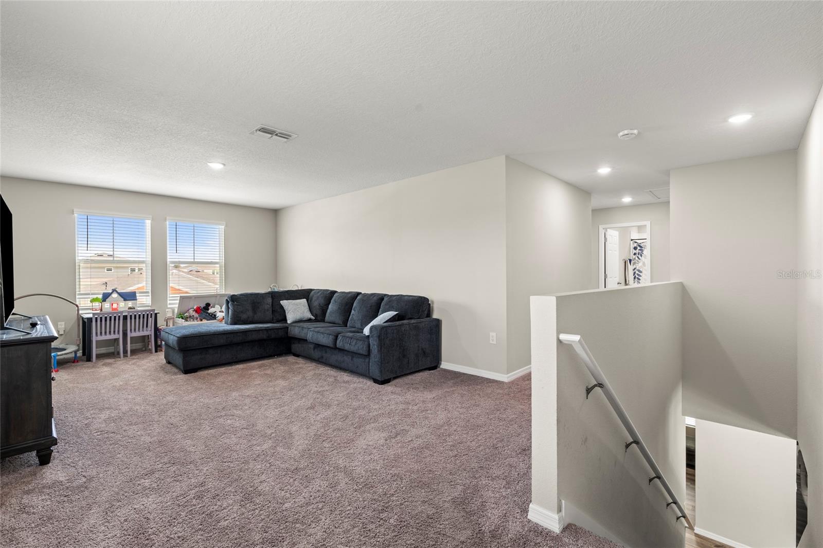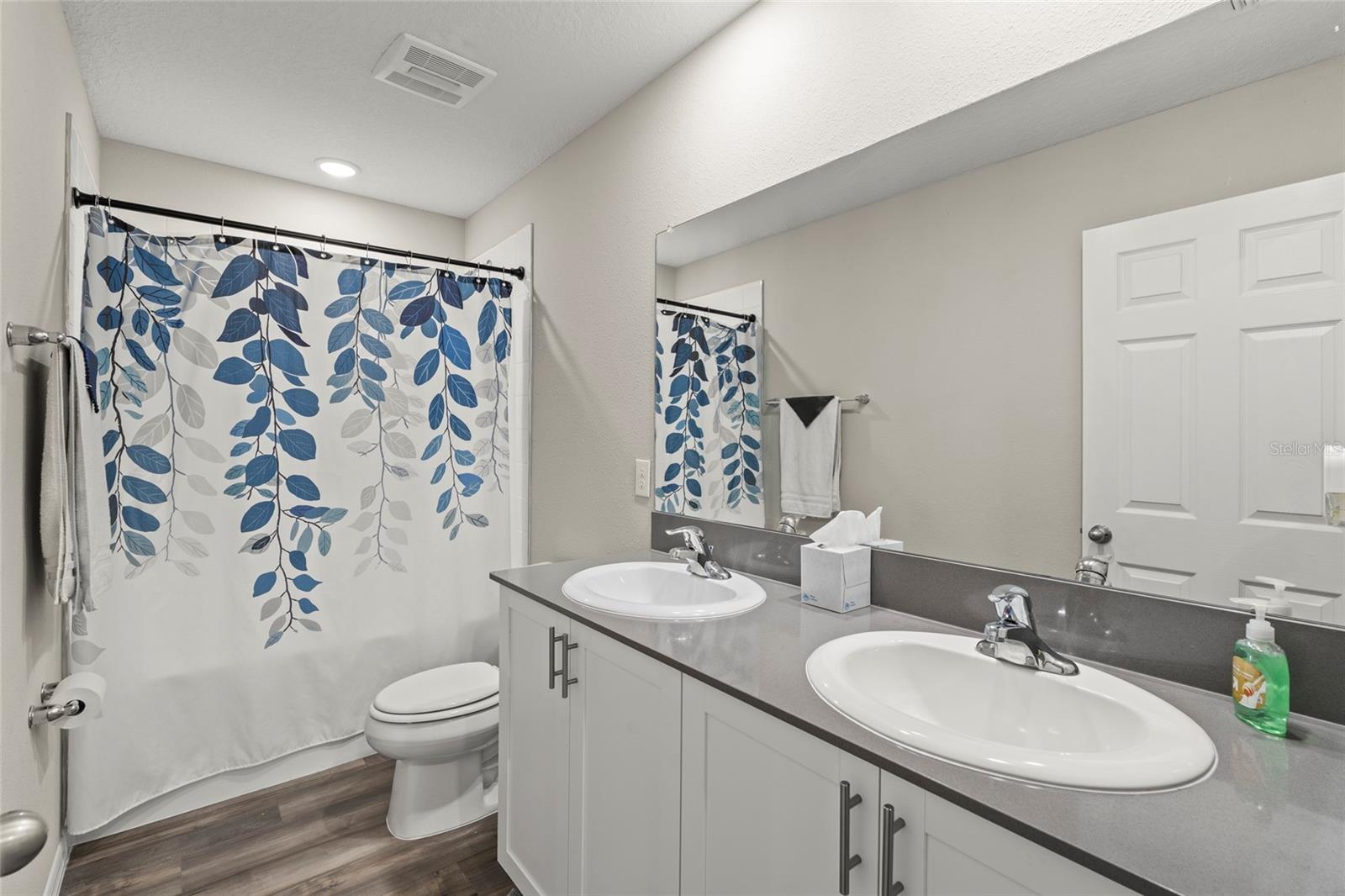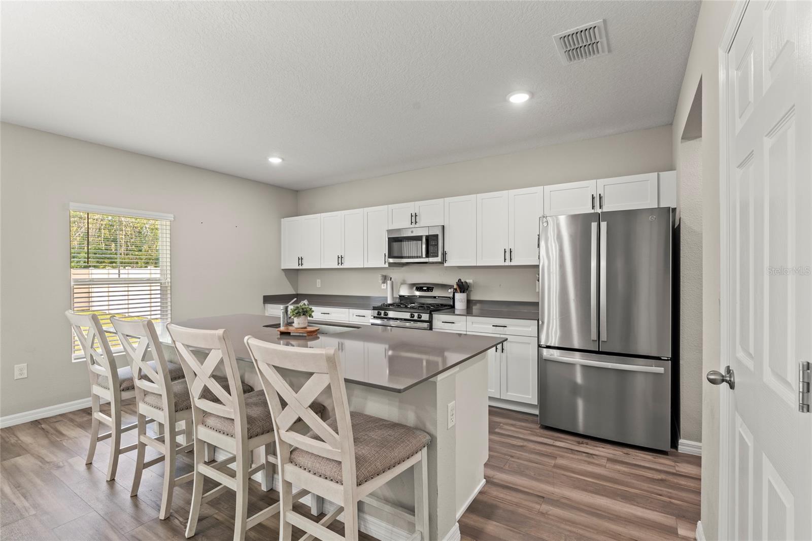 Why wait to build when you can move right into your brand-new home? This gem is situated on an interior road and a private lot that backs to a lush green landscaping. The 2-story home features 5 bedrooms, 3 baths, a Den, a Large Upstairs bonus room, and 2 car garage. The Catalina floor plan offers all the space you need for you and your loved ones. As you enter the home you are greeted by a welcoming foyer that leads to the open-concept living space. This kitchen is a Chef's dream, with wall-to-wall white cabinetry and an oversized kitchen island with a breakfast bar. The 2nd floor greets you with an oversized, recreation space that offers endless possibilities: a game room, an at-home movie theatre, and a home-integrated gym, just to name a few. The home features quartz countertops throughout, and stainless-steel GE appliances, including a Refrigerator. The primary bedroom features an ensuite bathroom with dual sinks, a linen closet, a water closet, and an oversized walk-in closet. The first floor offers a guest bedroom, a full bath, and a spacious den for additional space: make it a home office, a formal dining room, or a playroom just to name a few ideas. The laundry room is conveniently located on the 2nd floor. The home has tons of upgrades as well! They include solar panels which generate more then enough to cover the entire electric bill, Brand new PVC privacy fence, water softener and state of the art security system with cameras. Nothing else to do other then move in!! All of this on a gorgeous preserve lot backing up to 100 year old moss oak trees. Crosswind Point is a resort-style living community featuring resort-style amenities, beautiful water, and wetland views. Conveniently located in the Bradenton-Sarasota area, downtown St. Petersburg, downtown Tampa, and the greater Tampa Bay area.