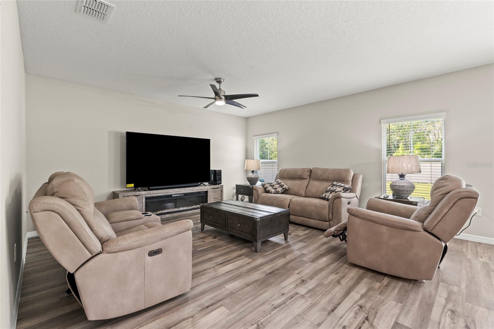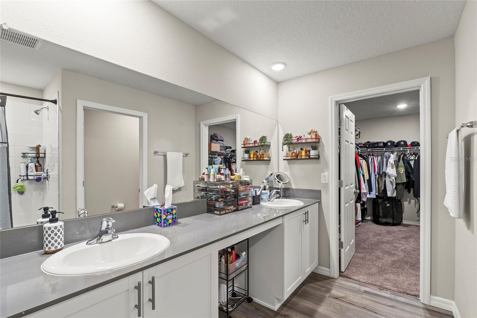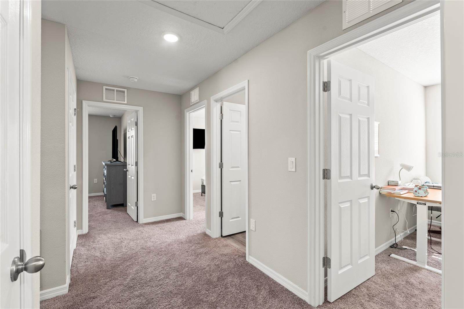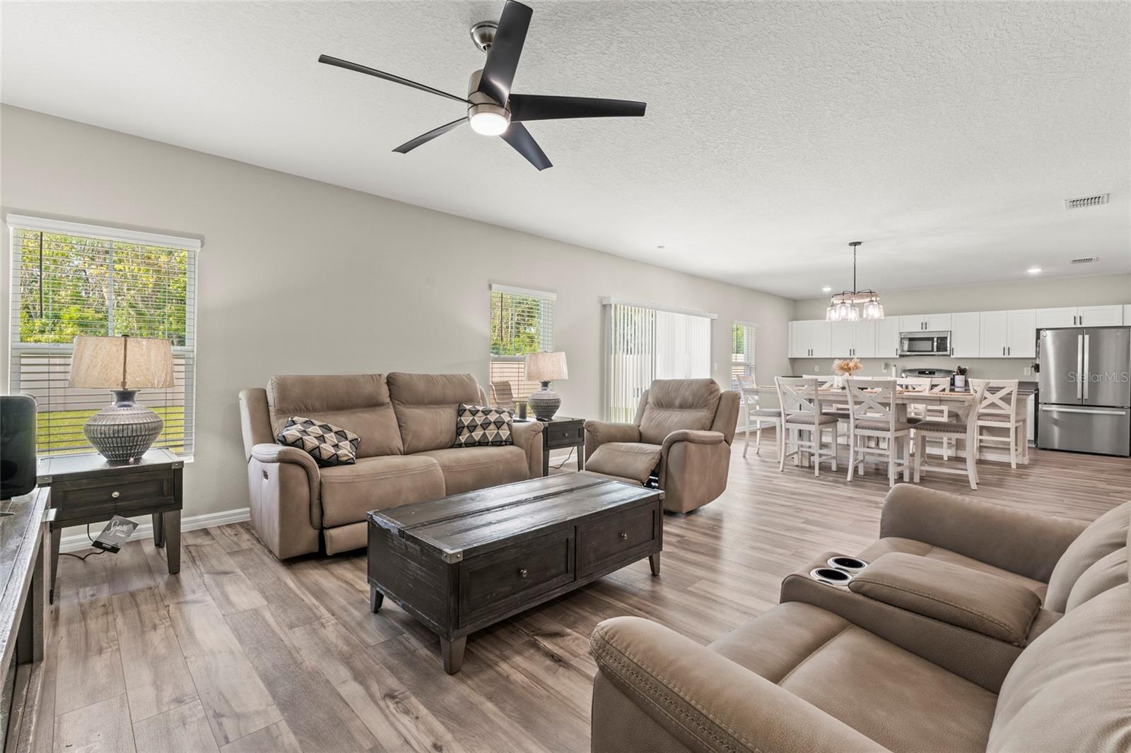 Why wait to build when you can move right into your brand-new home? This gem is situated on an interior road and a private lot that backs to a lush green landscaping. The 2-story home features 5 bedrooms, 3 baths, a Den, a Large Upstairs bonus room, and 2 car garage. The Catalina floor plan offers all the space you need for you and your loved ones. As you enter the home you are greeted by a welcoming foyer that leads to the open-concept living space. This kitchen is a Chef's dream, with wall-to-wall white cabinetry and an oversized kitchen island with a breakfast bar. The 2nd floor greets you with an oversized, recreation space that offers endless possibilities: a game room, an at-home movie theatre, and a home-integrated gym, just to name a few. The home features quartz countertops throughout, and stainless-steel GE appliances, including a Refrigerator. The primary bedroom features an ensuite bathroom with dual sinks, a linen closet, a water closet, and an oversized walk-in closet. The first floor offers a guest bedroom, a full bath, and a spacious den for additional space: make it a home office, a formal dining room, or a playroom just to name a few ideas. The laundry room is conveniently located on the 2nd floor. The home has tons of upgrades as well! They include solar panels which generate more then enough to cover the entire electric bill, Brand new PVC privacy fence, water softener and state of the art security system with cameras. Nothing else to do other then move in!! All of this on a gorgeous preserve lot backing up to 100 year old moss oak trees. Crosswind Point is a resort-style living community featuring resort-style amenities, beautiful water, and wetland views. Conveniently located in the Bradenton-Sarasota area, downtown St. Petersburg, downtown Tampa, and the greater Tampa Bay area.