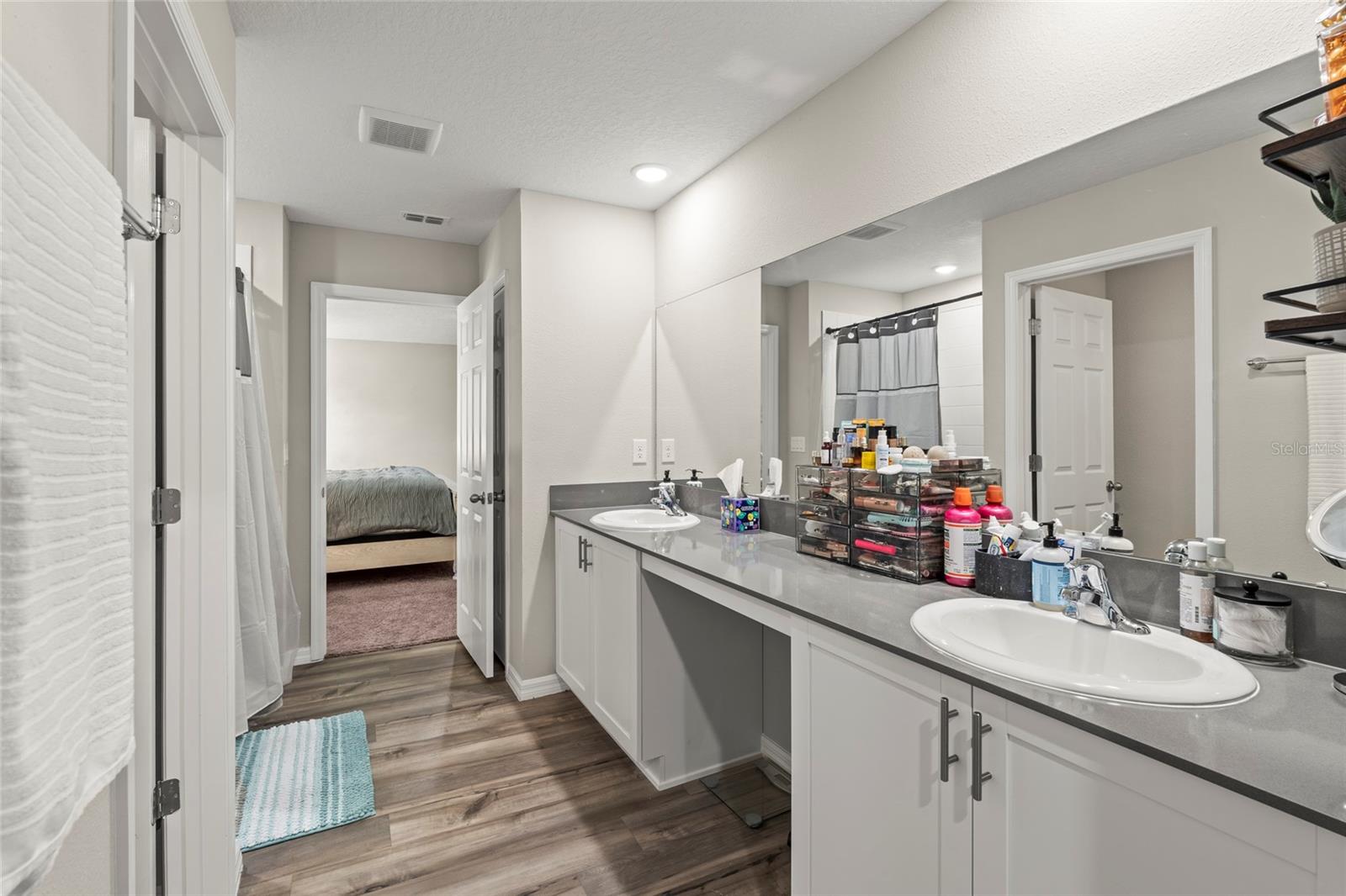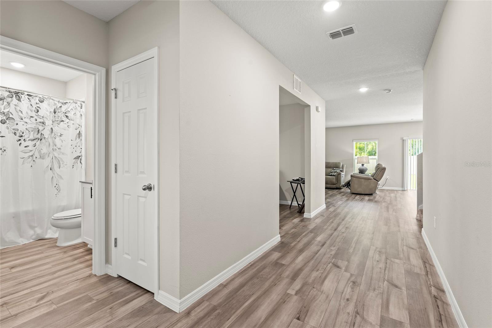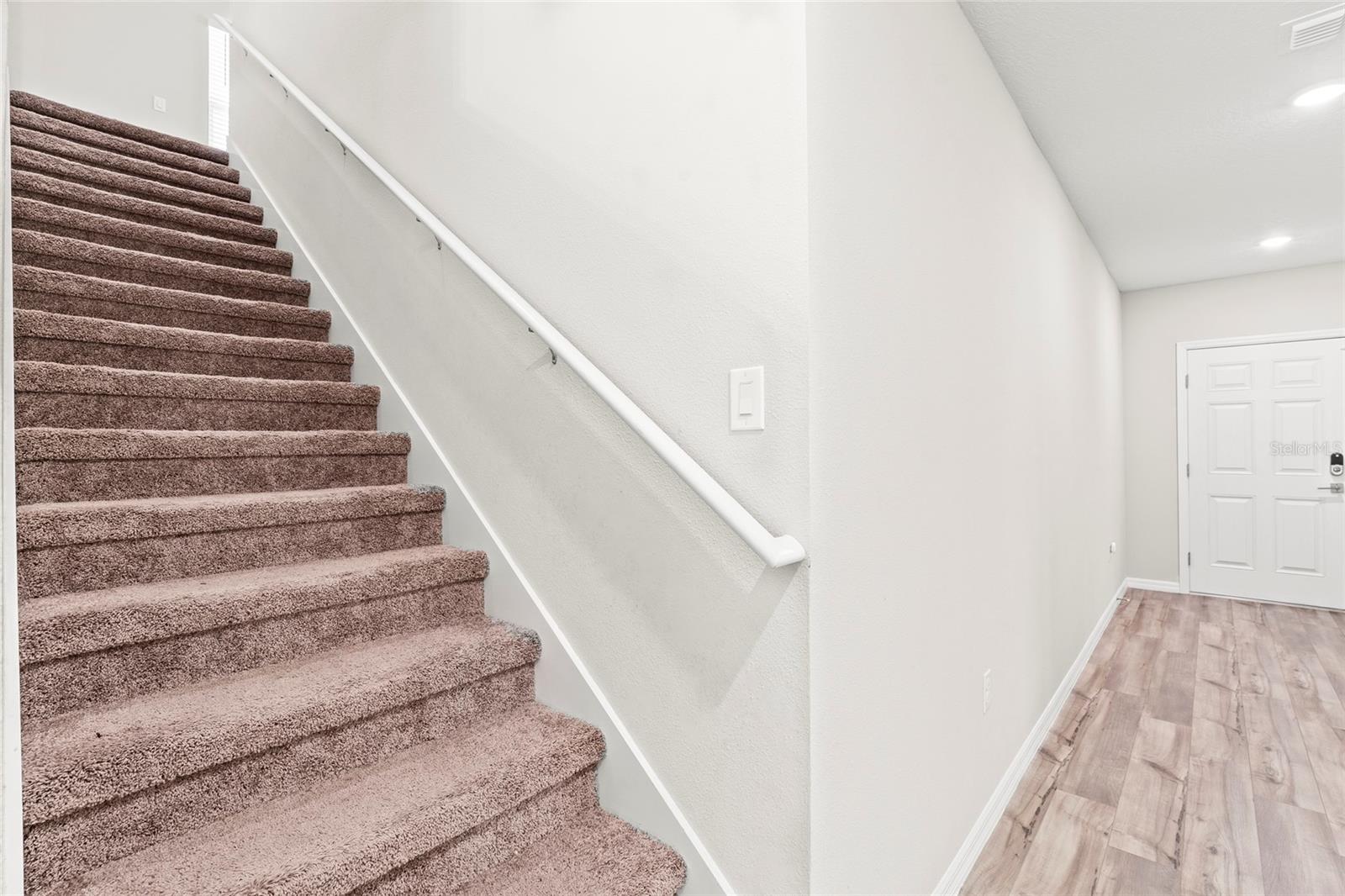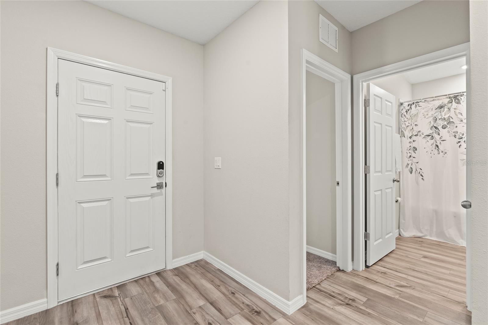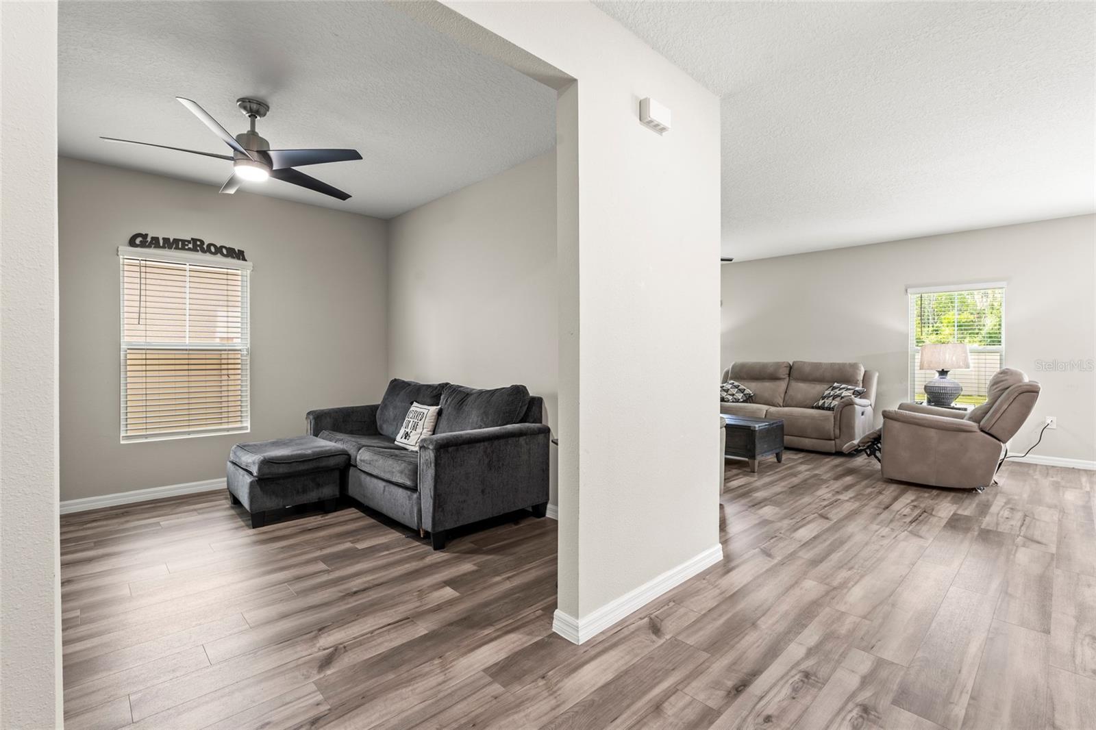 Why wait to build when you can move right into your brand-new home? This gem is situated on an interior road and a private lot that backs to a lush green landscaping. The 2-story home features 5 bedrooms, 3 baths, a Den, a Large Upstairs bonus room, and 2 car garage. The Catalina floor plan offers all the space you need for you and your loved ones. As you enter the home you are greeted by a welcoming foyer that leads to the open-concept living space. This kitchen is a Chef's dream, with wall-to-wall white cabinetry and an oversized kitchen island with a breakfast bar. The 2nd floor greets you with an oversized, recreation space that offers endless possibilities: a game room, an at-home movie theatre, and a home-integrated gym, just to name a few. The home features quartz countertops throughout, and stainless-steel GE appliances, including a Refrigerator. The primary bedroom features an ensuite bathroom with dual sinks, a linen closet, a water closet, and an oversized walk-in closet. The first floor offers a guest bedroom, a full bath, and a spacious den for additional space: make it a home office, a formal dining room, or a playroom just to name a few ideas. The laundry room is conveniently located on the 2nd floor. The home has tons of upgrades as well! They include solar panels which generate more then enough to cover the entire electric bill, Brand new PVC privacy fence, water softener and state of the art security system with cameras. Nothing else to do other then move in!! All of this on a gorgeous preserve lot backing up to 100 year old moss oak trees. Crosswind Point is a resort-style living community featuring resort-style amenities, beautiful water, and wetland views. Conveniently located in the Bradenton-Sarasota area, downtown St. Petersburg, downtown Tampa, and the greater Tampa Bay area.