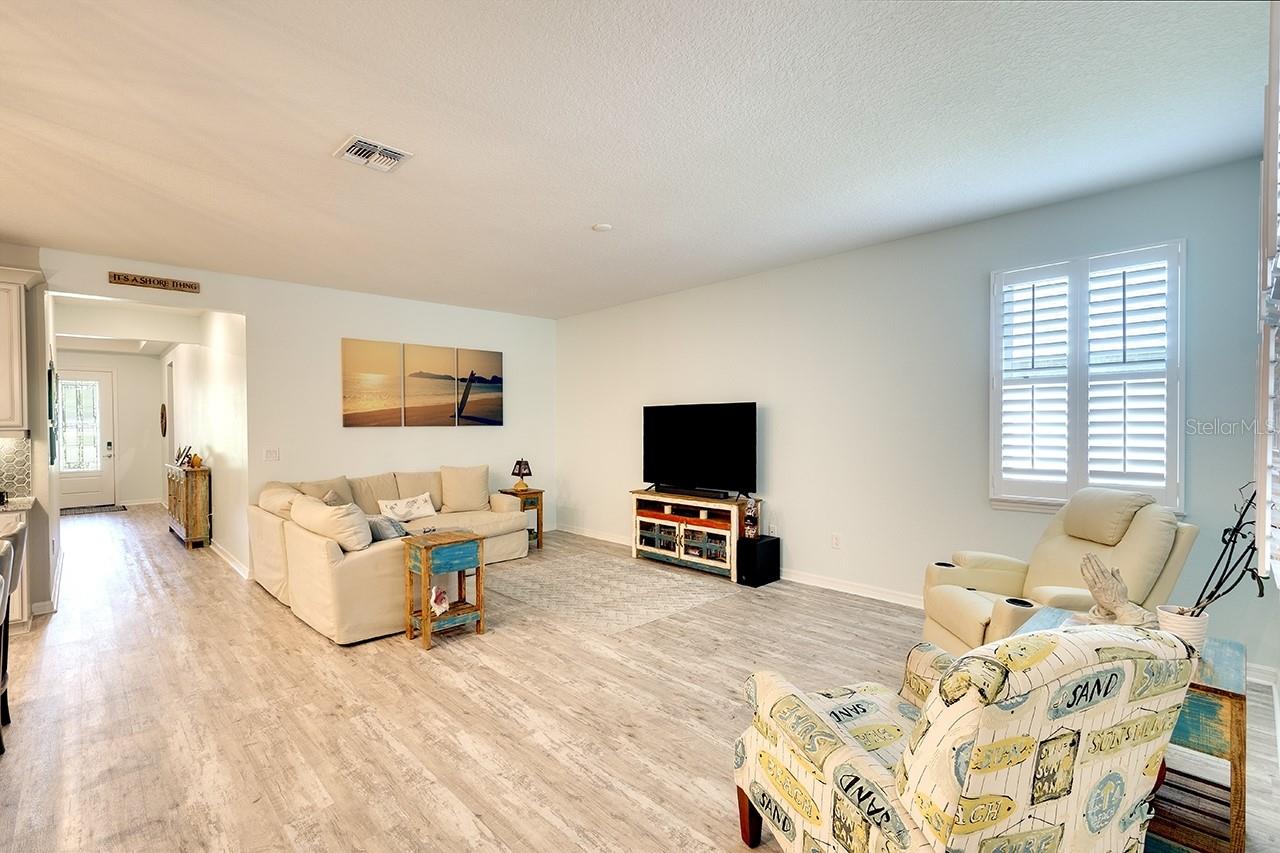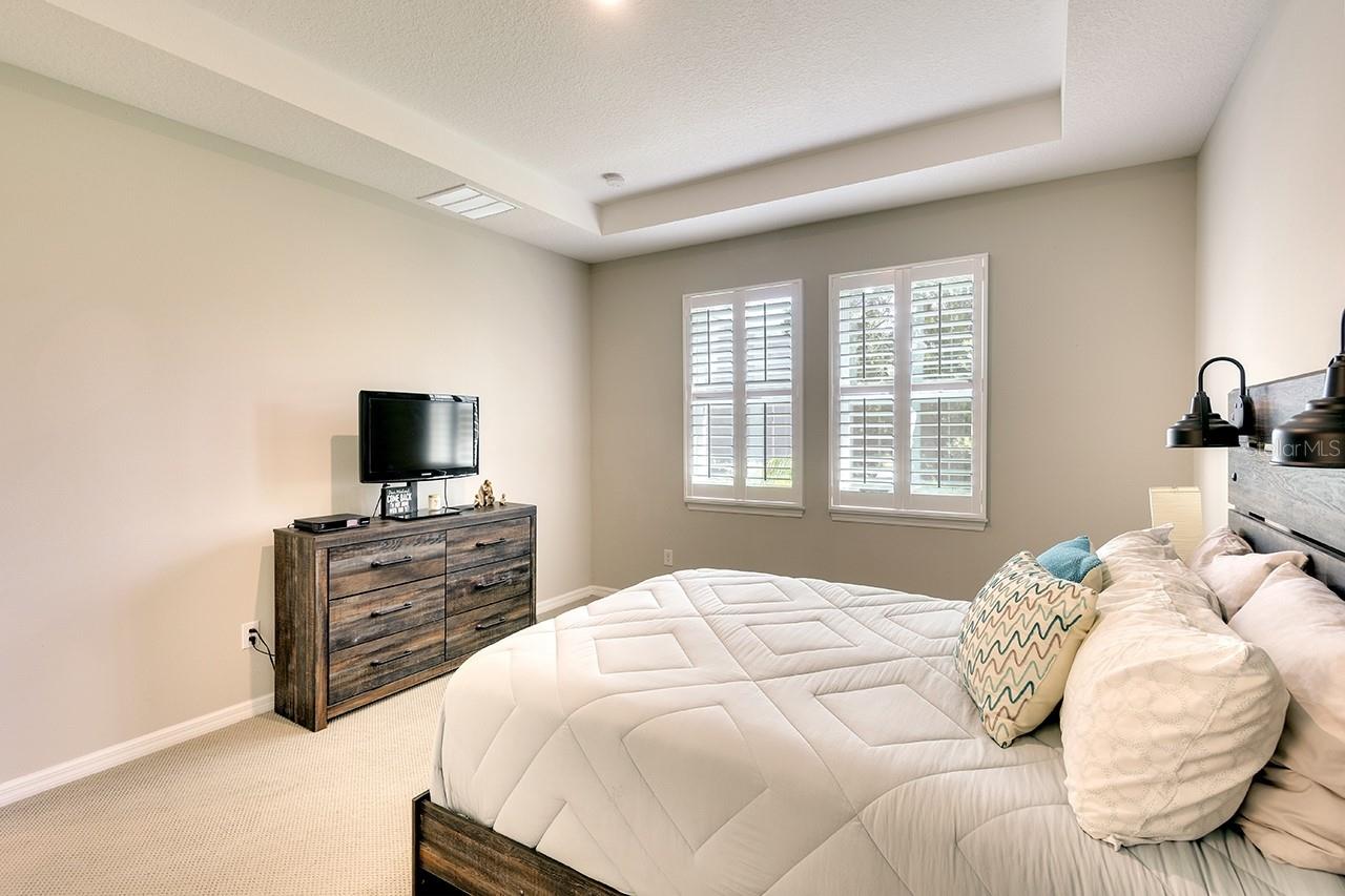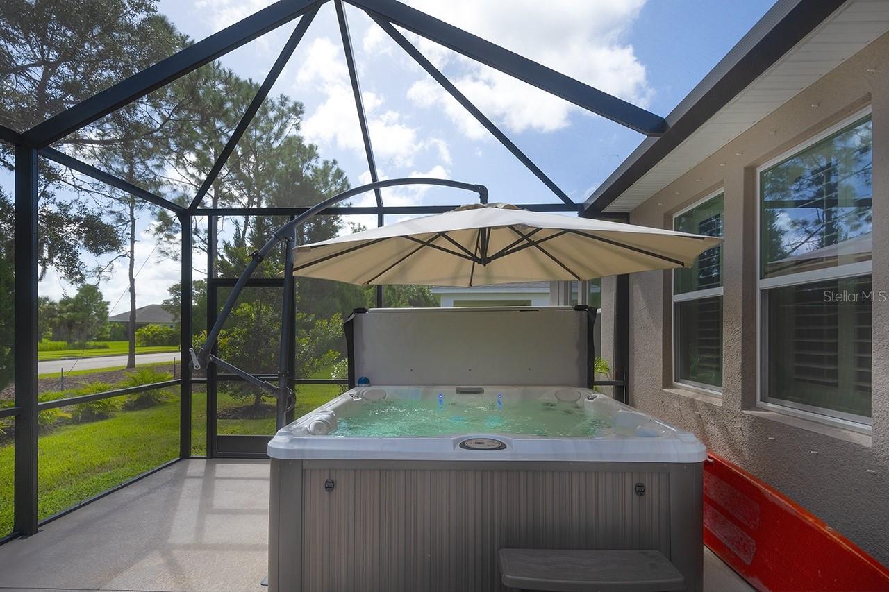 Ammenity rich community! Great for golfers or someone wanting a social life with a splash park, resort style community center with clubhouse, community pool, "tot lot" with splash pad and water slide, playground area, walking paths with gazebos, basketball court and dog park. Gorgeous well kept home with luxury light coastal collection of EVP vinyl plank floors in all the living areas. Gourmet kitchen opens up to the family room with an oversized kitchen counter with the latest stylish light granite countertops and upgraded stainless appliances with Painted Ember cabinetry. Owner installed plantation shutters throughout. Oversized homesite with treed privacy wall. This four bedroom energy efficient home is the perfect place for the whole family. Elegant try ceilings in the foyer and primary suite. Owners added a large caged covered patio/lanai with hot tub and plenty of space for entertaining guests. Cross Creek is located near a variety of excellent shopping and dining destinations and provides convenient access to I 75 for travel to many area work centers, Bradenton Beach and Anna Maria Island and St Petersburg. Not far from Ellenton Premium outlets, downtown Bradenton and the Riverwalk on Manatee River as well as Lakewood Ranch, Waterside and very close to the Ft Hammer boat ramp and park which is only one mile from home. Must see!