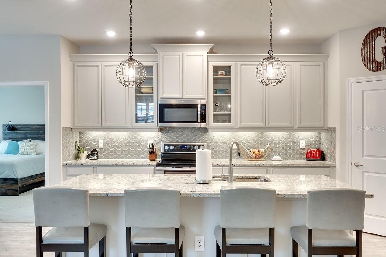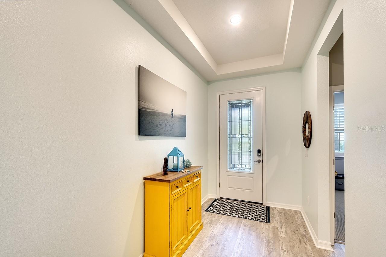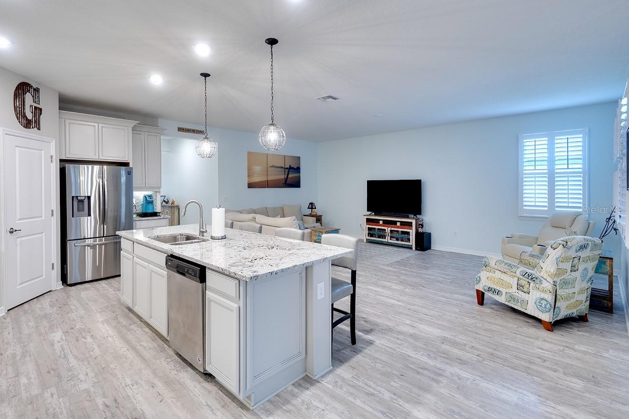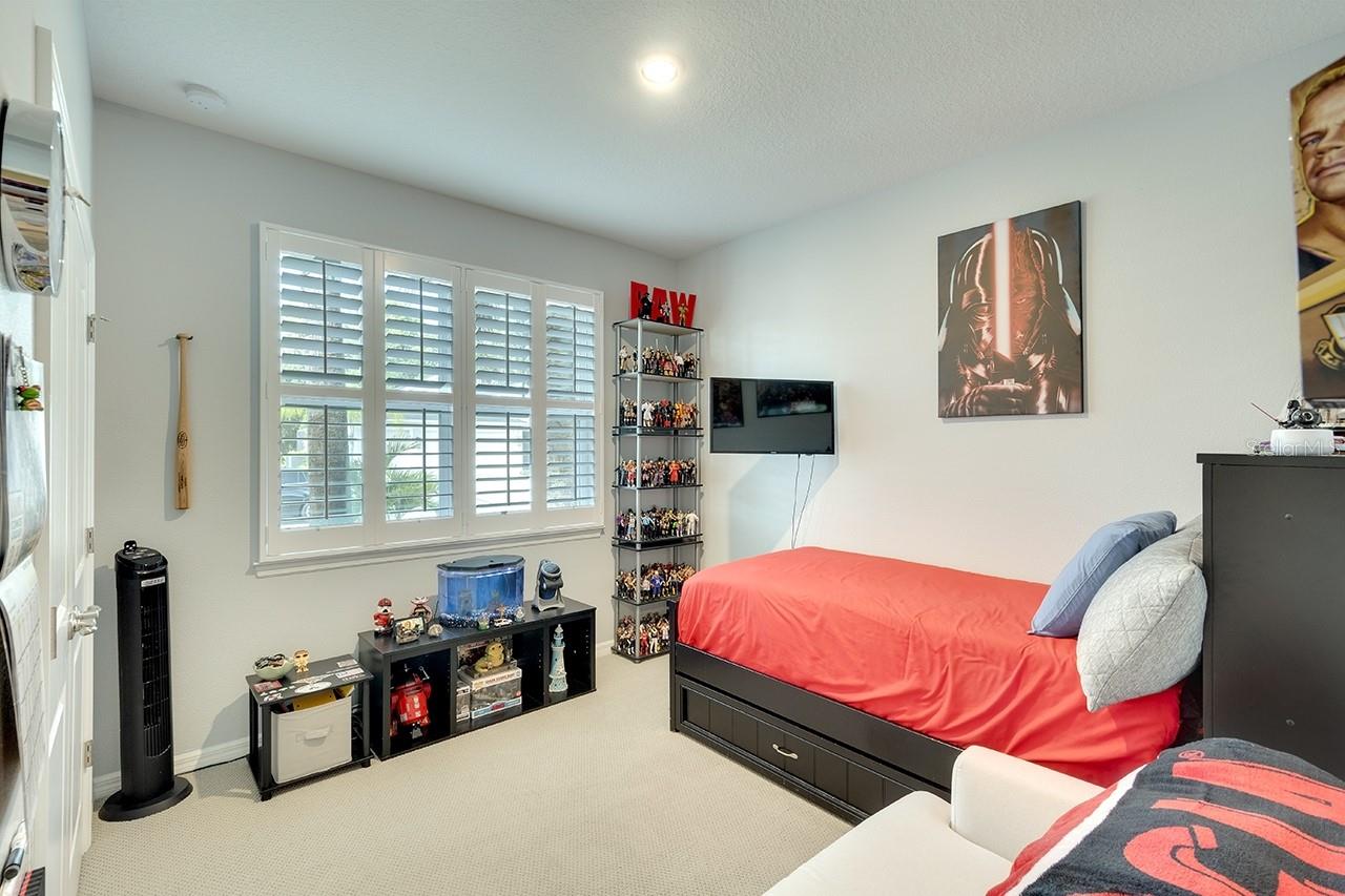 Ammenity rich community! Great for golfers or someone wanting a social life with a splash park, resort style community center with clubhouse, community pool, "tot lot" with splash pad and water slide, playground area, walking paths with gazebos, basketball court and dog park. Gorgeous well kept home with luxury light coastal collection of EVP vinyl plank floors in all the living areas. Gourmet kitchen opens up to the family room with an oversized kitchen counter with the latest stylish light granite countertops and upgraded stainless appliances with Painted Ember cabinetry. Owner installed plantation shutters throughout. Oversized homesite with treed privacy wall. This four bedroom energy efficient home is the perfect place for the whole family. Elegant try ceilings in the foyer and primary suite. Owners added a large caged covered patio/lanai with hot tub and plenty of space for entertaining guests. Cross Creek is located near a variety of excellent shopping and dining destinations and provides convenient access to I 75 for travel to many area work centers, Bradenton Beach and Anna Maria Island and St Petersburg. Not far from Ellenton Premium outlets, downtown Bradenton and the Riverwalk on Manatee River as well as Lakewood Ranch, Waterside and very close to the Ft Hammer boat ramp and park which is only one mile from home. Must see!