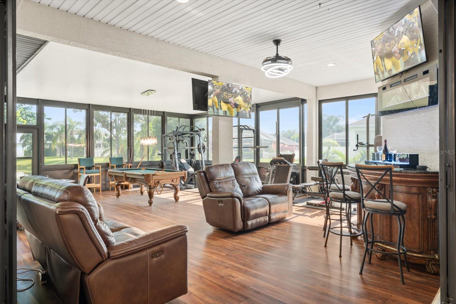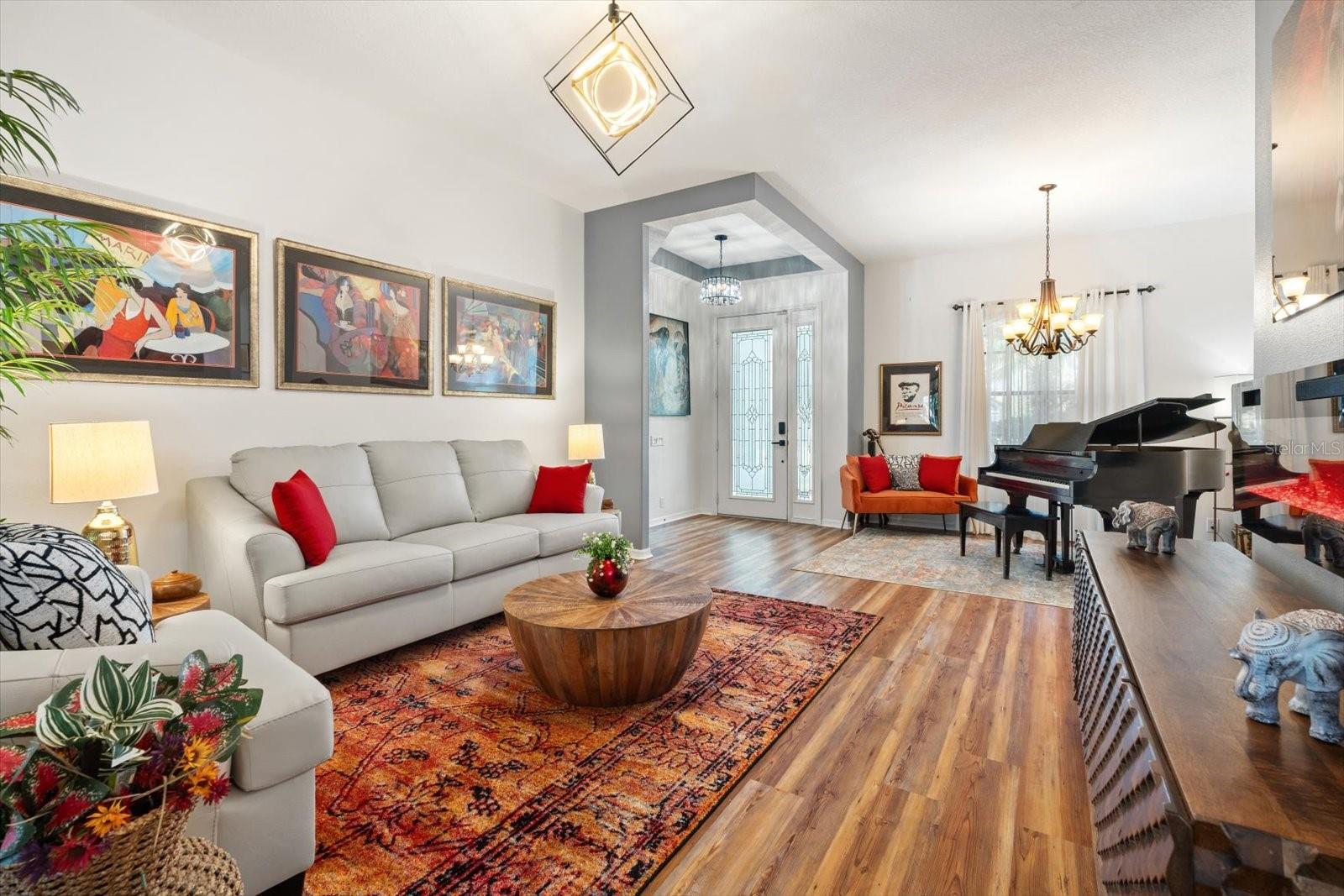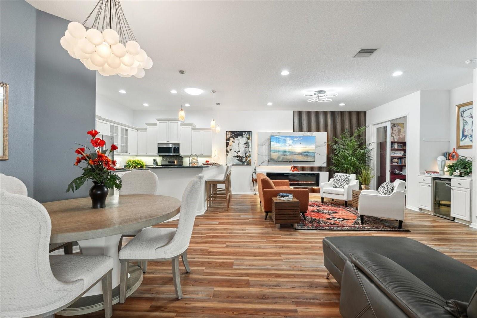 $$PRICE IMPROVEMENT* MOTIVATED SELLERS MOVING OUT OF STATE. Dream Home with Entertainment Lounge! FREE TVs, CABLE and INTERNET! UPGRADES! Welcome to Paradise. This spacious 3Br 2 bath contemporary design features 10’ ceilings! It's packed full of upgrades. Features an open floor plan that is perfect for entertaining. The grounds have been cleared and landscaped -ready for you to add a swimming pool overlooking the pond. Imagine coming home to a 5 Star luxury residence after a day of work, shopping and beach time. This remodeled residence offers a water view and looks like a designer model. Located in Chelsea Oaks, one of the most sought out gated neighborhoods in Parrish. **NEW ROOF MARCH 2024** Once inside you will experience the ultra-modern warmth and comfort of the new luxury vinyl wood flooring. This stain resistant flooring is great for high traffic, pets, moisture and is virtually maintenance free. The floor design begins at the foyer and continues to the living room, owner’s suite, family room, kitchen, breakfast area and bedroom 2. EVERY interior wall has been painted floor to ceiling. As you tour your new home notice the new lighting that is showcased in the living areas, den and kitchen. The central gathering area in this residence is the well-appointed kitchen with lots of cabinets, storage and counter space for preparing meals to serve in the adjourning luxurious family room and breakfast area. The bonus serving bar is a great space for food prep. You will enjoy the gourmet styled kitchen with a Frigidaire Refrigerator, and Featuring a new Frigidaire smooth top range with air fryer/convection oven (April 2024), a new Samsung over the stove Microwave (April 2024) and a Brand-new GE Energy Star Dishwasher. Prepared to be amazed with the custom Media Wall in the family room that was meticulously designed with real wood panels and an engineered marble platform that presents a 70” smart TV and built in floating fireplace and backlights. This high-end design and smart TV entertainment center remains with the house! The new ceiling lighting is exquisite and completes this picture-perfect room. As you approach bedroom #2, you will love the bright hallway bath that has been updated with a new 60” vanity and sink with marble top and brushed nickel hardware, new flooring, new lights and sparkling new toilet. Your guests will enjoy the soothing shower/bath combo. The spacious owner’s suite has trey ceilings, new luxury vinyl flooring, light wall paint and opens to the large Florida Sunroom which offers a beautiful water view of the sparkling pond. This suite has 2 closets (1 walk- in) and a spacious ensuite with double vanity featuring underlighting. The large, enclosed shower and separate spacious soaking tub are waiting for your relaxation. But wait...there's more…Just when you think it can’t get better, the fun has just started. Tired of fighting the crowds at the gym? Then enjoy your 720sf Florida Sunroom with entertainment space, a gym comes with house. Imagine sipping your favorite beverage while watching the sunrise over the pond. GAME ON! Call all your friends to watch your favorite College/NFL football- because the 55" flatscreen TVs remain for your enjoyment. Chelsea Oaks offers a LOW HOA and NO CDDs. Conveniently located to shopping, dining and retail shoppes and is near Fort Hamer Boat Ramp and bridge. Amenities include a community pool, basketball and a playground. Welcome Home!