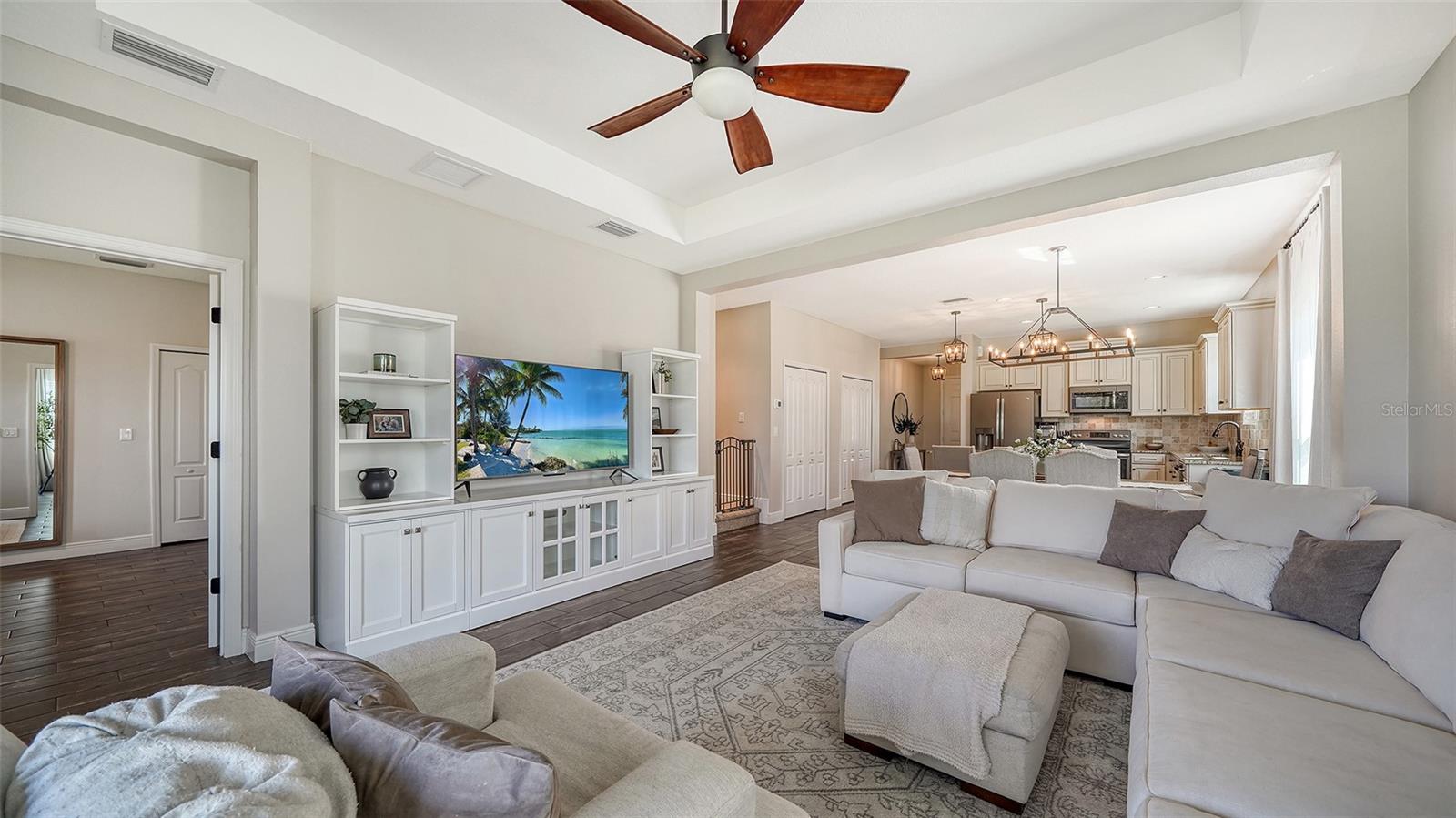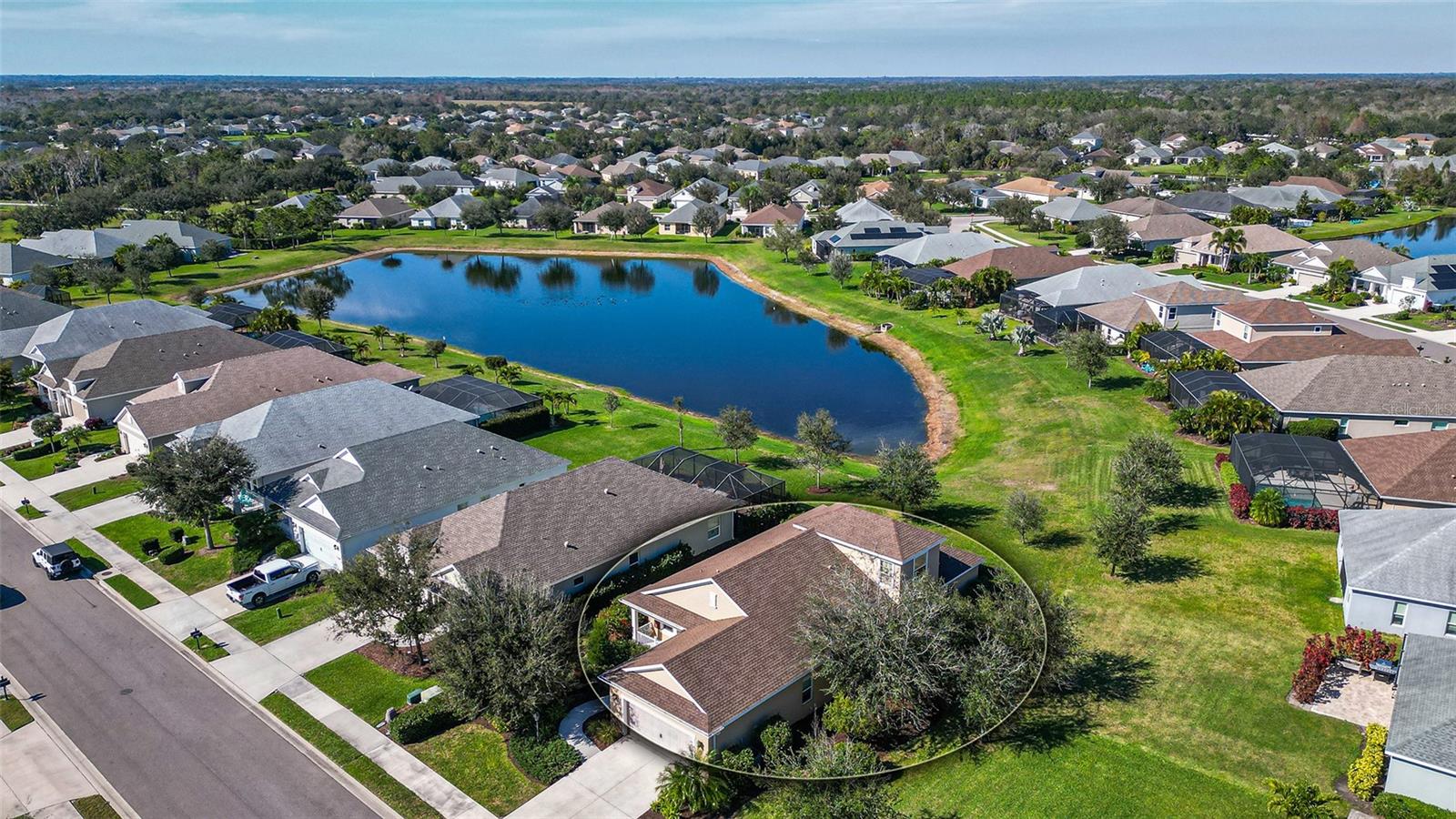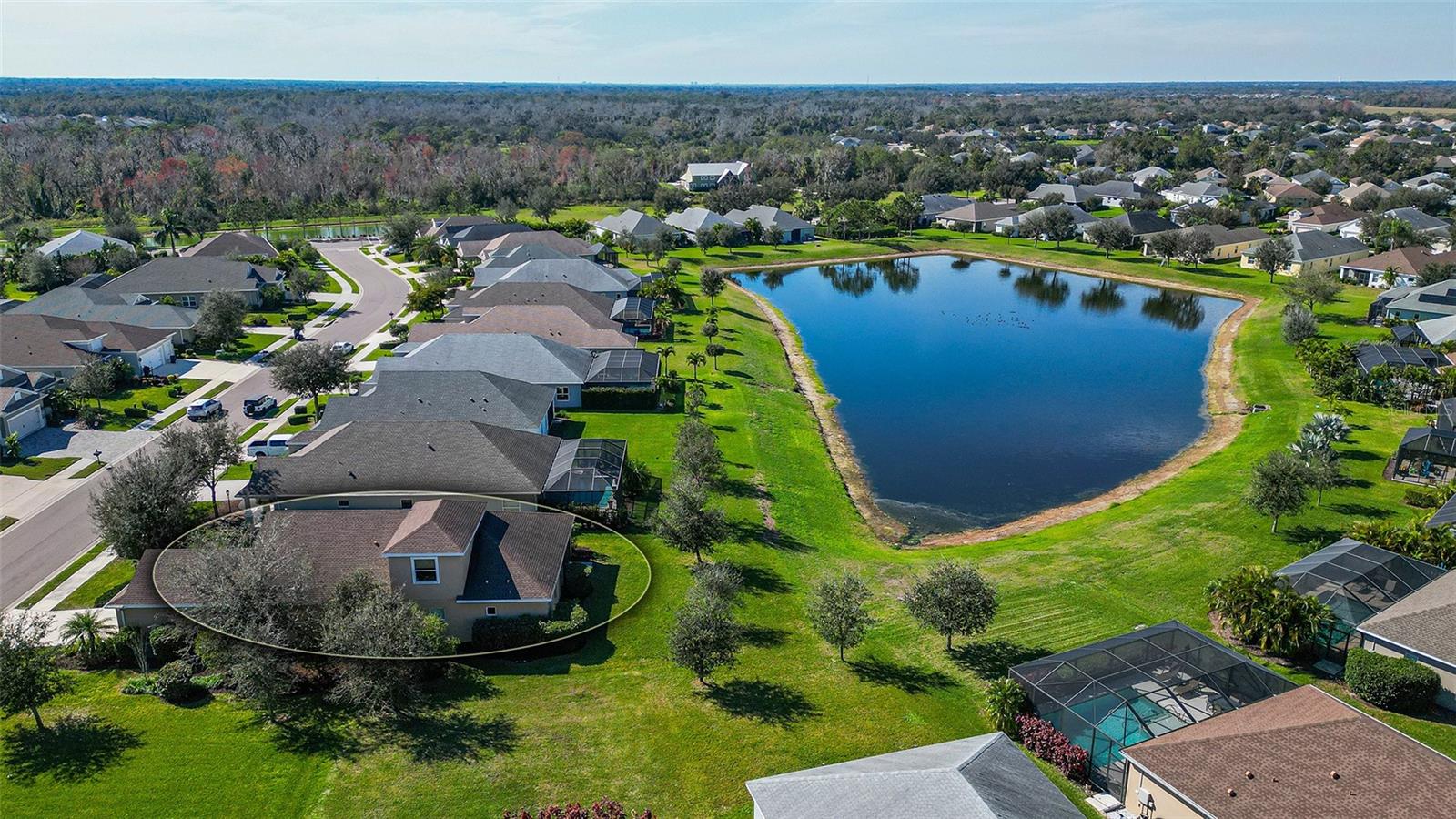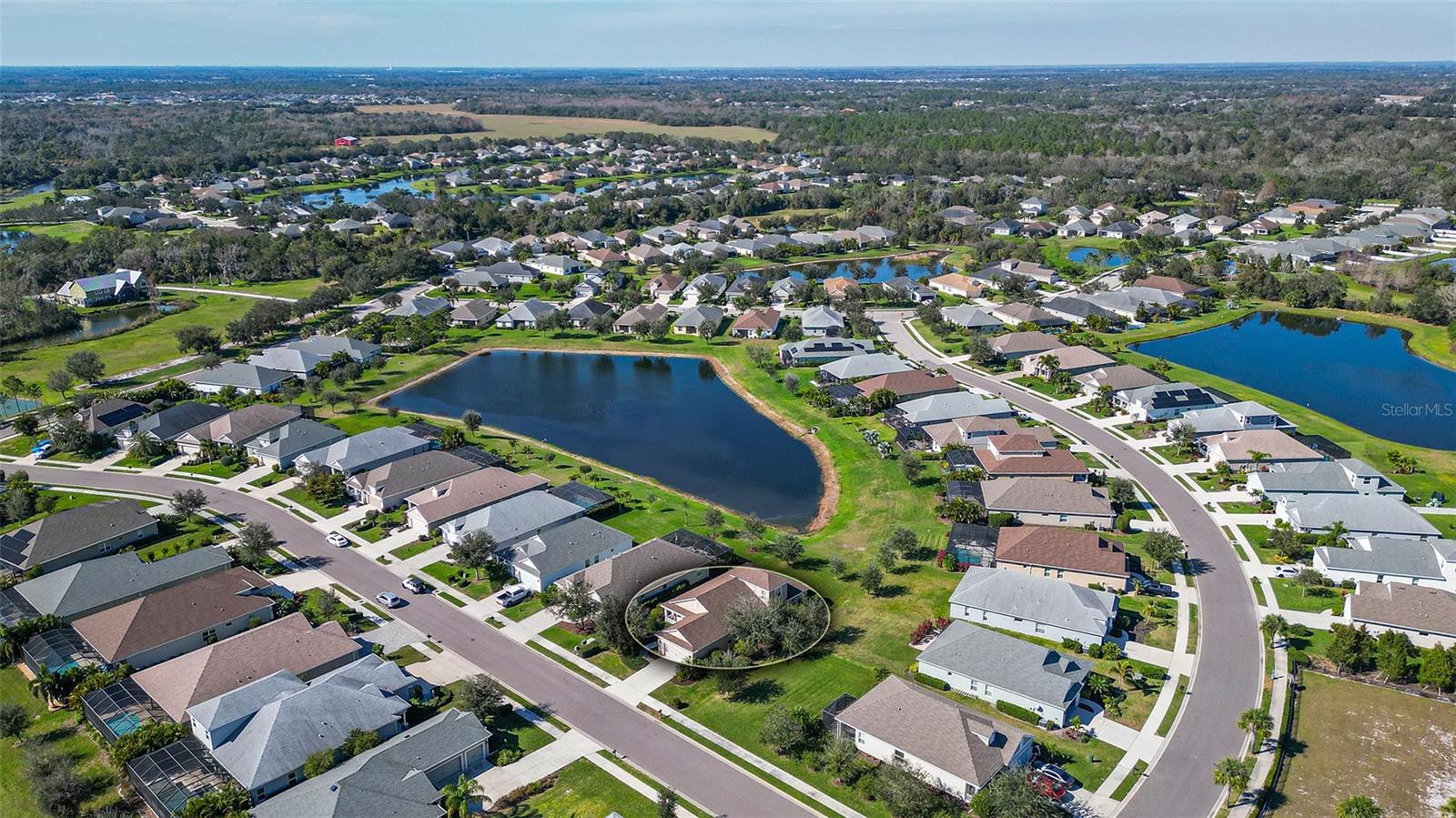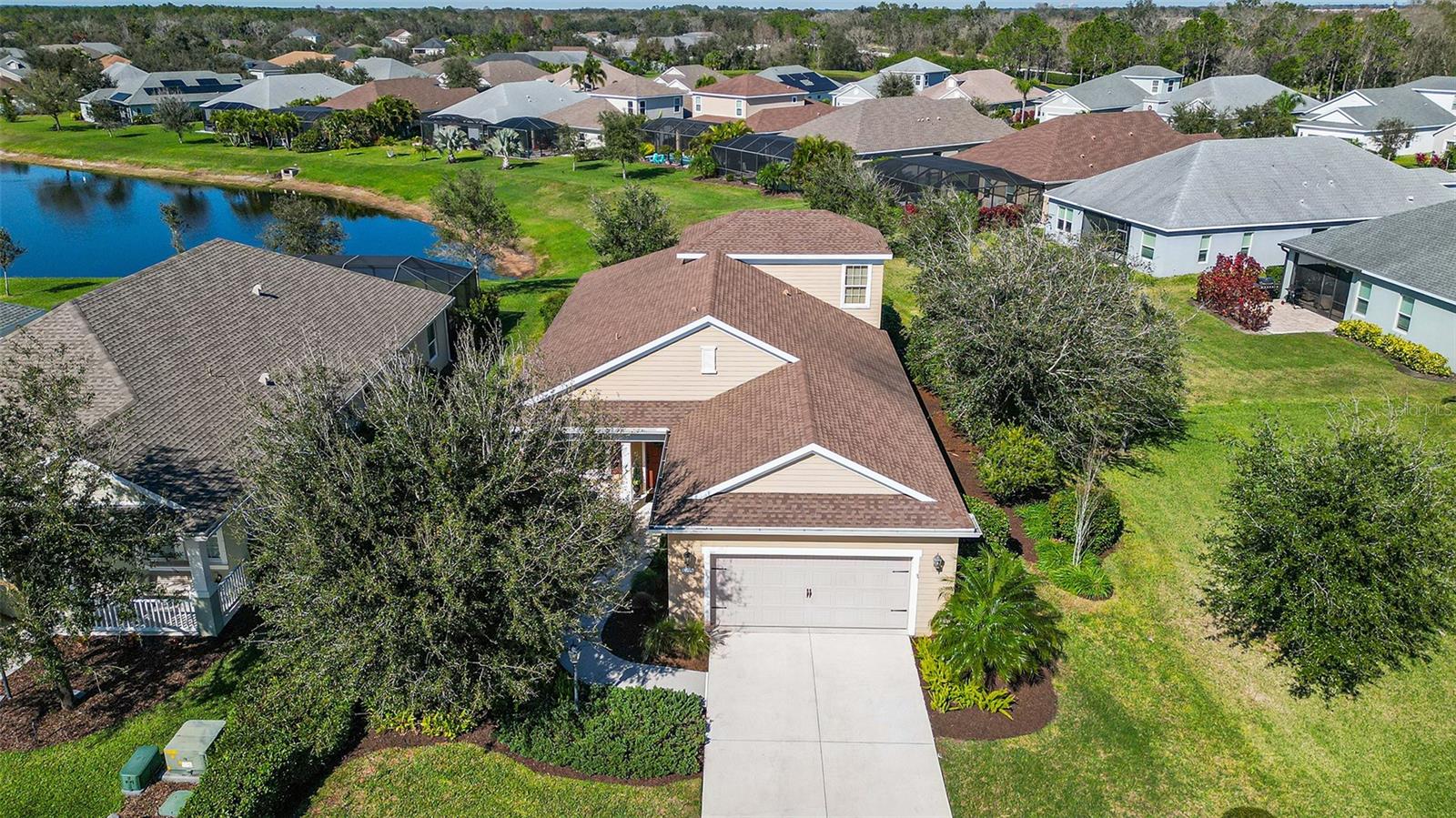 Welcome to your dream lakefront home! This stunning 4-bedroom, 2-bathroom residence sits on an exclusive .221-acre lot with breathtaking lake views. The meticulously designed exterior boasts a charming covered front porch and a spacious screened back patio, perfect for enjoying serene waterfront sunsets. Step inside and be captivated by the heart of the home—a beautiful gourmet kitchen. It features upgraded cabinets, sleek stainless steel appliances, gleaming granite countertops, a travertine backsplash, and not one, but two storage pantries. A dry bar niche provides the perfect space for entertaining, while recessed lighting adds elegance. The centerpiece is a large kitchen island, making it both functional and stylish. The kitchen flows seamlessly into the open family room, where sliding pocket glass doors invite you to the expansive screened patio. From here, enjoy peaceful lake views that are sure to impress both you and your guests. Don’t forget about the luxurious master suite, which is a true retreat, featuring a premium ceiling fan, his-and-hers closets, and a spa-like bathroom with dual vanities. Upstairs, a versatile loft offers endless possibilities—it could be a playroom, home office, or media room, tailored to your lifestyle. This home isn’t just about indoor living; it’s packed with community amenities! Take a dip in the resort-style pool and spa, fire up the gas grill in the community gathering area, or keep fit in the private fitness center. Your little ones will love the play area, and for outdoor enthusiasts, miles of nature trails await, perfect for morning strolls or evening jogs. The community also offers a sand volleyball court and a kayak launch into the picturesque Rye River, providing endless entertainment for the whole family. Located in a prime spot, you’ll enjoy easy access to Tampa, Sarasota, and Bradenton, making this home not only a retreat but also a convenient hub for all your lifestyle needs. With its stunning design, top-tier community features, and unbeatable location, this property has everything you’re looking for—and more. Don’t miss the opportunity to make this lakefront gem your forever home!