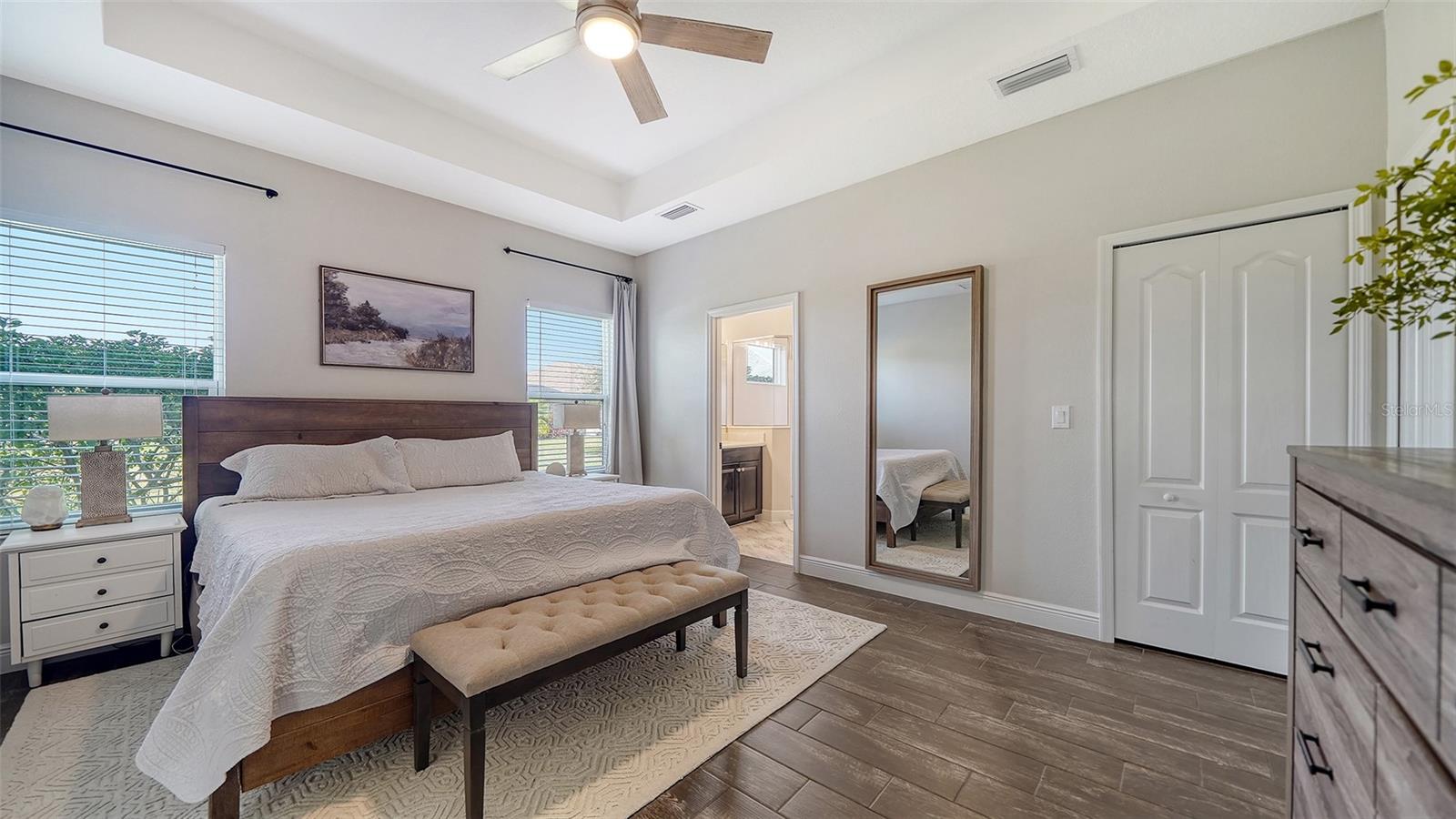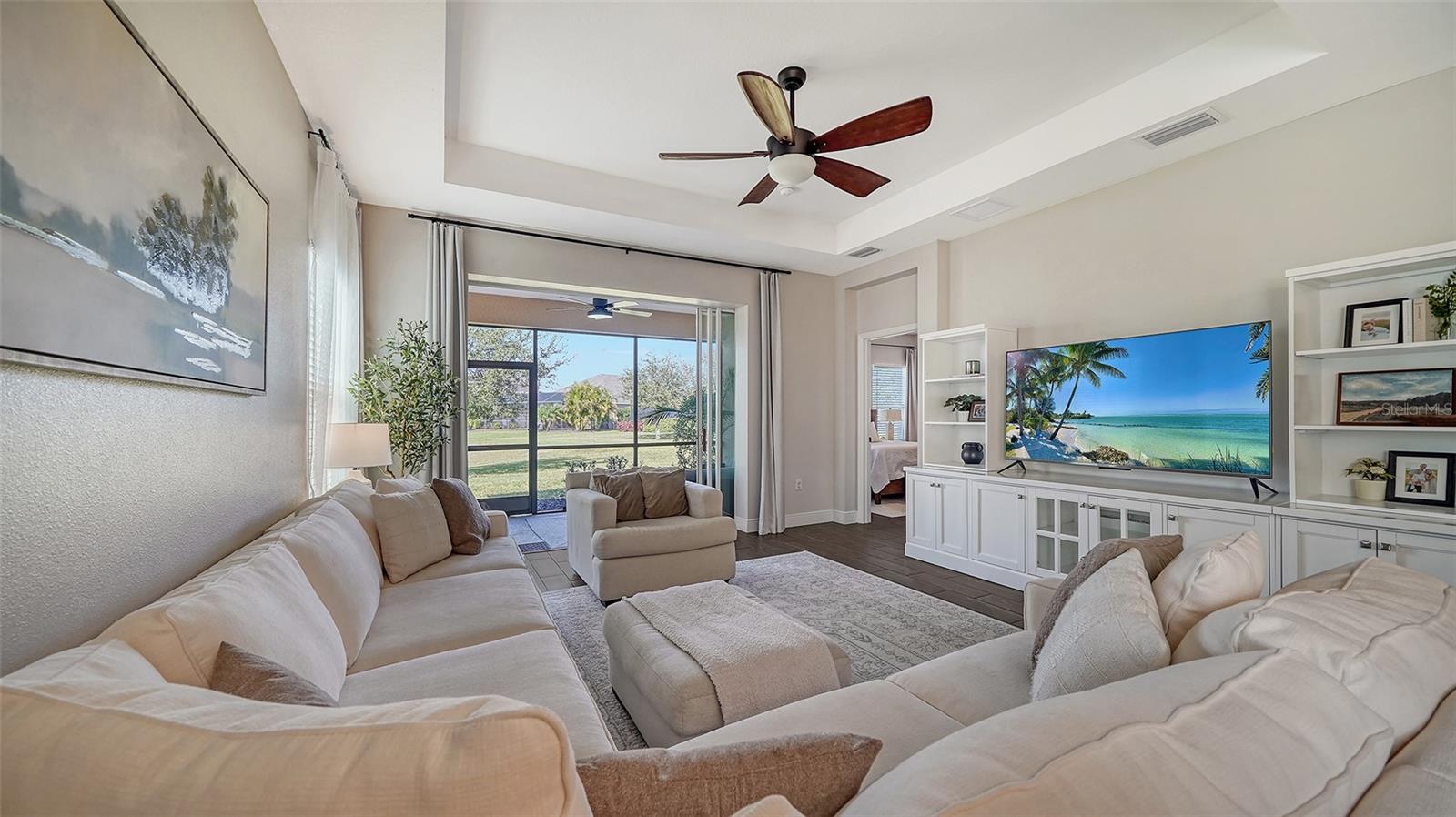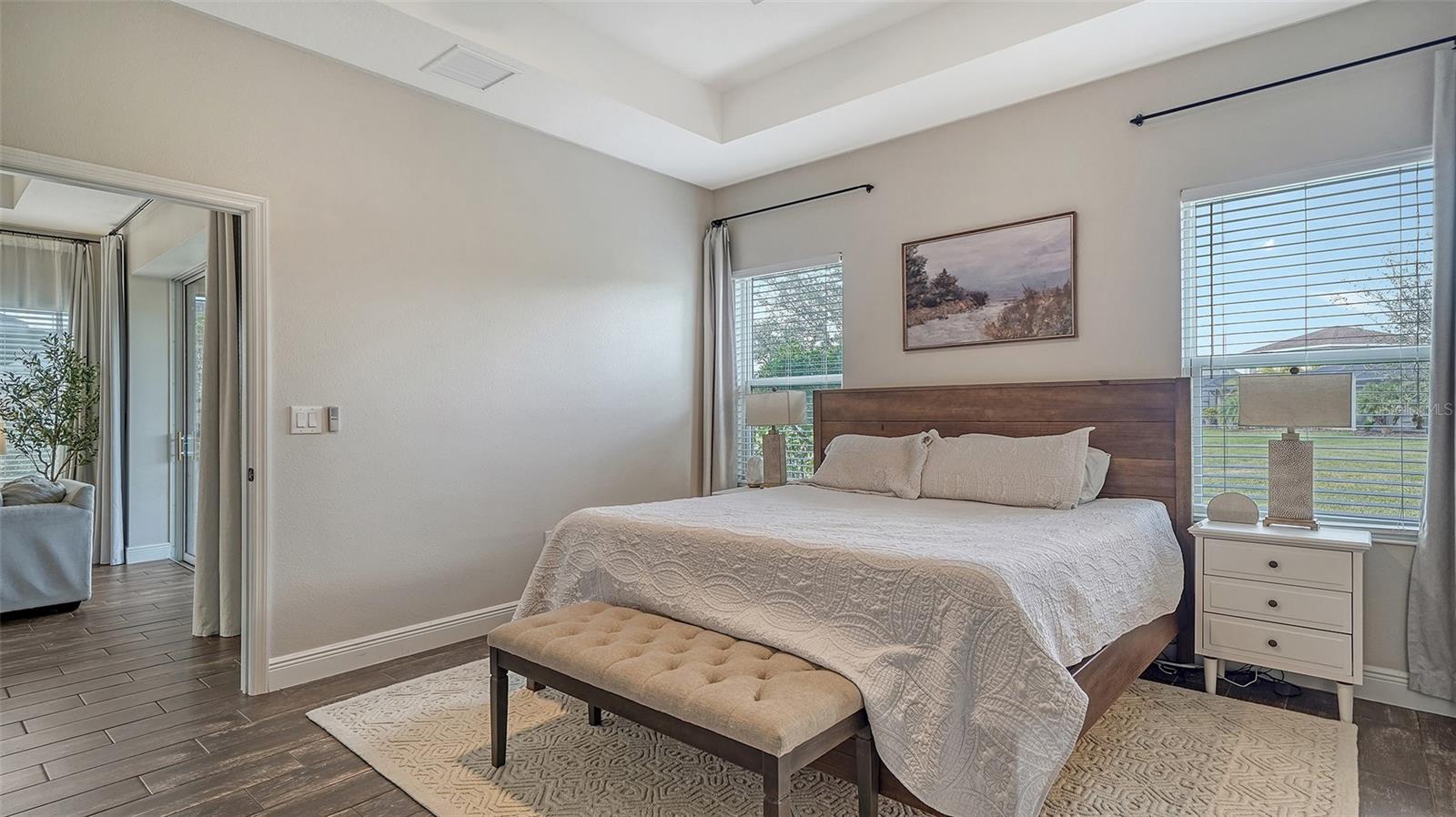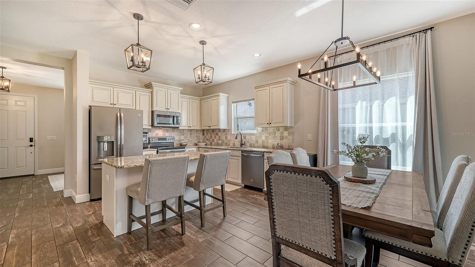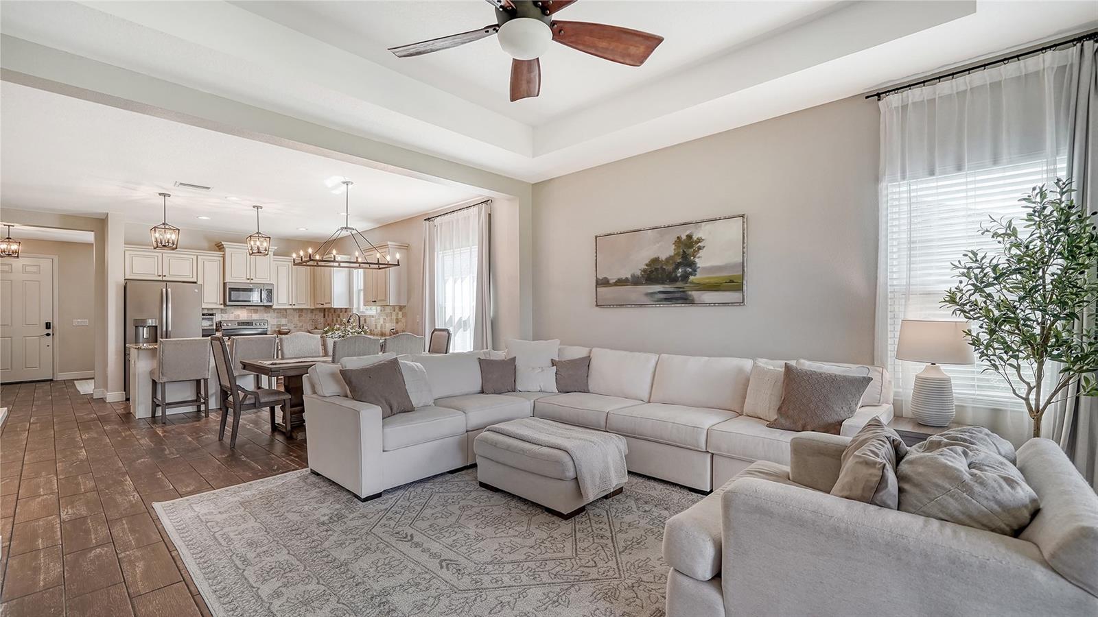 Welcome to your dream lakefront home! This stunning 4-bedroom, 2-bathroom residence sits on an exclusive .221-acre lot with breathtaking lake views. The meticulously designed exterior boasts a charming covered front porch and a spacious screened back patio, perfect for enjoying serene waterfront sunsets. Step inside and be captivated by the heart of the home—a beautiful gourmet kitchen. It features upgraded cabinets, sleek stainless steel appliances, gleaming granite countertops, a travertine backsplash, and not one, but two storage pantries. A dry bar niche provides the perfect space for entertaining, while recessed lighting adds elegance. The centerpiece is a large kitchen island, making it both functional and stylish. The kitchen flows seamlessly into the open family room, where sliding pocket glass doors invite you to the expansive screened patio. From here, enjoy peaceful lake views that are sure to impress both you and your guests. Don’t forget about the luxurious master suite, which is a true retreat, featuring a premium ceiling fan, his-and-hers closets, and a spa-like bathroom with dual vanities. Upstairs, a versatile loft offers endless possibilities—it could be a playroom, home office, or media room, tailored to your lifestyle. This home isn’t just about indoor living; it’s packed with community amenities! Take a dip in the resort-style pool and spa, fire up the gas grill in the community gathering area, or keep fit in the private fitness center. Your little ones will love the play area, and for outdoor enthusiasts, miles of nature trails await, perfect for morning strolls or evening jogs. The community also offers a sand volleyball court and a kayak launch into the picturesque Rye River, providing endless entertainment for the whole family. Located in a prime spot, you’ll enjoy easy access to Tampa, Sarasota, and Bradenton, making this home not only a retreat but also a convenient hub for all your lifestyle needs. With its stunning design, top-tier community features, and unbeatable location, this property has everything you’re looking for—and more. Don’t miss the opportunity to make this lakefront gem your forever home!