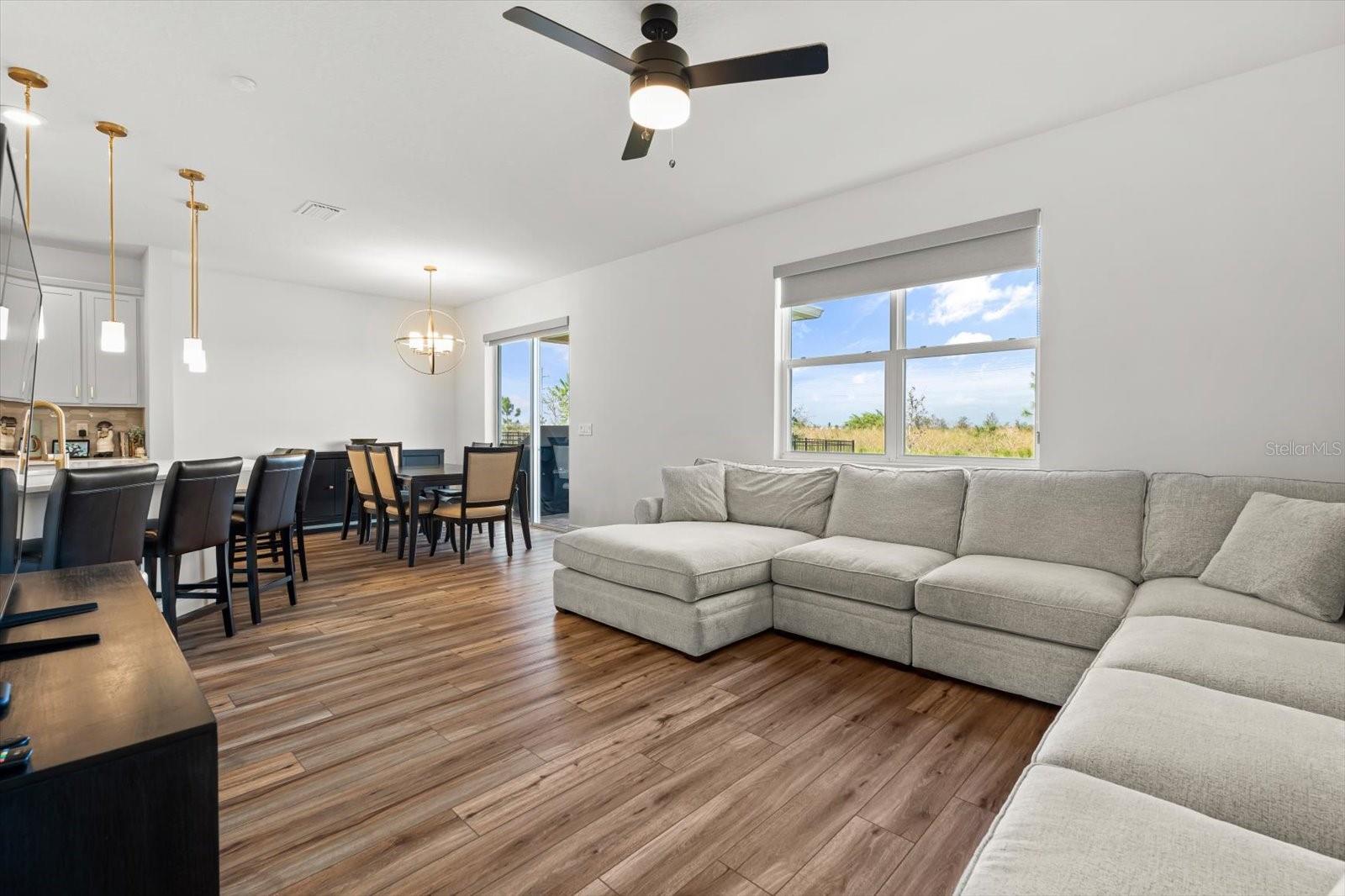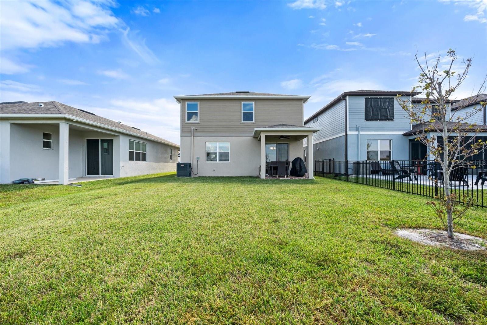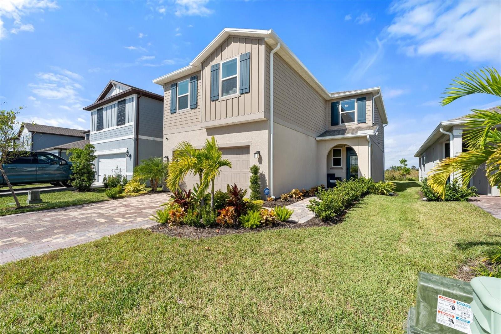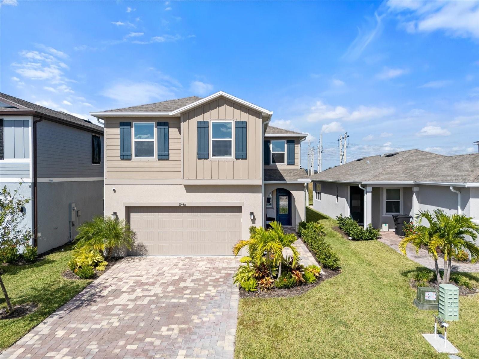 Discover this stunning home, built in 2023, nestled in the vibrant North River Ranch community. Featuring 5 spacious bedrooms - including a versatile first-floor bedroom that doubles as a stylish office - 2.5 bathrooms, and a spacious loft. With numerous upgraded features both before and after construction, this home is designed for modern living, boasting luxury vinyl wood plank flooring on the main level and plush Berber-style carpeting throughout the stairs and bedrooms. The exterior exudes charm with a brick-paved driveway, an inviting 8ft decorative glass front door, and impressive 9’4 ceilings. The gourmet kitchen is a chef’s dream, complete with 42” cabinets, quartz countertops, an extended breakfast bar, and high-end stainless-steel appliances - including a four-door refrigerator and a three-drawer dishwasher - along with stylish designer faucets and convenient soft-close drawers and doors. The office, equipped with elegant French doors, can easily serve as the fifth bedroom, while the expansive master bedroom invites you to indulge in the luxurious master bath, highlighted by a frameless glass shower enclosure. Additional features include ceiling fans in the living room and lanai, a Whirlpool stackable washer/dryer, a covered rear patio, and an insulated garage with epoxied floors. This home offers an upgraded lighting package that enhances the ambiance throughout, from the foyer to the dining area and all bathroom vanities. Located in the heart of the rapidly growing North River Ranch community, residents will soon enjoy access to new schools, shopping, and dining options, along with a forthcoming hospital. Take advantage of the nearby pavilion, which features a resort-style pool, fitness center, game room, playground, outdoor gym, soccer field, fire pits, swings, and serene pond seating, while a neighborhood trail meanders behind the home, leading to even more recreational facilities, including an additional pool across Moccasin Wallow and a new clubhouse with a heated pool being developed at the end of the trail. Don’t miss out on this incredible opportunity to call North River Ranch home!