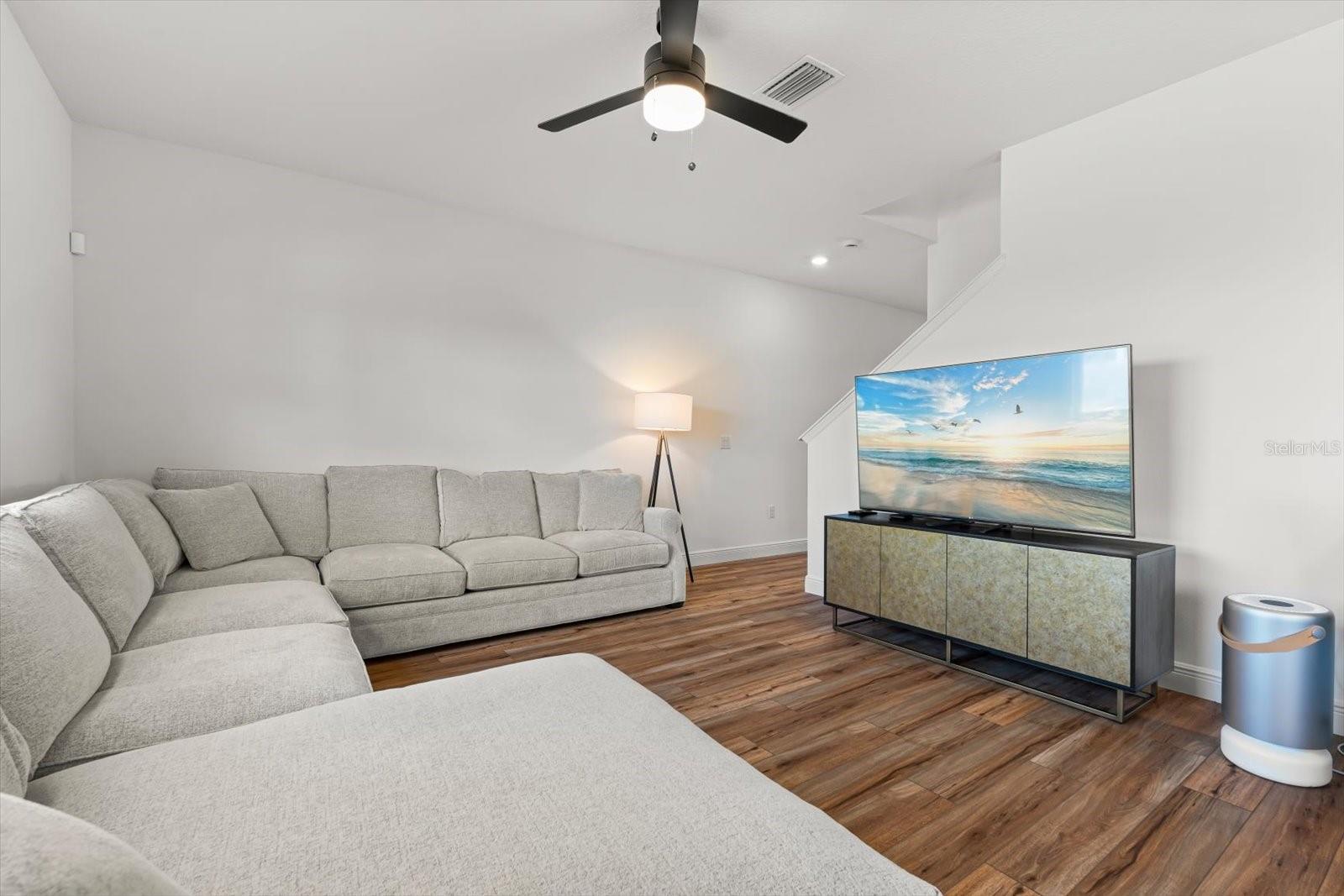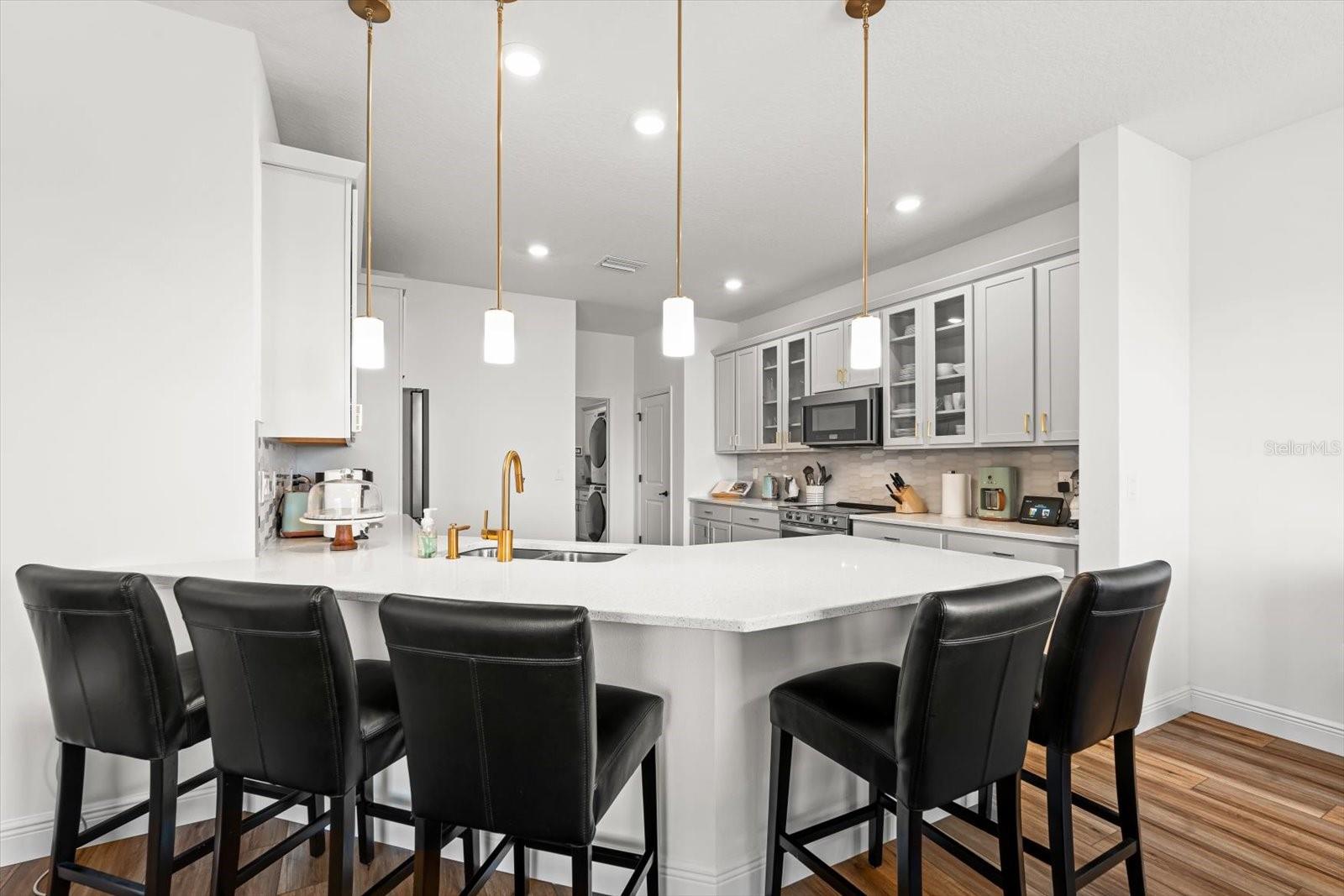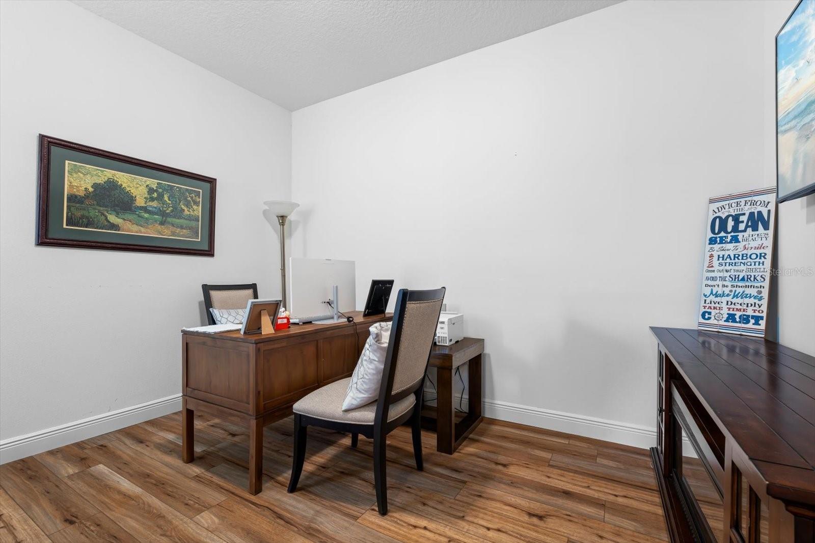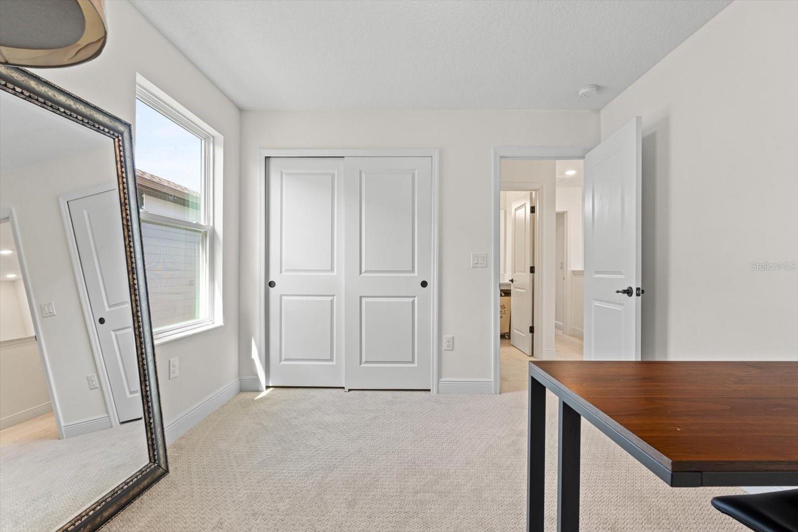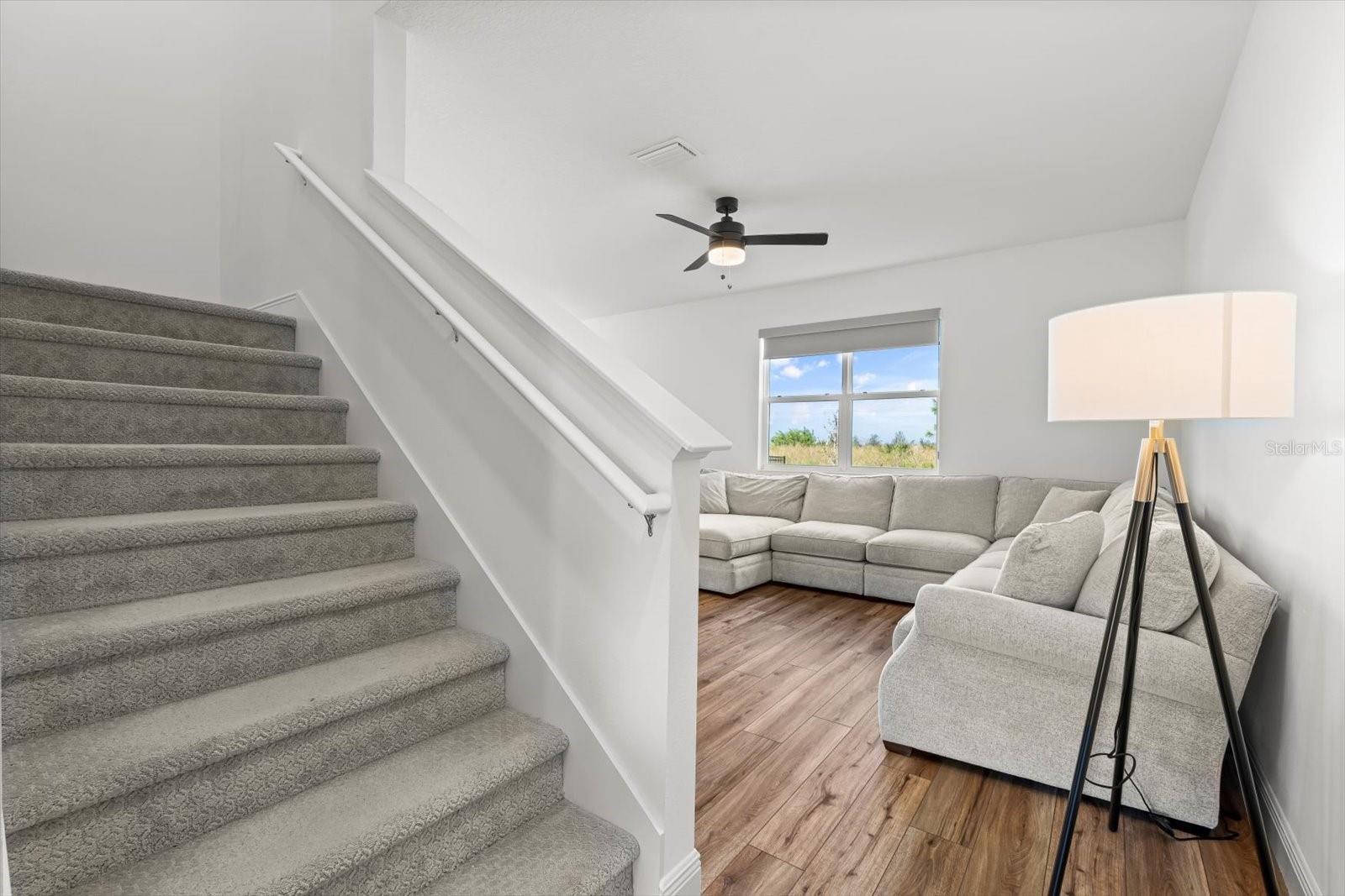 Discover this stunning home, built in 2023, nestled in the vibrant North River Ranch community. Featuring 5 spacious bedrooms - including a versatile first-floor bedroom that doubles as a stylish office - 2.5 bathrooms, and a spacious loft. With numerous upgraded features both before and after construction, this home is designed for modern living, boasting luxury vinyl wood plank flooring on the main level and plush Berber-style carpeting throughout the stairs and bedrooms. The exterior exudes charm with a brick-paved driveway, an inviting 8ft decorative glass front door, and impressive 9’4 ceilings. The gourmet kitchen is a chef’s dream, complete with 42” cabinets, quartz countertops, an extended breakfast bar, and high-end stainless-steel appliances - including a four-door refrigerator and a three-drawer dishwasher - along with stylish designer faucets and convenient soft-close drawers and doors. The office, equipped with elegant French doors, can easily serve as the fifth bedroom, while the expansive master bedroom invites you to indulge in the luxurious master bath, highlighted by a frameless glass shower enclosure. Additional features include ceiling fans in the living room and lanai, a Whirlpool stackable washer/dryer, a covered rear patio, and an insulated garage with epoxied floors. This home offers an upgraded lighting package that enhances the ambiance throughout, from the foyer to the dining area and all bathroom vanities. Located in the heart of the rapidly growing North River Ranch community, residents will soon enjoy access to new schools, shopping, and dining options, along with a forthcoming hospital. Take advantage of the nearby pavilion, which features a resort-style pool, fitness center, game room, playground, outdoor gym, soccer field, fire pits, swings, and serene pond seating, while a neighborhood trail meanders behind the home, leading to even more recreational facilities, including an additional pool across Moccasin Wallow and a new clubhouse with a heated pool being developed at the end of the trail. Don’t miss out on this incredible opportunity to call North River Ranch home!