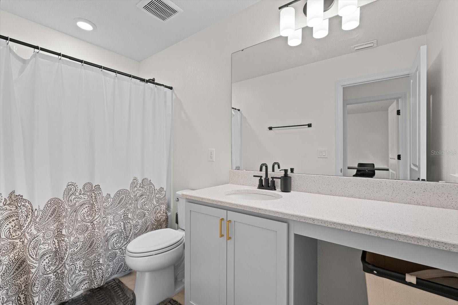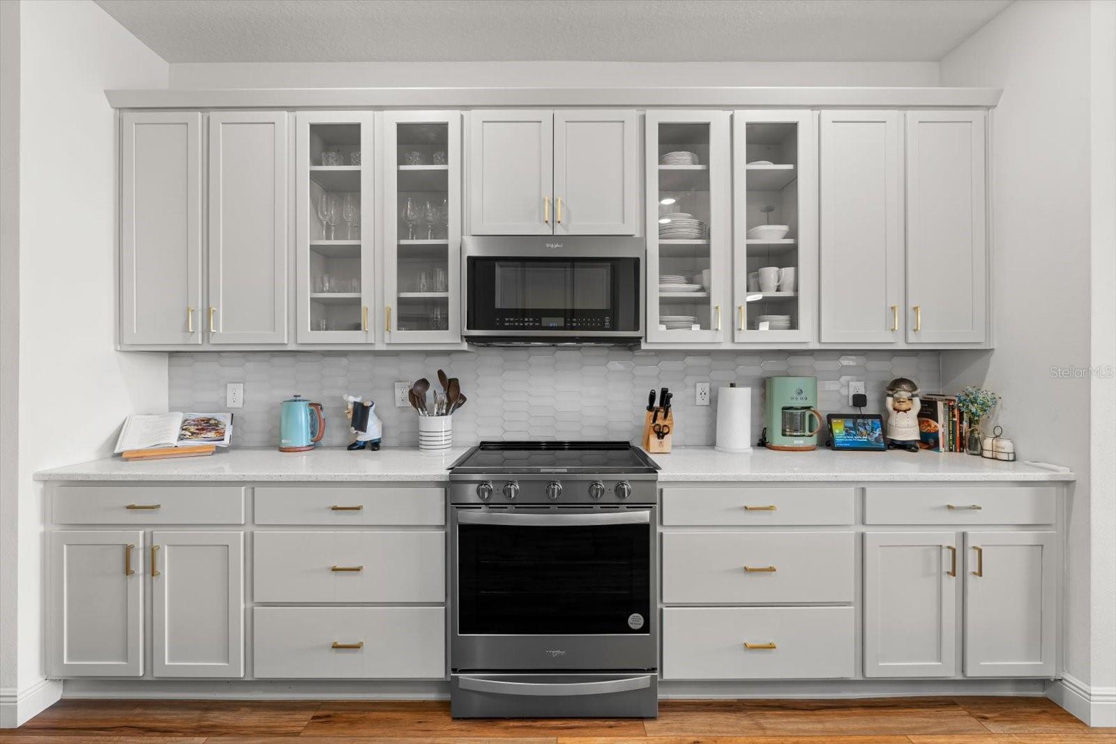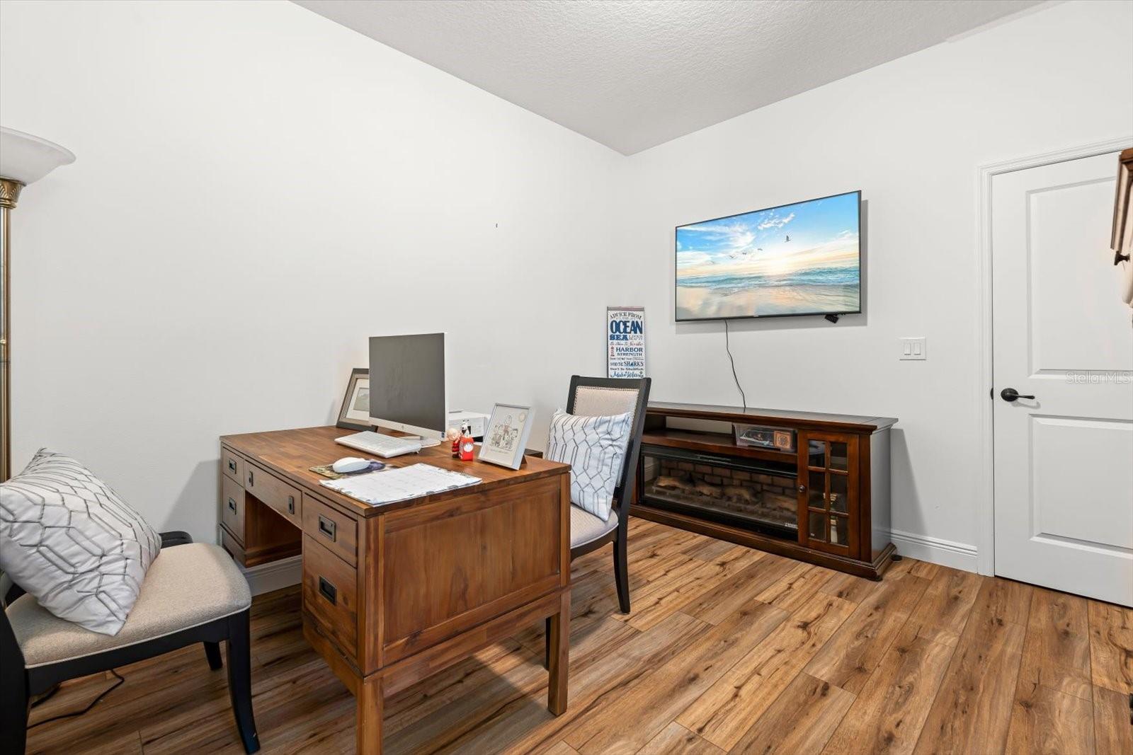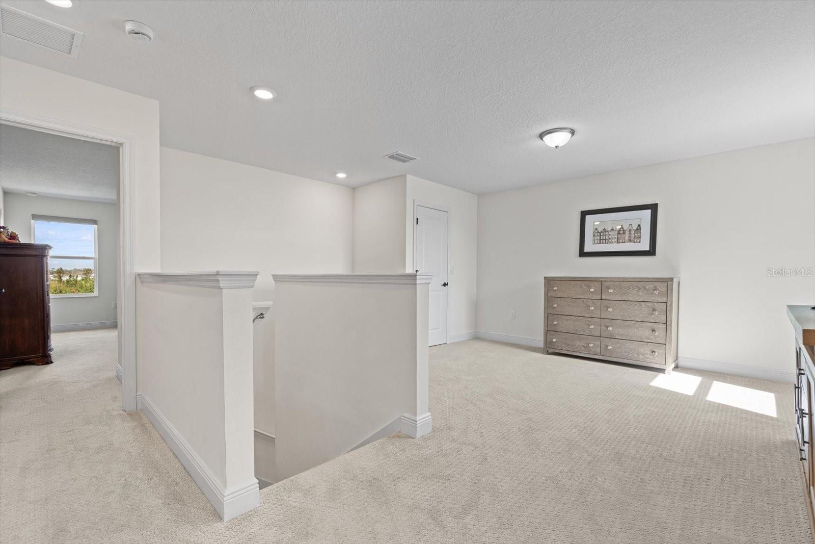 Discover this stunning home, built in 2023, nestled in the vibrant North River Ranch community. Featuring 5 spacious bedrooms - including a versatile first-floor bedroom that doubles as a stylish office - 2.5 bathrooms, and a spacious loft. With numerous upgraded features both before and after construction, this home is designed for modern living, boasting luxury vinyl wood plank flooring on the main level and plush Berber-style carpeting throughout the stairs and bedrooms. The exterior exudes charm with a brick-paved driveway, an inviting 8ft decorative glass front door, and impressive 9’4 ceilings. The gourmet kitchen is a chef’s dream, complete with 42” cabinets, quartz countertops, an extended breakfast bar, and high-end stainless-steel appliances - including a four-door refrigerator and a three-drawer dishwasher - along with stylish designer faucets and convenient soft-close drawers and doors. The office, equipped with elegant French doors, can easily serve as the fifth bedroom, while the expansive master bedroom invites you to indulge in the luxurious master bath, highlighted by a frameless glass shower enclosure. Additional features include ceiling fans in the living room and lanai, a Whirlpool stackable washer/dryer, a covered rear patio, and an insulated garage with epoxied floors. This home offers an upgraded lighting package that enhances the ambiance throughout, from the foyer to the dining area and all bathroom vanities. Located in the heart of the rapidly growing North River Ranch community, residents will soon enjoy access to new schools, shopping, and dining options, along with a forthcoming hospital. Take advantage of the nearby pavilion, which features a resort-style pool, fitness center, game room, playground, outdoor gym, soccer field, fire pits, swings, and serene pond seating, while a neighborhood trail meanders behind the home, leading to even more recreational facilities, including an additional pool across Moccasin Wallow and a new clubhouse with a heated pool being developed at the end of the trail. Don’t miss out on this incredible opportunity to call North River Ranch home!