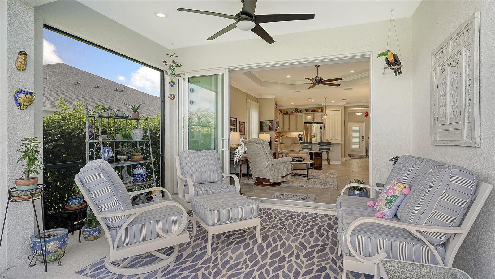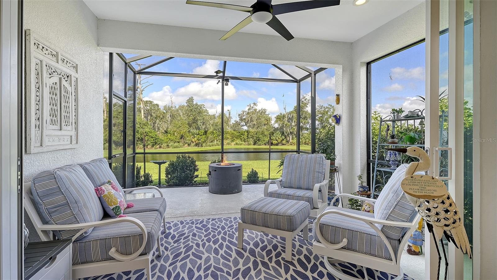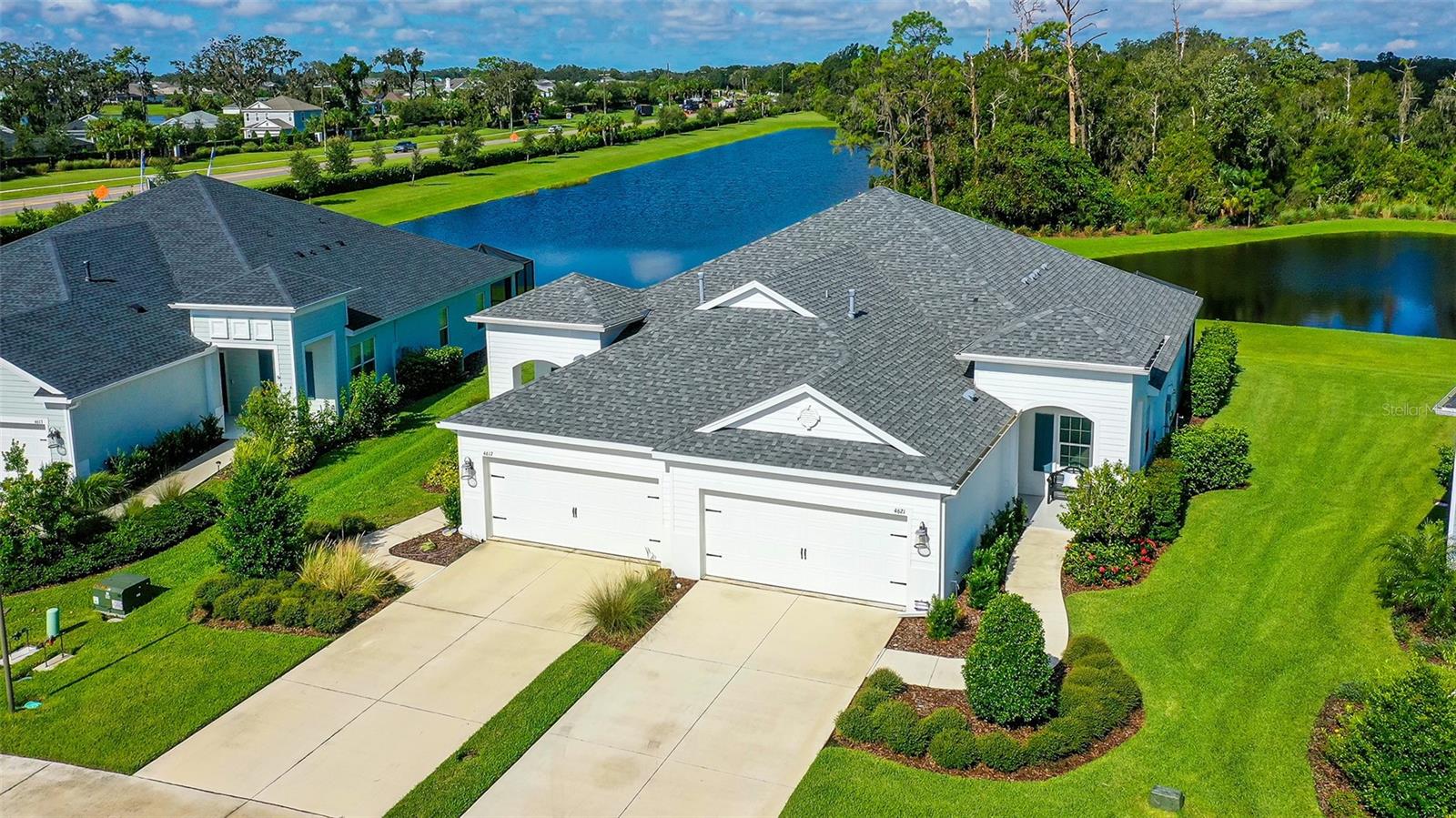 CANOE CREEK LOW MAITENANCE VILLA NOW AVAILALBE - NO CDD FEES! If you're seeking privacy, unmatched views of Florida's natural landscape and the serene sounds of wildlife while enjoying your morning coffee or evening wine, look no further. You can change the look of your home but you cannot change the location! This low maintenance villa at Canoe Creek was not only tastefully designed, the most perfect home site was chosen and only a few exist. MANY UPGRADES, INCLUDING IMPACT GLASS WINDOWS AND SLIDERS!! The Tidewater home design boasts 2 bedrooms + Den/office, 2 Full Baths & 2-Car Garage. The designer inspired selections in the kitchen are a chef's delight, complete with quartz countertops, ceramic tile decorative backsplash, custom cabinetry with portfolio full overlay and classic crown moulding accented with satin nickel hardware pulls. Not only is the kitchen beautiful but also designed for maximum functionality, featuring soft-close drawers, additional built-in storage and stainless steel appliances like the gas range, microwave, dishwasher, and french-door refrigerator. The generously sized primary bedroom offers an en-suite bath with dual vanity sinks, granite countertops, frameless shower glass enclosure and dual walk-in closets. This home exudes a pride of ownership, enjoy ceramic tile flooring throughout with higher-level carpet in bedrooms, 8'ft doors, Tray ceiling and additional recessed lighting. Step out of your pocketing sliding glass doors to an enclosed extended lanai perfect for relaxation with views of the lake and nature preserve. The exterior of this home is complimented by it's coastal charm design, well-maintained landscaping and hardi-plank siding for added durability and low maintenance. Canoe Creek is conveniently located off of Golf Course Road in Parrish with easy access to all the new shopping centers with Home Goods, Lowes, Marshalls and more! In your free-time enjoy all this resort-style community has to offer. Villa residents enjoy their own private community pool or have access to the larger pool at the gathering center, a fitness center, dog park, and pickle-ball courts. Don't miss your opportunity to call this beautiful villa home and schedule a private viewing today!