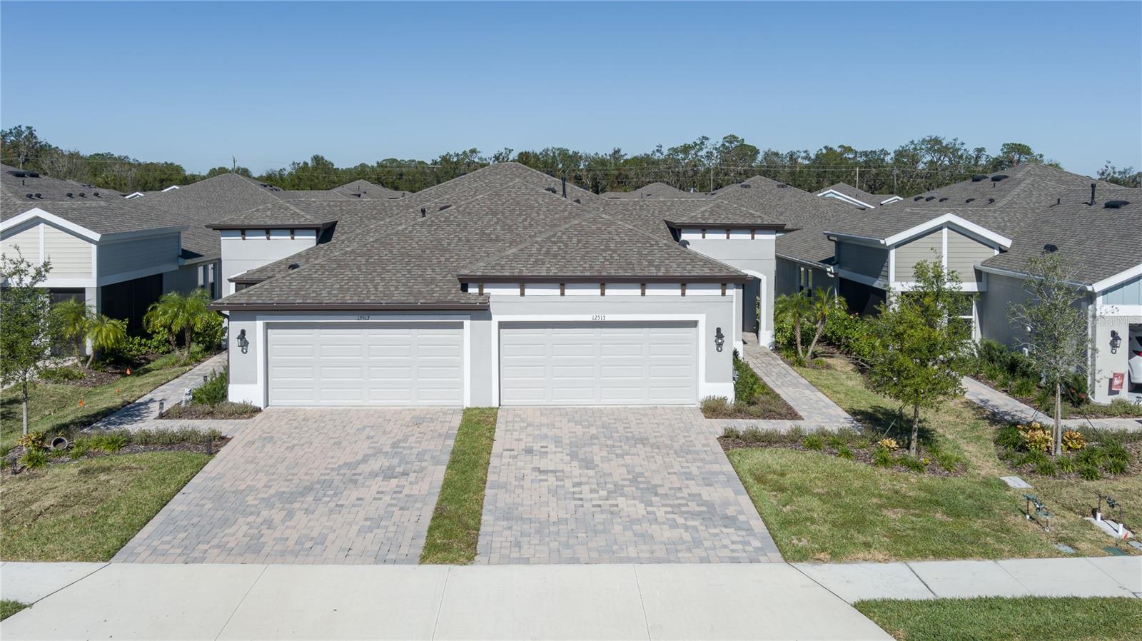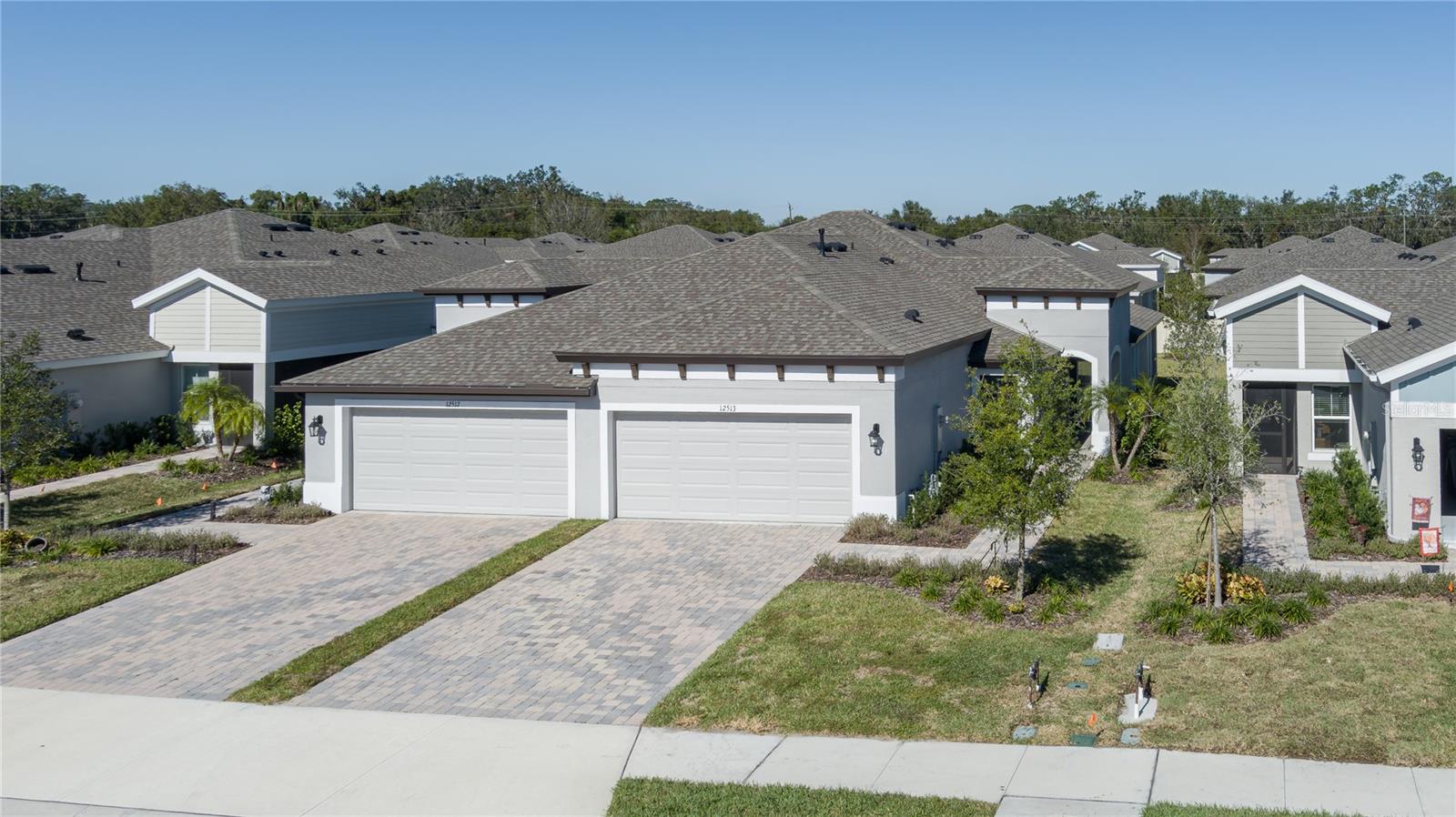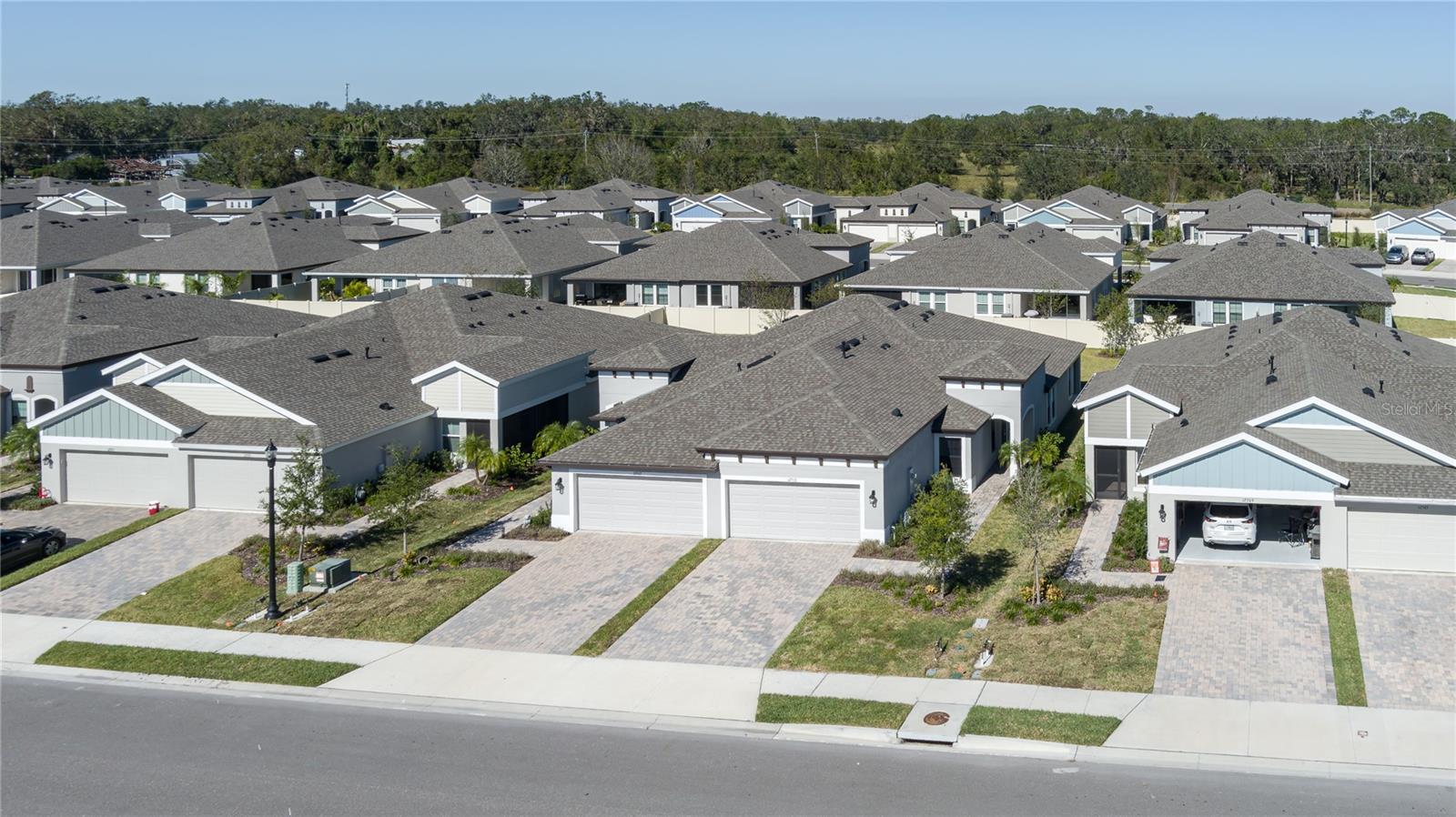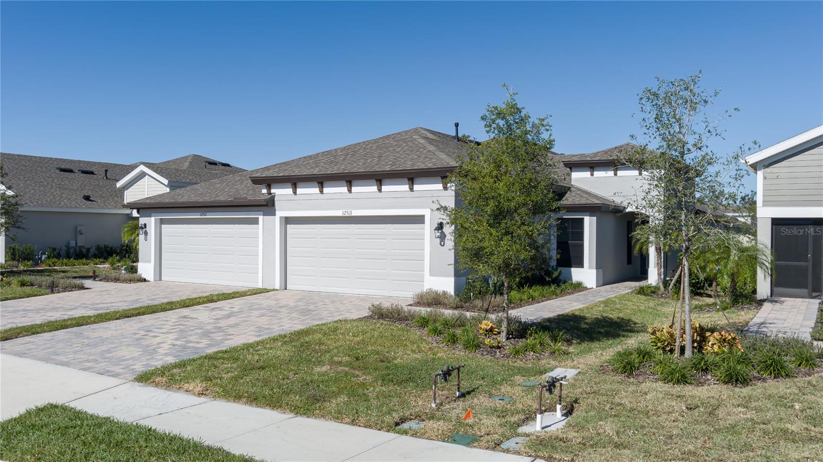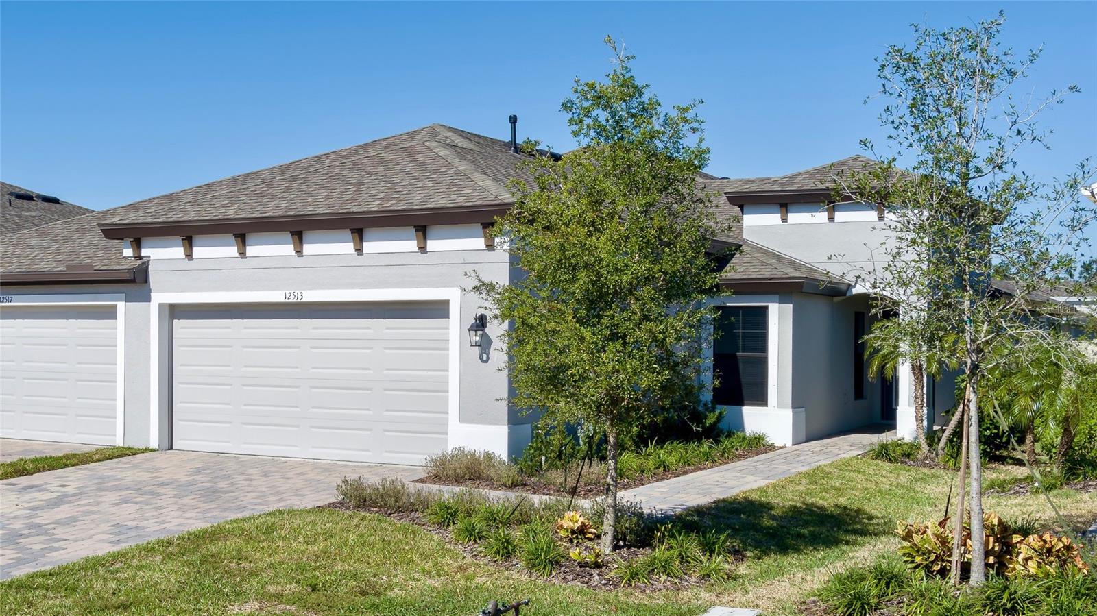 Discover the perfect blend of modern elegance and comfortable living in this stunning 3-bedroom, 2-bathroom paired-villa with a 2-car garage. Thoughtfully designed with a split floor plan for privacy and convenience, this home features vaulted ceilings and an open layout that bathes every corner in natural light. Boasting a “model home” feel, this residence is packed with upgrades to enhance your lifestyle. The deluxe kitchen is a chef’s dream, complete with 42-inch raised cabinets with crown molding, quartz countertops, and large island with breakfast bar. Cooking is a breeze with the upgraded GE Café series stainless appliances, a coffee bar, under-cabinet lighting, and chic glass backsplash. A spacious walk-in pantry with five levels of storage ensures everything has its place. The primary suite is a private retreat, offering a luxurious en suite with dual sinks, quartz counters, makeup vanity, a large glass-enclosed walk-in shower with bench, private water closet, linen closet, and an expansive walk-in closet. Two additional bedrooms and a beautifully designed guest bathroom with a quartz countertop and fully tiled shower make this home ideal for hosting family and friends. Situated on a quiet interior lot, the outdoor space is perfect for morning coffees or unwinding in the evening. With maintenance-free living and low HOA fees, you’ll have more time to enjoy the resort-style amenities of Crosswind Point, including scenic water and conservation views, a pool and cabana, a playground, and pocket parks. Located just minutes from US-301 and I-75, this home offers easy access to downtown St. Petersburg and Sarasota (30 minutes), downtown Tampa (40 minutes), and the best of Gulf Coast beaches, shopping, and dining. This home is your gateway to the ultimate Florida lifestyle—don’t miss it!