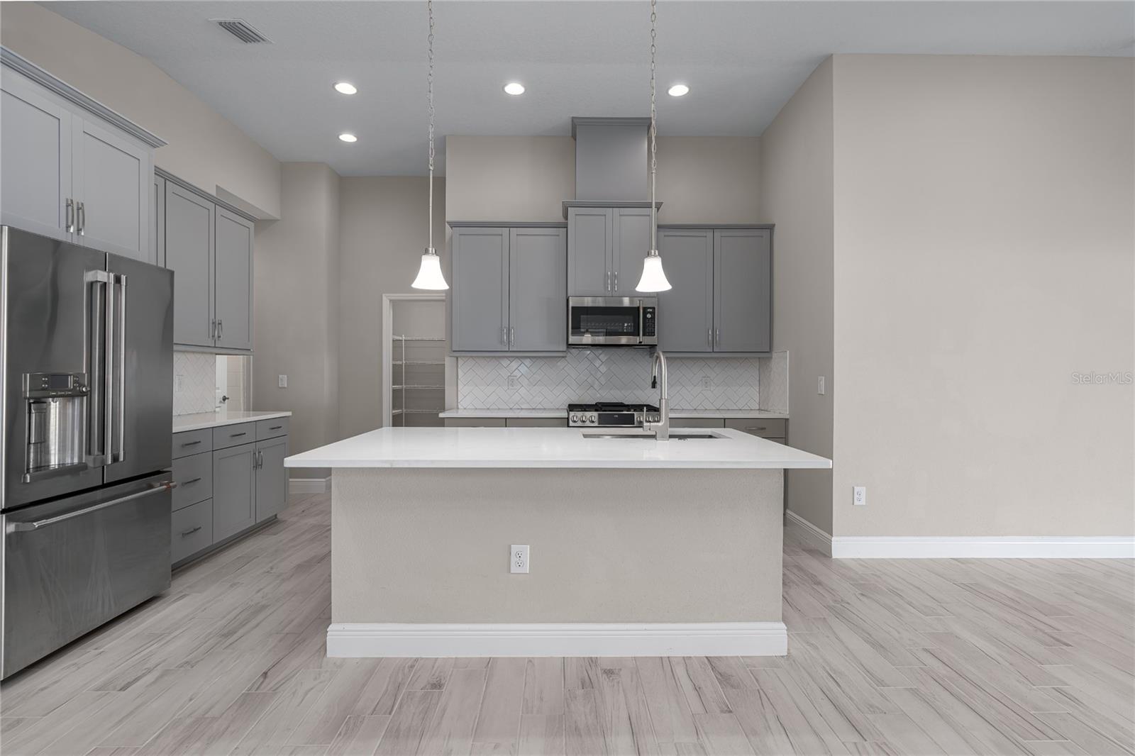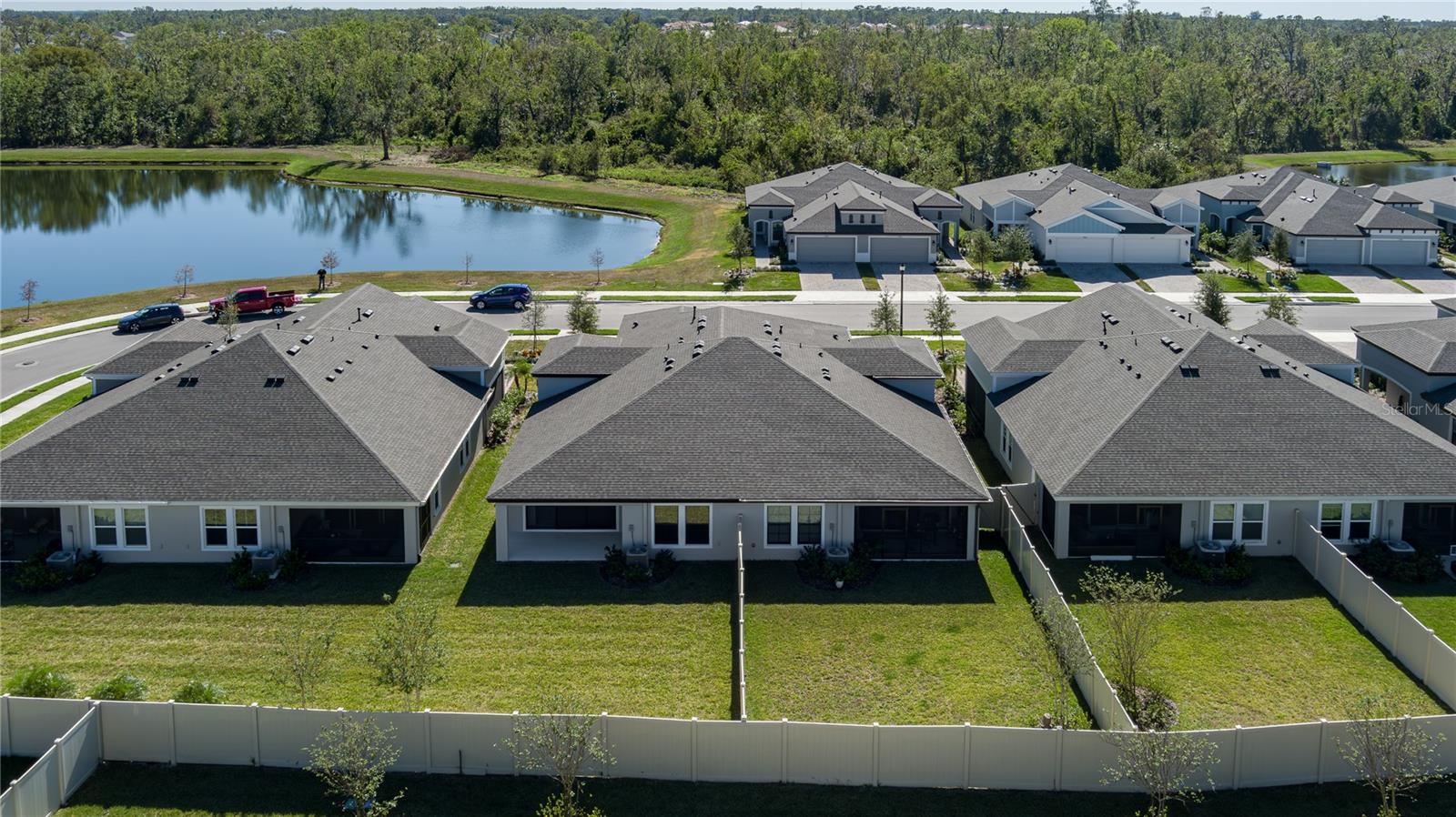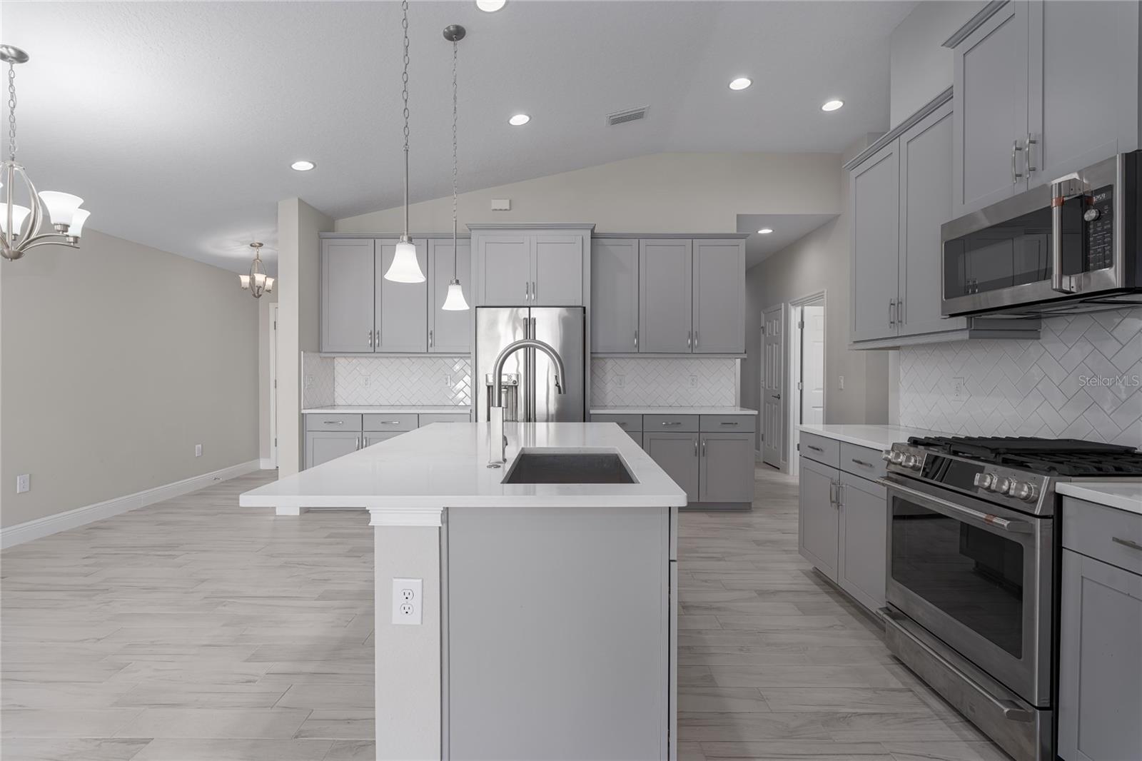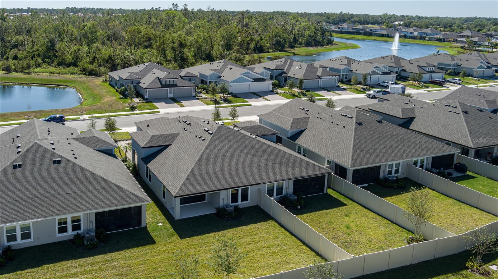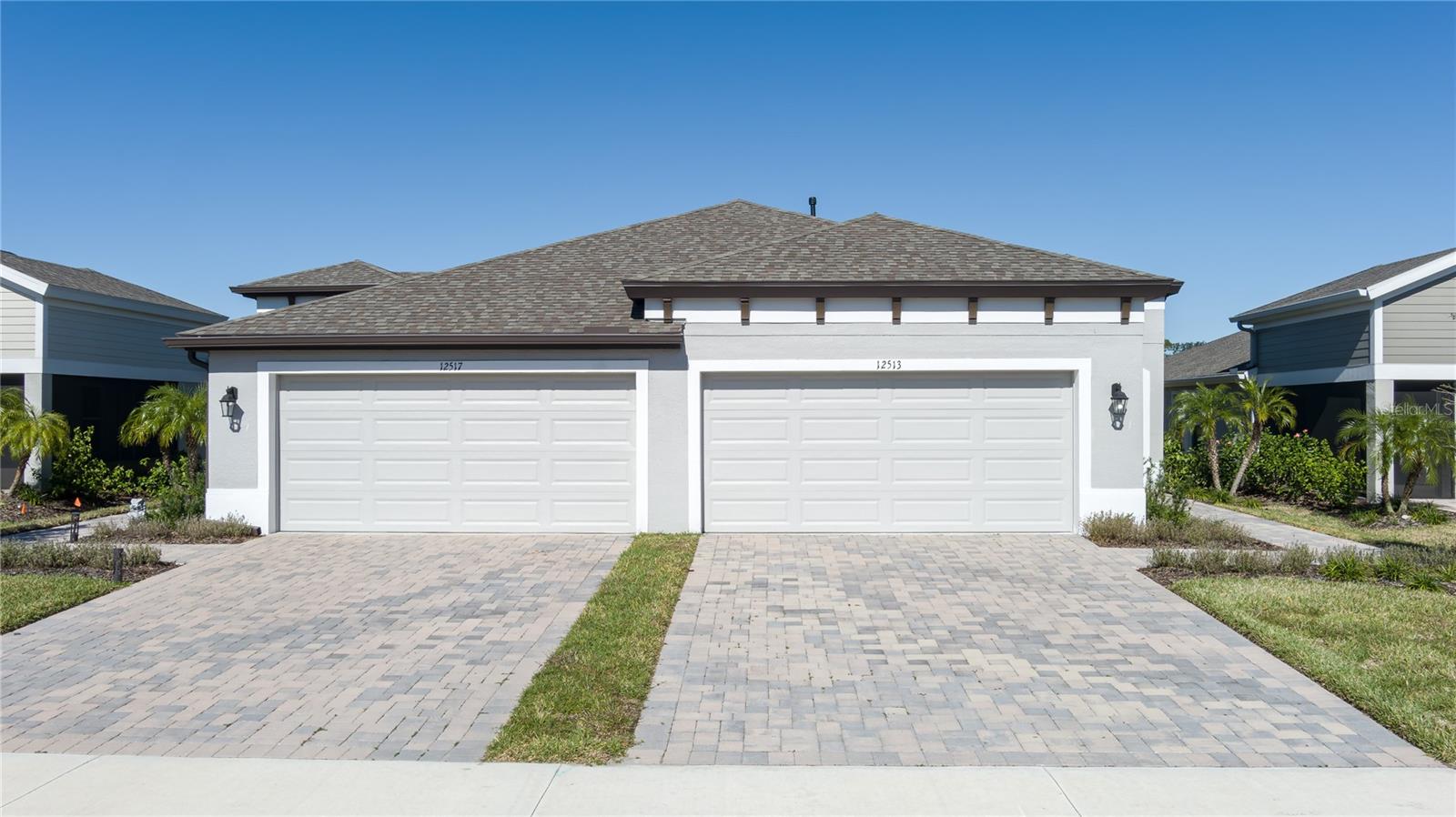 Discover the perfect blend of modern elegance and comfortable living in this stunning 3-bedroom, 2-bathroom paired-villa with a 2-car garage. Thoughtfully designed with a split floor plan for privacy and convenience, this home features vaulted ceilings and an open layout that bathes every corner in natural light. Boasting a “model home” feel, this residence is packed with upgrades to enhance your lifestyle. The deluxe kitchen is a chef’s dream, complete with 42-inch raised cabinets with crown molding, quartz countertops, and large island with breakfast bar. Cooking is a breeze with the upgraded GE Café series stainless appliances, a coffee bar, under-cabinet lighting, and chic glass backsplash. A spacious walk-in pantry with five levels of storage ensures everything has its place. The primary suite is a private retreat, offering a luxurious en suite with dual sinks, quartz counters, makeup vanity, a large glass-enclosed walk-in shower with bench, private water closet, linen closet, and an expansive walk-in closet. Two additional bedrooms and a beautifully designed guest bathroom with a quartz countertop and fully tiled shower make this home ideal for hosting family and friends. Situated on a quiet interior lot, the outdoor space is perfect for morning coffees or unwinding in the evening. With maintenance-free living and low HOA fees, you’ll have more time to enjoy the resort-style amenities of Crosswind Point, including scenic water and conservation views, a pool and cabana, a playground, and pocket parks. Located just minutes from US-301 and I-75, this home offers easy access to downtown St. Petersburg and Sarasota (30 minutes), downtown Tampa (40 minutes), and the best of Gulf Coast beaches, shopping, and dining. This home is your gateway to the ultimate Florida lifestyle—don’t miss it!