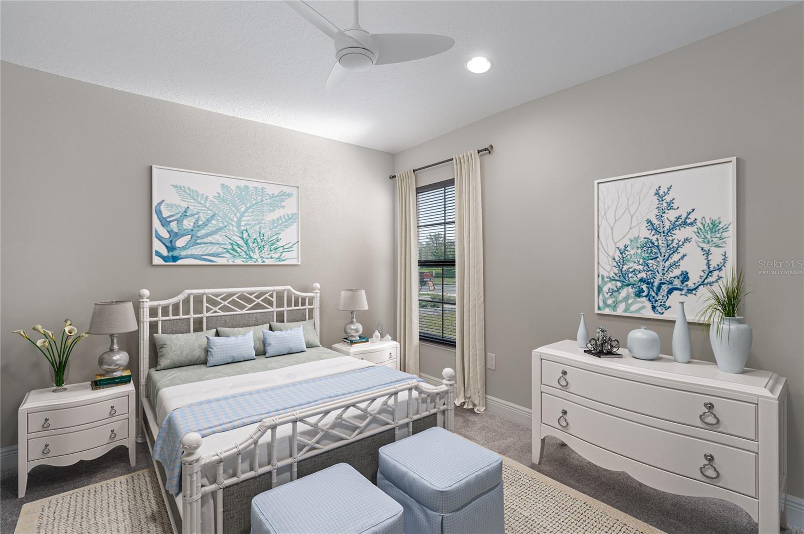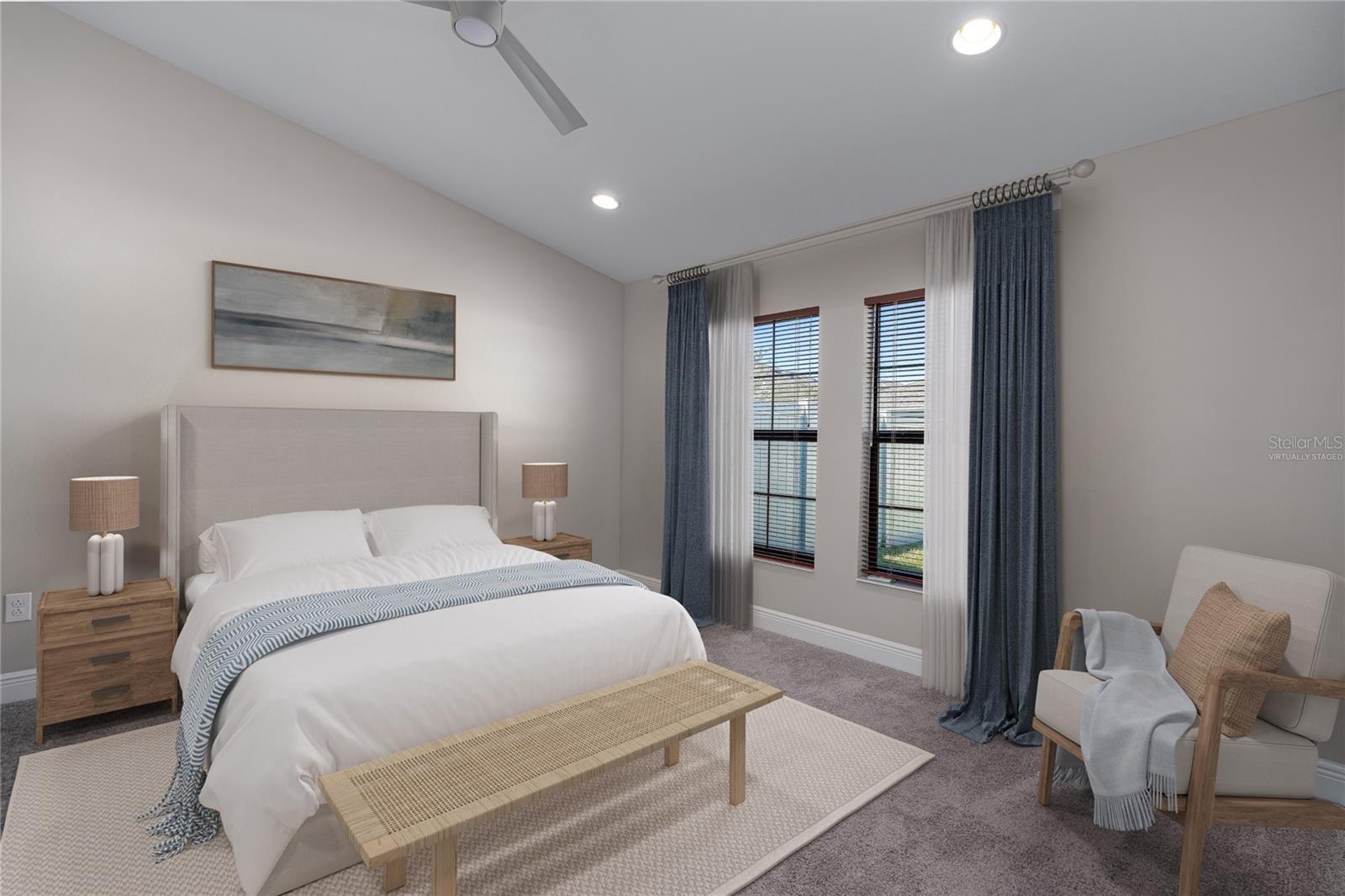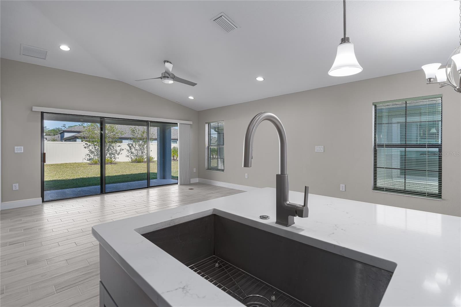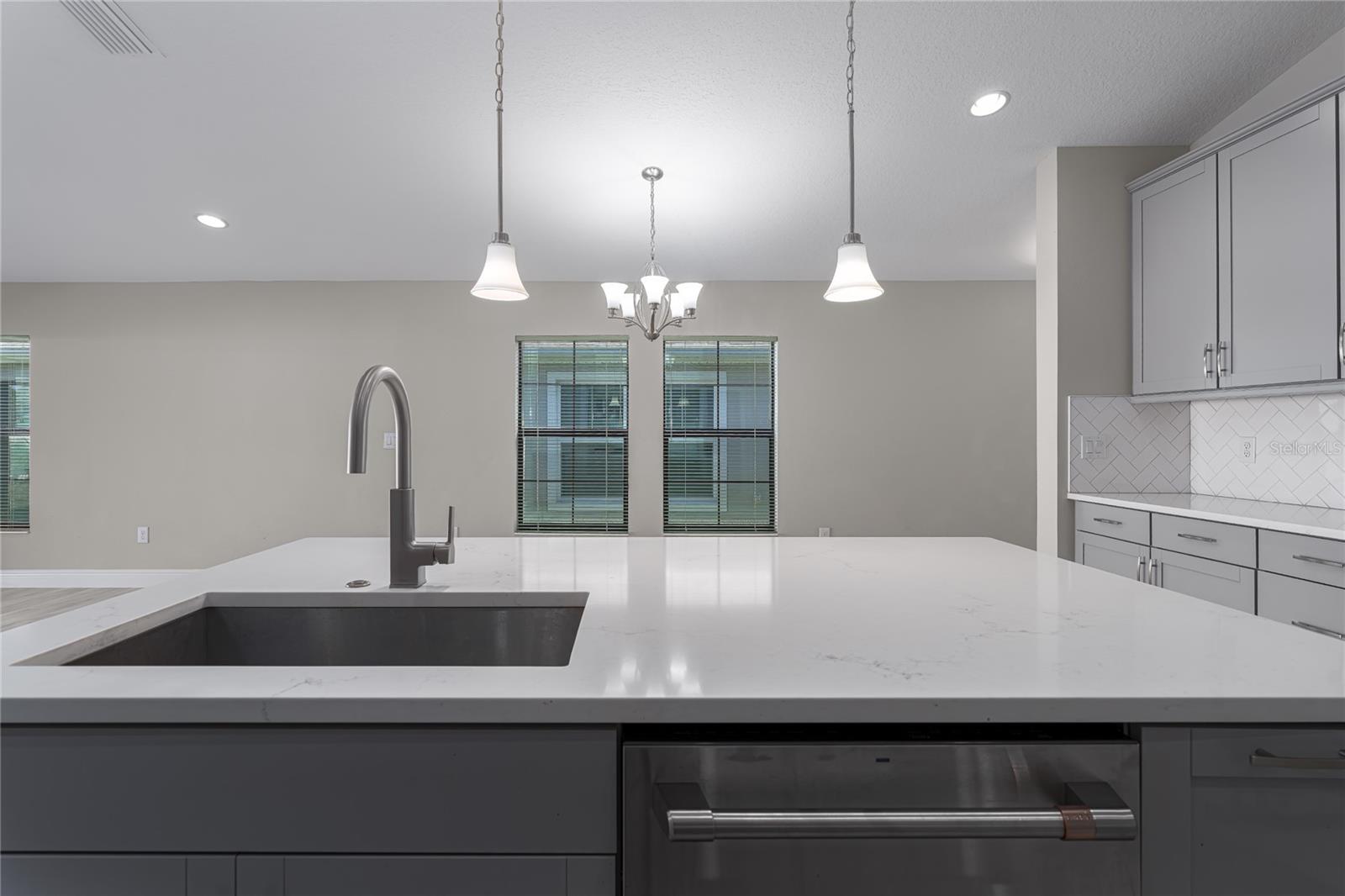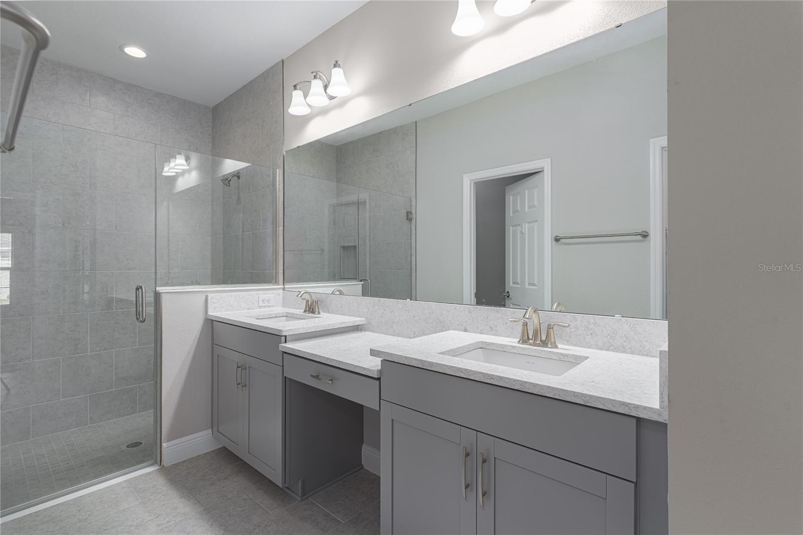 Discover the perfect blend of modern elegance and comfortable living in this stunning 3-bedroom, 2-bathroom paired-villa with a 2-car garage. Thoughtfully designed with a split floor plan for privacy and convenience, this home features vaulted ceilings and an open layout that bathes every corner in natural light. Boasting a “model home” feel, this residence is packed with upgrades to enhance your lifestyle. The deluxe kitchen is a chef’s dream, complete with 42-inch raised cabinets with crown molding, quartz countertops, and large island with breakfast bar. Cooking is a breeze with the upgraded GE Café series stainless appliances, a coffee bar, under-cabinet lighting, and chic glass backsplash. A spacious walk-in pantry with five levels of storage ensures everything has its place. The primary suite is a private retreat, offering a luxurious en suite with dual sinks, quartz counters, makeup vanity, a large glass-enclosed walk-in shower with bench, private water closet, linen closet, and an expansive walk-in closet. Two additional bedrooms and a beautifully designed guest bathroom with a quartz countertop and fully tiled shower make this home ideal for hosting family and friends. Situated on a quiet interior lot, the outdoor space is perfect for morning coffees or unwinding in the evening. With maintenance-free living and low HOA fees, you’ll have more time to enjoy the resort-style amenities of Crosswind Point, including scenic water and conservation views, a pool and cabana, a playground, and pocket parks. Located just minutes from US-301 and I-75, this home offers easy access to downtown St. Petersburg and Sarasota (30 minutes), downtown Tampa (40 minutes), and the best of Gulf Coast beaches, shopping, and dining. This home is your gateway to the ultimate Florida lifestyle—don’t miss it!