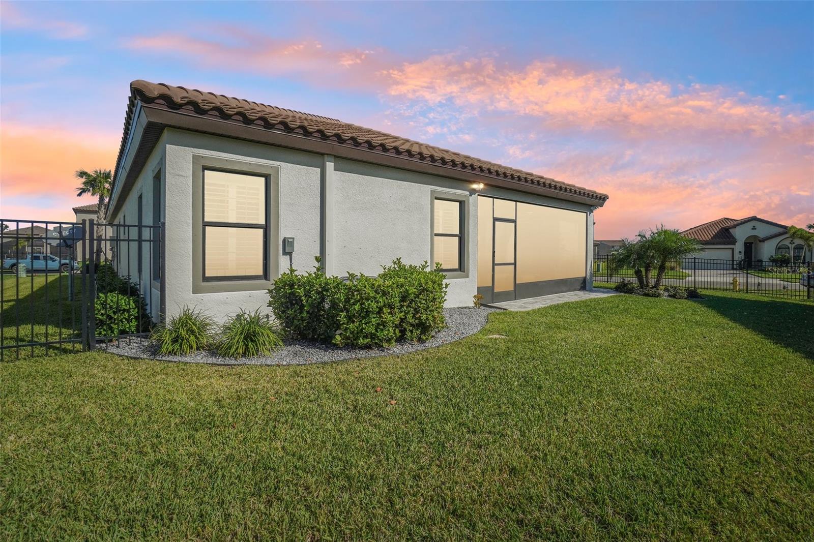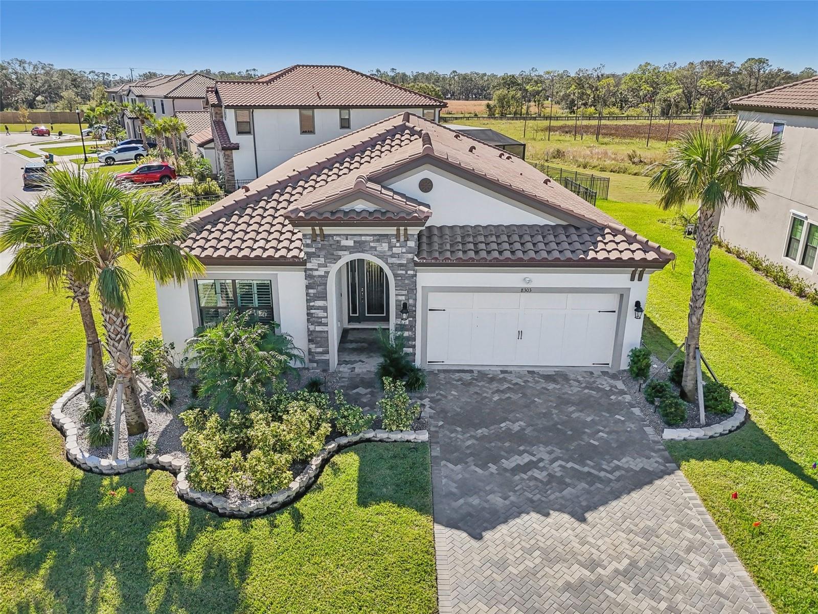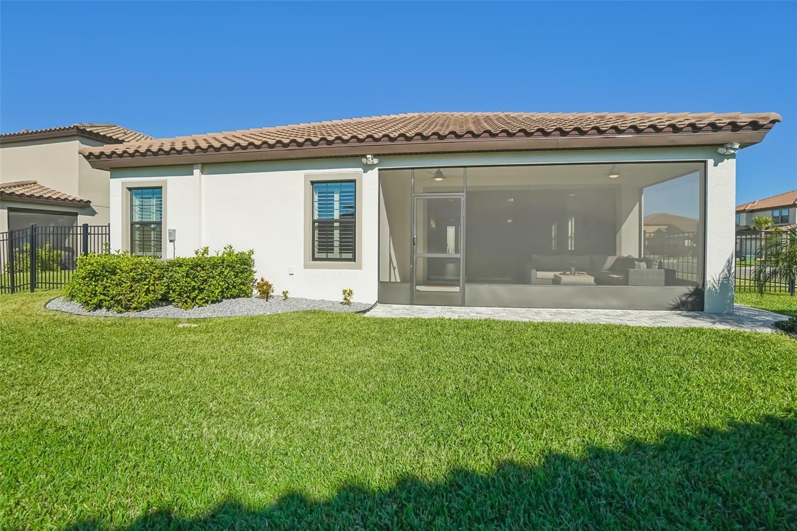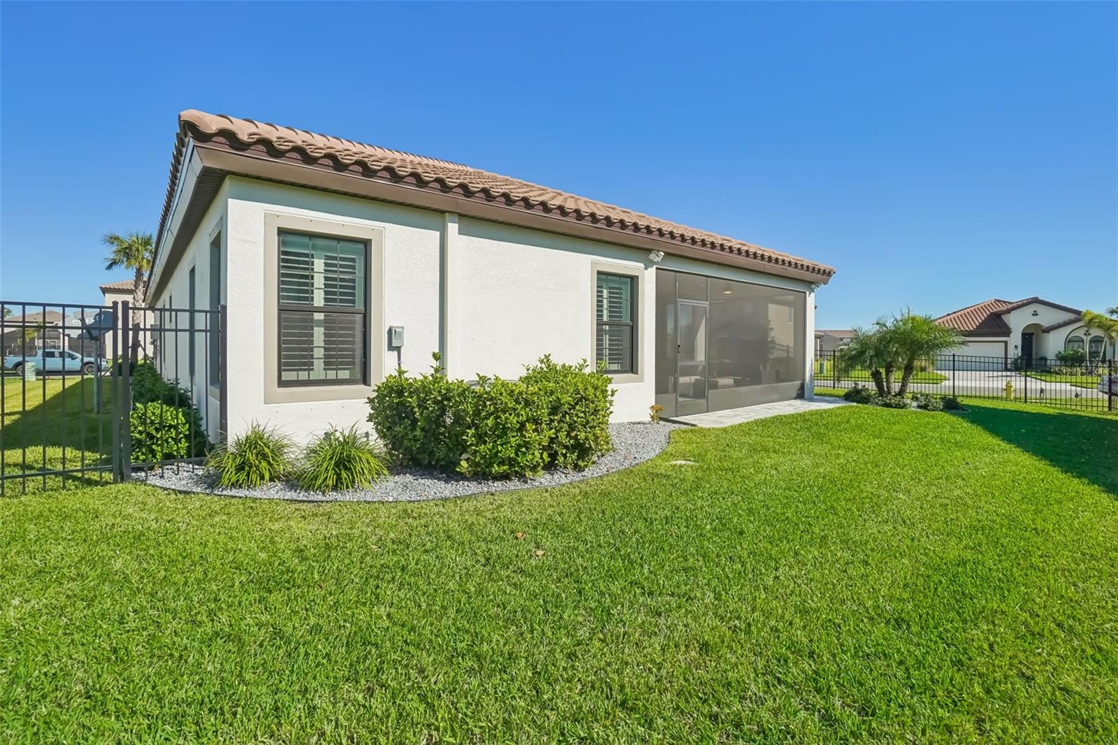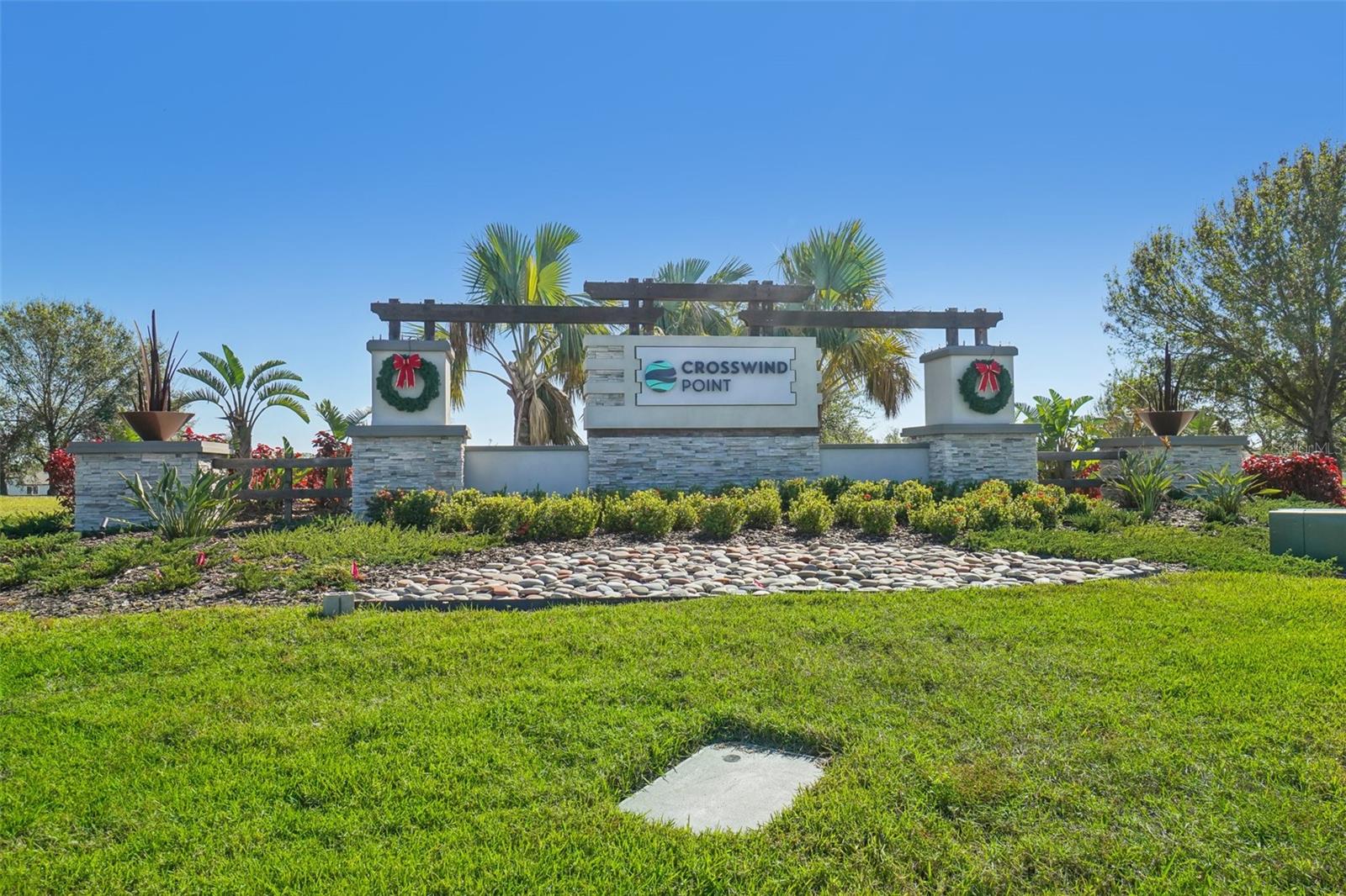 One or more photo(s) has been virtually staged. Model-Perfect Home in Crosswind Ranch – Move-In Ready & Loaded with Upgrades! Why wait for new construction when this pristine Sandpiper model by Homes by WestBay is ready now? Located in the highly sought-after Crosswind Ranch community of Parrish, this stunning 3-bedroom, 3-bathroom home with a bonus den/office is less than 2 years old and shows like a model! Situated on a spacious corner lot with a partial preserve view, this home offers privacy, space, and thoughtful design throughout. The open-concept floor plan features a gourmet kitchen with upgraded quartz countertops, elegant cabinetry with crown molding, a large center island, and gas availability for your stove. Enjoy casual meals in the bright dining nook or entertain effortlessly in the expansive great room, where sliding glass doors lead to the extended screened-in lanai—perfect for relaxing or dining al fresco while watching local wildlife. Every bedroom is thoughtfully positioned for privacy, and one includes its own en-suite bath—ideal for guests or a mother-in-law suite. The luxurious primary suite features two walk-in closets, blackout shades behind stylish plantation shutters, and a spa-like bath with an oversized walk-in shower. Additional upgrades include tray ceilings with crown molding, 8' interior doors, a tankless water heater, and a hospital-grade water filtration system. The fully fenced backyard offers plenty of room for a future pool and showcases a peaceful conservation backdrop. This home also includes a washer, dryer, and refrigerator, adding to its move-in-ready appeal. Enjoy all the charm and quality of this growing community, complete with tile roofs, paver driveways, and easy access to US-301, I-75, St. Pete (30 mins), and Tampa (45 mins).