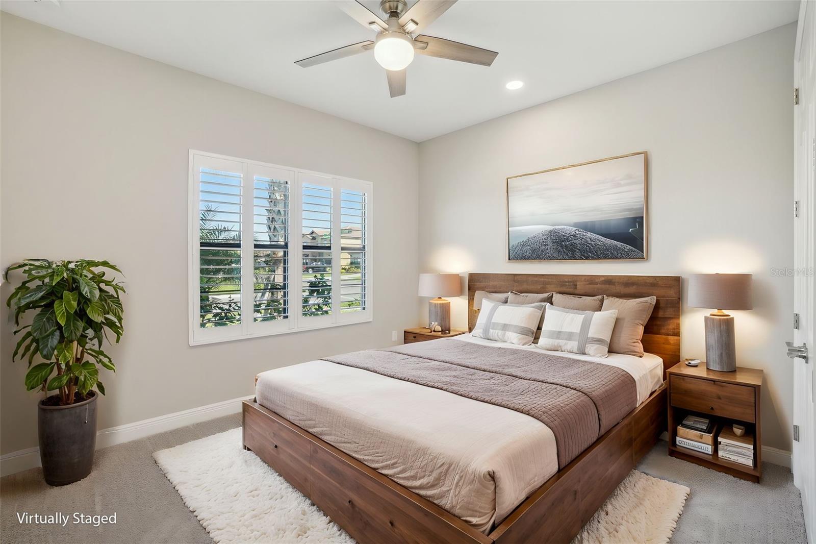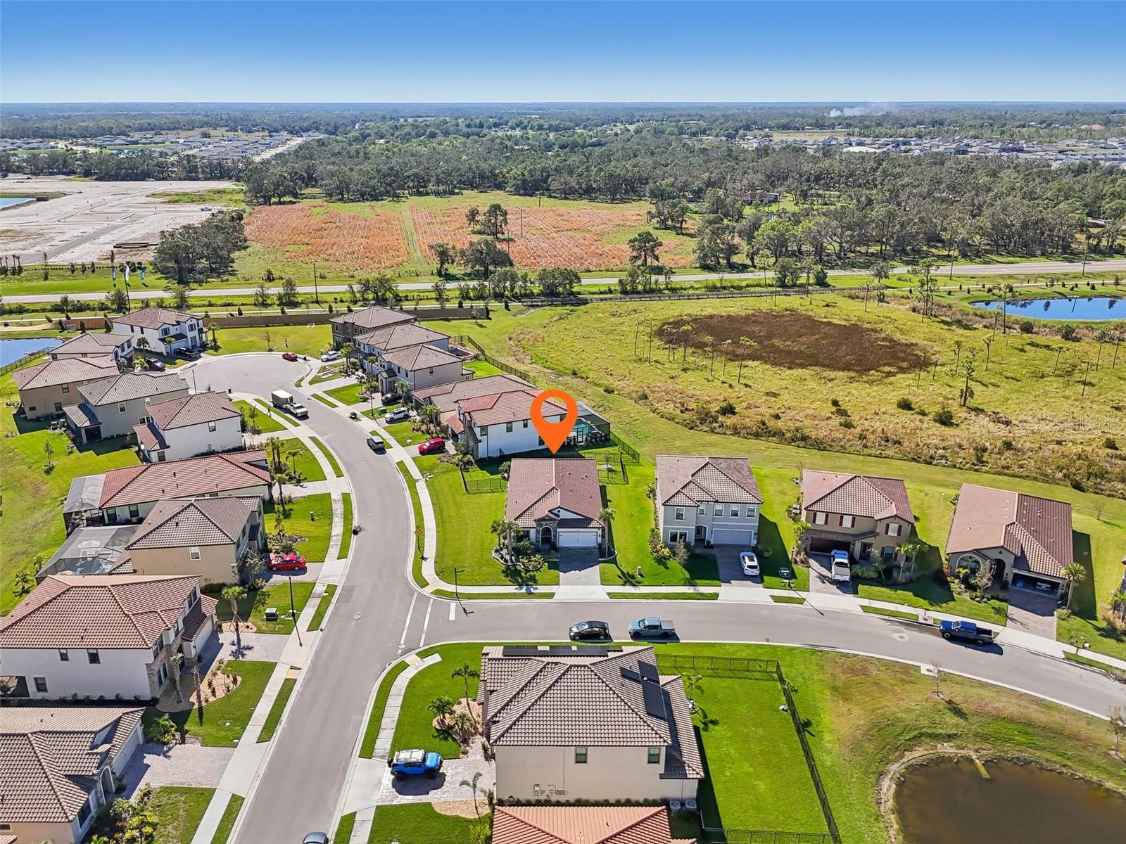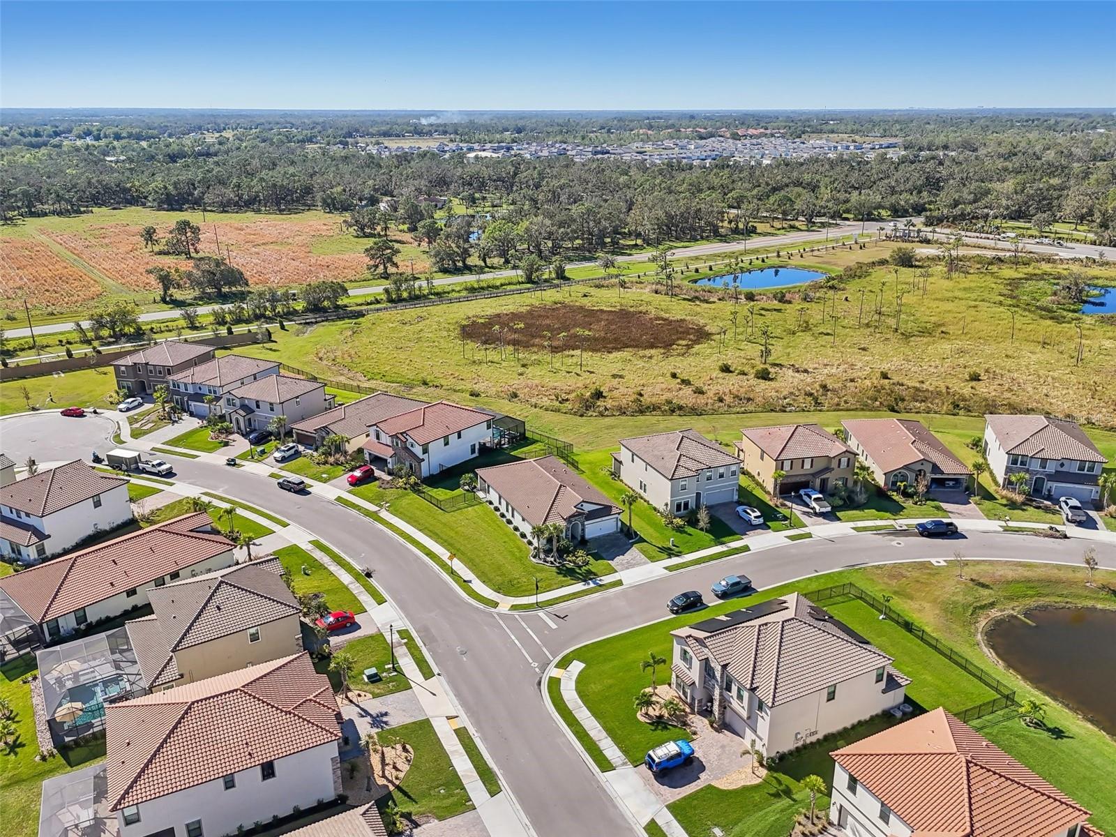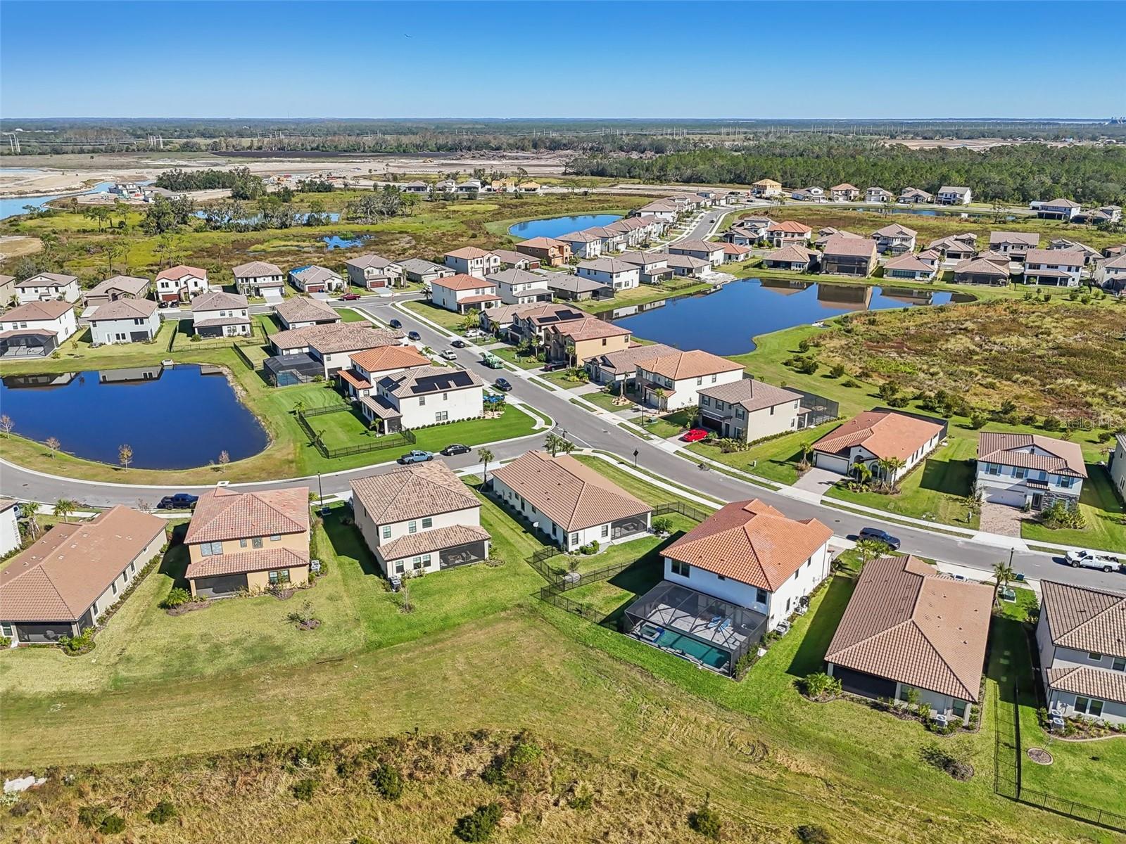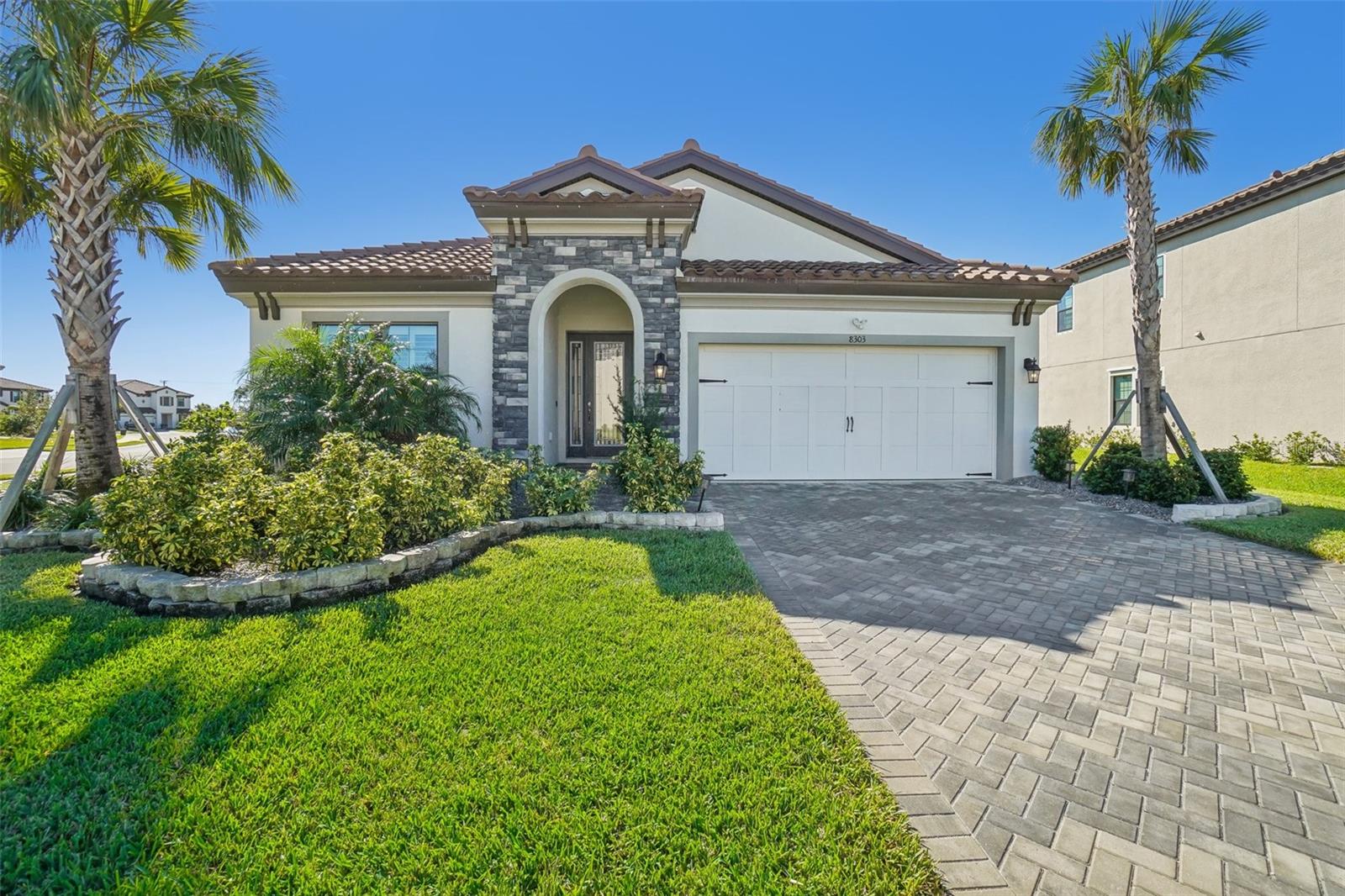 One or more photo(s) has been virtually staged. Model-Perfect Home in Crosswind Ranch – Move-In Ready & Loaded with Upgrades! Why wait for new construction when this pristine Sandpiper model by Homes by WestBay is ready now? Located in the highly sought-after Crosswind Ranch community of Parrish, this stunning 3-bedroom, 3-bathroom home with a bonus den/office is less than 2 years old and shows like a model! Situated on a spacious corner lot with a partial preserve view, this home offers privacy, space, and thoughtful design throughout. The open-concept floor plan features a gourmet kitchen with upgraded quartz countertops, elegant cabinetry with crown molding, a large center island, and gas availability for your stove. Enjoy casual meals in the bright dining nook or entertain effortlessly in the expansive great room, where sliding glass doors lead to the extended screened-in lanai—perfect for relaxing or dining al fresco while watching local wildlife. Every bedroom is thoughtfully positioned for privacy, and one includes its own en-suite bath—ideal for guests or a mother-in-law suite. The luxurious primary suite features two walk-in closets, blackout shades behind stylish plantation shutters, and a spa-like bath with an oversized walk-in shower. Additional upgrades include tray ceilings with crown molding, 8' interior doors, a tankless water heater, and a hospital-grade water filtration system. The fully fenced backyard offers plenty of room for a future pool and showcases a peaceful conservation backdrop. This home also includes a washer, dryer, and refrigerator, adding to its move-in-ready appeal. Enjoy all the charm and quality of this growing community, complete with tile roofs, paver driveways, and easy access to US-301, I-75, St. Pete (30 mins), and Tampa (45 mins).
