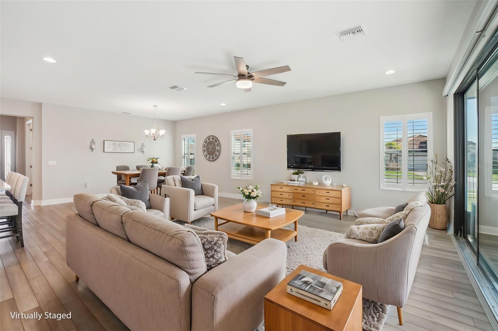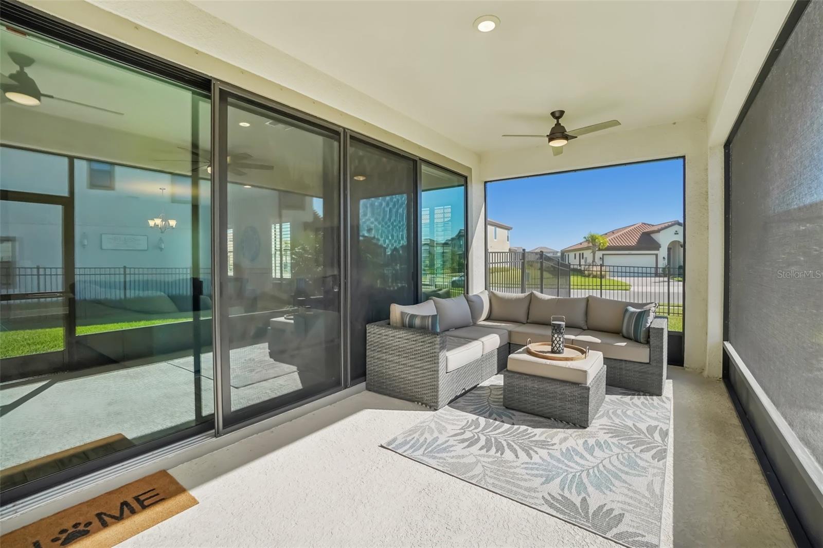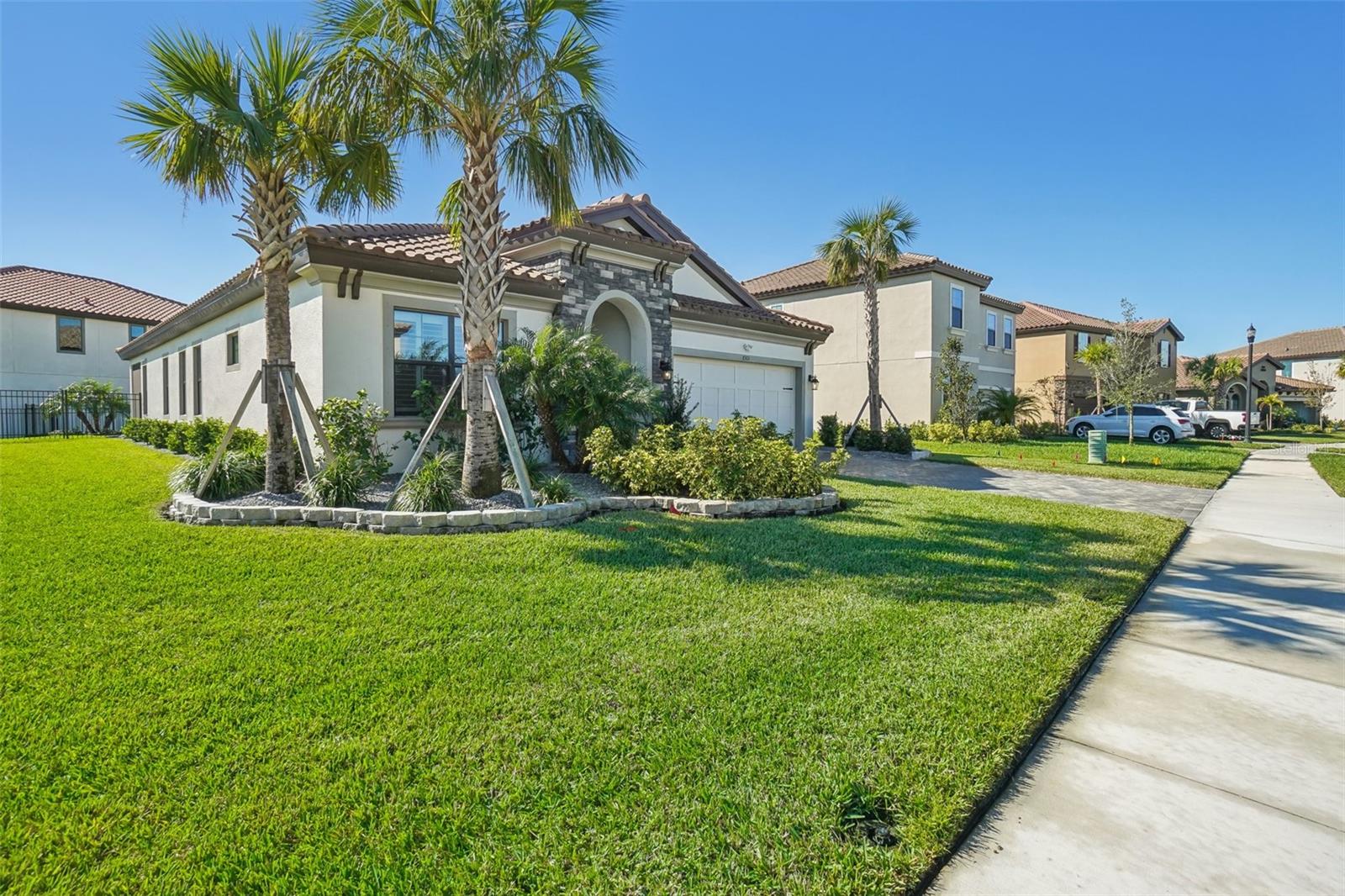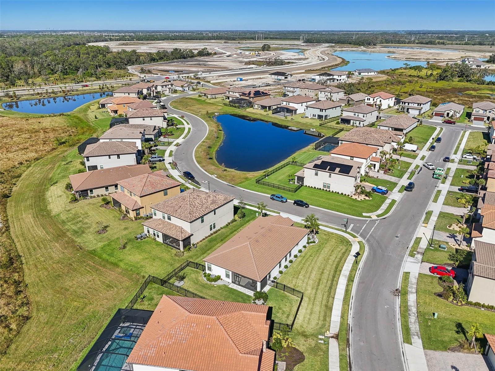 One or more photo(s) has been virtually staged. Model-Perfect Home in Crosswind Ranch – Move-In Ready & Loaded with Upgrades! Why wait for new construction when this pristine Sandpiper model by Homes by WestBay is ready now? Located in the highly sought-after Crosswind Ranch community of Parrish, this stunning 3-bedroom, 3-bathroom home with a bonus den/office is less than 2 years old and shows like a model! Situated on a spacious corner lot with a partial preserve view, this home offers privacy, space, and thoughtful design throughout. The open-concept floor plan features a gourmet kitchen with upgraded quartz countertops, elegant cabinetry with crown molding, a large center island, and gas availability for your stove. Enjoy casual meals in the bright dining nook or entertain effortlessly in the expansive great room, where sliding glass doors lead to the extended screened-in lanai—perfect for relaxing or dining al fresco while watching local wildlife. Every bedroom is thoughtfully positioned for privacy, and one includes its own en-suite bath—ideal for guests or a mother-in-law suite. The luxurious primary suite features two walk-in closets, blackout shades behind stylish plantation shutters, and a spa-like bath with an oversized walk-in shower. Additional upgrades include tray ceilings with crown molding, 8' interior doors, a tankless water heater, and a hospital-grade water filtration system. The fully fenced backyard offers plenty of room for a future pool and showcases a peaceful conservation backdrop. This home also includes a washer, dryer, and refrigerator, adding to its move-in-ready appeal. Enjoy all the charm and quality of this growing community, complete with tile roofs, paver driveways, and easy access to US-301, I-75, St. Pete (30 mins), and Tampa (45 mins).