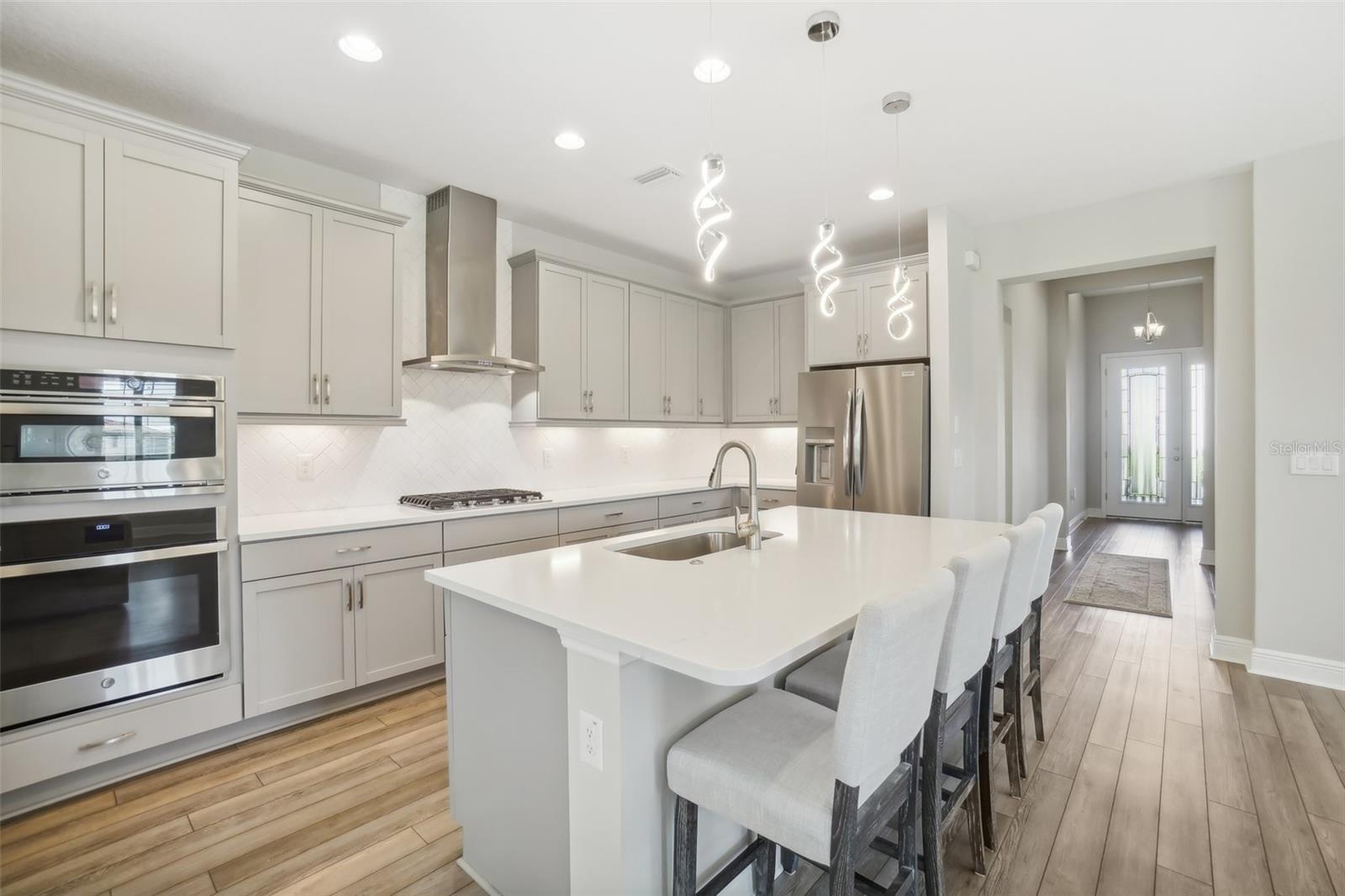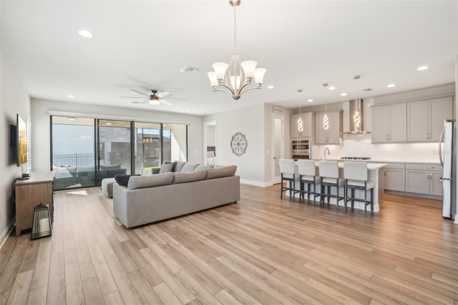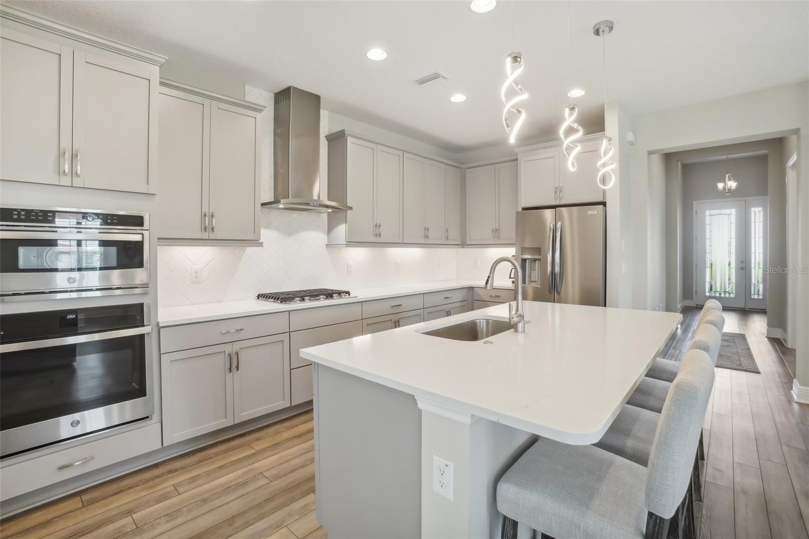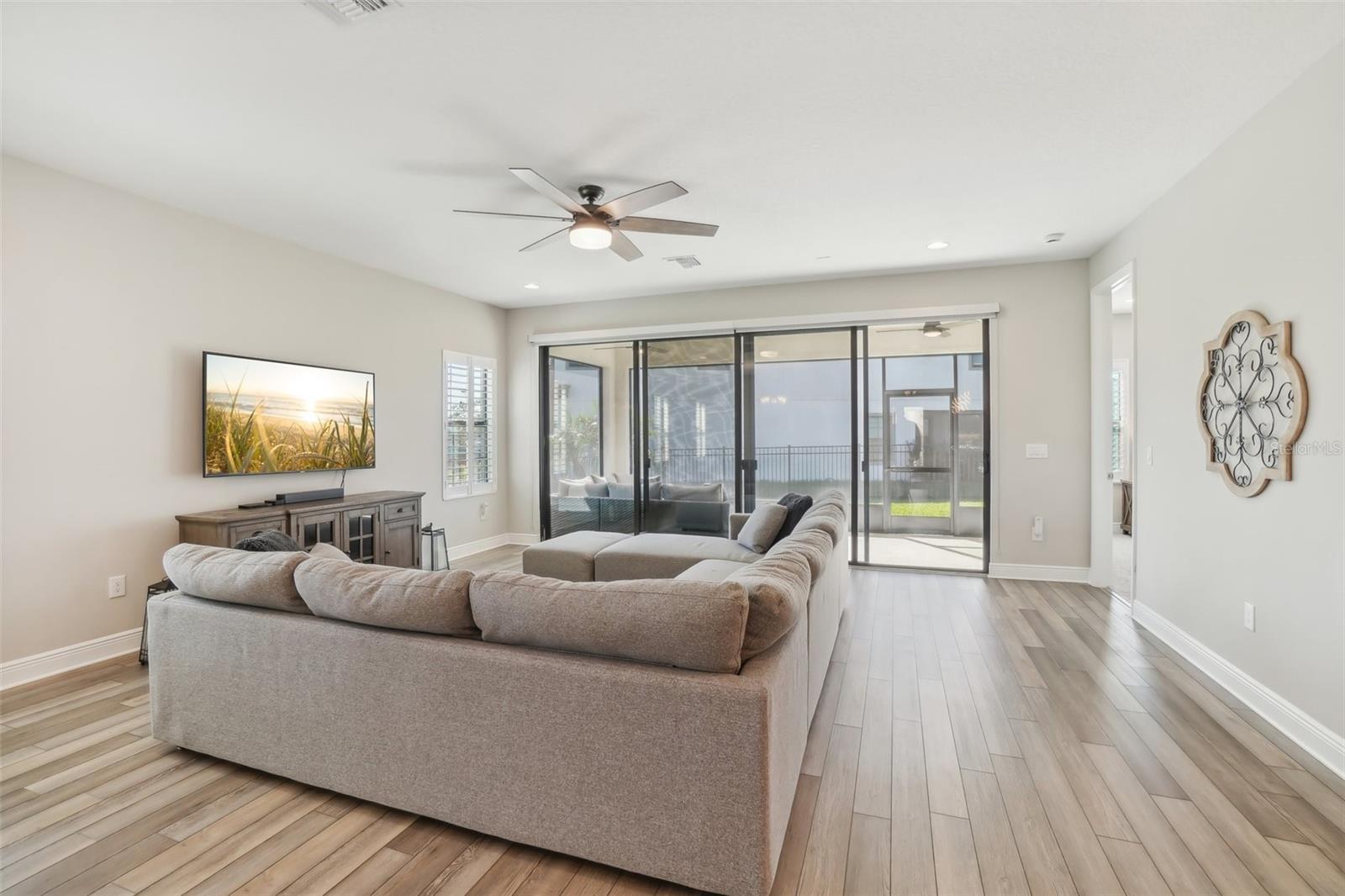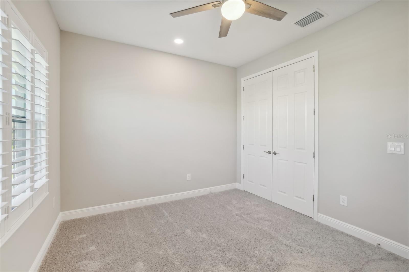One or more photo(s) has been virtually staged. Model-Perfect Home in Crosswind Ranch – Move-In Ready & Loaded with Upgrades! Why wait for new construction when this pristine Sandpiper model by Homes by WestBay is ready now? Located in the highly sought-after Crosswind Ranch community of Parrish, this stunning 3-bedroom, 3-bathroom home with a bonus den/office is less than 2 years old and shows like a model! Situated on a spacious corner lot with a partial preserve view, this home offers privacy, space, and thoughtful design throughout. The open-concept floor plan features a gourmet kitchen with upgraded quartz countertops, elegant cabinetry with crown molding, a large center island, and gas availability for your stove. Enjoy casual meals in the bright dining nook or entertain effortlessly in the expansive great room, where sliding glass doors lead to the extended screened-in lanai—perfect for relaxing or dining al fresco while watching local wildlife. Every bedroom is thoughtfully positioned for privacy, and one includes its own en-suite bath—ideal for guests or a mother-in-law suite. The luxurious primary suite features two walk-in closets, blackout shades behind stylish plantation shutters, and a spa-like bath with an oversized walk-in shower. Additional upgrades include tray ceilings with crown molding, 8' interior doors, a tankless water heater, and a hospital-grade water filtration system. The fully fenced backyard offers plenty of room for a future pool and showcases a peaceful conservation backdrop. This home also includes a washer, dryer, and refrigerator, adding to its move-in-ready appeal. Enjoy all the charm and quality of this growing community, complete with tile roofs, paver driveways, and easy access to US-301, I-75, St. Pete (30 mins), and Tampa (45 mins).