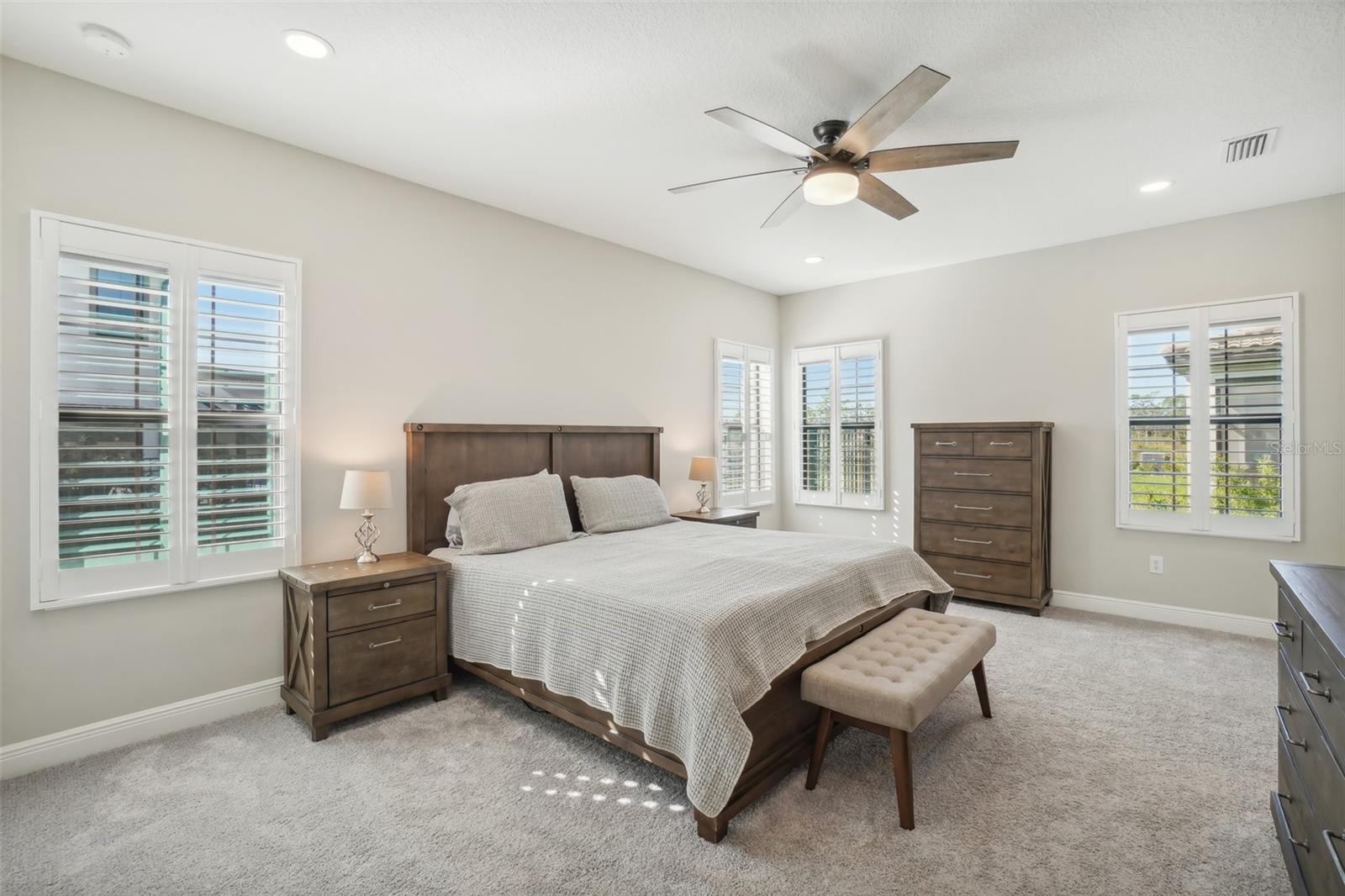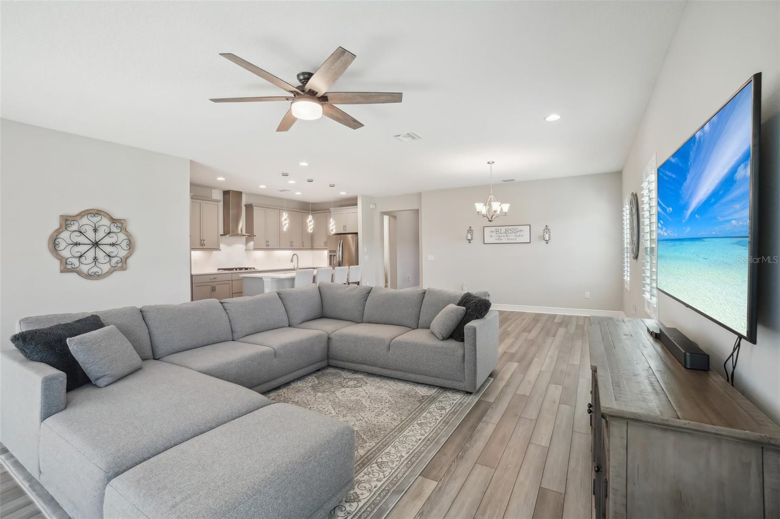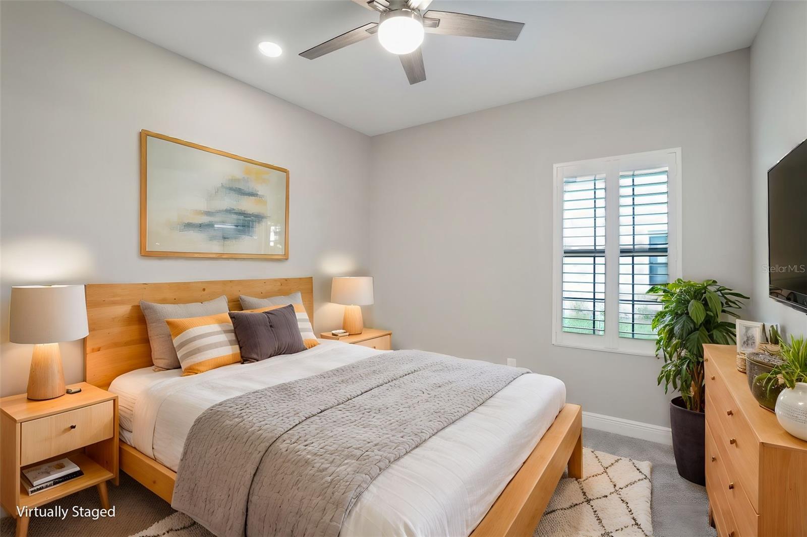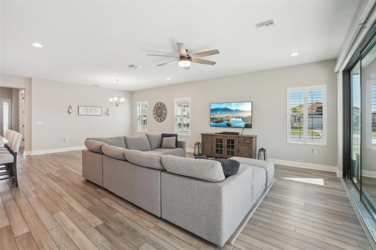 One or more photo(s) has been virtually staged. Model-Perfect Home in Crosswind Ranch – Move-In Ready & Loaded with Upgrades! Why wait for new construction when this pristine Sandpiper model by Homes by WestBay is ready now? Located in the highly sought-after Crosswind Ranch community of Parrish, this stunning 3-bedroom, 3-bathroom home with a bonus den/office is less than 2 years old and shows like a model! Situated on a spacious corner lot with a partial preserve view, this home offers privacy, space, and thoughtful design throughout. The open-concept floor plan features a gourmet kitchen with upgraded quartz countertops, elegant cabinetry with crown molding, a large center island, and gas availability for your stove. Enjoy casual meals in the bright dining nook or entertain effortlessly in the expansive great room, where sliding glass doors lead to the extended screened-in lanai—perfect for relaxing or dining al fresco while watching local wildlife. Every bedroom is thoughtfully positioned for privacy, and one includes its own en-suite bath—ideal for guests or a mother-in-law suite. The luxurious primary suite features two walk-in closets, blackout shades behind stylish plantation shutters, and a spa-like bath with an oversized walk-in shower. Additional upgrades include tray ceilings with crown molding, 8' interior doors, a tankless water heater, and a hospital-grade water filtration system. The fully fenced backyard offers plenty of room for a future pool and showcases a peaceful conservation backdrop. This home also includes a washer, dryer, and refrigerator, adding to its move-in-ready appeal. Enjoy all the charm and quality of this growing community, complete with tile roofs, paver driveways, and easy access to US-301, I-75, St. Pete (30 mins), and Tampa (45 mins).