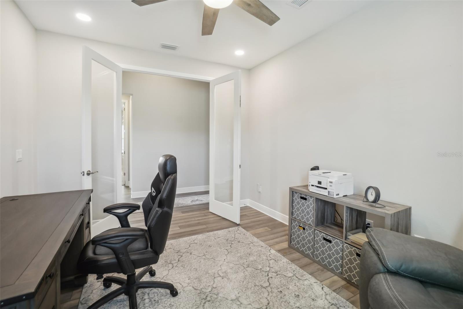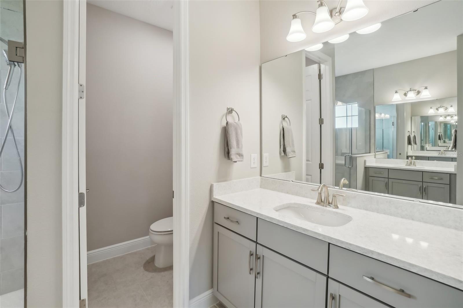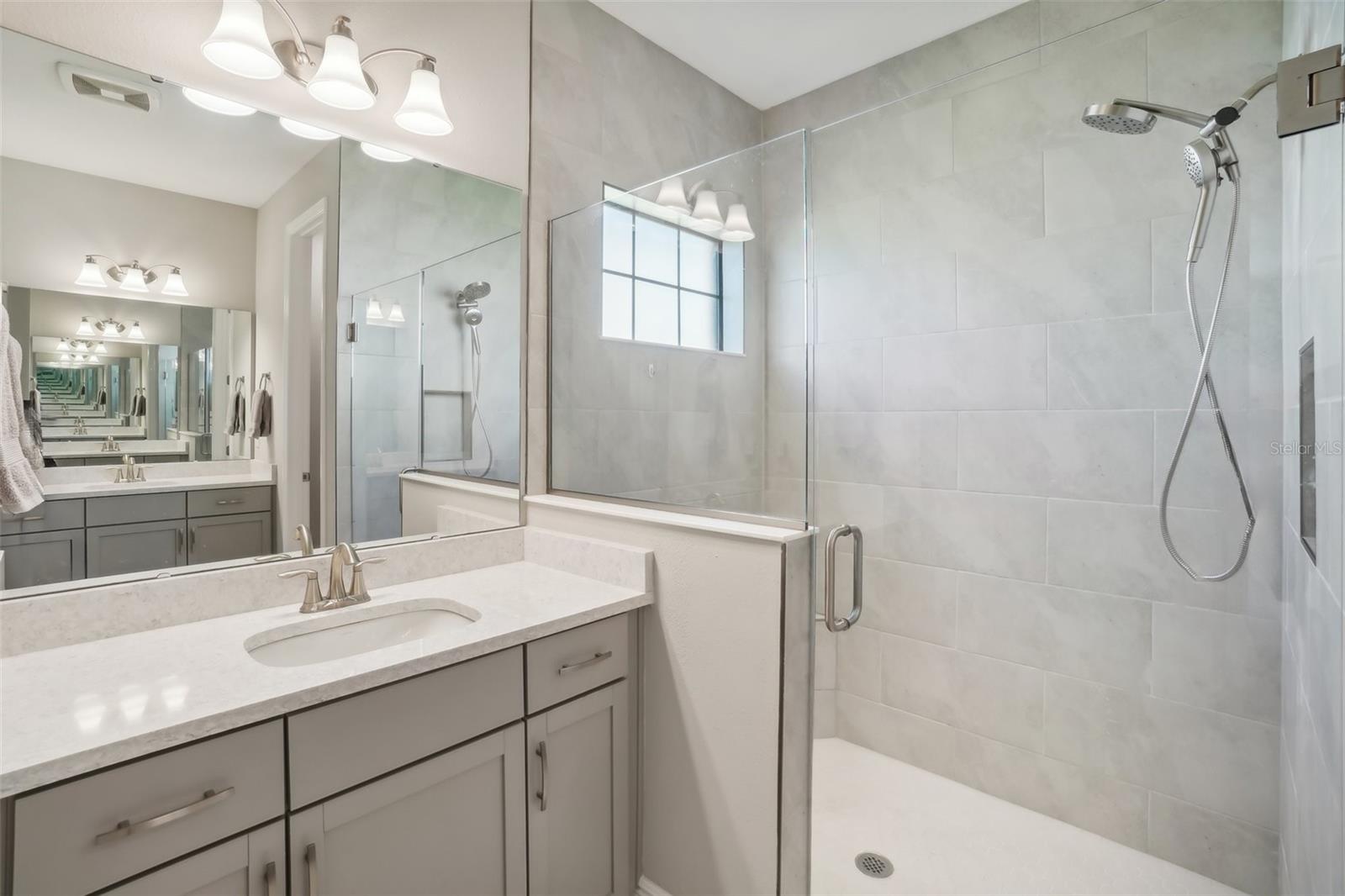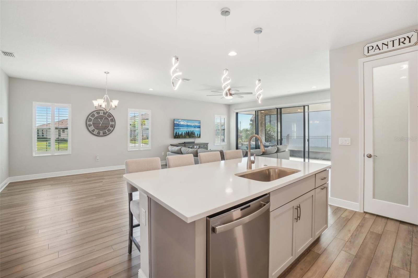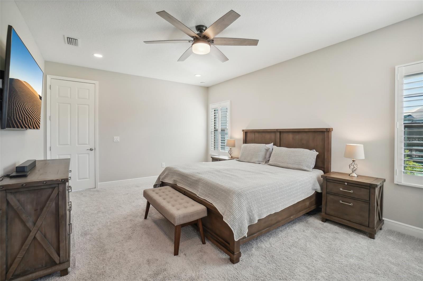 One or more photo(s) has been virtually staged. Model-Perfect Home in Crosswind Ranch – Move-In Ready & Loaded with Upgrades! Why wait for new construction when this pristine Sandpiper model by Homes by WestBay is ready now? Located in the highly sought-after Crosswind Ranch community of Parrish, this stunning 3-bedroom, 3-bathroom home with a bonus den/office is less than 2 years old and shows like a model! Situated on a spacious corner lot with a partial preserve view, this home offers privacy, space, and thoughtful design throughout. The open-concept floor plan features a gourmet kitchen with upgraded quartz countertops, elegant cabinetry with crown molding, a large center island, and gas availability for your stove. Enjoy casual meals in the bright dining nook or entertain effortlessly in the expansive great room, where sliding glass doors lead to the extended screened-in lanai—perfect for relaxing or dining al fresco while watching local wildlife. Every bedroom is thoughtfully positioned for privacy, and one includes its own en-suite bath—ideal for guests or a mother-in-law suite. The luxurious primary suite features two walk-in closets, blackout shades behind stylish plantation shutters, and a spa-like bath with an oversized walk-in shower. Additional upgrades include tray ceilings with crown molding, 8' interior doors, a tankless water heater, and a hospital-grade water filtration system. The fully fenced backyard offers plenty of room for a future pool and showcases a peaceful conservation backdrop. This home also includes a washer, dryer, and refrigerator, adding to its move-in-ready appeal. Enjoy all the charm and quality of this growing community, complete with tile roofs, paver driveways, and easy access to US-301, I-75, St. Pete (30 mins), and Tampa (45 mins).