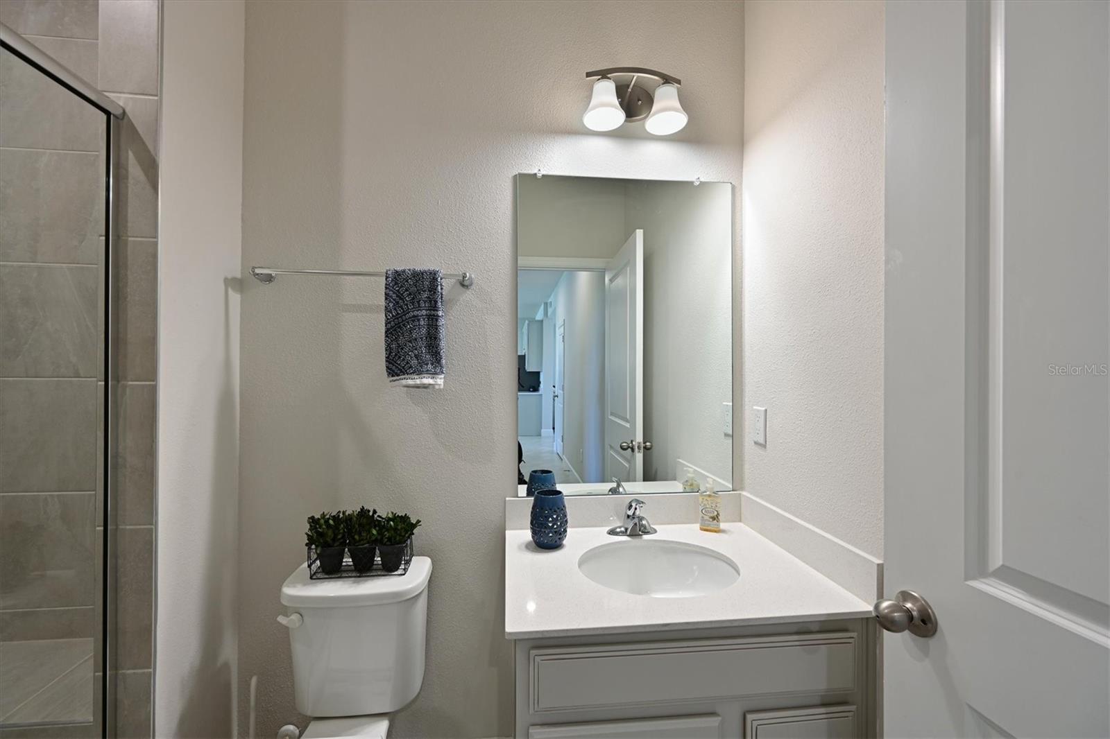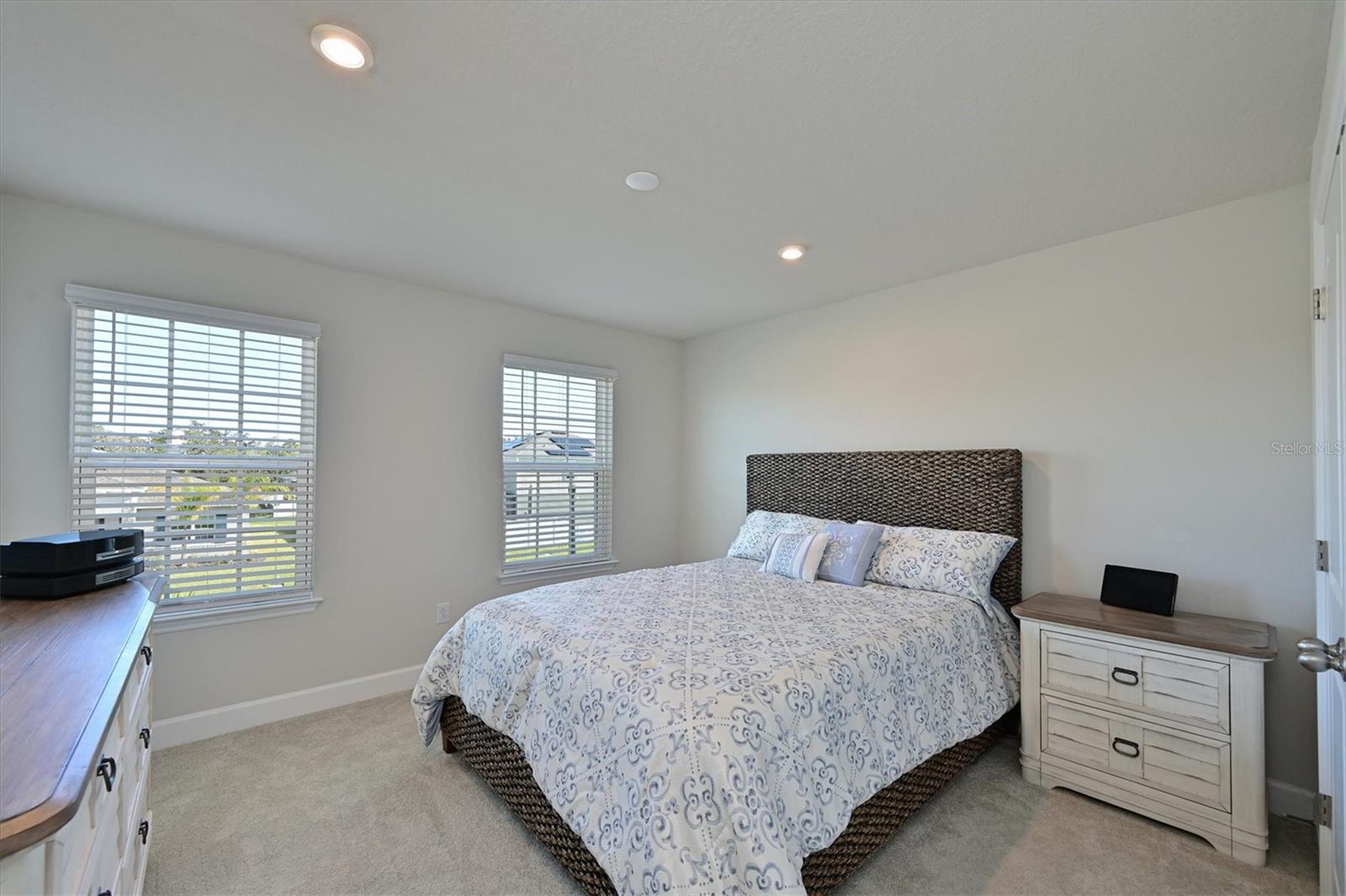 HUGE PRICE IMPROVEMENT!!! GREAT OPPORTUNITY!!! Welcome to your dream home! This like-new, 2-story gem offers a spacious open floorplan. Boasting 5 bedrooms and 3 bathrooms, this home is perfect for families of all sizes. The kitchen with large island and walk-in pantry has a dinette area and overlooks the family room making it ideal for entertaining. A downstairs bedroom, which is currently set up as a home office, has a full bathroom right outside its door making it a great space for your out of town guests! The spacious primary bedroom features two walk-in closets. Three additional bedrooms and a huge bonus area provide endless possibilities for a game room, play area, or second living space. Enjoy serene lake views from the expansive lanai, perfect for relaxing evenings or weekend gatherings. The garage floor has been upgraded with epoxy coating which adds a polished touch and extra durability. Other upgrades include a water softener and gutters. NO CDD and LOW HOA of only $90/month. Amenities include a community pool and playground. You won't want to miss this move in ready home!