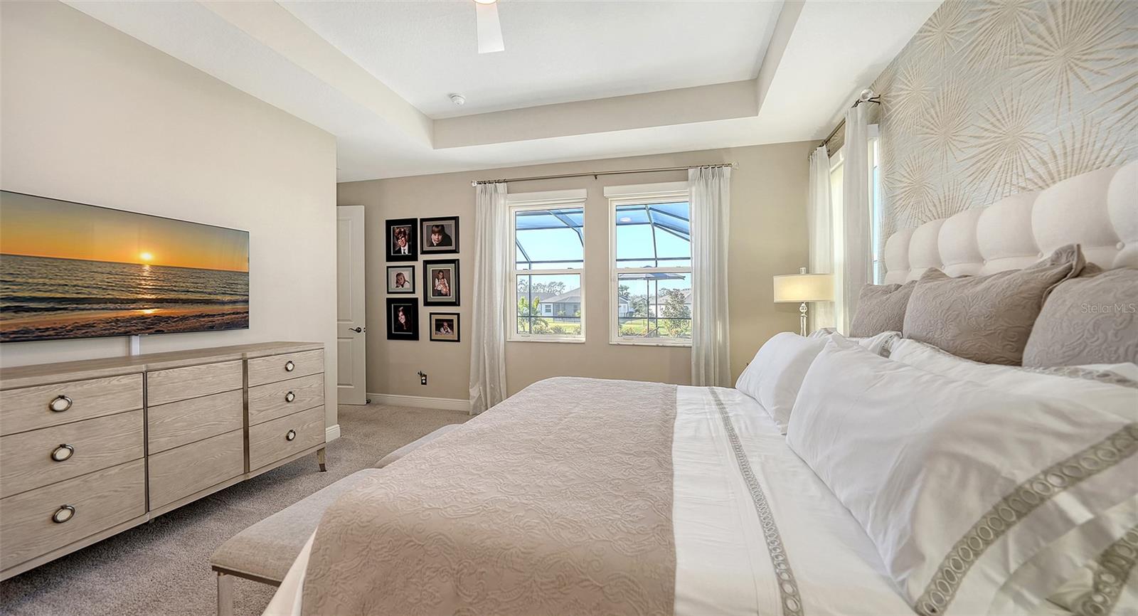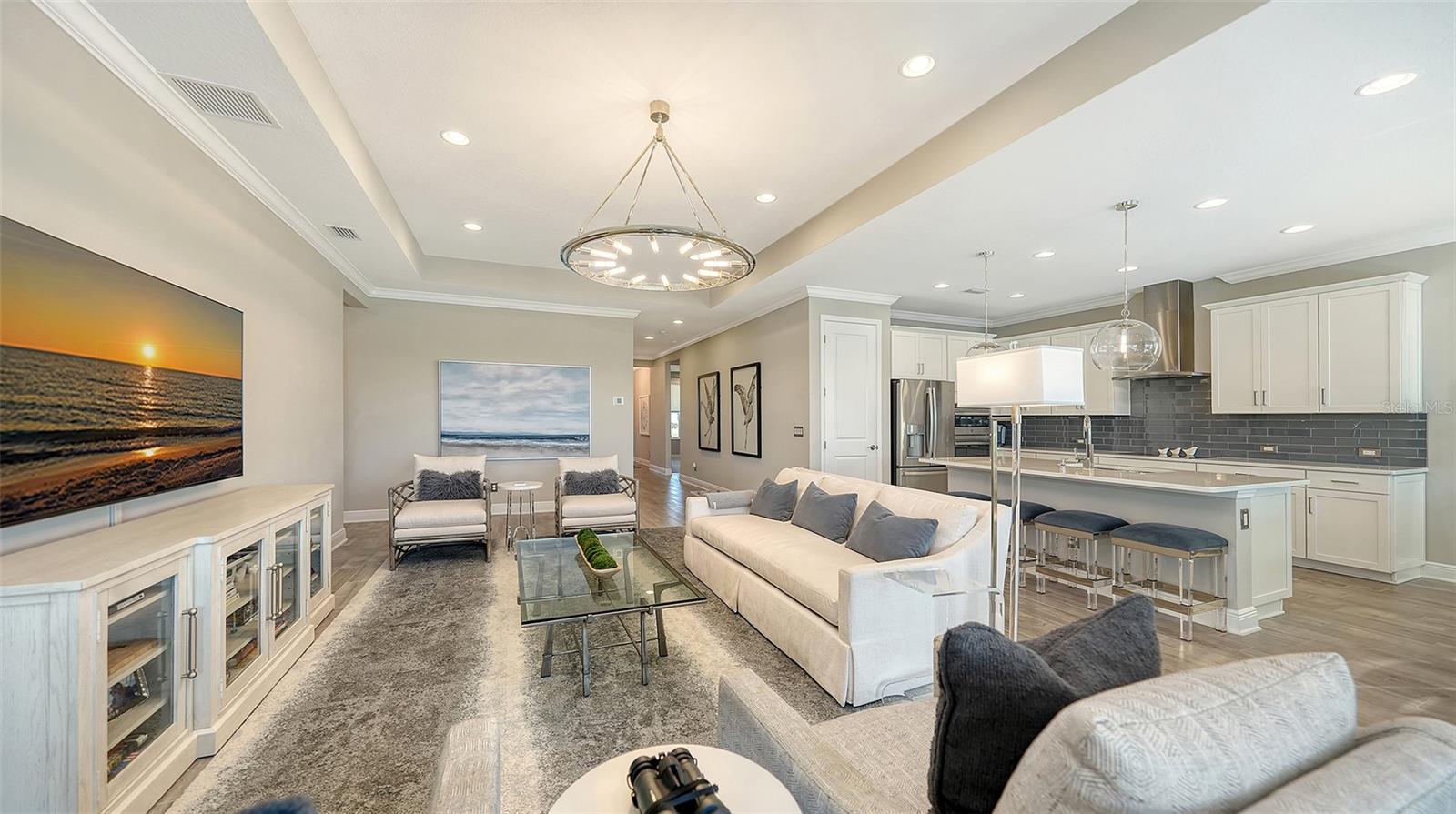 Price Improvement!! Don’t miss the opportunity to make this your home today!!! No CDD fees and low HOAs! Welcome to the desirable and distinctive community of Twin Rivers with estate lots. The Crystal model is an elegant award-winning home, upon arrival you will notice immediately the charming front porch and inviting curb appeal. This beautiful coastal home includes four bedrooms, three full baths and an enormous open concept gourmet kitchen and great room with a three-car garage. As you walk in the front door, you are greeted with a custom mosaic ceiling detail foyer and two bedrooms with a full bath, ideal for the family or guests who want their own space. Walk further into the home and enter the large combination dining-family area, which opens directly into the gourmet kitchen with quartz countertops, beautiful cabinetry and stainless steel appliances equipped to meet the demand of your culinary adventures. The main living areas features plank tile, crown molding, additional recessed canned and designer lighting. The primary suite sits on the far corner, giving you maximum peace and privacy. As you step in, you're greeted by a refined and functional refreshment area designed to elevate everyday living with custom cabinetry, quartz counter and a built-in wine and beverage refrigerator that provides a luxurious feel to this unique and inviting addition. Enjoy the spacious walk-in closet with modular built-ins, ideal for dual storage, an upscale main bath boasts an enclosed shower area with beautiful tile to ceiling, double sinks with quartz countertops and a separate water closet. Step out onto the spacious lanai to a heated saltwater Pebble Tec pool and enjoy spectacular sunsets optimal for an exceptional outdoor living experience. There are too many upgrades to mention here, please ask your REALTOR® for the attached feature sheet. The community offers a gated accessed boat ramp to the Manatee River, community river house, two docks, basketball and volleyball courts, a soccer field, multiple playgrounds, multiple lakes, nature, recreational trails and miles of sidewalks, boating and kayaking access to the Manatee River, playgrounds, athletic courts and more.
