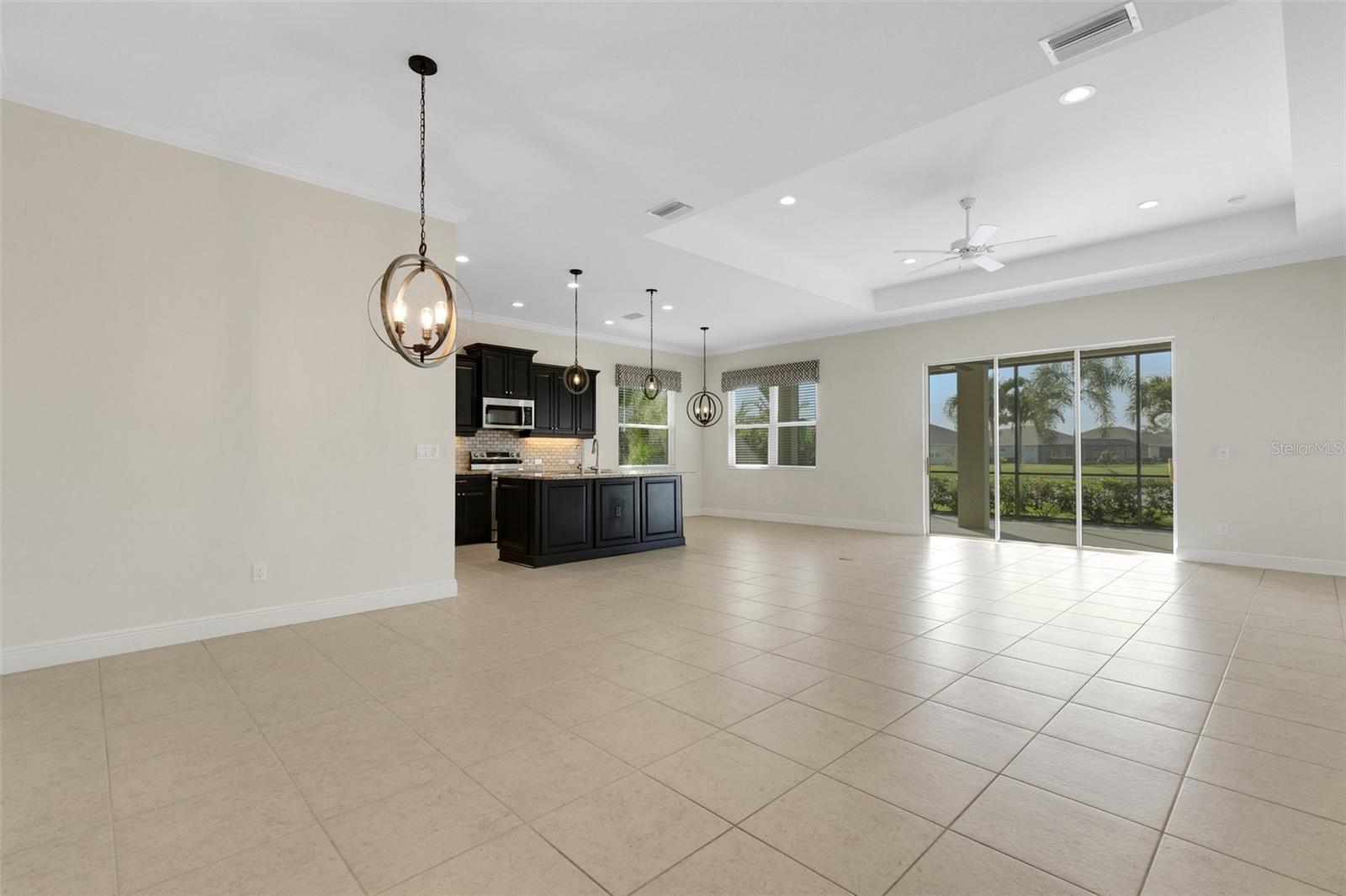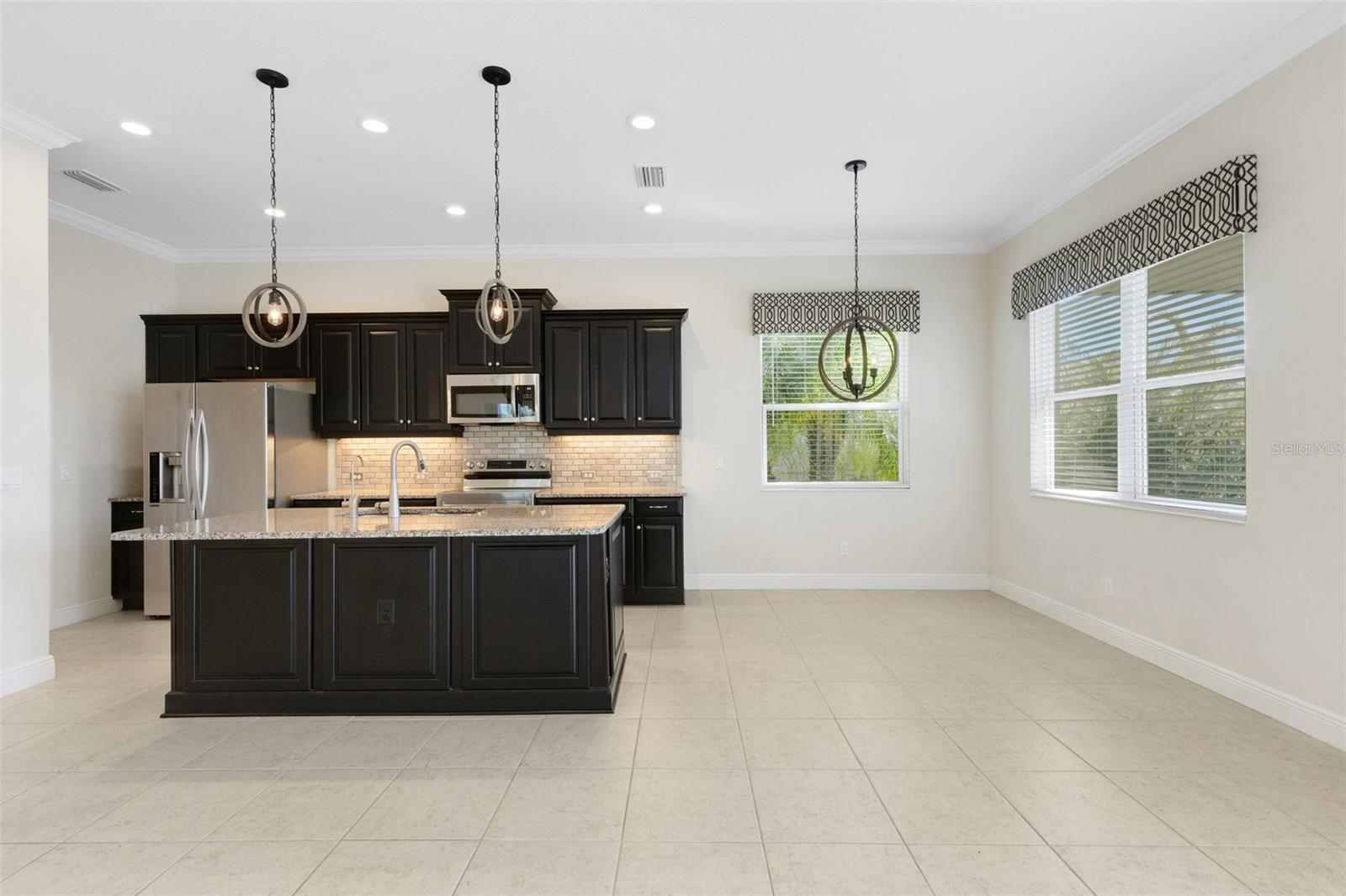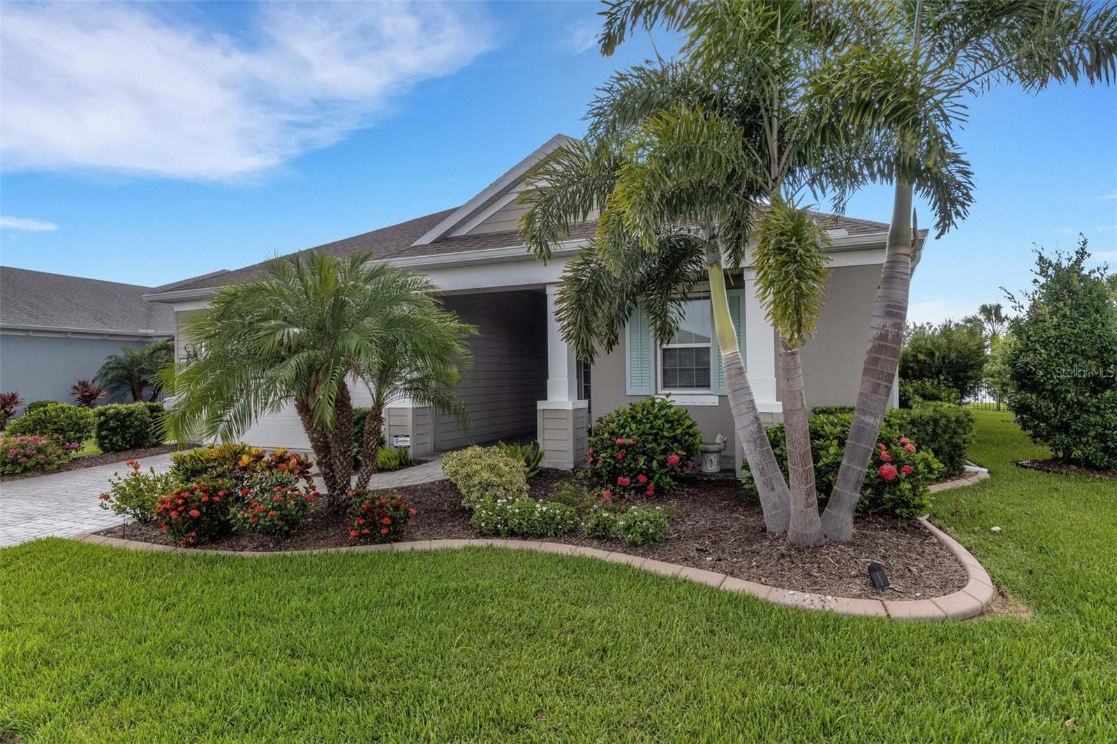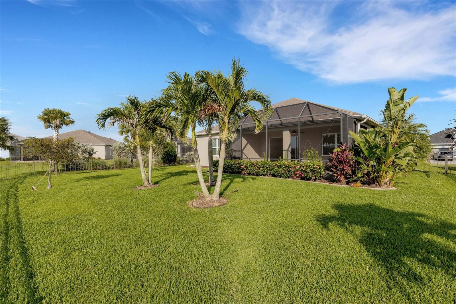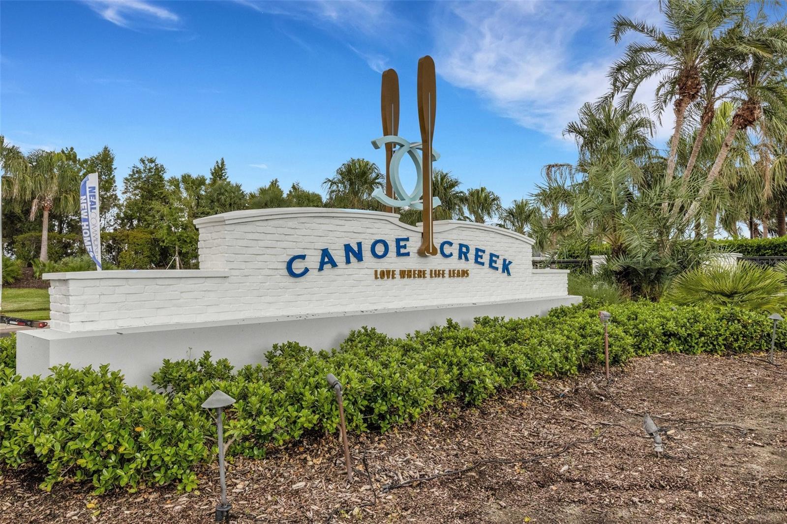 SELLER MOTIVATED, BRING AN OFFER! NO CDD FEES! This is the only EVENTIDE available on a spacious lake view home site.This home design boasts 2 bedrooms +oversized Den/office that could be converted into a 3rd bedroom, 2 Full Baths & 2 Car Garage with extra storage space. No detail was overlooked, the home features custom window treatments, crown moulding, tray ceiling package, tile flooring throughout, 5" base boards, and 10' ceilings throughout. Prepare family meals in a gorgeous kitchen featuring 42" Espresso Cabinetry with portfolio full overlay and dovetail drawers, eliminating visible frames and showcasing a high-end feel. The kitchen is beautiful yet practical as it is complete with stainless steel appliances and granite countertops that are accented with level 6 tile backsplash complementing the kitchens overall style. Each bathroom was custom designed with beautiful higher level tile, frameless glass enclosure and upgraded Moen fixtures. The den is complete for use as an office, movie room, or flex space. Enjoy the Florida sunsets from your oversized EXTENDED SCREENED IN LANAI, or watch your pets run around the fenced in back yard. This home is set apart from others as it comes equipped with SOLAR PANELS, water filtration/reverse osmosis system and a whole house GENERATOR using natural gas, providing peace of mind no matter the weather.Canoe Creek is a resort-style community offering many amenities like fitness center, pool & spa, community center with club house, dog parks, and pickleball courts. Get access to all of these amenities and more for a minimal hoa fee and NO CDD FEES! Touring this home is easy, schedule your private showing today! *Property information received from third party sources is considered reliable but is not guaranteed. All information should be independently verified by buyer's and buyers agent.