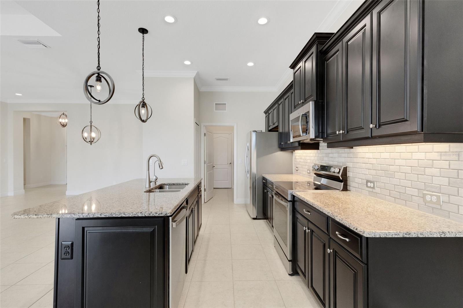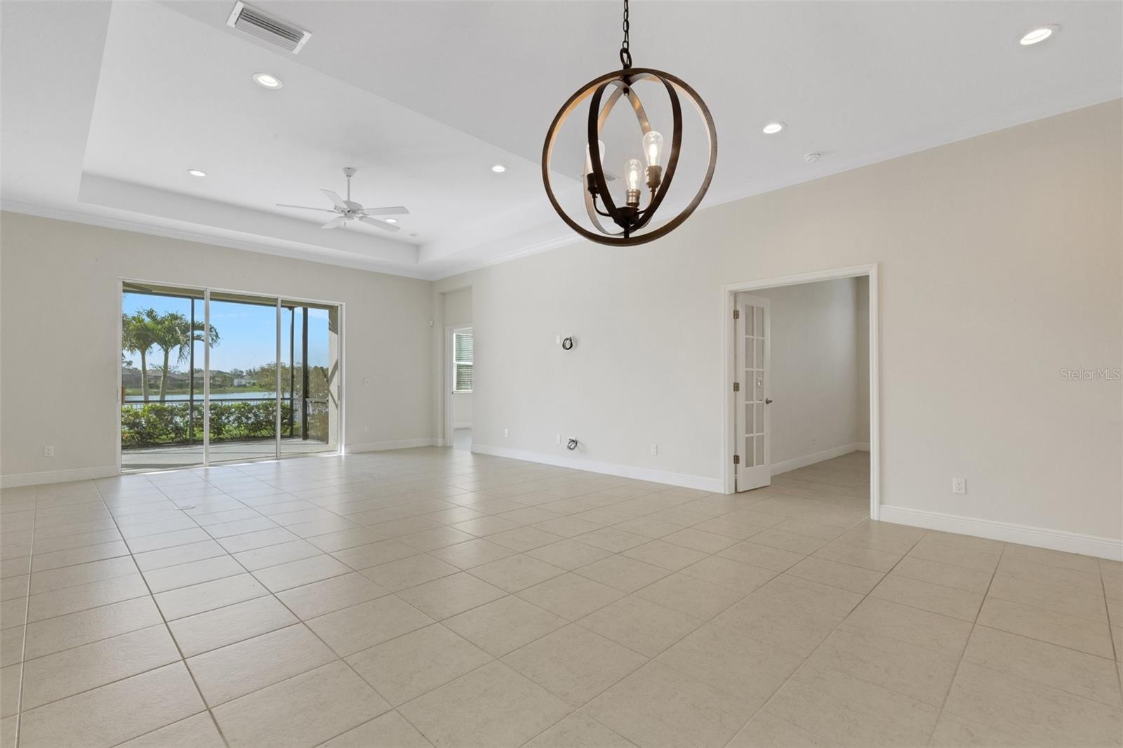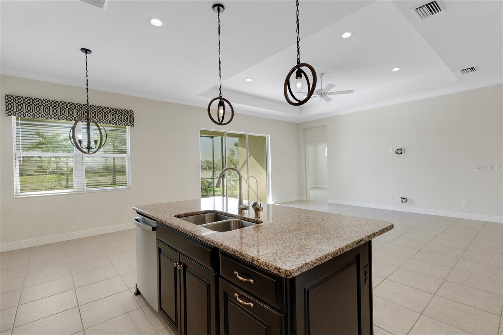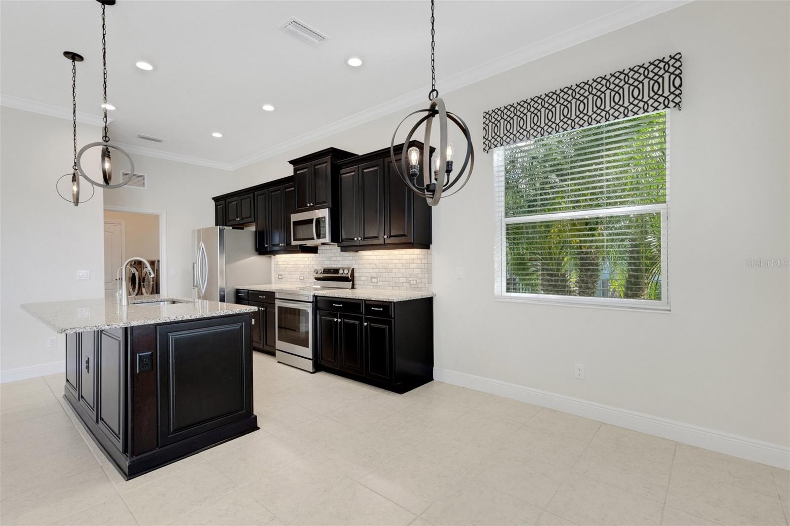 SELLER MOTIVATED, BRING AN OFFER! NO CDD FEES! This is the only EVENTIDE available on a spacious lake view home site.This home design boasts 2 bedrooms +oversized Den/office that could be converted into a 3rd bedroom, 2 Full Baths & 2 Car Garage with extra storage space. No detail was overlooked, the home features custom window treatments, crown moulding, tray ceiling package, tile flooring throughout, 5" base boards, and 10' ceilings throughout. Prepare family meals in a gorgeous kitchen featuring 42" Espresso Cabinetry with portfolio full overlay and dovetail drawers, eliminating visible frames and showcasing a high-end feel. The kitchen is beautiful yet practical as it is complete with stainless steel appliances and granite countertops that are accented with level 6 tile backsplash complementing the kitchens overall style. Each bathroom was custom designed with beautiful higher level tile, frameless glass enclosure and upgraded Moen fixtures. The den is complete for use as an office, movie room, or flex space. Enjoy the Florida sunsets from your oversized EXTENDED SCREENED IN LANAI, or watch your pets run around the fenced in back yard. This home is set apart from others as it comes equipped with SOLAR PANELS, water filtration/reverse osmosis system and a whole house GENERATOR using natural gas, providing peace of mind no matter the weather.Canoe Creek is a resort-style community offering many amenities like fitness center, pool & spa, community center with club house, dog parks, and pickleball courts. Get access to all of these amenities and more for a minimal hoa fee and NO CDD FEES! Touring this home is easy, schedule your private showing today! *Property information received from third party sources is considered reliable but is not guaranteed. All information should be independently verified by buyer's and buyers agent.