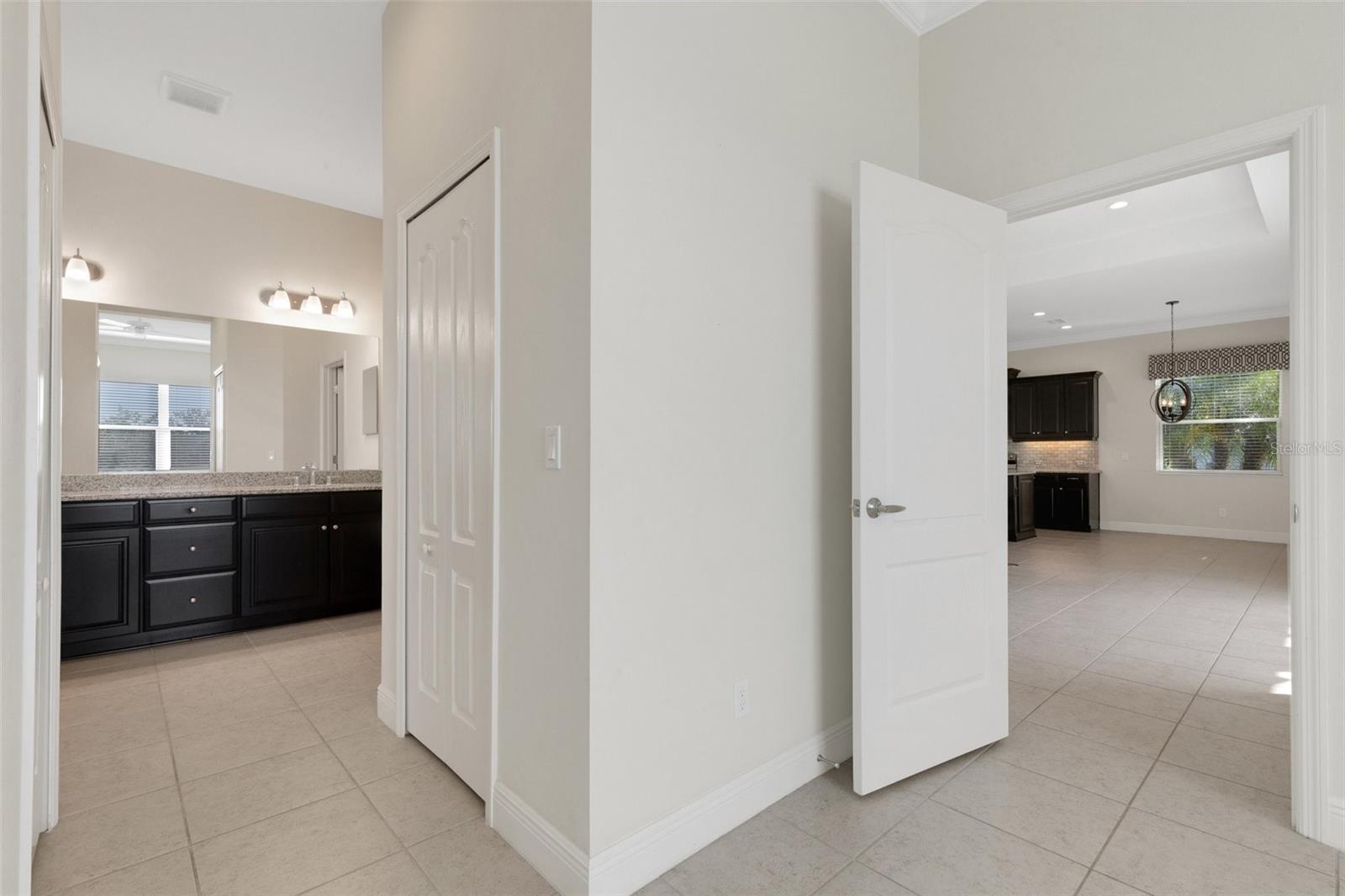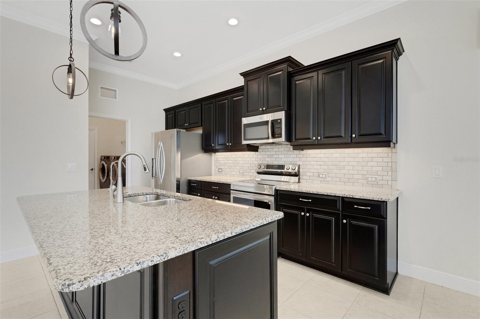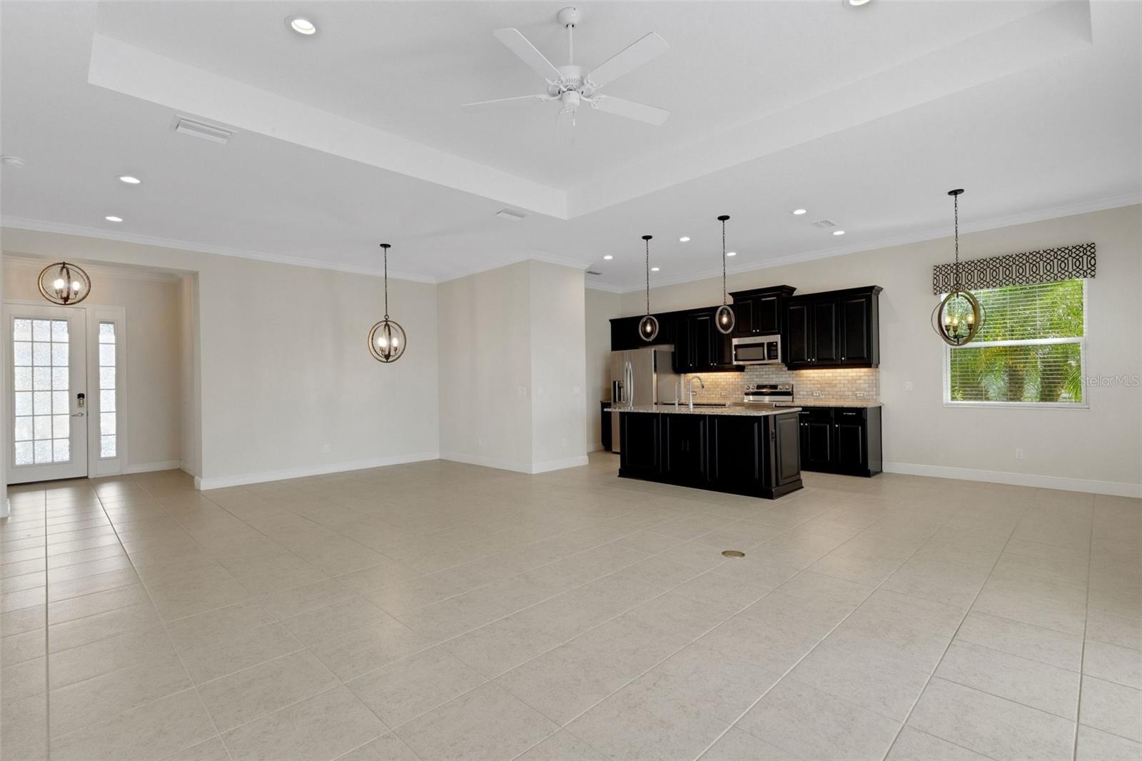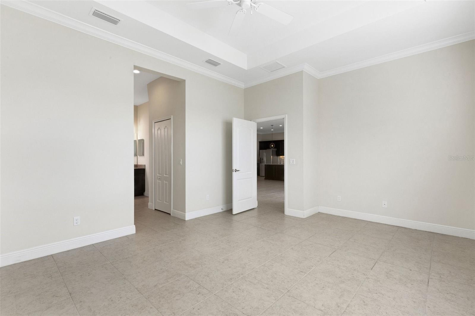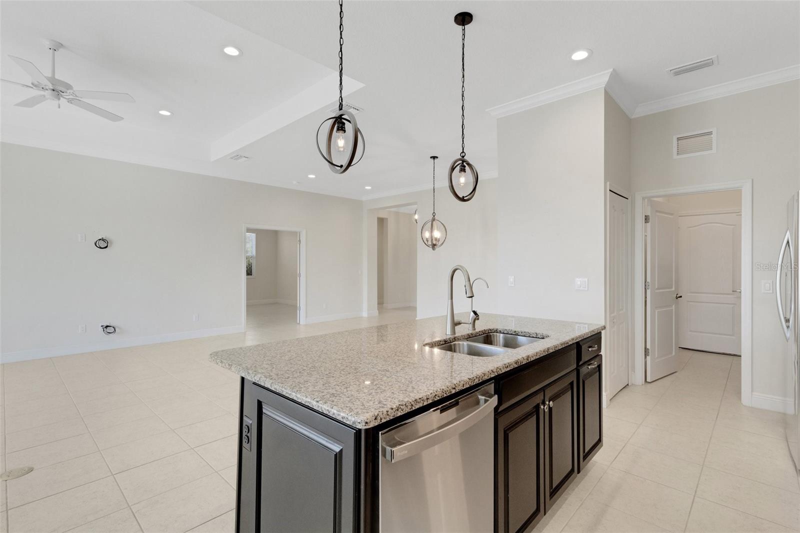SELLER MOTIVATED, BRING AN OFFER! NO CDD FEES! This is the only EVENTIDE available on a spacious lake view home site.This home design boasts 2 bedrooms +oversized Den/office that could be converted into a 3rd bedroom, 2 Full Baths & 2 Car Garage with extra storage space. No detail was overlooked, the home features custom window treatments, crown moulding, tray ceiling package, tile flooring throughout, 5" base boards, and 10' ceilings throughout. Prepare family meals in a gorgeous kitchen featuring 42" Espresso Cabinetry with portfolio full overlay and dovetail drawers, eliminating visible frames and showcasing a high-end feel. The kitchen is beautiful yet practical as it is complete with stainless steel appliances and granite countertops that are accented with level 6 tile backsplash complementing the kitchens overall style. Each bathroom was custom designed with beautiful higher level tile, frameless glass enclosure and upgraded Moen fixtures. The den is complete for use as an office, movie room, or flex space. Enjoy the Florida sunsets from your oversized EXTENDED SCREENED IN LANAI, or watch your pets run around the fenced in back yard. This home is set apart from others as it comes equipped with SOLAR PANELS, water filtration/reverse osmosis system and a whole house GENERATOR using natural gas, providing peace of mind no matter the weather.Canoe Creek is a resort-style community offering many amenities like fitness center, pool & spa, community center with club house, dog parks, and pickleball courts. Get access to all of these amenities and more for a minimal hoa fee and NO CDD FEES! Touring this home is easy, schedule your private showing today! *Property information received from third party sources is considered reliable but is not guaranteed. All information should be independently verified by buyer's and buyers agent.