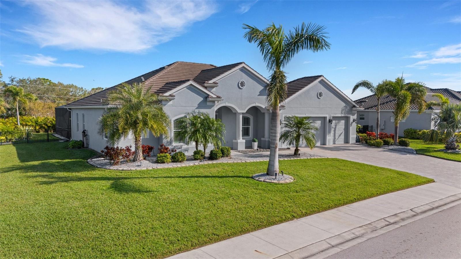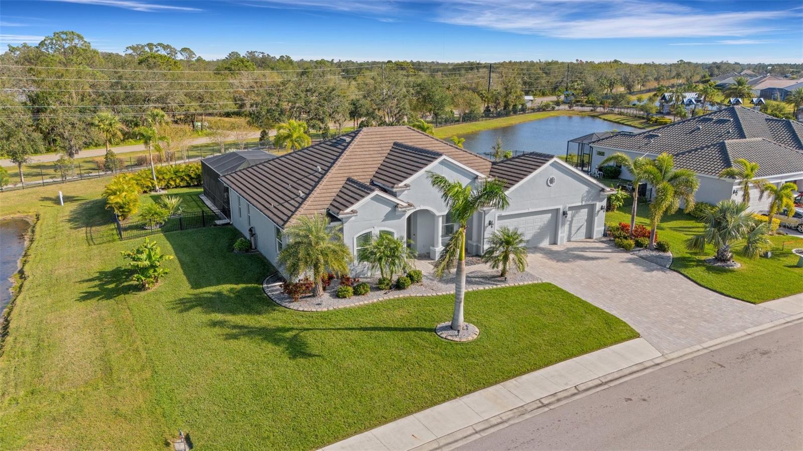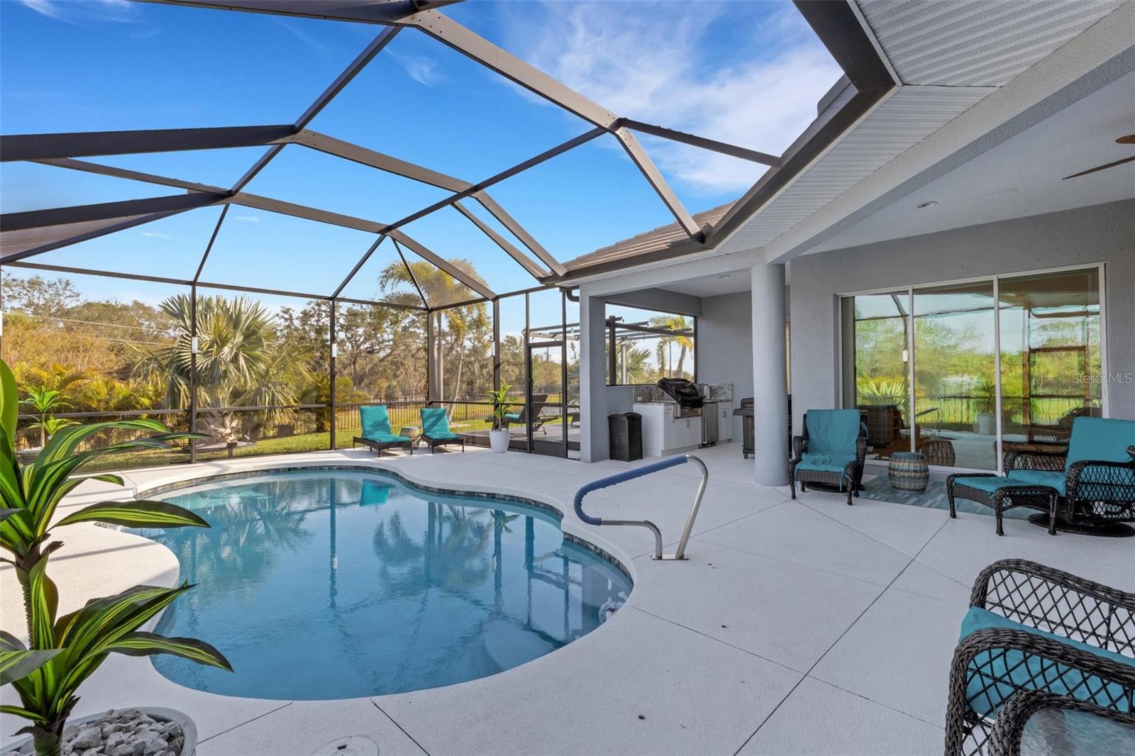 BRING OFFERS, seller’s relocating!! Nestled within the prestigious gated community of Reserve at Twin Rivers, this exquisite residence offers unparalleled luxury living in the heart of Florida. Boasting 4 bedrooms, 3 bathrooms, a 3 car garage, a dedicated office, and a spacious yard, this home provides ample space for relaxation and entertainment for you, your guests, and even your furry companions. The interior of the home is flooded with natural light, creating a warm and inviting atmosphere. The plantation shutters offer both privacy and elegance, while the low HOA fees cover essential services such as common area ground maintenance, including mulch, irrigated water, internet, and cable, and being a gated community to make life in this community a true pleasure. The homeowners have spared no expense in upgrading the property, replacing the mulch with beautiful rock and edging that adds to the home's overall charm. The grand entryway features a coffered tray ceiling, setting the tone for the luxurious living spaces within. The gourmet kitchen is a chef's dream, featuring quartz countertops, stainless steel appliances, and a layout that allows for seamless entertaining. Step outside to your own private oasis, complete with a heated saltwater pool, outdoor kitchen, and plenty of space on the lanai and in the backyard for year-round entertaining. Located conveniently near top-rated schools, shopping destinations like the Ellenton Outlets and University Town Center, and stunning beaches, this home offers the perfect combination of luxury and convenience. Don't miss your chance to experience the best of Florida living at Reserve at Twin Rivers. This home has a whole house water filtration system and water softener along with a brand new salt cell system for pool!!!