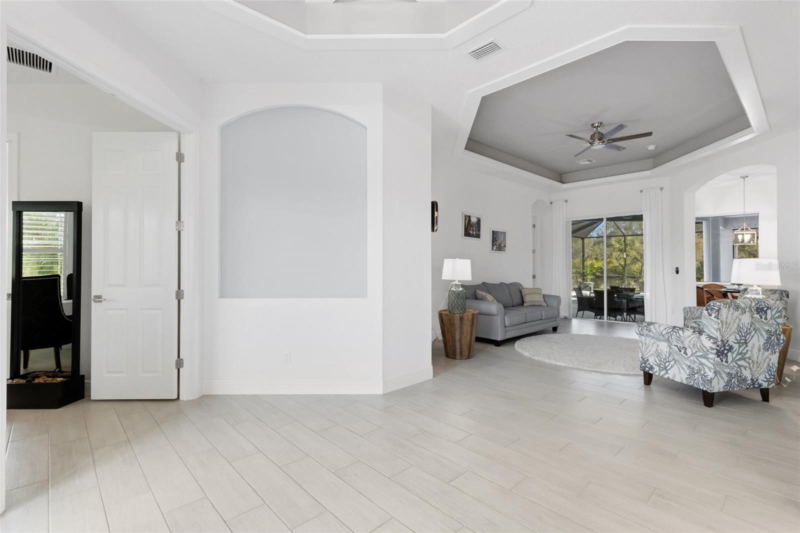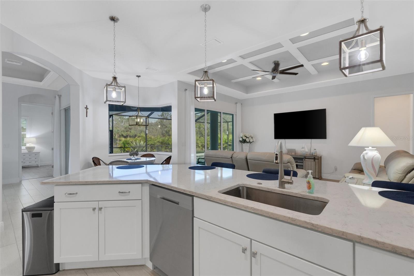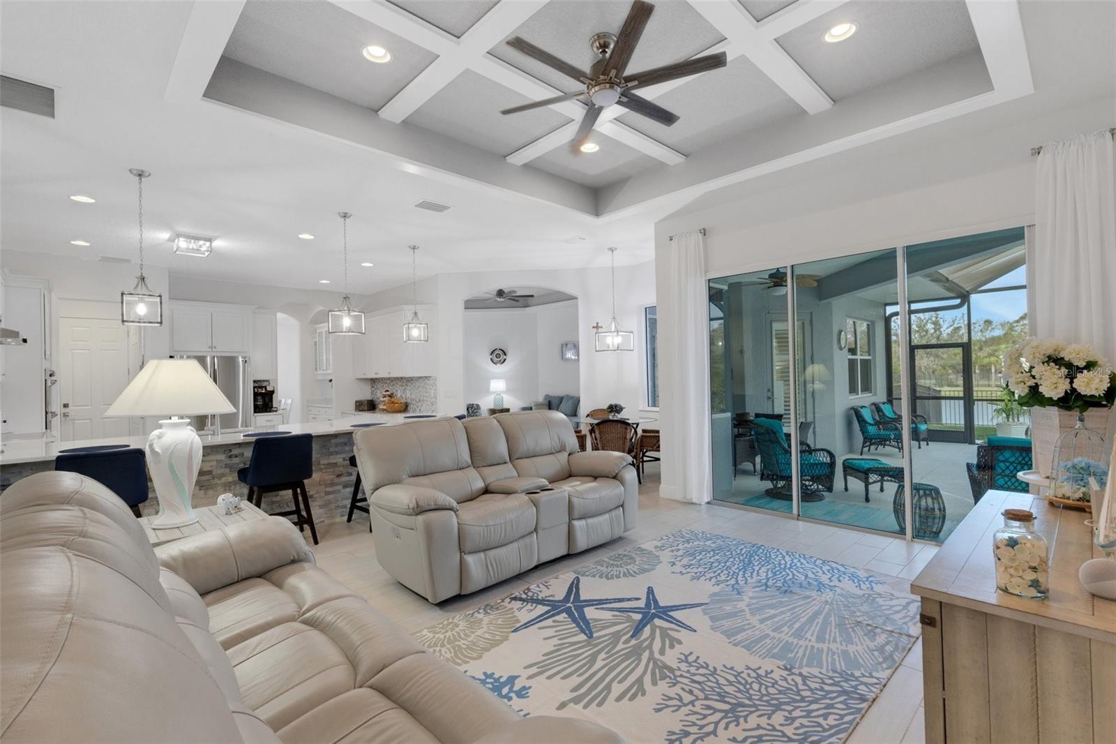 BRING OFFERS, seller’s relocating!! Nestled within the prestigious gated community of Reserve at Twin Rivers, this exquisite residence offers unparalleled luxury living in the heart of Florida. Boasting 4 bedrooms, 3 bathrooms, a 3 car garage, a dedicated office, and a spacious yard, this home provides ample space for relaxation and entertainment for you, your guests, and even your furry companions. The interior of the home is flooded with natural light, creating a warm and inviting atmosphere. The plantation shutters offer both privacy and elegance, while the low HOA fees cover essential services such as common area ground maintenance, including mulch, irrigated water, internet, and cable, and being a gated community to make life in this community a true pleasure. The homeowners have spared no expense in upgrading the property, replacing the mulch with beautiful rock and edging that adds to the home's overall charm. The grand entryway features a coffered tray ceiling, setting the tone for the luxurious living spaces within. The gourmet kitchen is a chef's dream, featuring quartz countertops, stainless steel appliances, and a layout that allows for seamless entertaining. Step outside to your own private oasis, complete with a heated saltwater pool, outdoor kitchen, and plenty of space on the lanai and in the backyard for year-round entertaining. Located conveniently near top-rated schools, shopping destinations like the Ellenton Outlets and University Town Center, and stunning beaches, this home offers the perfect combination of luxury and convenience. Don't miss your chance to experience the best of Florida living at Reserve at Twin Rivers. This home has a whole house water filtration system and water softener along with a brand new salt cell system for pool!!!