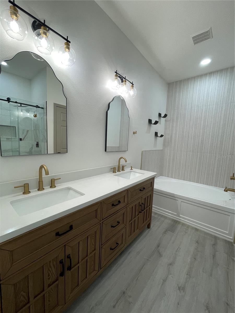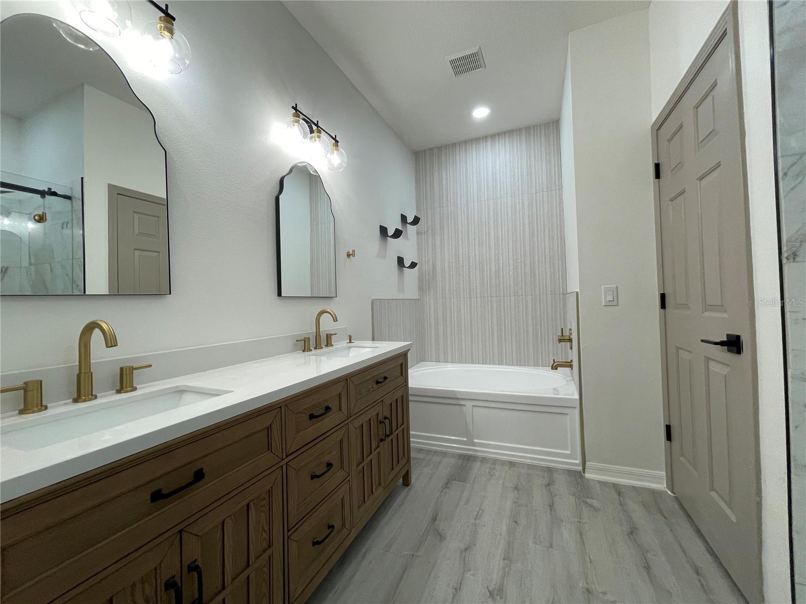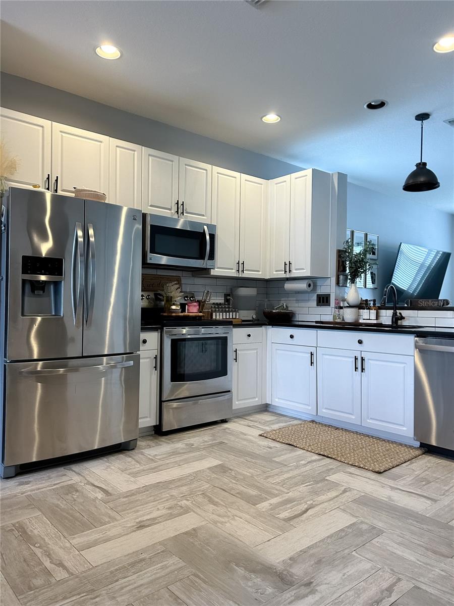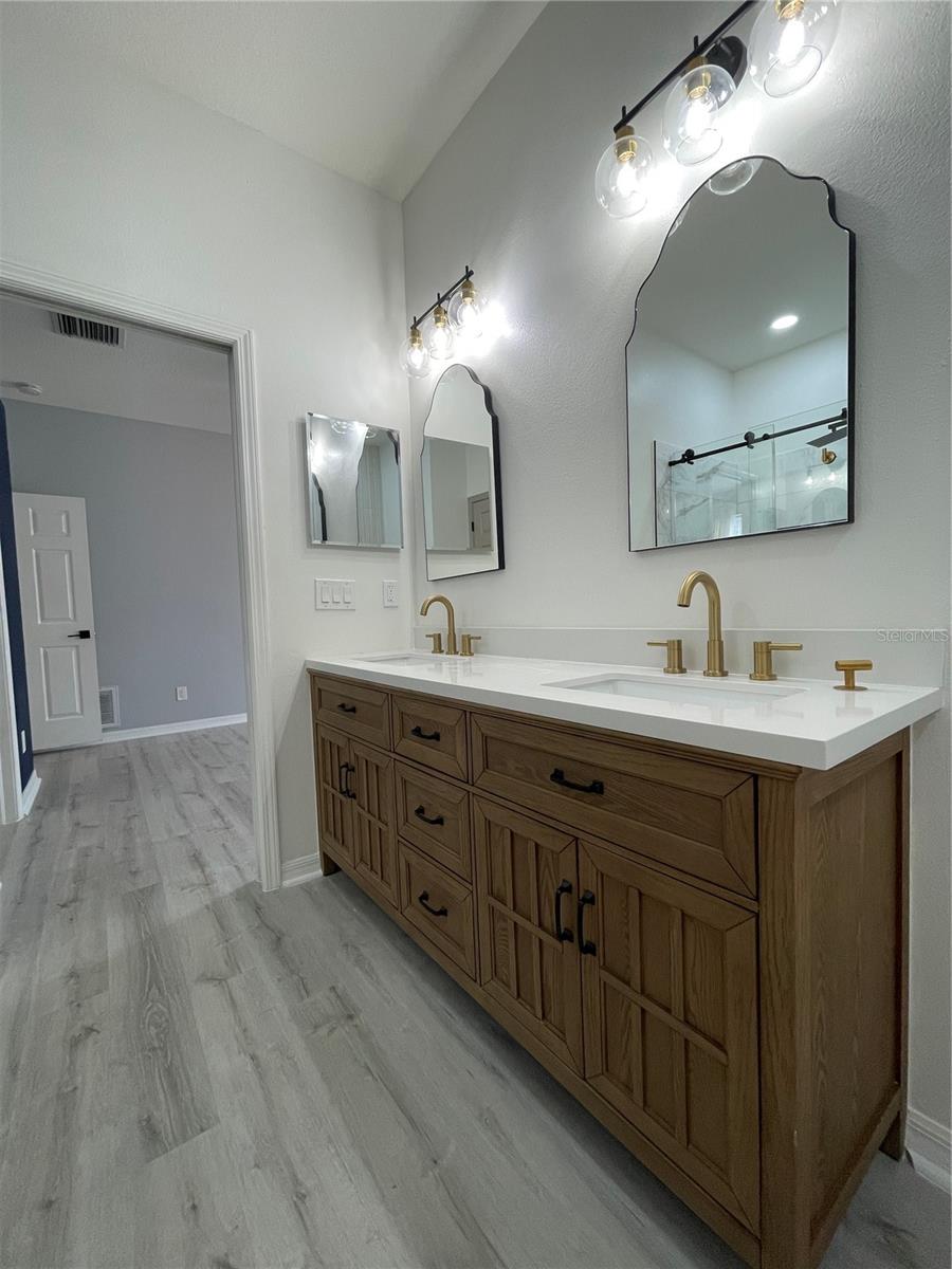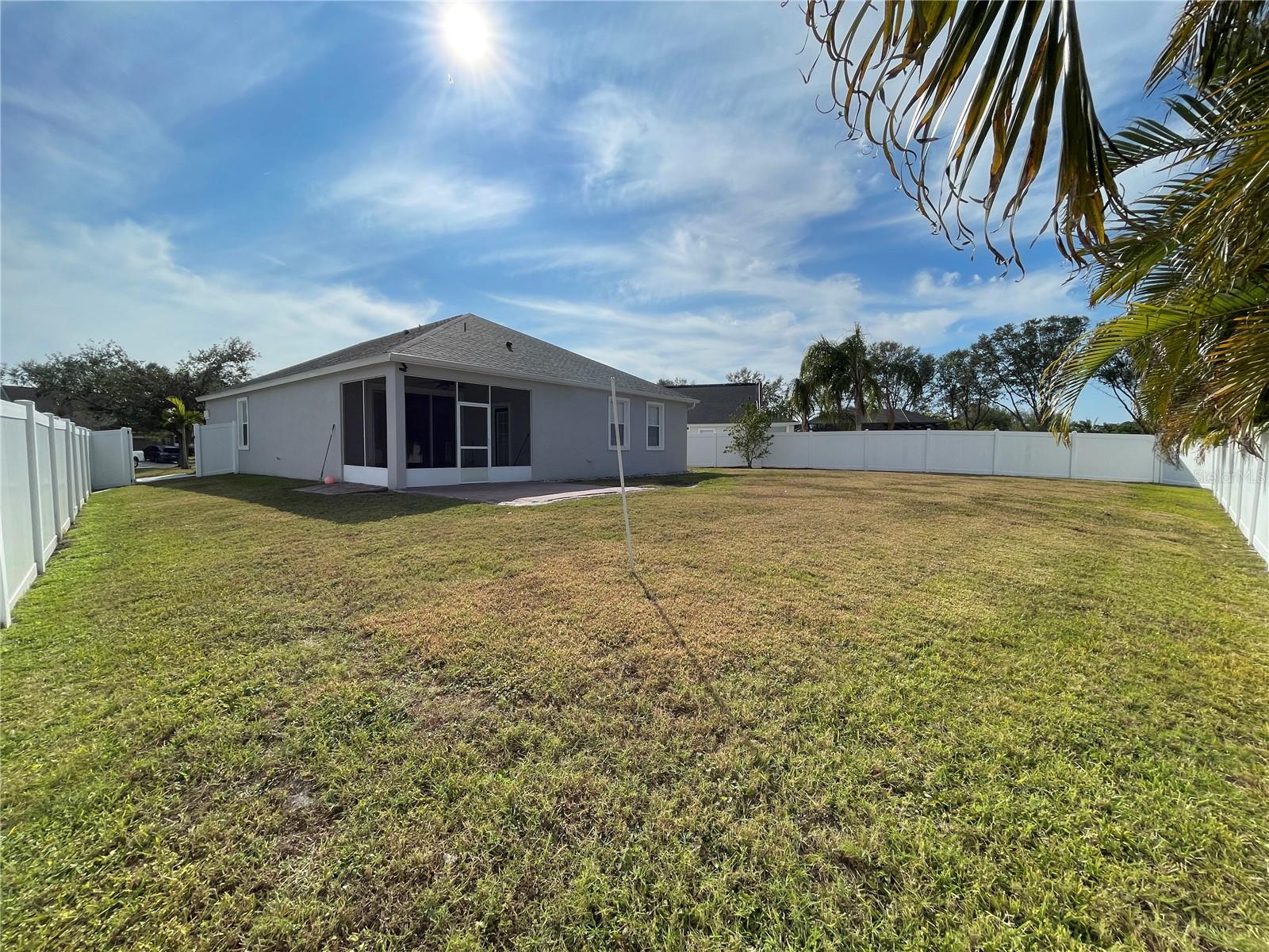 Stunning Modern Home in a Private Cul-de-Sac Location! This beautifully updated property is a perfect blend of modern farmhouse style and functional design, offering luxurious features and ample space for comfortable living. With 4 Bedrooms, 2 Full Bathrooms plus a 2 Car Garage, this home is ideally situated on an enormous homesite! BRAND NEW ROOF was just installed in 2024! Interior highlights include gorgeous gray and white herringbone pattern ceramic tile floors throughout the main living areas and complementing wood laminate in the bedrooms, no carpet! Stylish hints of gray, light blue, and navy paint on the walls, accentuated by black hardware on the doors. Spacious Primary bedroom suite with a large walk-in closet and a spa-like en-suite bathroom that will take your breath away with its elegant wooden double vanity with gold accents, a soaking tub with gold trim and hardware, and a fully remodeled shower featuring built-in niche and herringbone floor tile. Modern fixtures and ceiling fans in all bedrooms, ensuring comfort and style. Bright and open kitchen with white cabinets, black hardware, white subway tile backsplash, and a barn door leading to a spacious pantry. A wooden-top kitchen bar and granite countertops, stainless steel appliances and a whole-home water softener system for added convenience. Remodeled secondary bathroom with new vanity, mirror, and shiplap accent walls for a touch of charm. Exterior Features include a large screened-in lanai, perfect for relaxing or entertaining year-round and a huge fenced backyard offering total privacy and endless possibilities for outdoor activities. This home is abundant with natural light creating a warm and inviting atmosphere. With thoughtful upgrades throughout, including storage solutions and modern touches, this property is truly move-in ready. This home does not require flood insurance, there is NO CDD fee, and it has low HOA fees! Lakeside Preserve offers a unique community with a playground, basketball/sports court, lakefront gazebo, all situated in a prime location of Parrish near shopping, dining, great schools and easy commuting, don’t miss out on this incredible opportunity to own a home that combines luxury, privacy, and practicality. Schedule your private showing today!