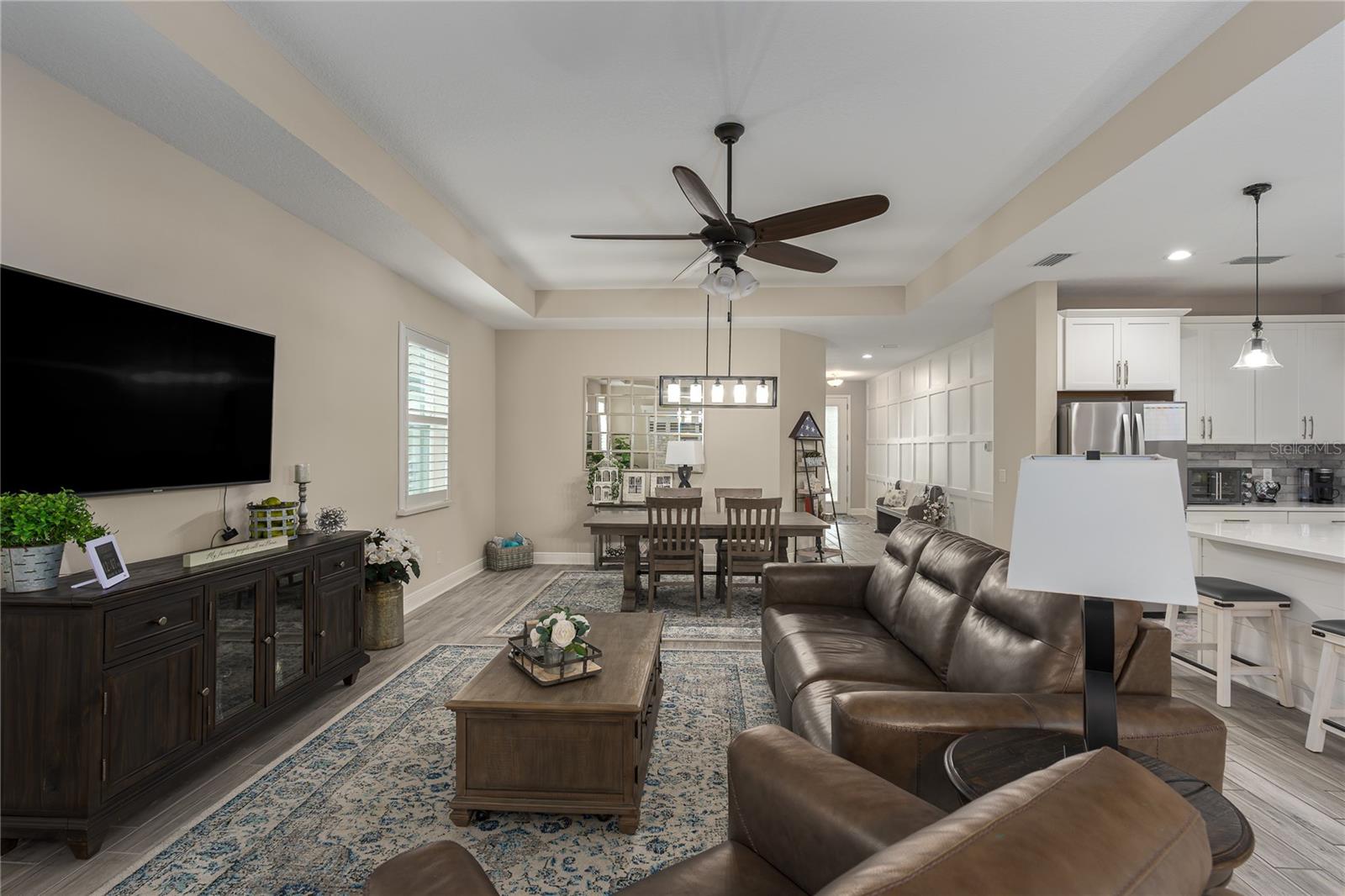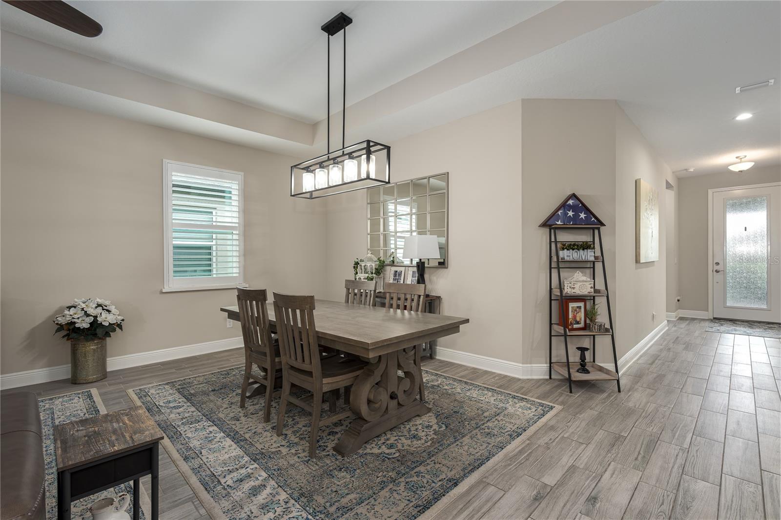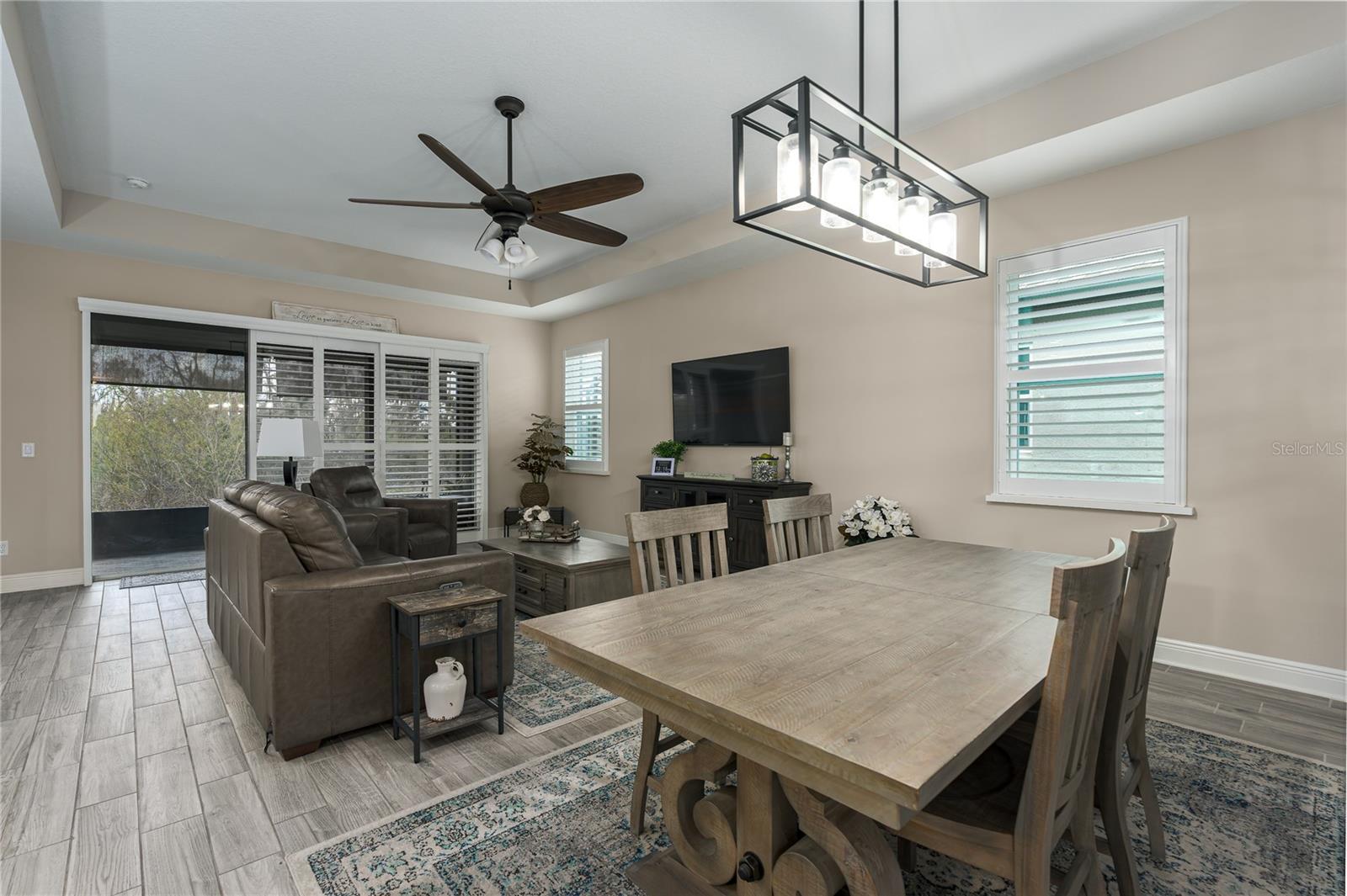 Beautiful, Well-Maintained Home Available Now in The Cove at Twin Rivers, Parrish, FL! Welcome to The Spinnaker, a stunning single-story home designed for modern living with an inviting open-concept layout. This thoughtfully designed home features 3 bedrooms, 2 full bathrooms, a dedicated dining area, an open kitchen and great room, a 2-car garage, and a covered lanai—perfect for indoor-outdoor living. The lanai also includes patio sun shades for added privacy, making it an ideal space for relaxation or entertaining. Step through the elegantly trimmed foyer, where you'll find two spacious bedrooms and a full bathroom to one side. As you continue, the home opens up into a bright and airy great room, the heart of the home, where family and friends can gather, dine, and create lasting memories. The chef’s kitchen boasts a large center island, sleek white cabinetry, and an updated tile backsplash, offering both style and functionality. Just off the garage entry, you'll find a conveniently located laundry area. The private owner’s retreat is tucked away at the back of the home, providing a peaceful escape. It features a custom barn door, a luxurious en-suite bath with a frameless glass walk-in shower, and a spacious walk-in closet with ample storage. Additional upgrades throughout include: - Custom white plantation shutters on all windows and lanai sliding doors - Tile plank flooring in high-traffic areas for a modern and durable touch - Beautiful molding in the foyer for added elegance - All windows have window tint, helping to keep the home cooler and improve energy efficiency. This home is truly move-in ready and offers the perfect blend of comfort, style, and functionality. Contact us today to schedule a private tour and experience The Spinnaker for yourself!