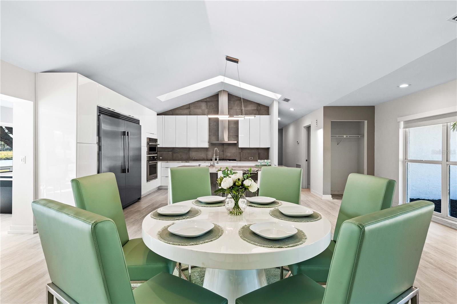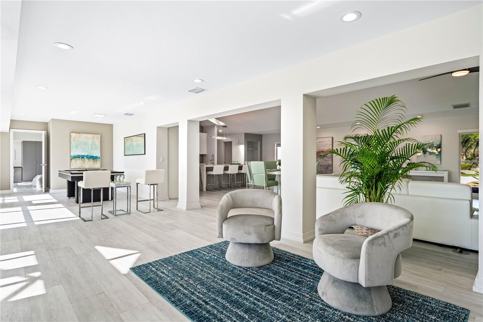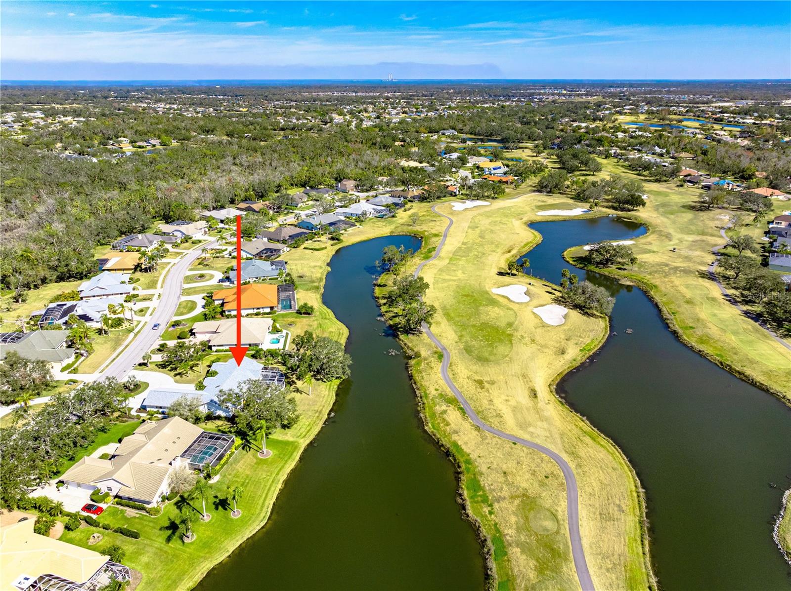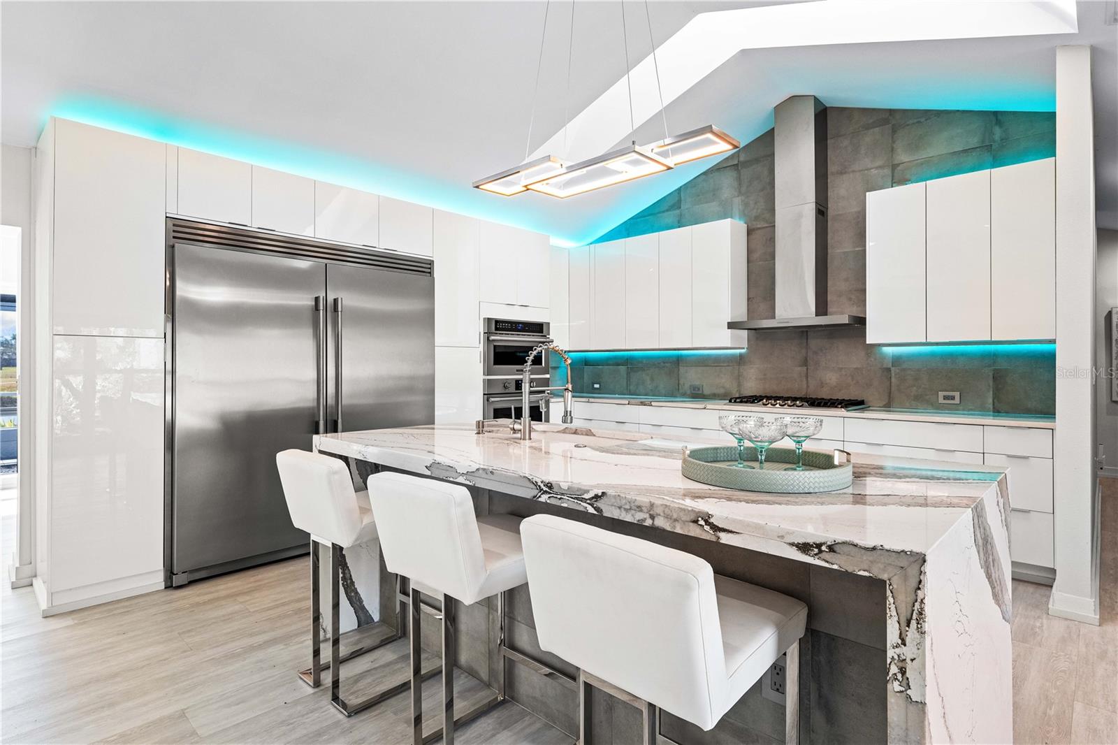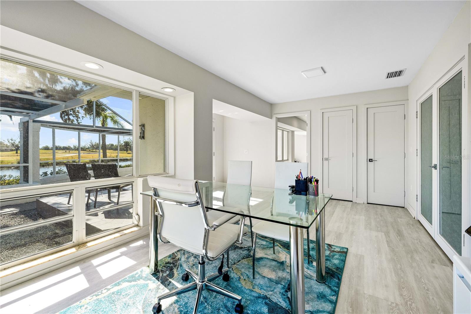 Exquisitely remodeled 4/3.5 contemporary on a spacious golf course lot in the popular Club at River Wilderness. A totally open floor plan featuring extensive windows and a cathedral ceiling create a bright, airy feeling, highlighting the stunningly luxurious, designer finishes throughout. The huge 800sf great room-dining-kitchen area features a floor to ceiling quartzite stone fireplace on one end, with electric fireplace and 72” tv niche, and a chef’s dream kitchen on the opposite end, making this the perfect home for entertaining. The incredible kitchen features glossy white European style cabinetry with premium Cambria counter tops and an impressive waterfalled center island with a composite sink, extremely quiet SS dishwasher and seating for four. Top of the line Frigidaire Professional SS appliances include a 66" twin column frig and freezer, built-in dual wall ovens with a convection microwave, a 36” natural gas cooktop with SS chimney vent. Beyond the great room is a more intimate seating area overlooking the serene golf course and a game room leading out to the expansive, screened in lanai. The spacious master suite boasts a cathedral ceiling, ample room for a king size bed that overlooks an intimate seating area with a built-in electric fireplace to warm cooler evenings after relaxing in the opulent master bath’s whirlpool jet tub. Bathroom also features a large, walk-in glass lined porcelain shower, his and hers vanities with lighted & fog proof mirrors and a separate toilet room. An immense walk-in closet will surprise you with its spacious “California” closet design, it’s convenient second laundry room featuring Bosch under counter washer and dryer, storage cabinets, sink and quartz counter perfect for your morning coffee or expresso machine! Completing the owner’s wing is a large office area with tons of naturel light and a beautiful view overlooking the golf course. The "other wing" of this magnificent home features 3 spacious bedrooms with built-in desks, plenty of closet space and 2 baths en-suite both completely updated with lighted mirrors, porcelain tile and wall hung vanities. The spacious main laundry room in located off the kitchen and leads to a unique 220sf multi-functional workshop/craft room/golf cart room with laundry tub and slatted walls for convenient storage and direct access to the 2.5 car attached garage. Additional upgrades include a new roof and air conditioning systems, all new landscaping, quartzite brick enhanced facias for curb appeal, a circular drive for plenty of guest parking, all new hardware, lighting and plumbing fixtures, freshly painted walls and ceilings and new luxury vinyl plank for porcelain tile floors throughout. You will love the privacy and serenity from your screened in patio with pond/golf course view and room for a pool or hot tub. This community has many amenities including a 18 hole championship golf course, clubhouse with dining, Olympic sized pool, fully equipped fitness center, lighted har-tru tennis courts and pickle ball as well as community ramp with boating access to the Manatee River! The club has many optional memberships for golf, tennis, and social. This incredible community is conveniently located to shopping, restaurants and schools. Call me today for a private tour while this masterpiece is still available.