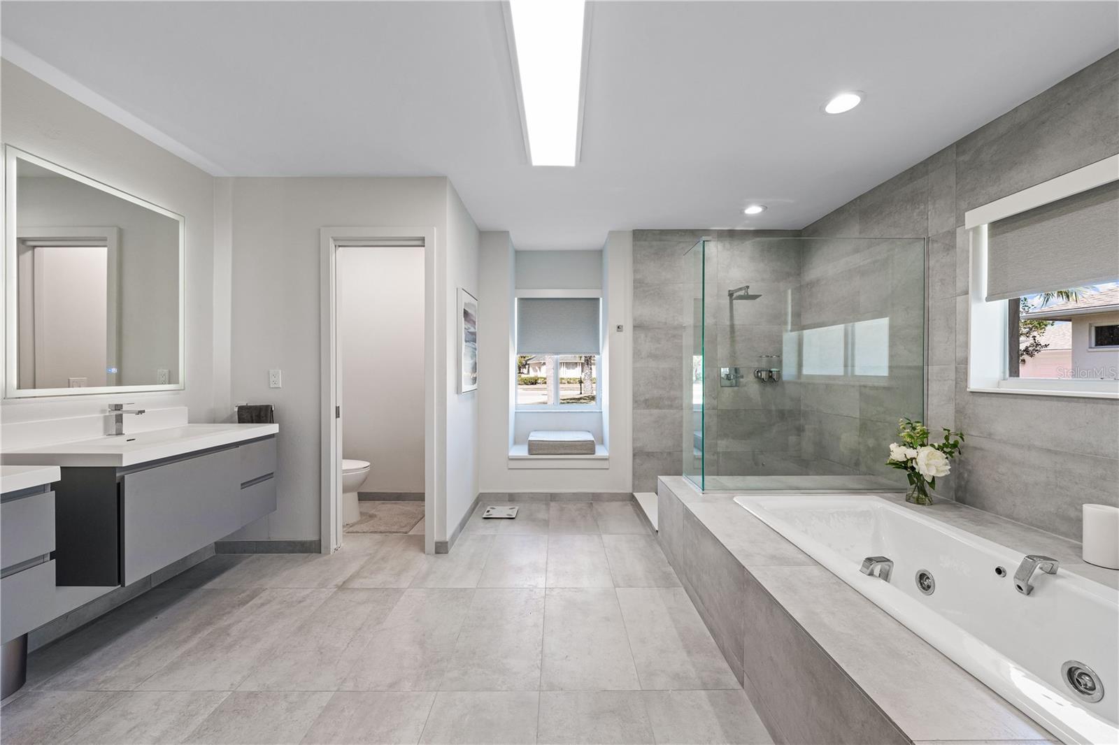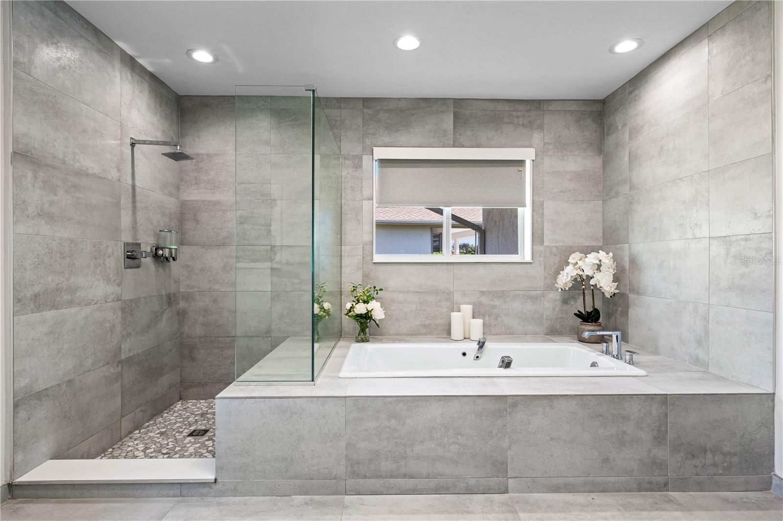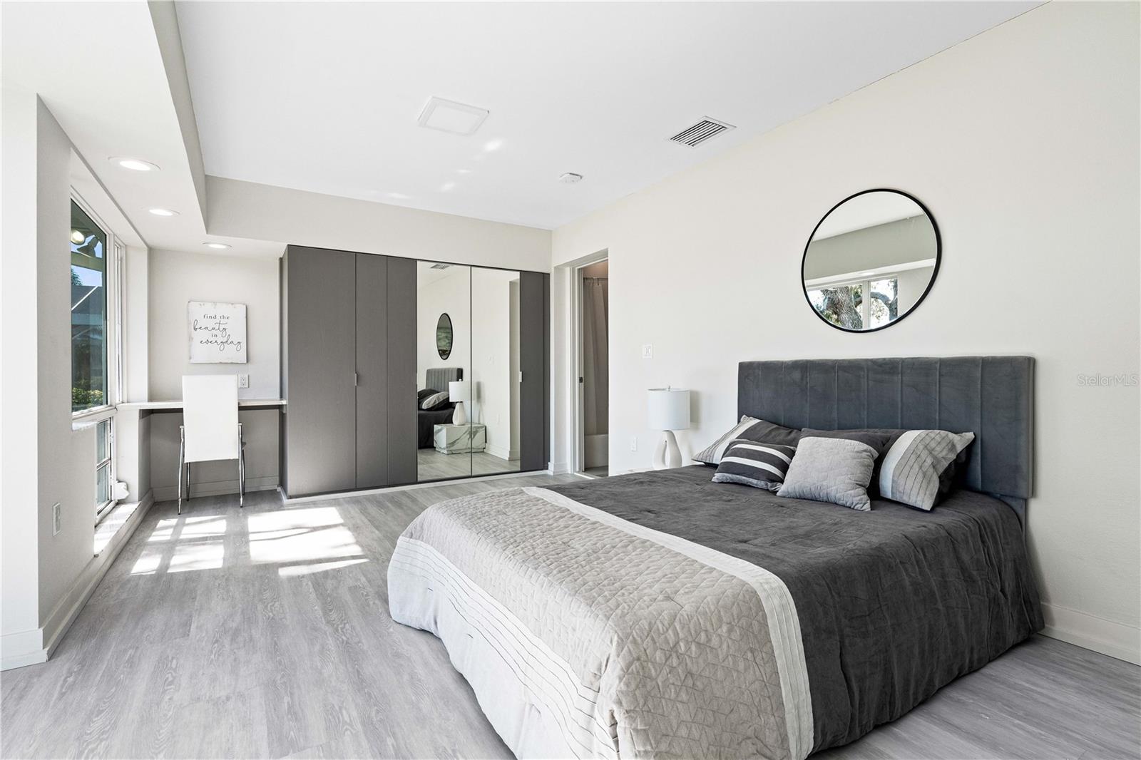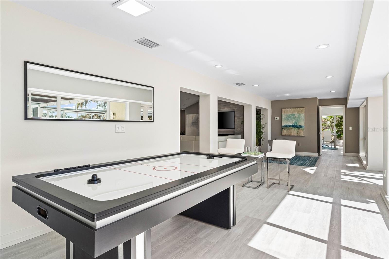 Exquisitely remodeled 4/3.5 contemporary on a spacious golf course lot in the popular Club at River Wilderness. A totally open floor plan featuring extensive windows and a cathedral ceiling create a bright, airy feeling, highlighting the stunningly luxurious, designer finishes throughout. The huge 800sf great room-dining-kitchen area features a floor to ceiling quartzite stone fireplace on one end, with electric fireplace and 72” tv niche, and a chef’s dream kitchen on the opposite end, making this the perfect home for entertaining. The incredible kitchen features glossy white European style cabinetry with premium Cambria counter tops and an impressive waterfalled center island with a composite sink, extremely quiet SS dishwasher and seating for four. Top of the line Frigidaire Professional SS appliances include a 66" twin column frig and freezer, built-in dual wall ovens with a convection microwave, a 36” natural gas cooktop with SS chimney vent. Beyond the great room is a more intimate seating area overlooking the serene golf course and a game room leading out to the expansive, screened in lanai. The spacious master suite boasts a cathedral ceiling, ample room for a king size bed that overlooks an intimate seating area with a built-in electric fireplace to warm cooler evenings after relaxing in the opulent master bath’s whirlpool jet tub. Bathroom also features a large, walk-in glass lined porcelain shower, his and hers vanities with lighted & fog proof mirrors and a separate toilet room. An immense walk-in closet will surprise you with its spacious “California” closet design, it’s convenient second laundry room featuring Bosch under counter washer and dryer, storage cabinets, sink and quartz counter perfect for your morning coffee or expresso machine! Completing the owner’s wing is a large office area with tons of naturel light and a beautiful view overlooking the golf course. The "other wing" of this magnificent home features 3 spacious bedrooms with built-in desks, plenty of closet space and 2 baths en-suite both completely updated with lighted mirrors, porcelain tile and wall hung vanities. The spacious main laundry room in located off the kitchen and leads to a unique 220sf multi-functional workshop/craft room/golf cart room with laundry tub and slatted walls for convenient storage and direct access to the 2.5 car attached garage. Additional upgrades include a new roof and air conditioning systems, all new landscaping, quartzite brick enhanced facias for curb appeal, a circular drive for plenty of guest parking, all new hardware, lighting and plumbing fixtures, freshly painted walls and ceilings and new luxury vinyl plank for porcelain tile floors throughout. You will love the privacy and serenity from your screened in patio with pond/golf course view and room for a pool or hot tub. This community has many amenities including a 18 hole championship golf course, clubhouse with dining, Olympic sized pool, fully equipped fitness center, lighted har-tru tennis courts and pickle ball as well as community ramp with boating access to the Manatee River! The club has many optional memberships for golf, tennis, and social. This incredible community is conveniently located to shopping, restaurants and schools. Call me today for a private tour while this masterpiece is still available.