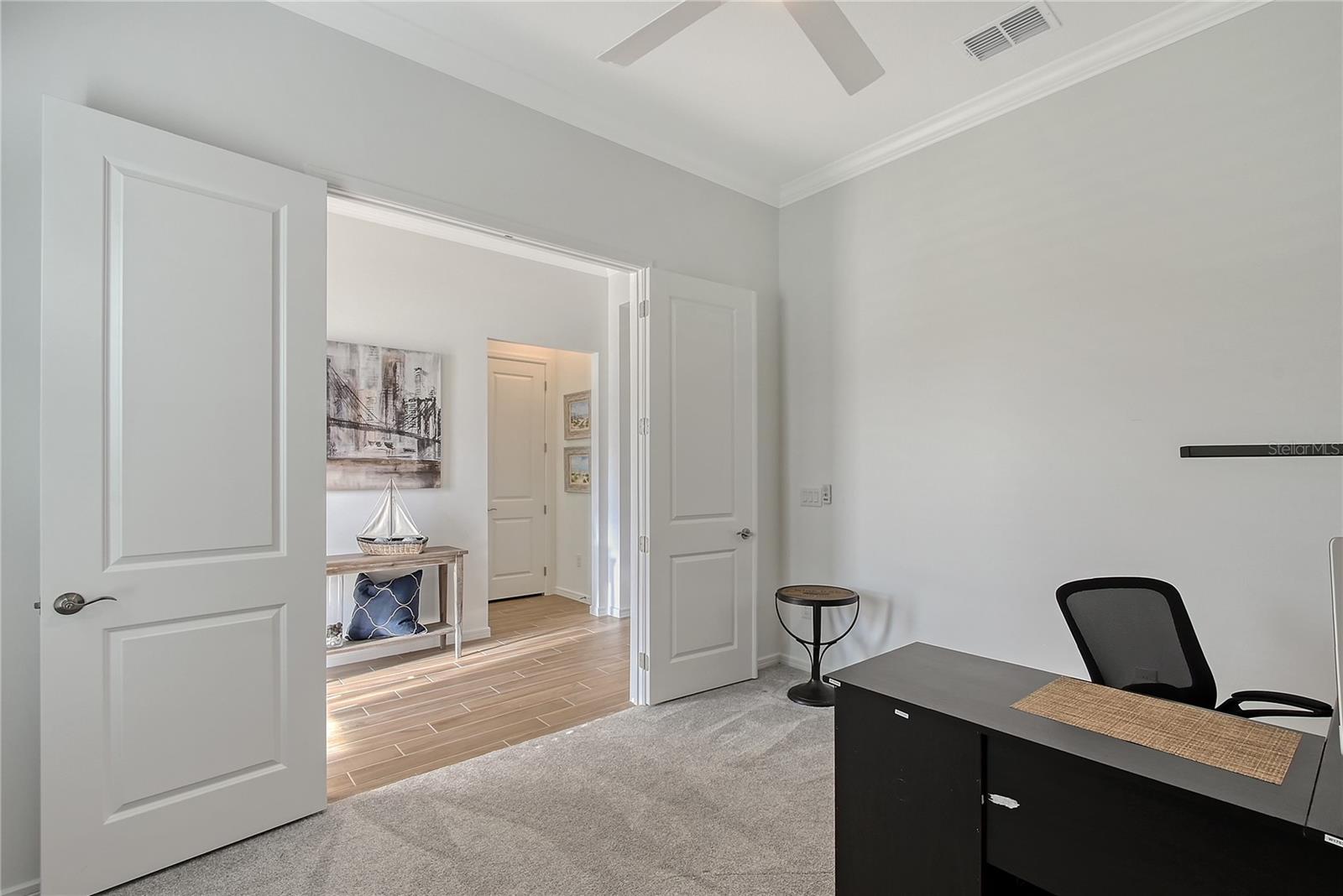 Situated within the guard gated, Del Webb Bayview Community, is this highly desired Stellar model. As you walk through the front door you are greeted with wide plank ceramic tile and plenty of natural light. This home features 3 bedroom, 3 bathrooms, den and large laundry room with built in cabinets. The spacious floor plan is perfect for entertaining. The expansive kitchen is a chef’s dream that boasts a walk-in pantry, oversized island with stone countertops, upgraded KitchenAid appliances, and a coffee bar with a built-in wine fridge. The oversized master suite features an ensuite with dual sinks, a stunning walk-in shower and an oversized closet. The second bedroom is perfect for overnight guests with its own private bathroom and large bay window. Step through the seamless sliding glass doors onto the pavered lanai with motorized SPF screen, tranquil water view and conveniently pre-plumbed for an outdoor kitchen. This home is equipped with Hurricane rated impact windows throughout giving you peace of mind during the storm season. The large 3 car garage is also finished with epoxied floors. The Del Webb 55+ community offers ample amenities including clubhouse with fitness center, zero entry pool, resistance pool, spa, and onsite restaurant. There are numerous planned activities, clubs, interest groups and outdoor activities for those looking for that active lifestyle. With close proximity to St. Pete, Tampa and Sarasota, dining, shopping, entertainment and world-renowned beaches are just a short drive away.