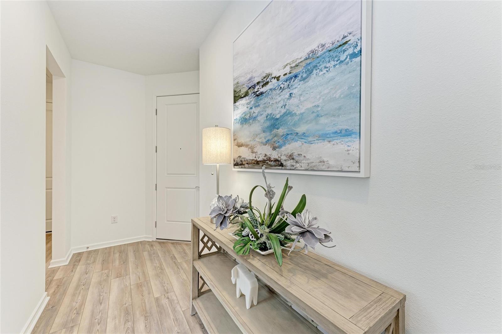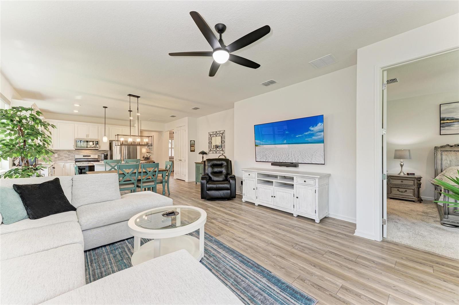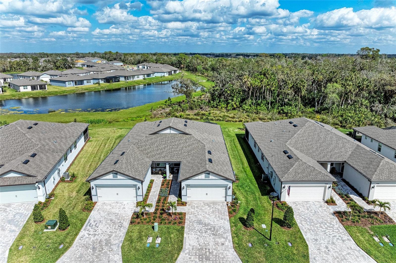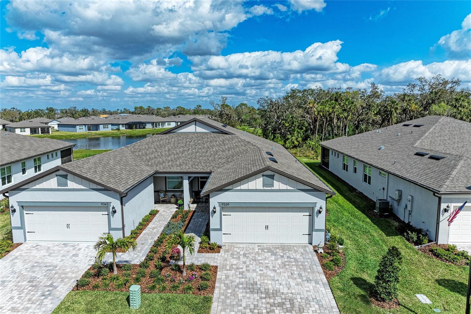 Welcome home to the Ellenwood Villa at Del Webb Bayview—where every day brings a new adventure. We're excited to share some fantastic news: this Ellenwood Villa is now available at a remarkable new price! Del Webb Bayview is designed to help you make the most of your retirement. Located just 30 minutes from Sarasota, St. Petersburg, and Tampa, our community offers a perfect blend of peaceful living and vibrant city access. It's a wonderful place for active adults aged 55 and over to connect with neighbors and enjoy cultural and recreational attractions. Th?is Ellenwood Villa truly combines luxury and comfort. This stunning home features thoughtful details and ample space, complete with numerous upgrades for an elegant and easy lifestyle. The heart of the villa is its designer kitchen, which is sure to inspire any chef. It boasts a spacious island with a large single-bowl sink, beautiful cabinets, sleek quartz countertops, a convenient pantry, and Whirlpool stainless steel appliances, including an upgraded gas range. The bathrooms echo this elegance with matching cabinets and quartz countertops, a walk-in shower, and dual sinks in the Owner's bath for both style and functionality. Every detail in the Ellenwood Villa has been carefully selected to enhance your living experience. You'll find luxury vinyl plank flooring in the main living areas and enclosed flex room for style and durability, durable tile in the baths and laundry room, and stain-resistant carpet in the bedrooms for comfort. Additional upgrades include electric storm screens on the lanai for security, beautiful remote custom blinds on the windows, and added premium ceiling fans for year-round comfort. Plus, there's a new washer and dryer, epoxy flooring in the garage, and extra storage shelves, perfect for luggage or holiday items. One of the villa's most charming features is its serene views of both the lake and surrounding woods. Whether you're enjoying your morning coffee or entertaining guests, these peaceful vistas will surely leave a lasting impression. We invite you to discover this exceptional opportunity to own a home in Del Webb Bayview. Come and experience a new level of retirement living in a community designed for those who want to stay active and connected.