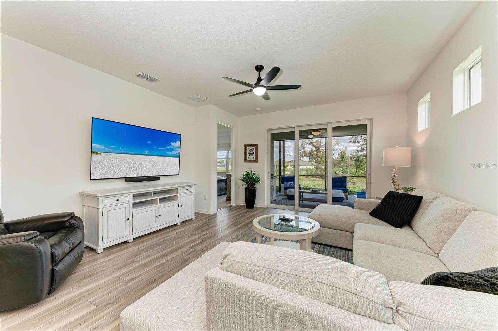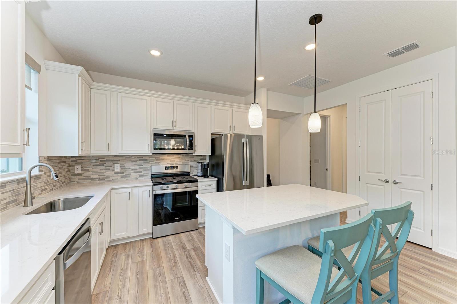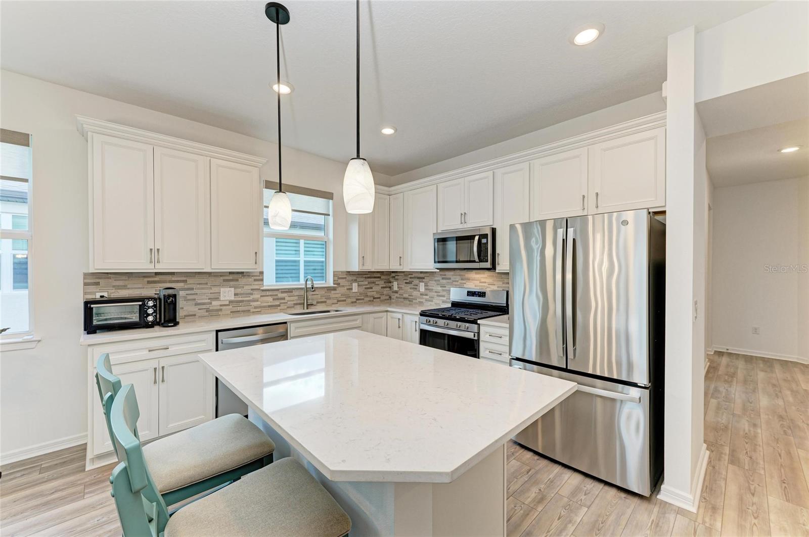 Welcome home to the Ellenwood Villa at Del Webb Bayview—where every day brings a new adventure. We're excited to share some fantastic news: this Ellenwood Villa is now available at a remarkable new price! Del Webb Bayview is designed to help you make the most of your retirement. Located just 30 minutes from Sarasota, St. Petersburg, and Tampa, our community offers a perfect blend of peaceful living and vibrant city access. It's a wonderful place for active adults aged 55 and over to connect with neighbors and enjoy cultural and recreational attractions. Th?is Ellenwood Villa truly combines luxury and comfort. This stunning home features thoughtful details and ample space, complete with numerous upgrades for an elegant and easy lifestyle. The heart of the villa is its designer kitchen, which is sure to inspire any chef. It boasts a spacious island with a large single-bowl sink, beautiful cabinets, sleek quartz countertops, a convenient pantry, and Whirlpool stainless steel appliances, including an upgraded gas range. The bathrooms echo this elegance with matching cabinets and quartz countertops, a walk-in shower, and dual sinks in the Owner's bath for both style and functionality. Every detail in the Ellenwood Villa has been carefully selected to enhance your living experience. You'll find luxury vinyl plank flooring in the main living areas and enclosed flex room for style and durability, durable tile in the baths and laundry room, and stain-resistant carpet in the bedrooms for comfort. Additional upgrades include electric storm screens on the lanai for security, beautiful remote custom blinds on the windows, and added premium ceiling fans for year-round comfort. Plus, there's a new washer and dryer, epoxy flooring in the garage, and extra storage shelves, perfect for luggage or holiday items. One of the villa's most charming features is its serene views of both the lake and surrounding woods. Whether you're enjoying your morning coffee or entertaining guests, these peaceful vistas will surely leave a lasting impression. We invite you to discover this exceptional opportunity to own a home in Del Webb Bayview. Come and experience a new level of retirement living in a community designed for those who want to stay active and connected.